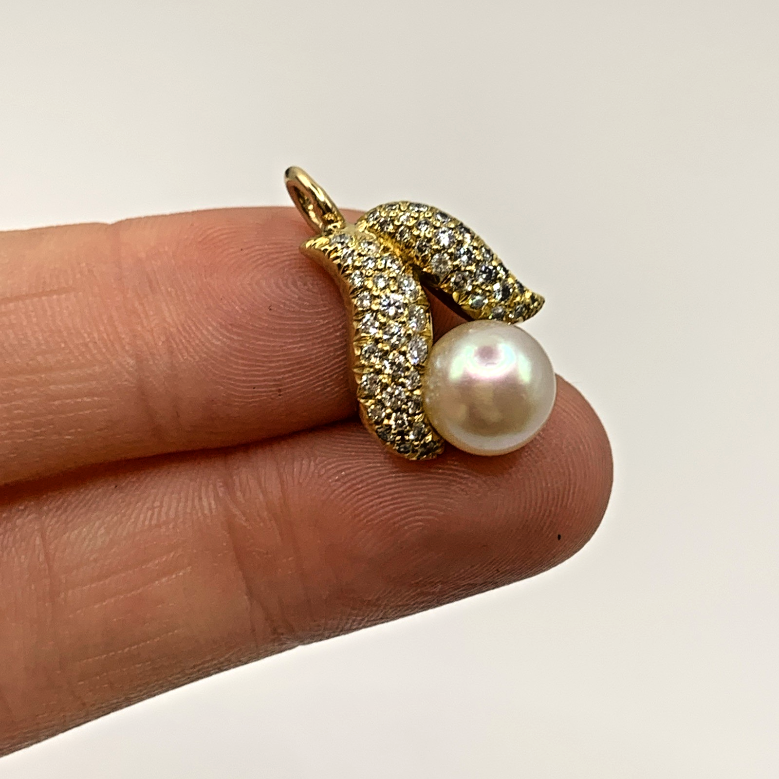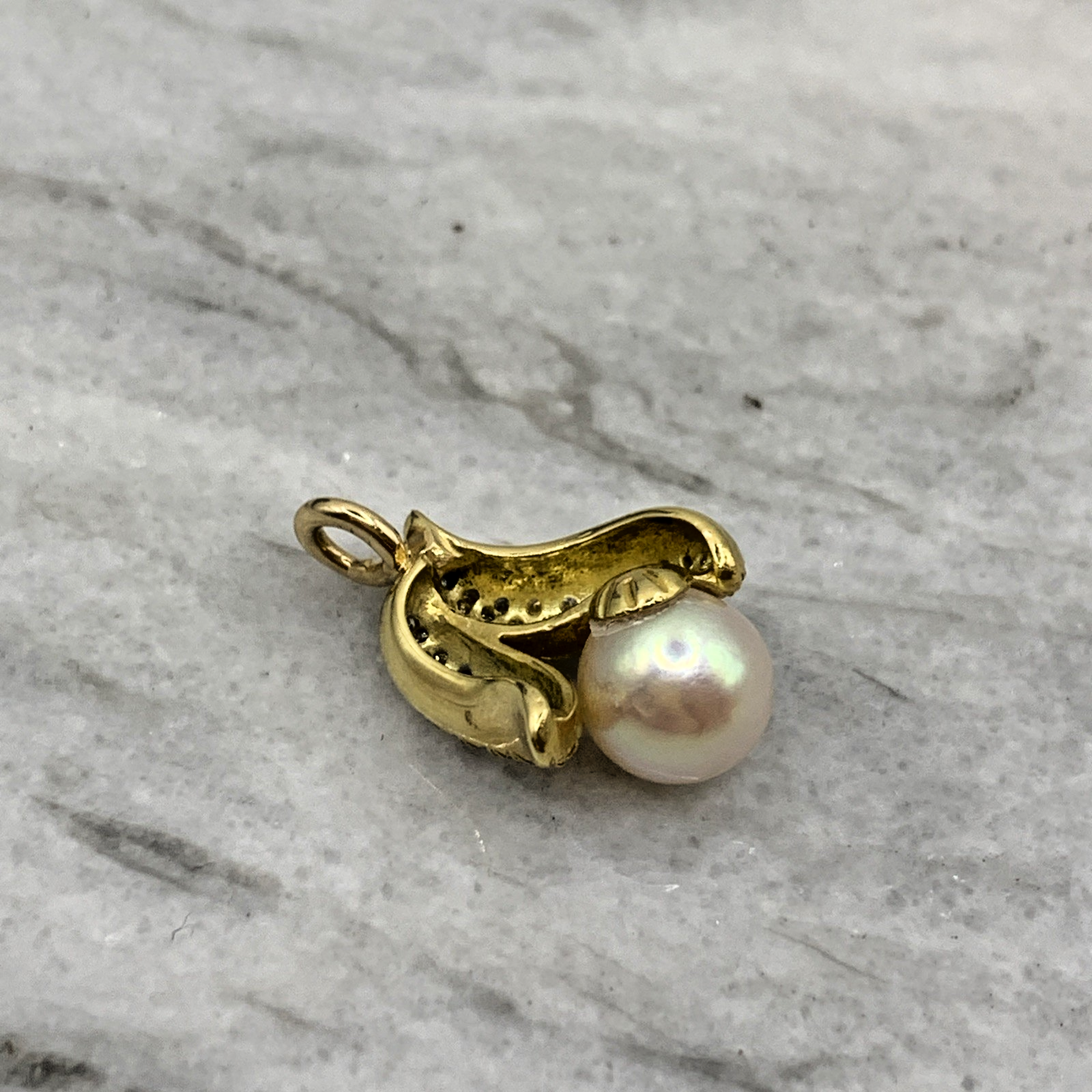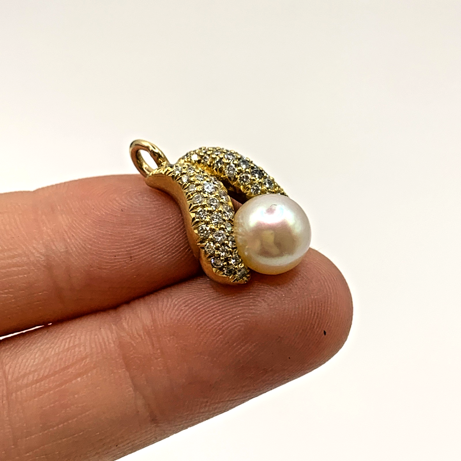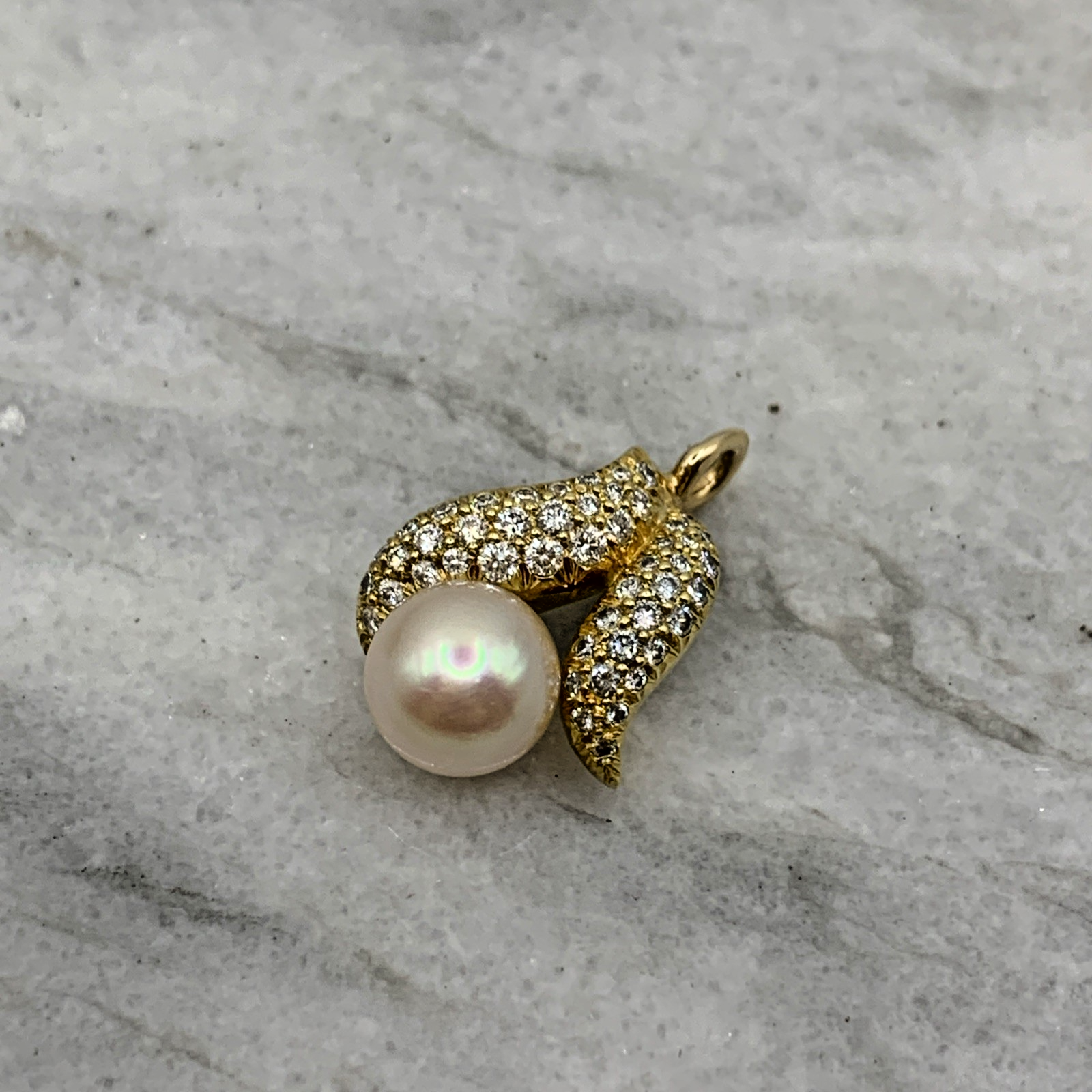 18 ct Gold Diamond & Pearl Wave Pendant 18ct 18k 750Yellow Gold