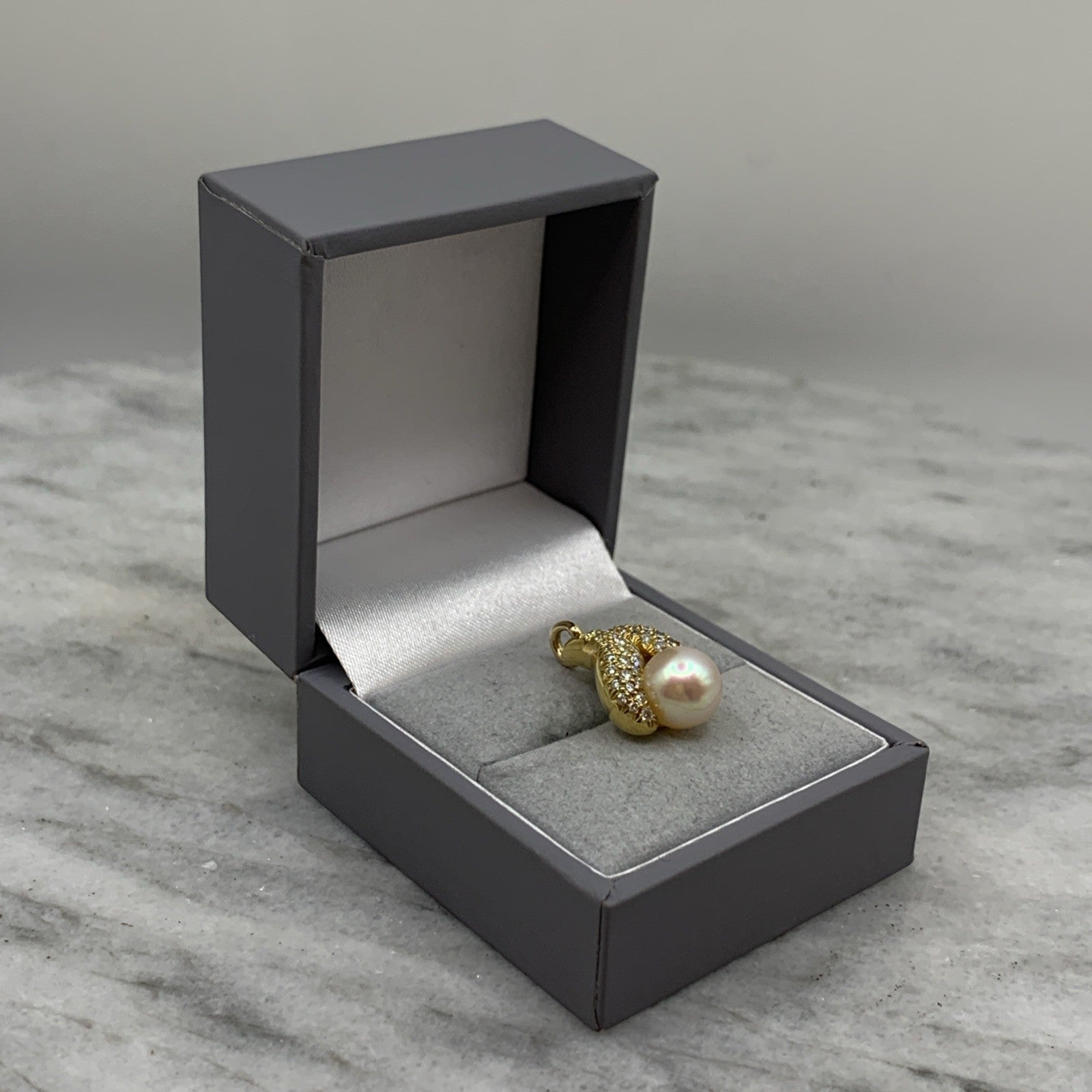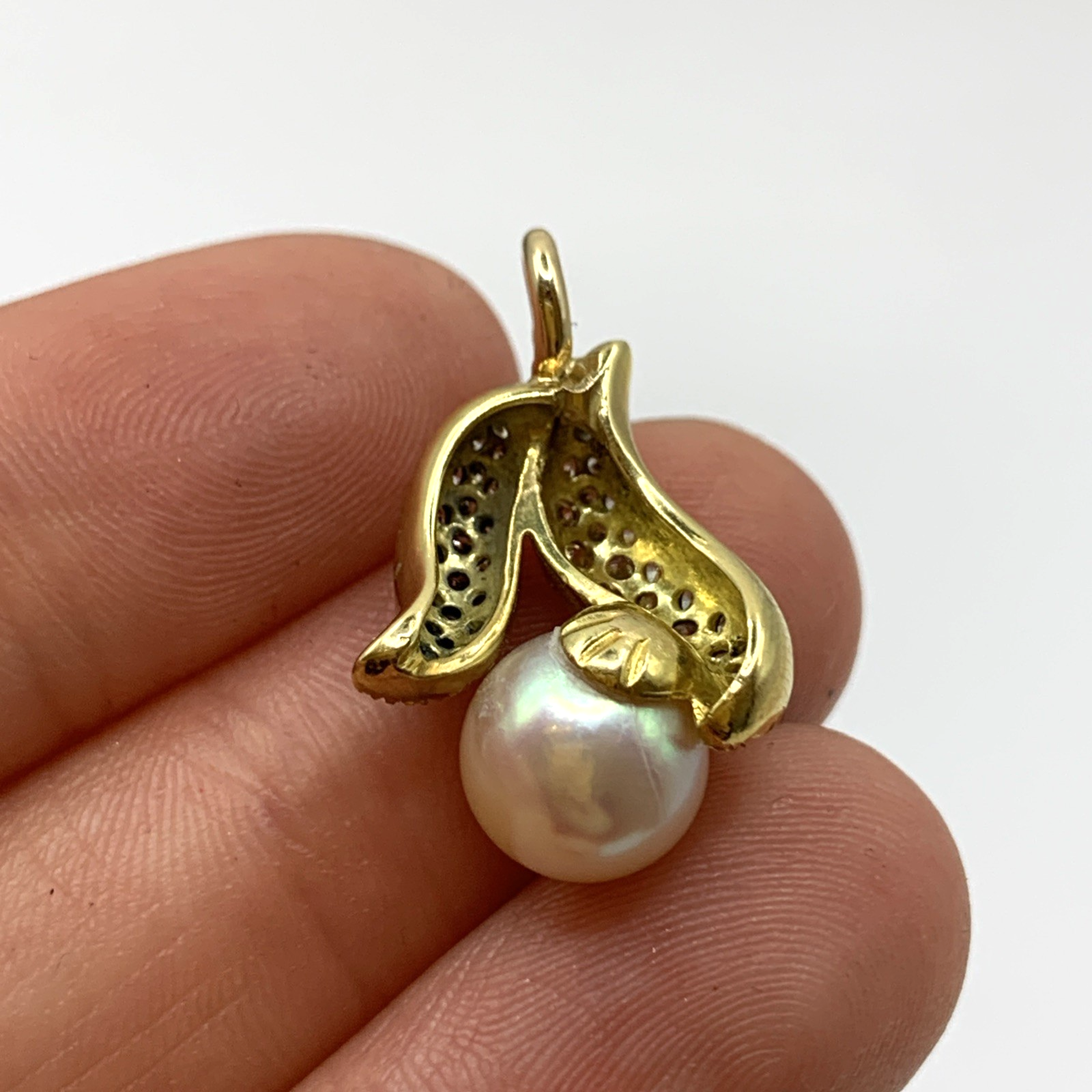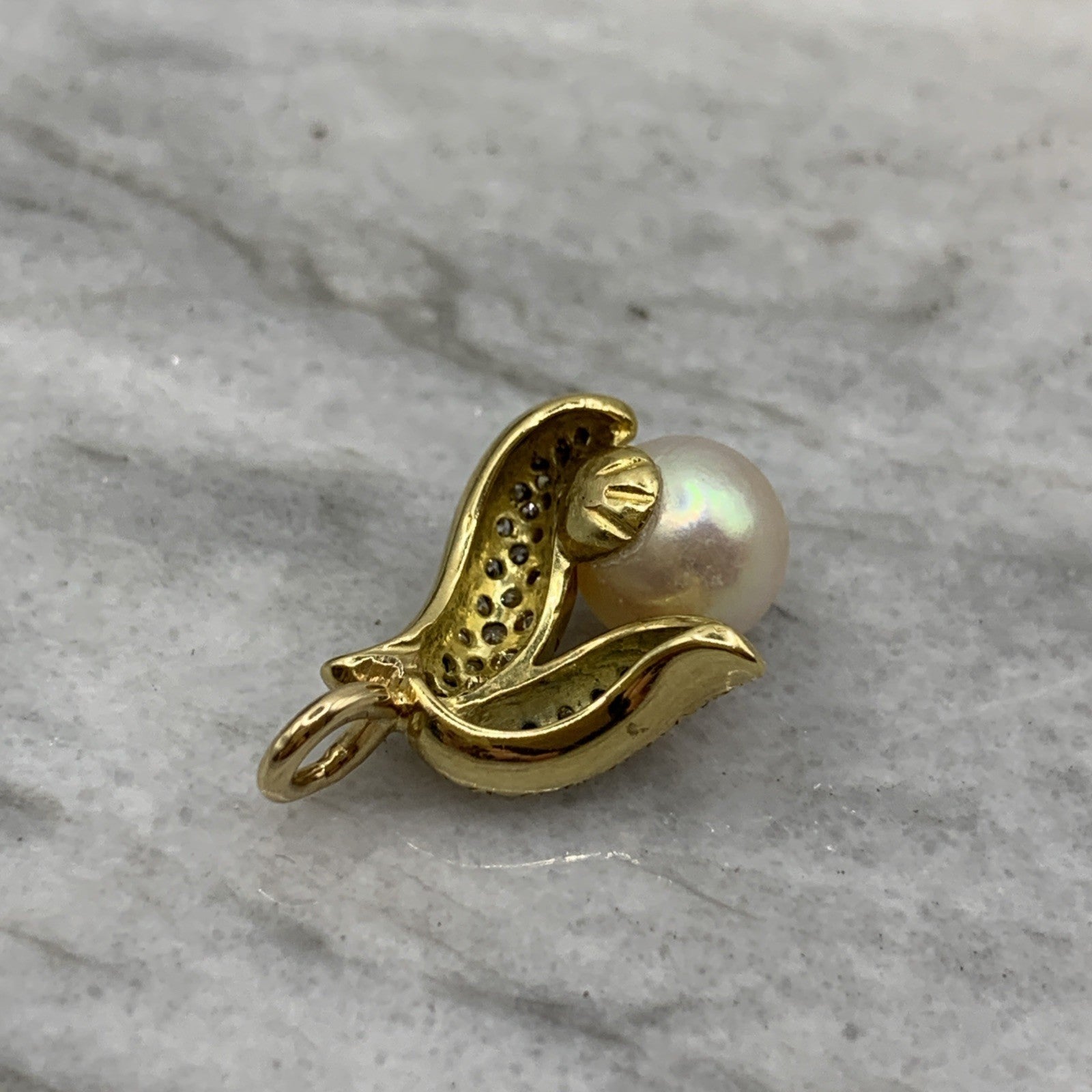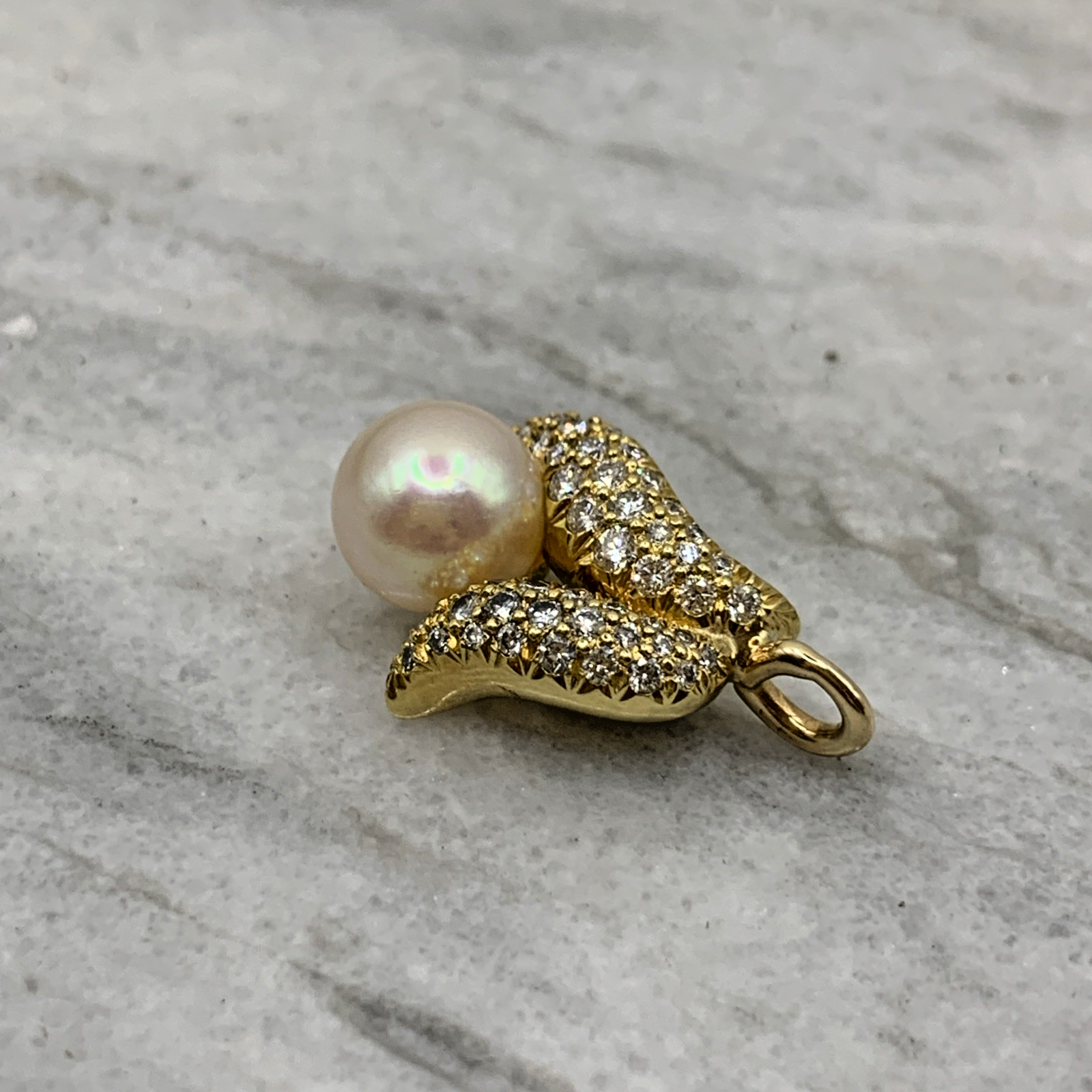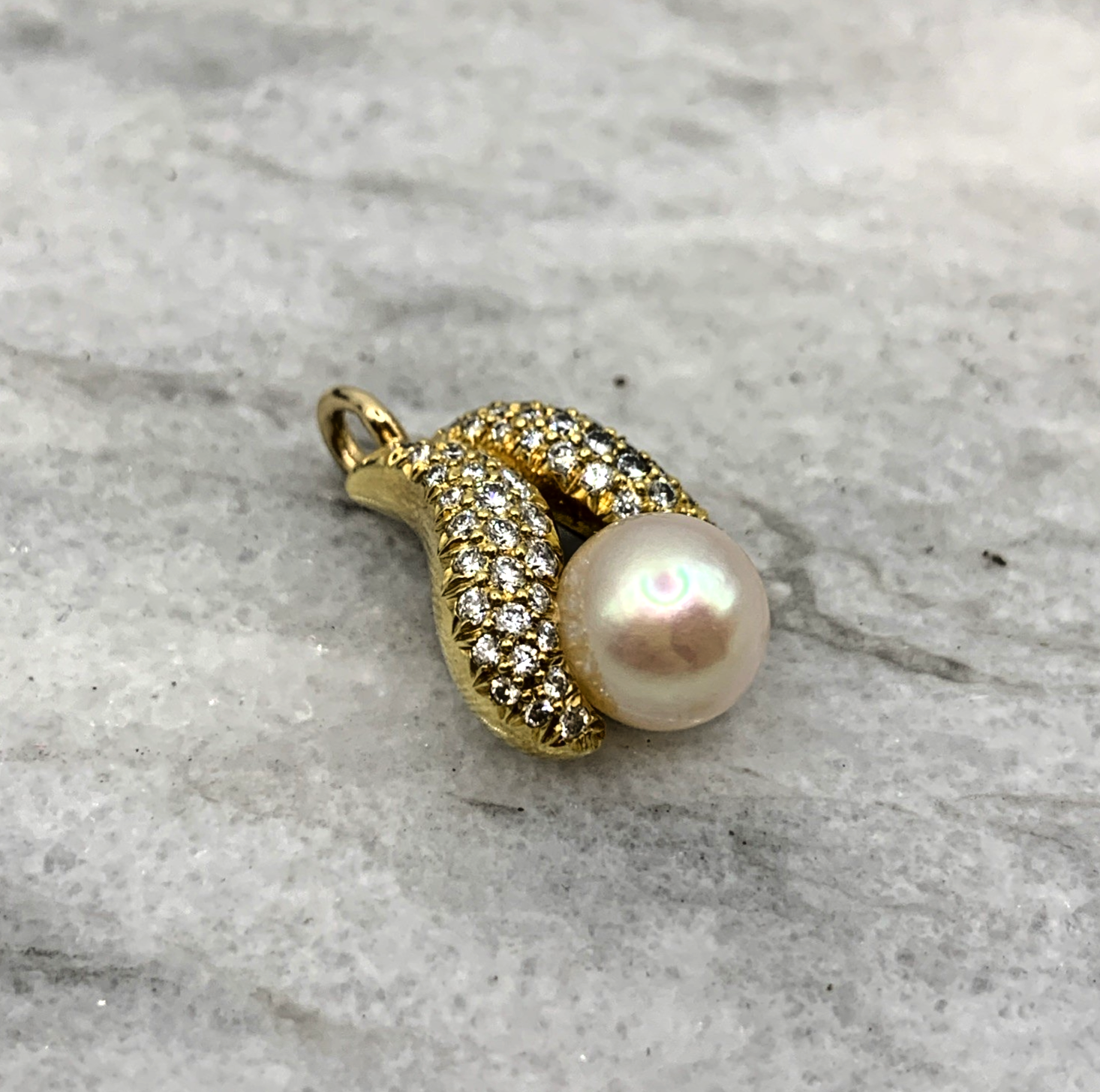 18 ct Gold Diamond & Pearl Wave Pendant 18ct 18k 750Yellow Gold