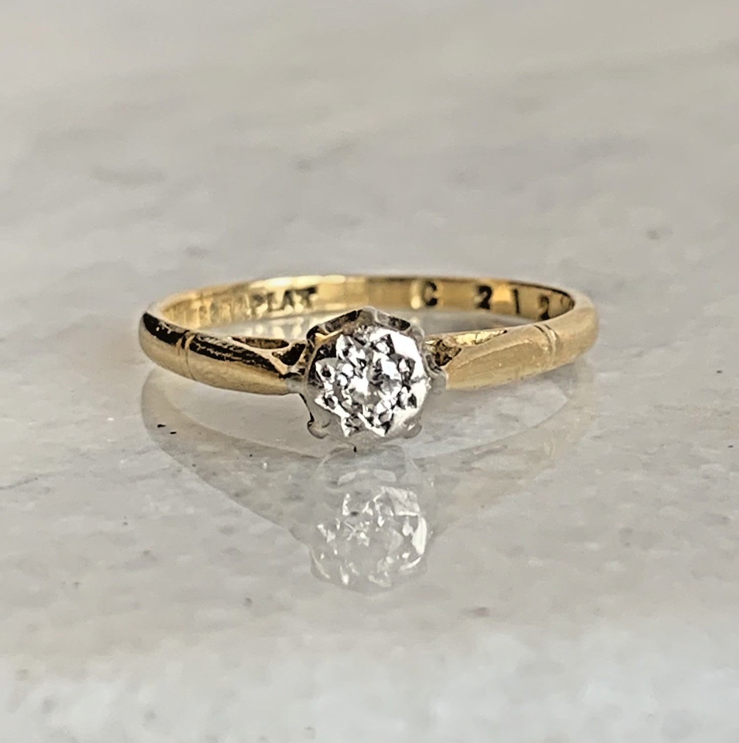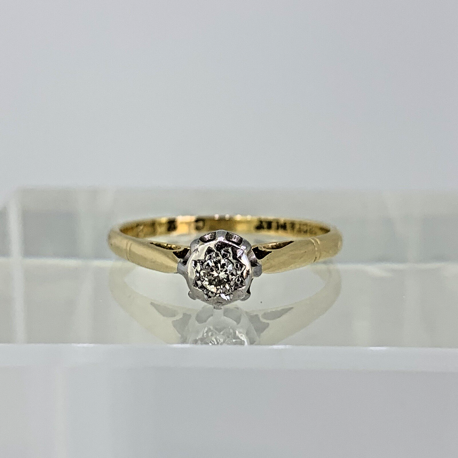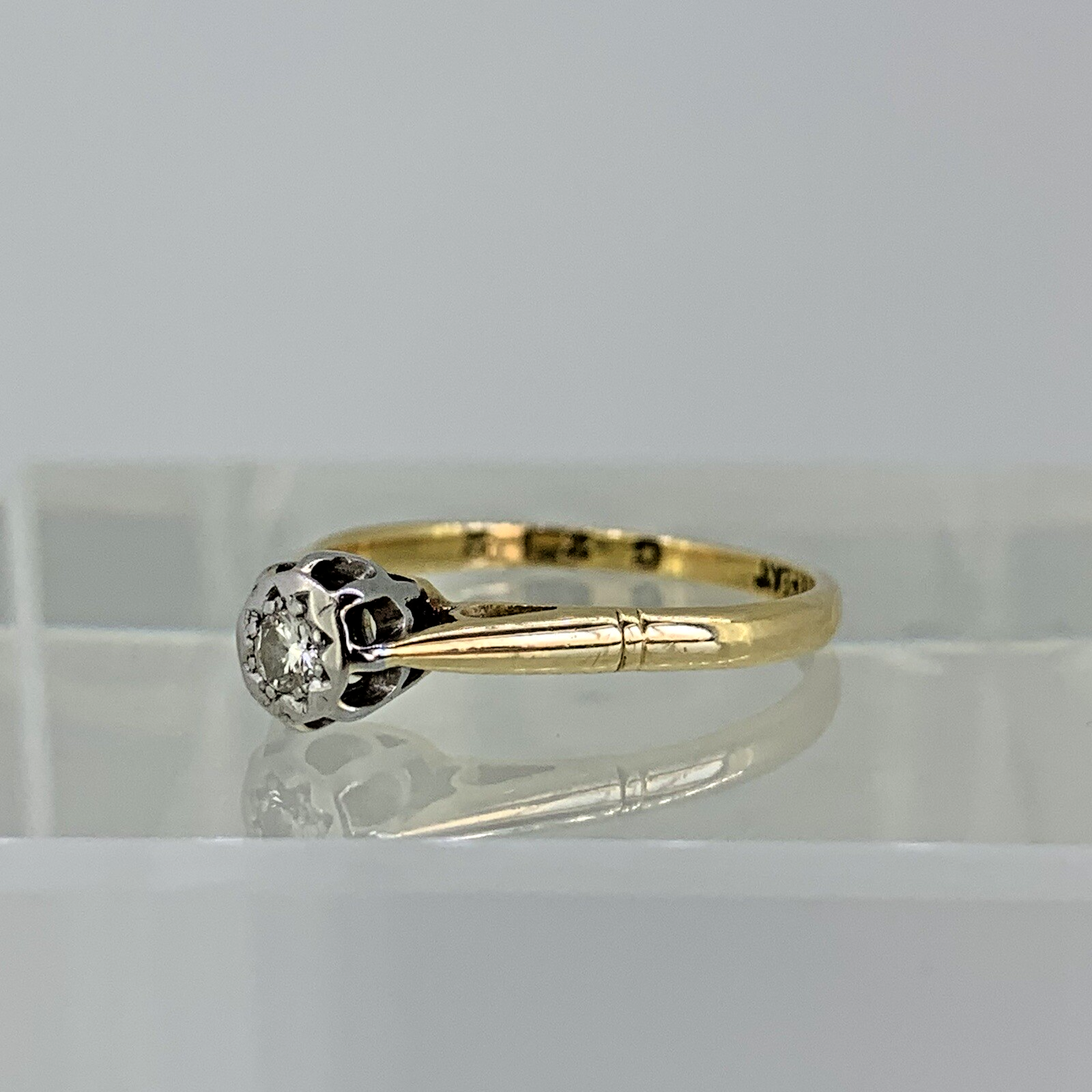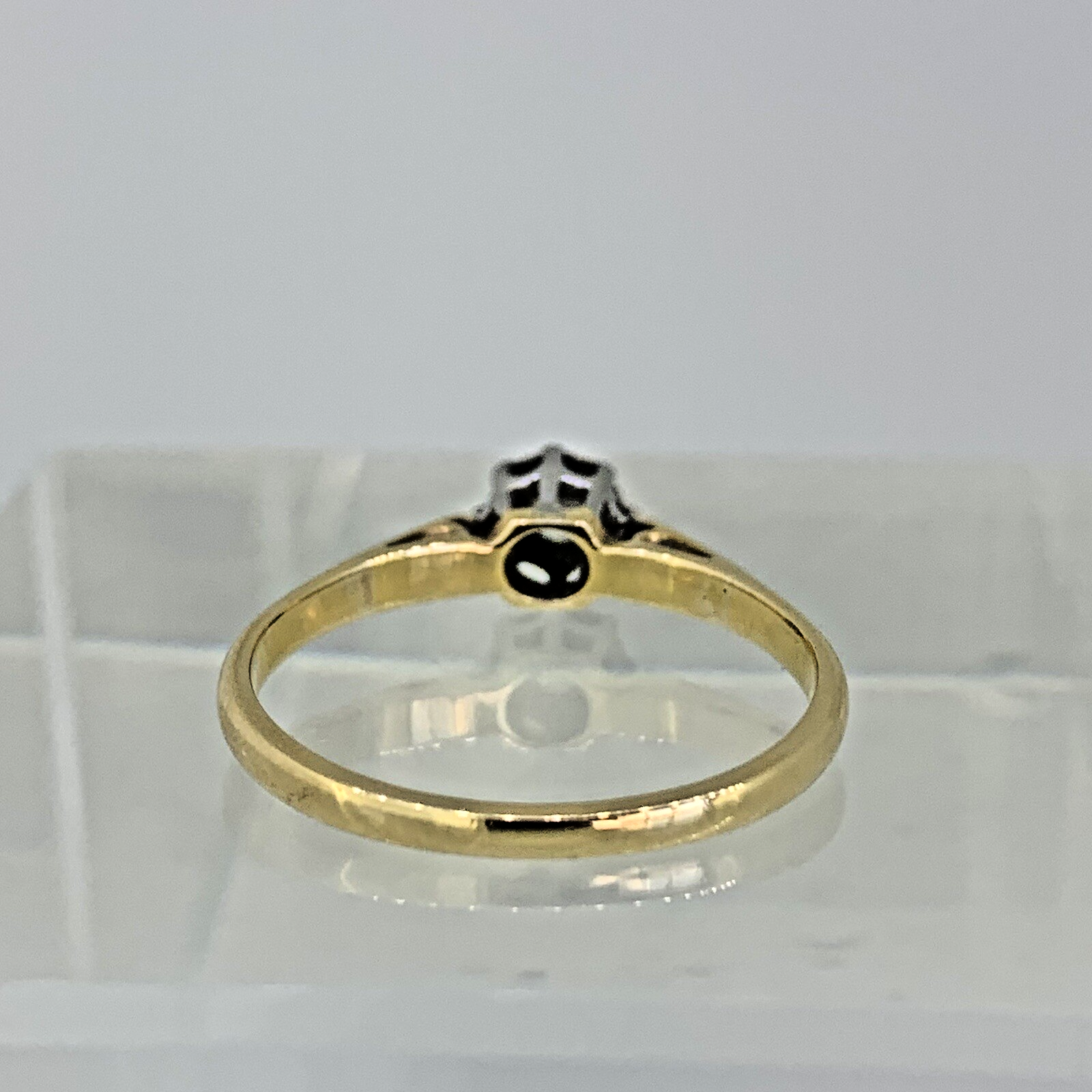 18 ct Gold Diamond Platinum Set Antique Ring 18ct 750 Yellow Gold - Size M 1/2