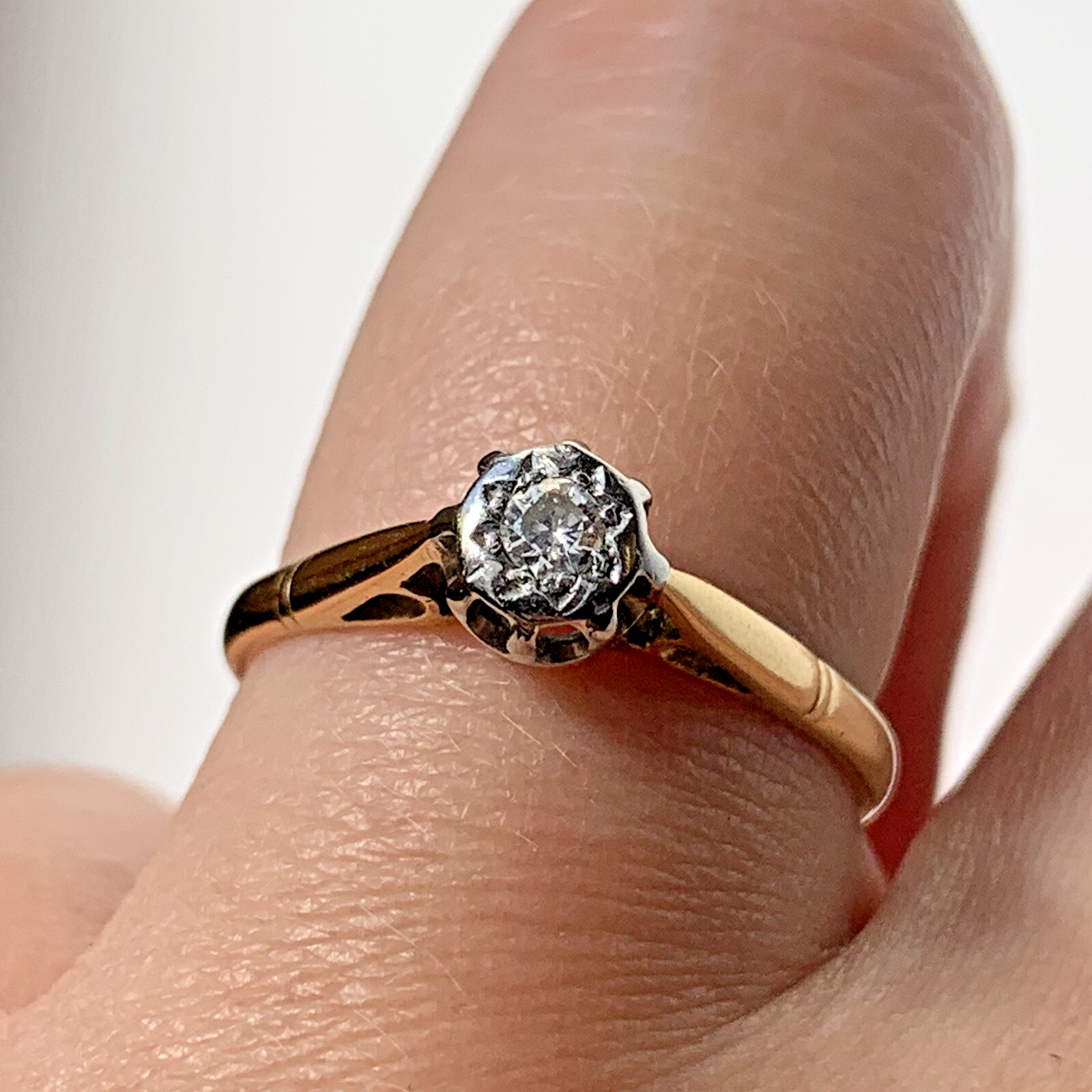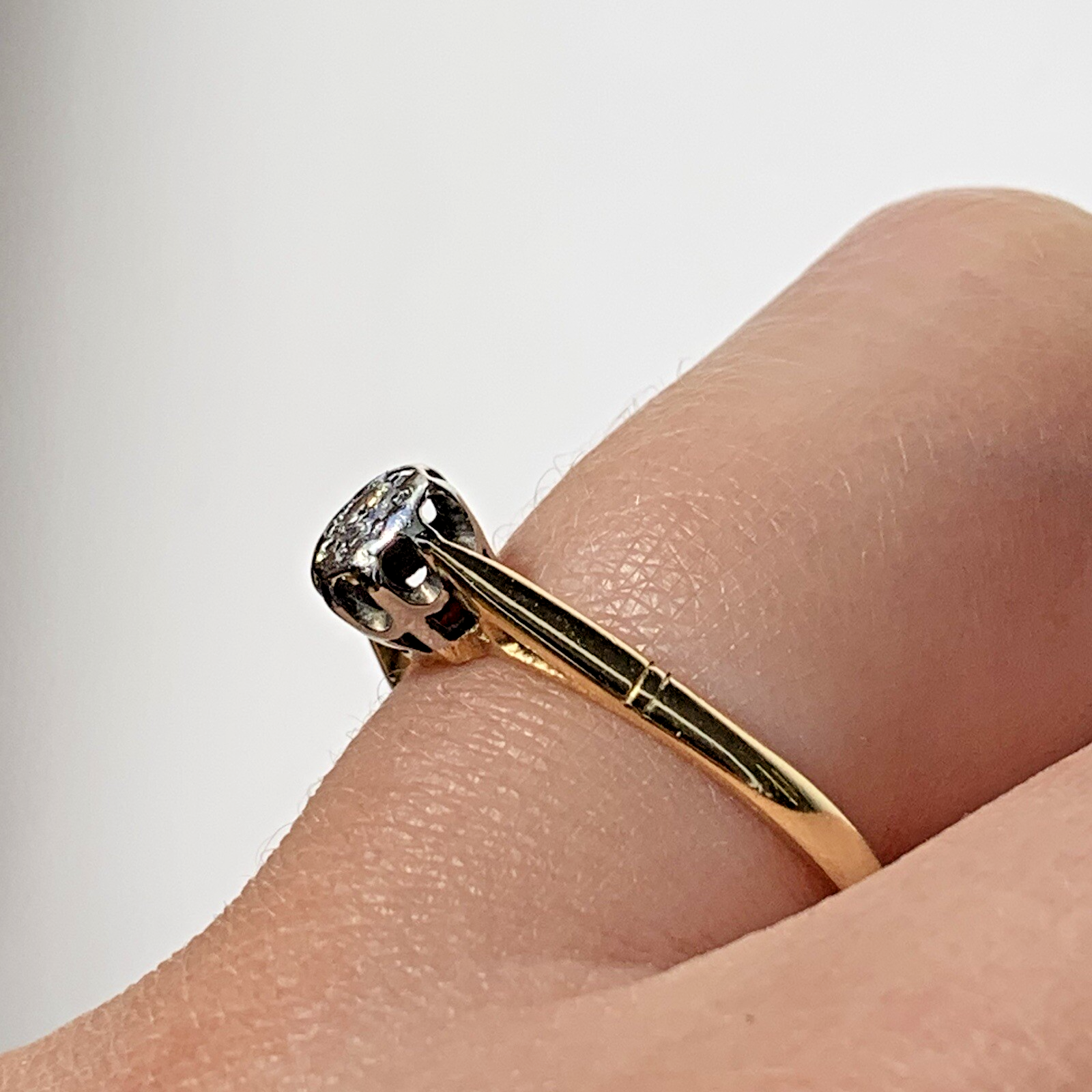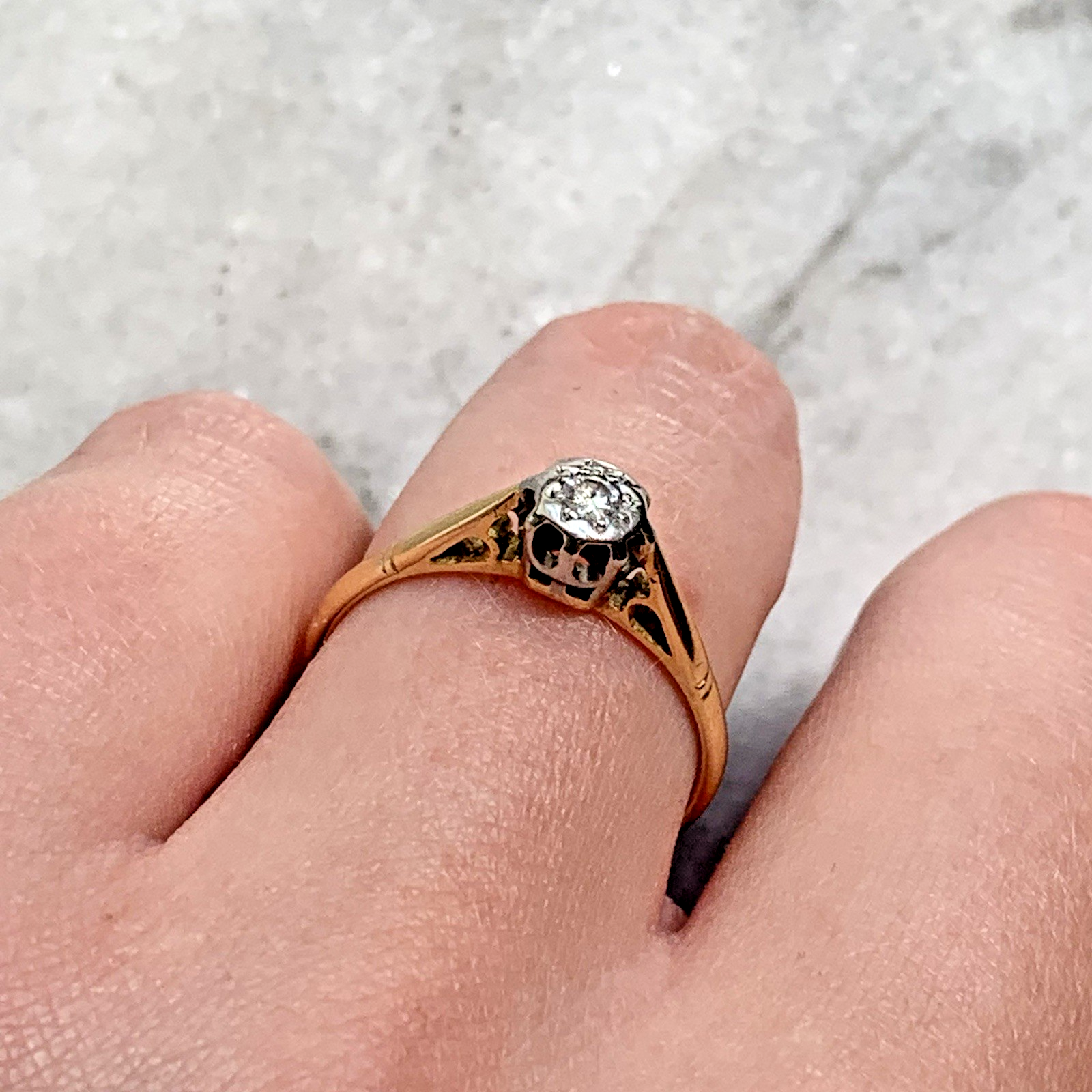 18 ct Gold Diamond Platinum Set Antique Ring 18ct 750 Yellow Gold - Size M 1/2