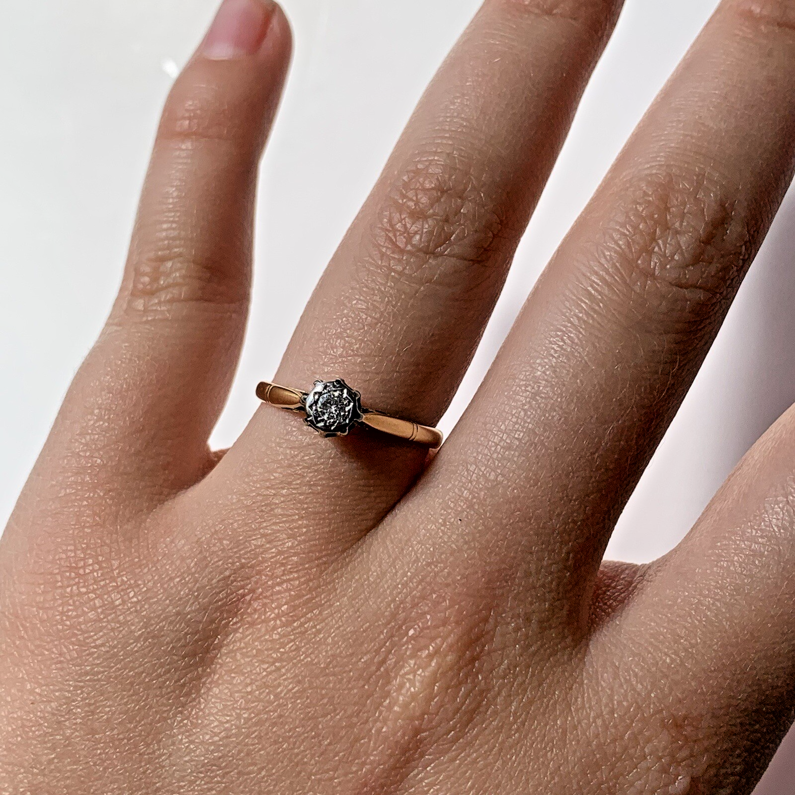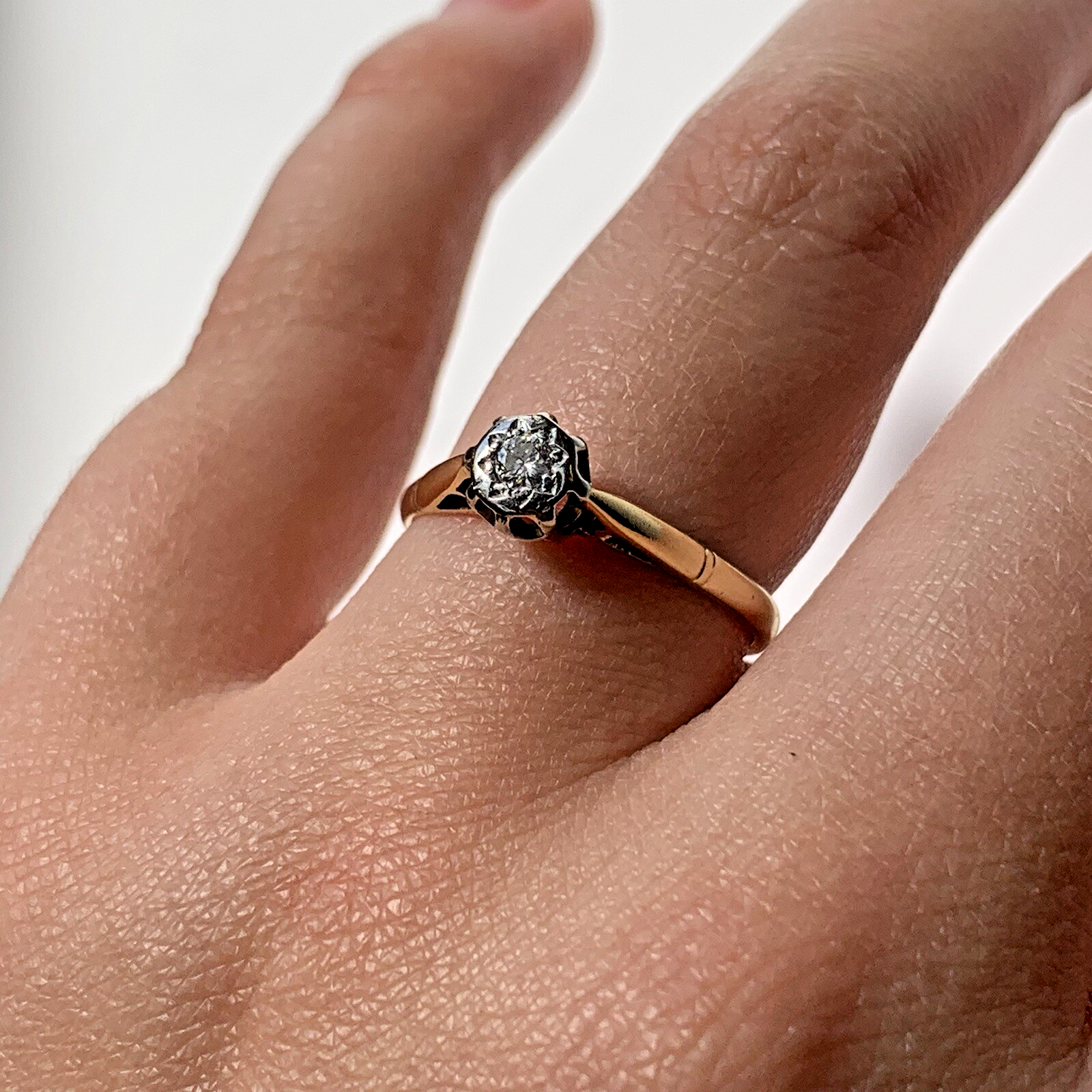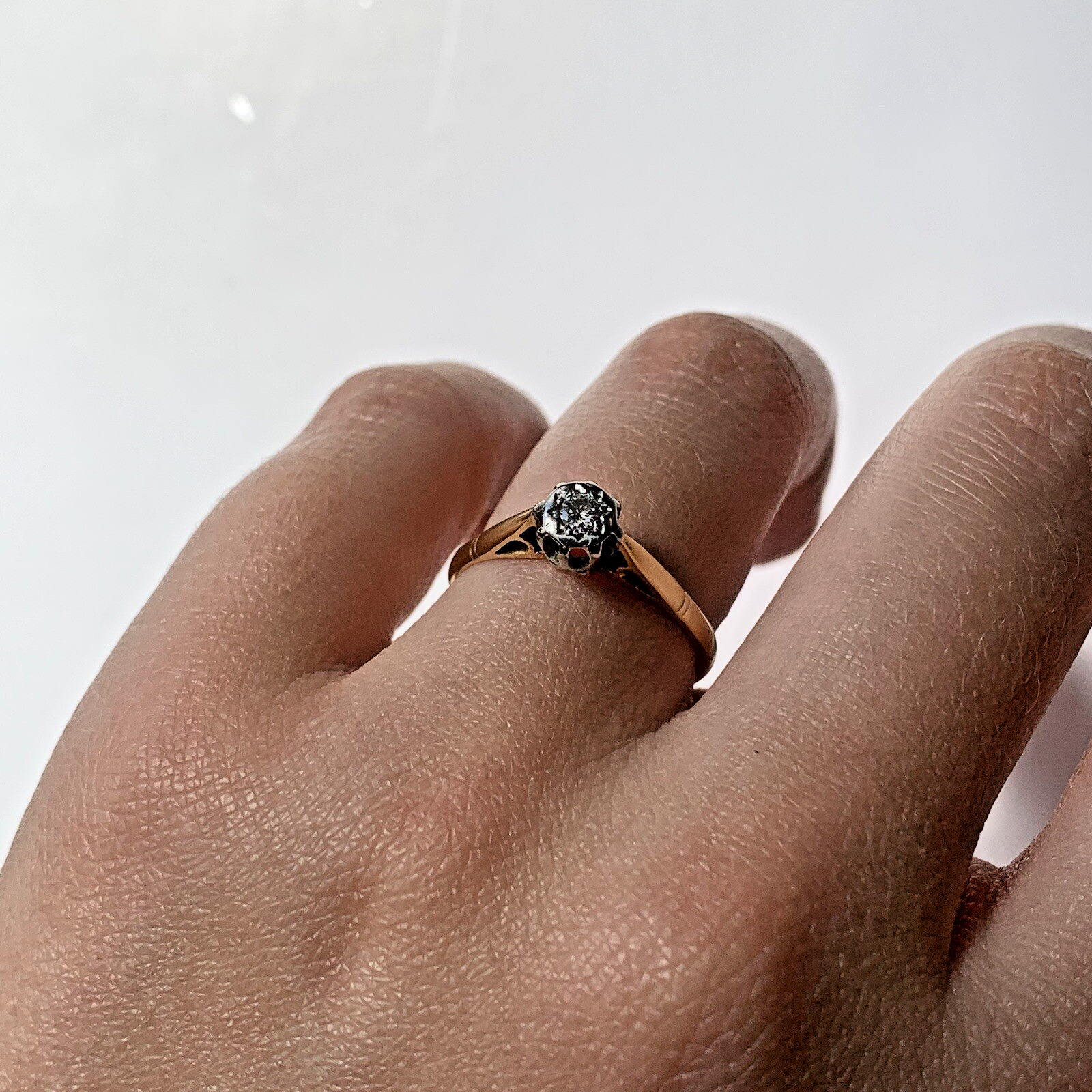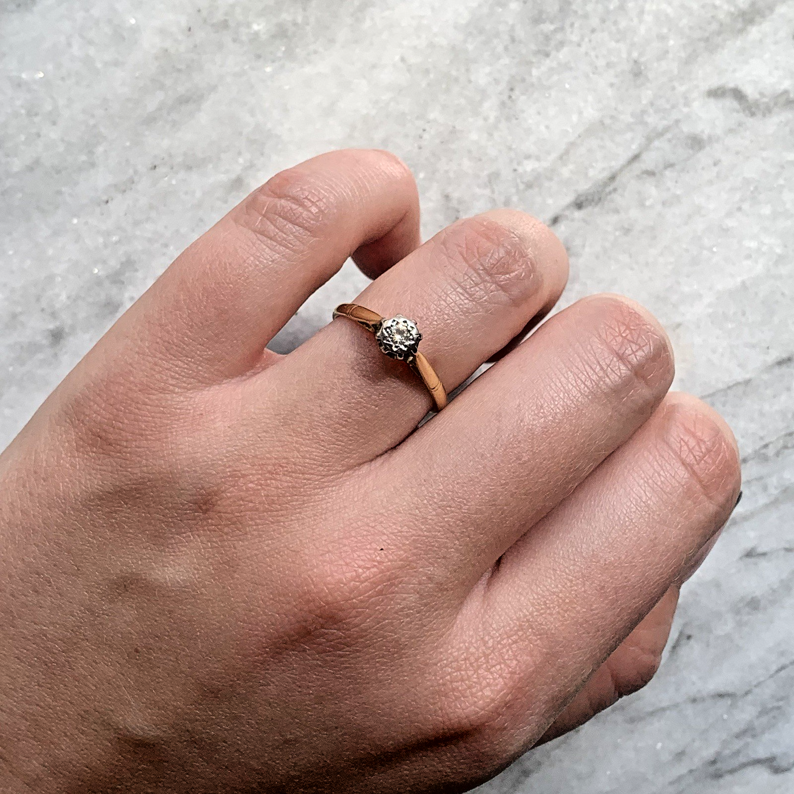 18 ct Gold Diamond Platinum Set Antique Ring 18ct 750 Yellow Gold - Size M 1/2