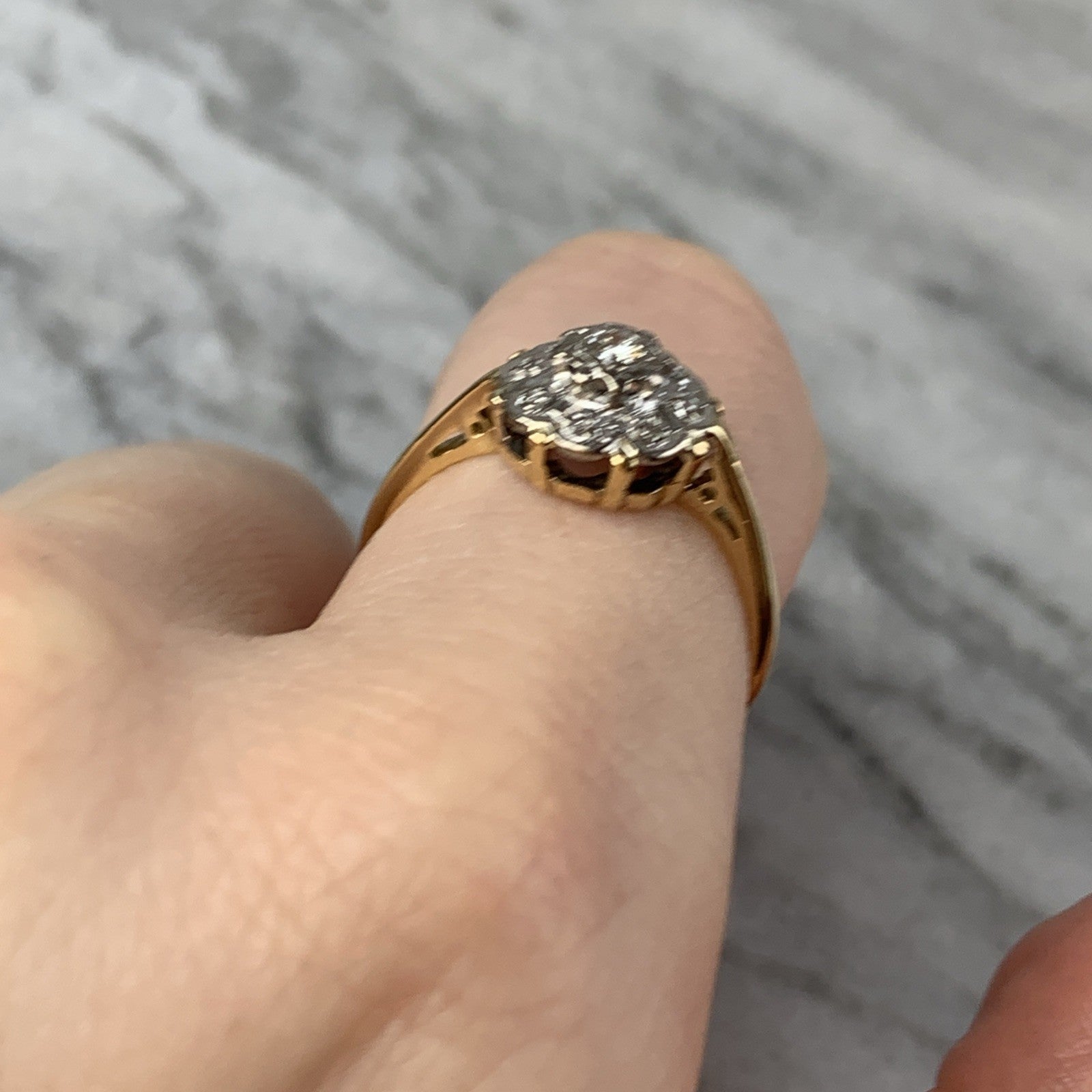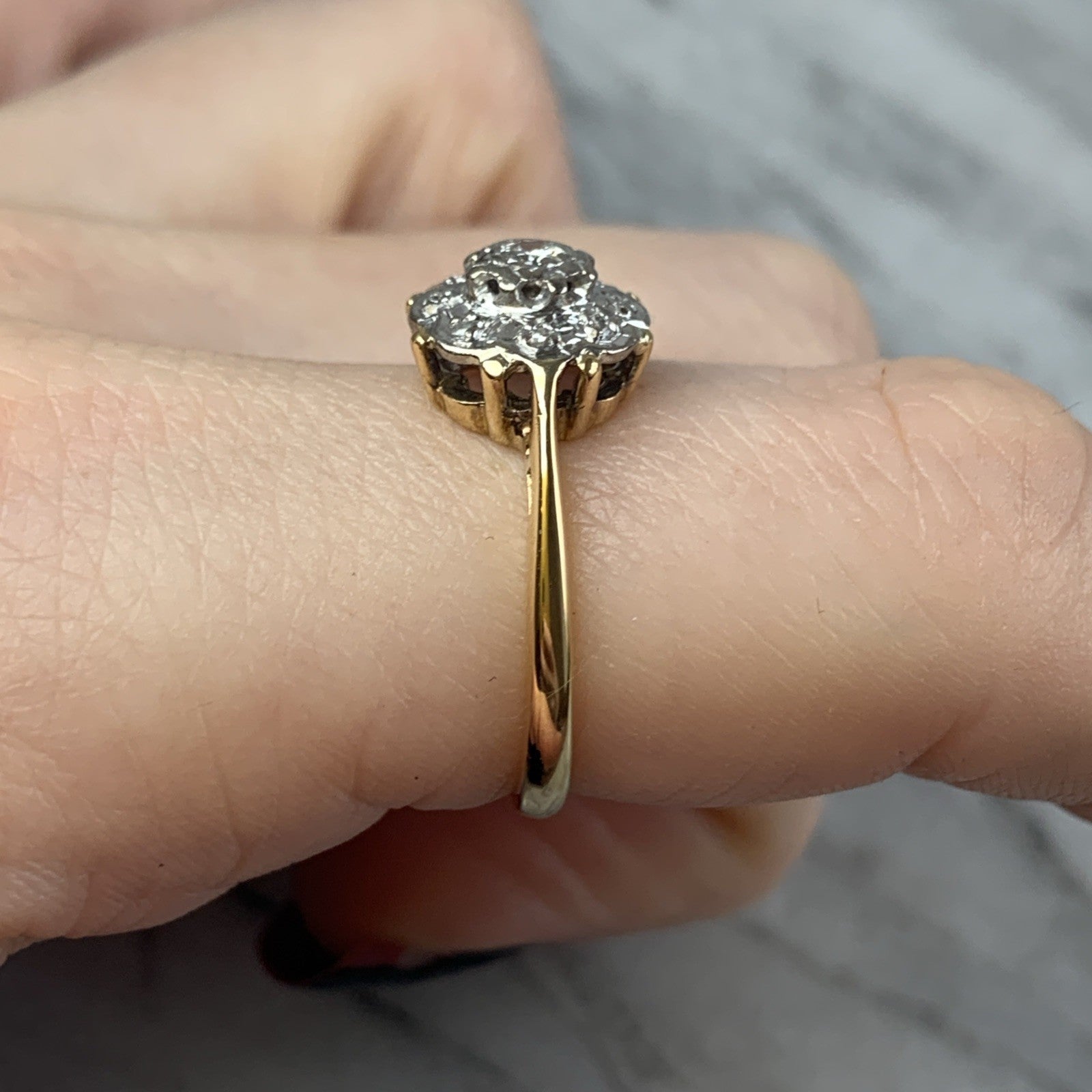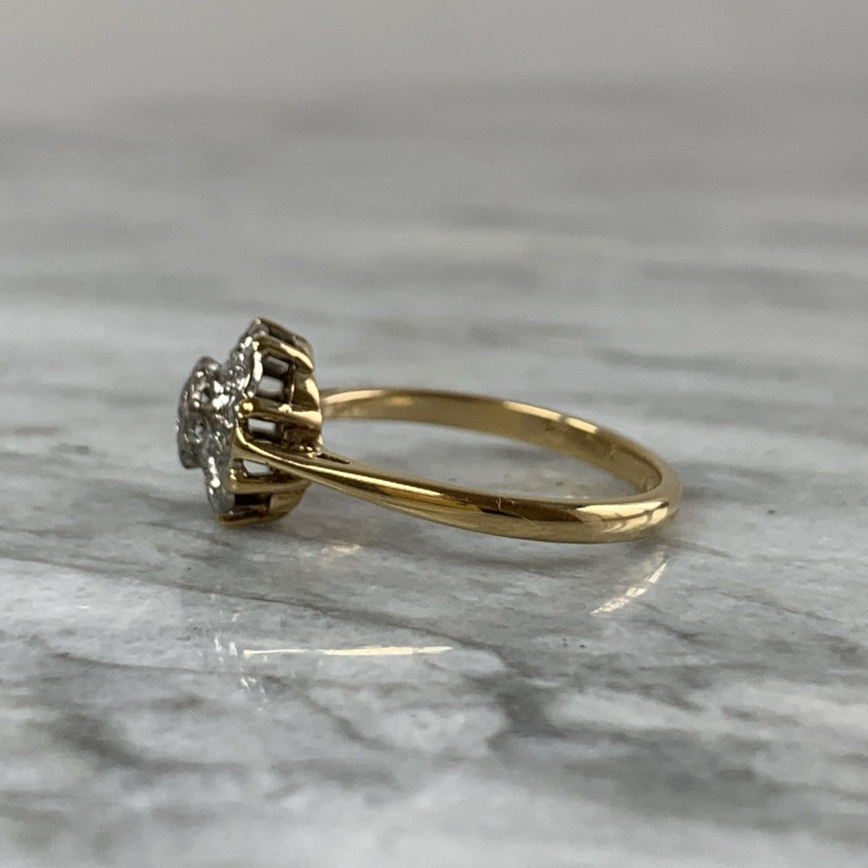 Diamond Illusion Set Floral Cluster Ring 18ct 750 Yellow Gold - Size N