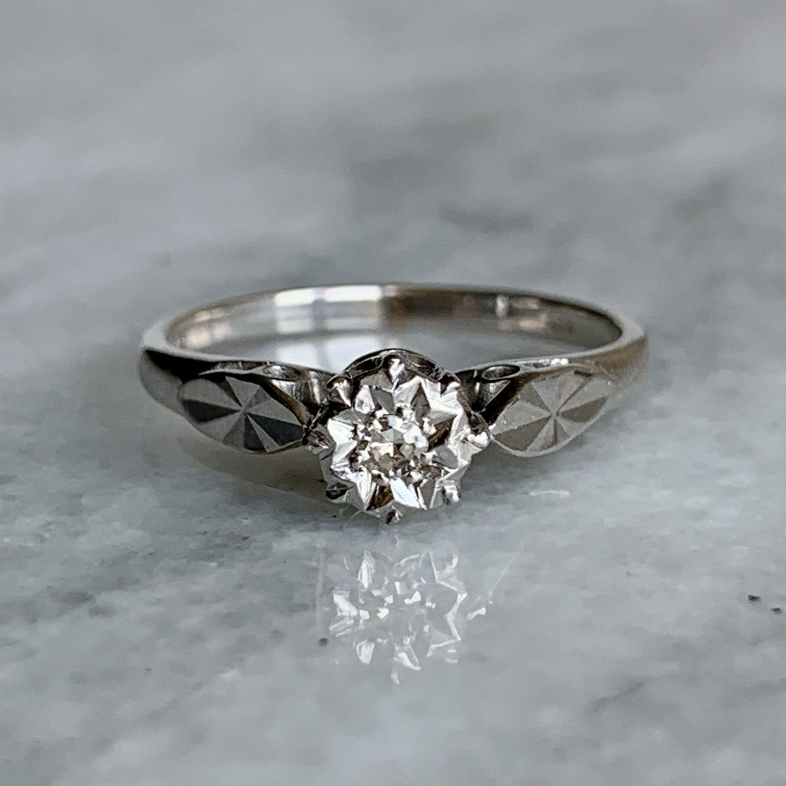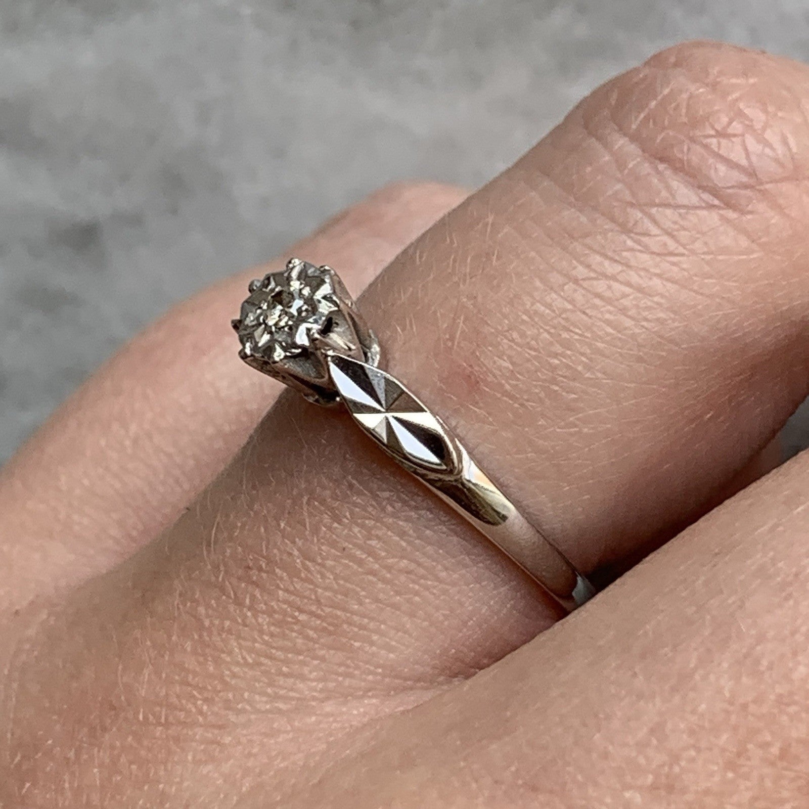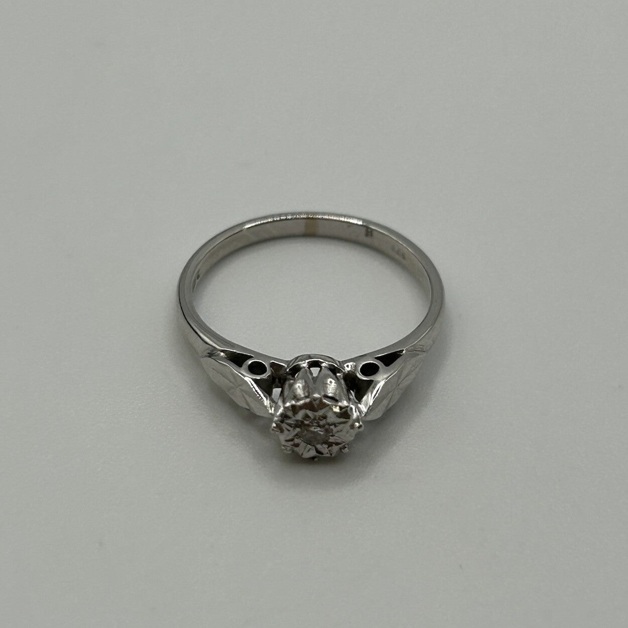 Diamond Illusion Set Textured Shoulder Ring 18ct 18k White Gold - Size L 1/2