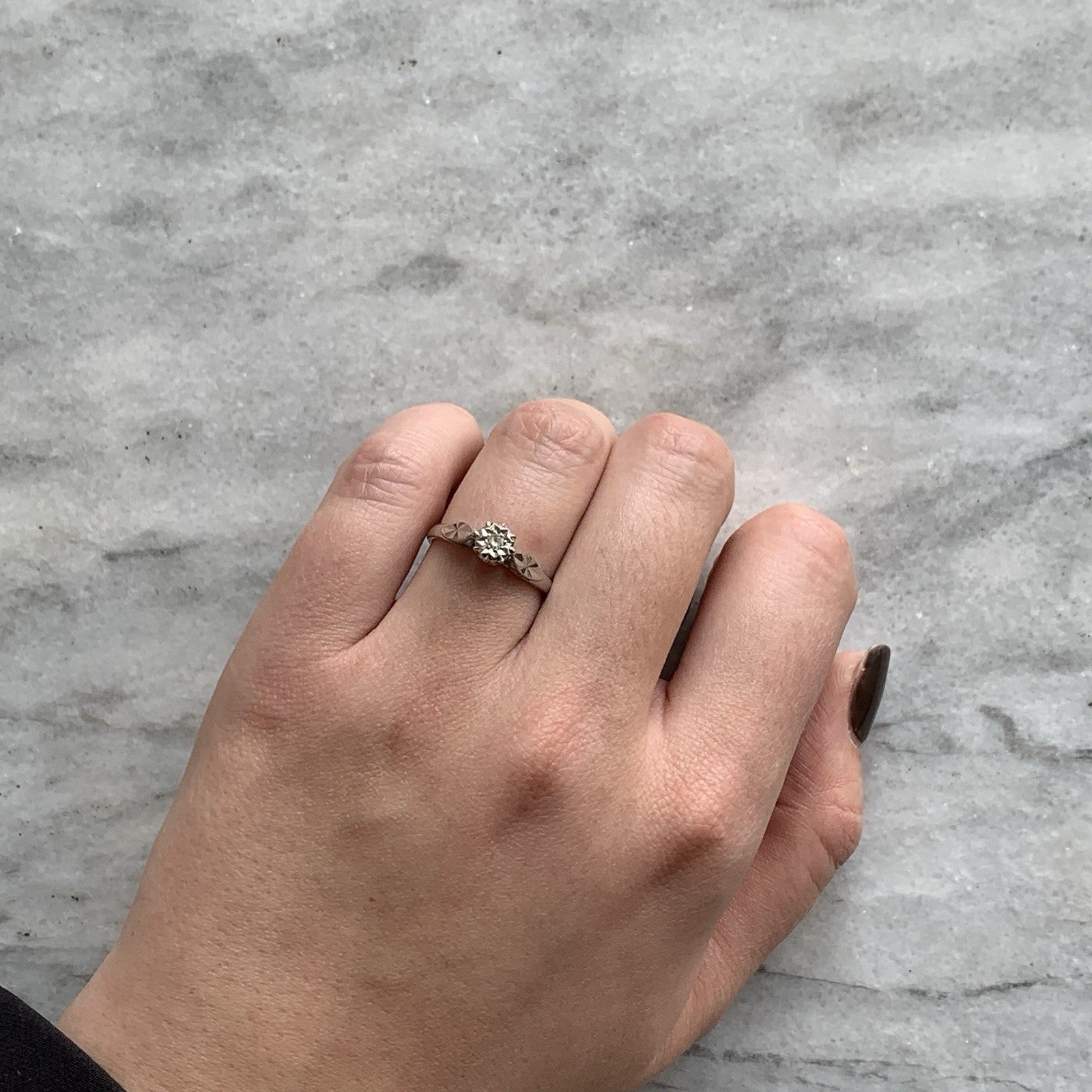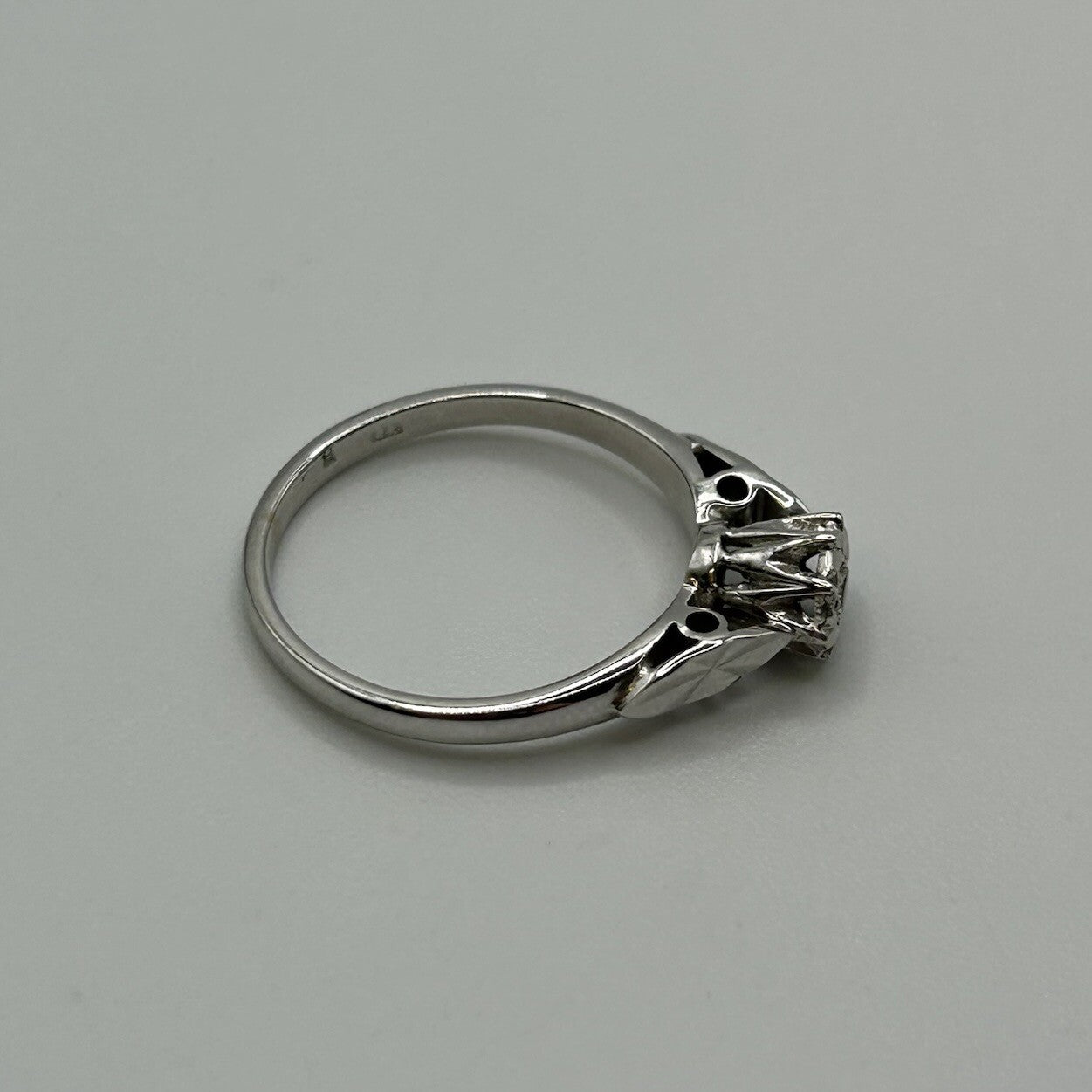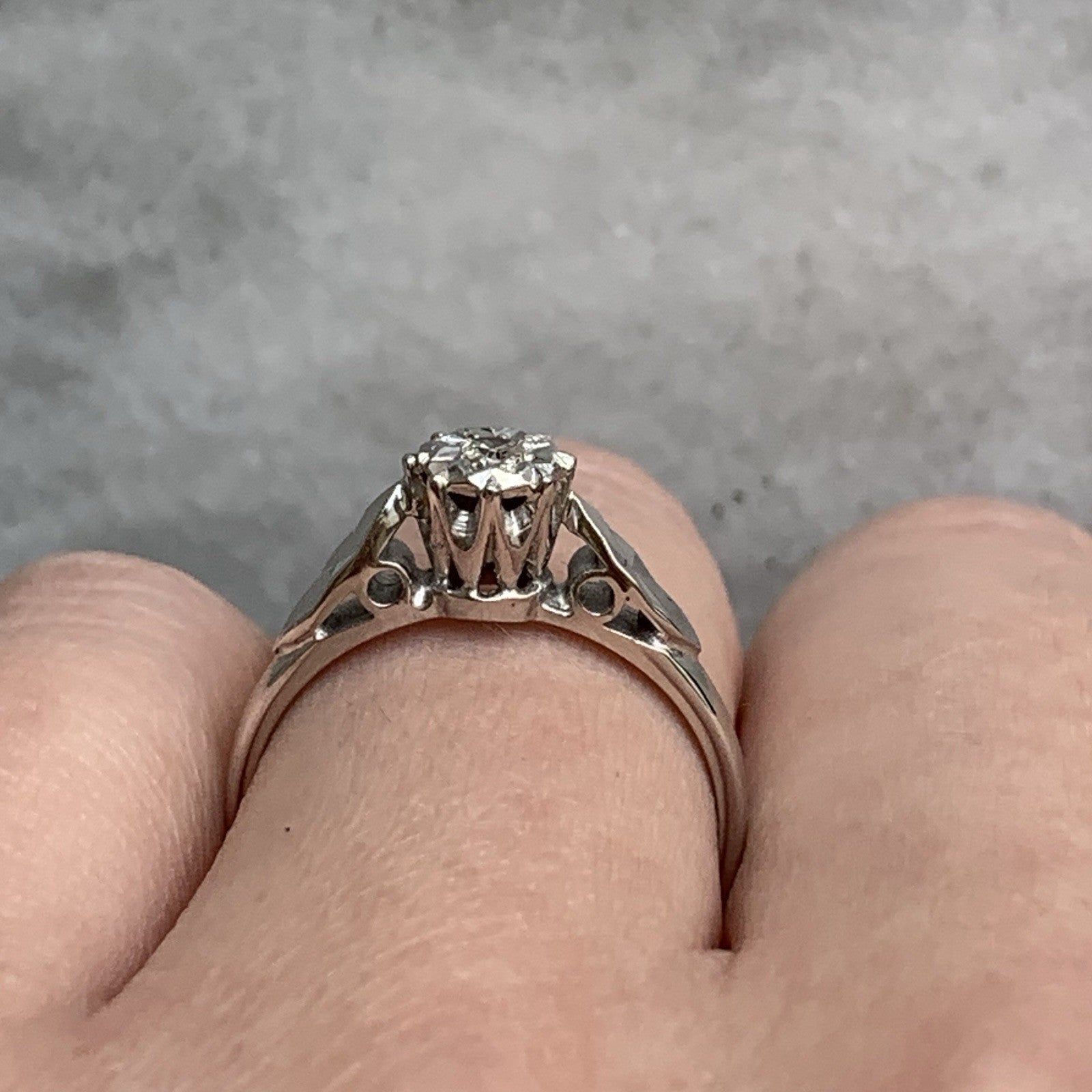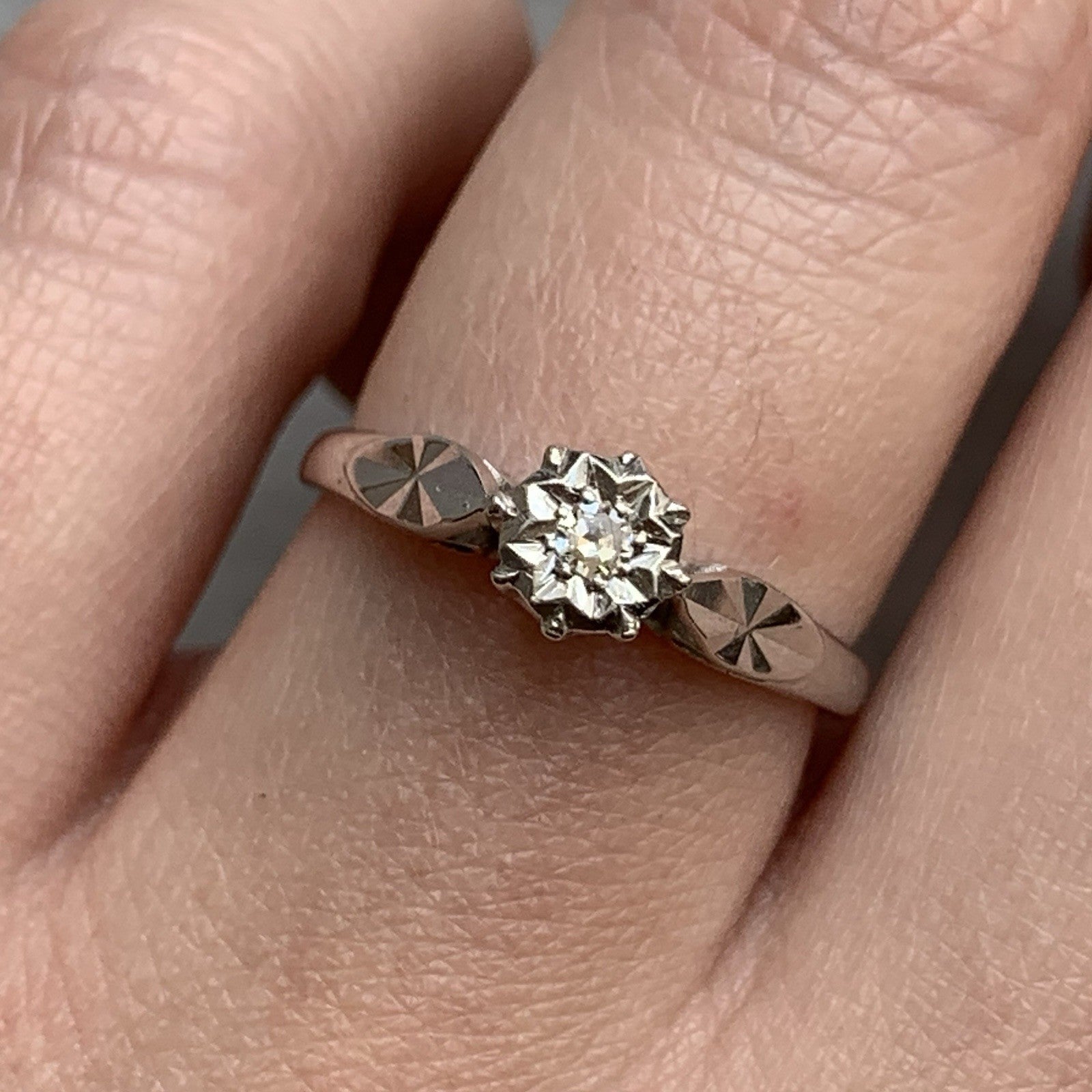 Diamond Illusion Set Textured Shoulder Ring 18ct 18k White Gold - Size L 1/2