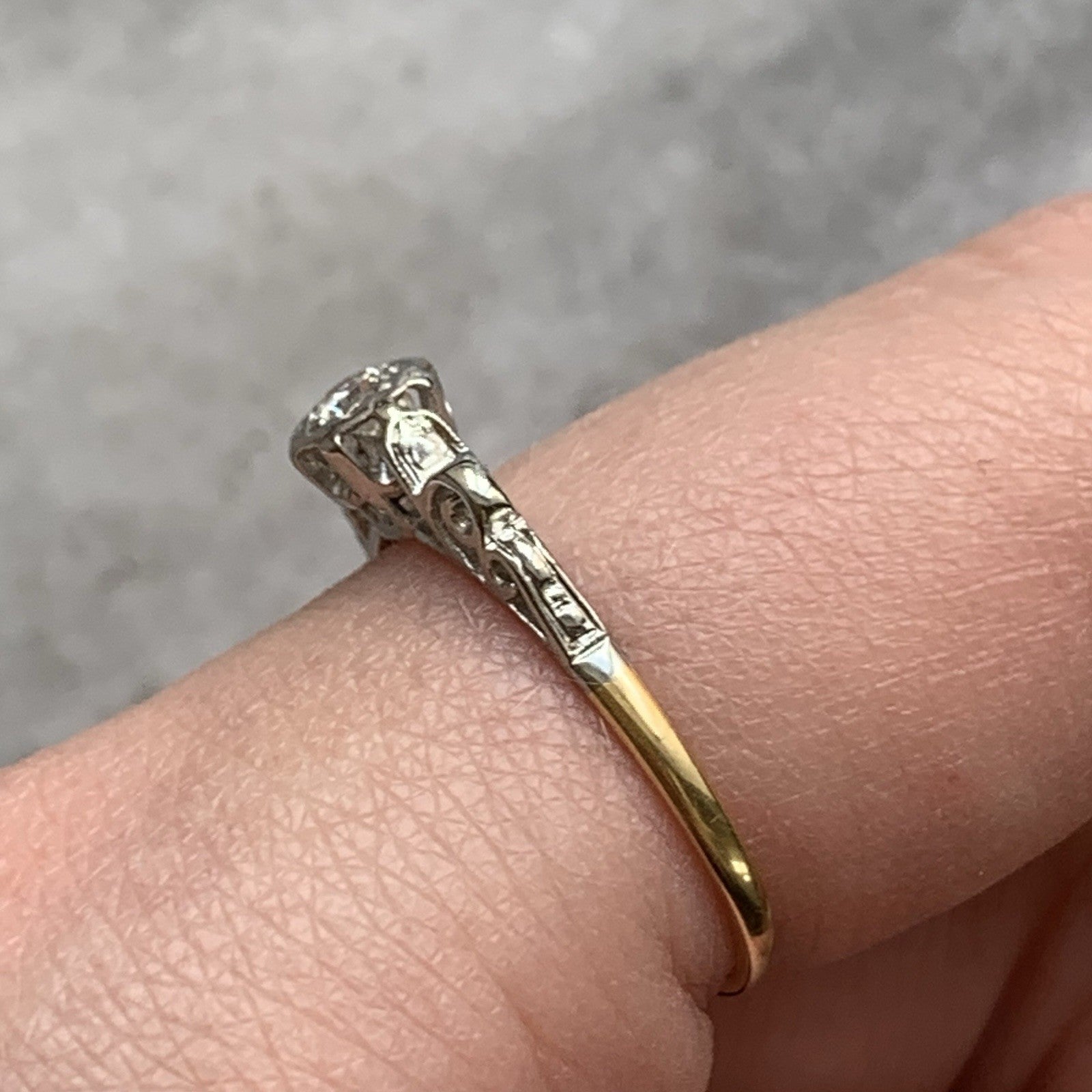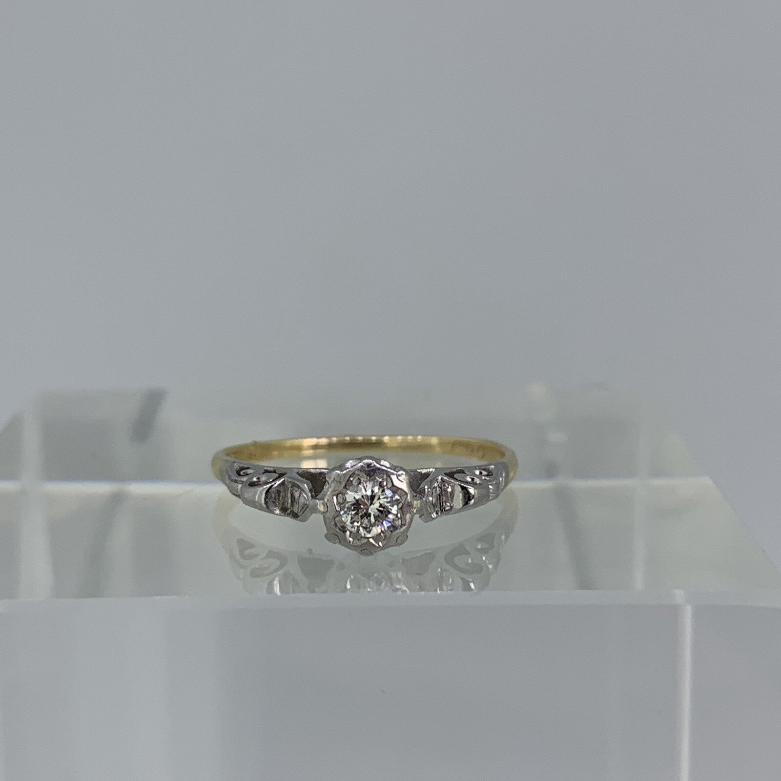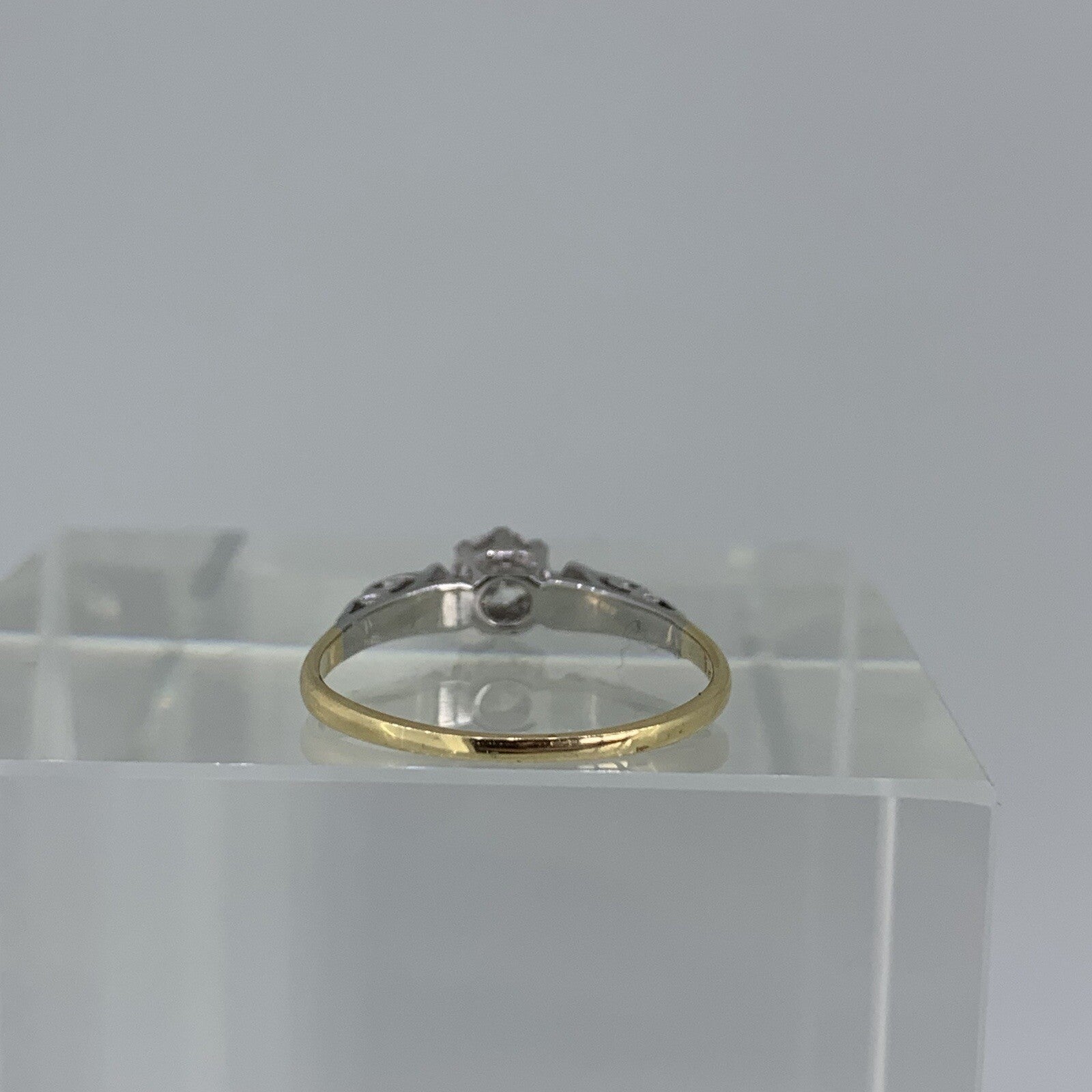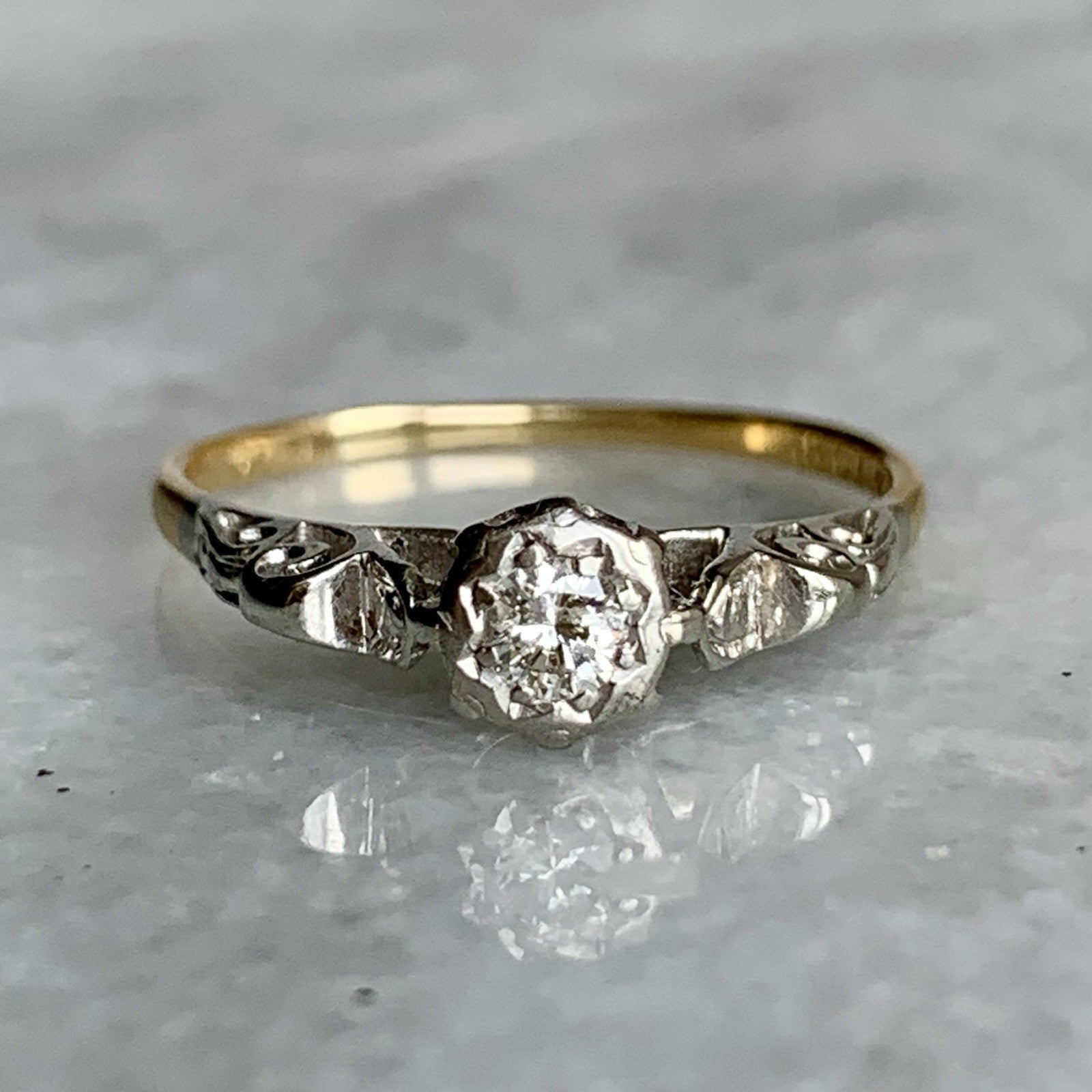A beautiful vintage ring featuring a natural diamond in a platinum setting that resembles a tiara. Diamond approx. 0.17ct.