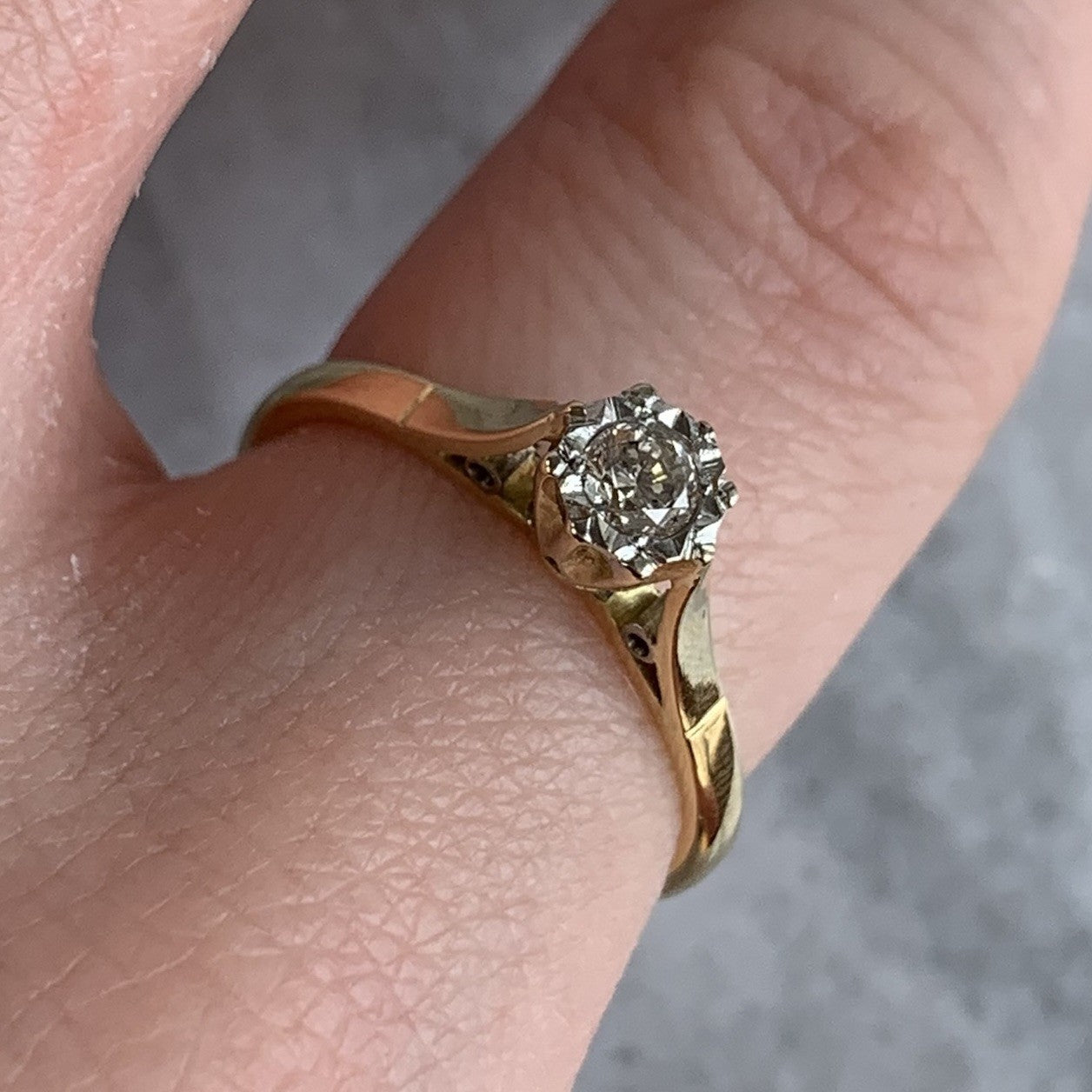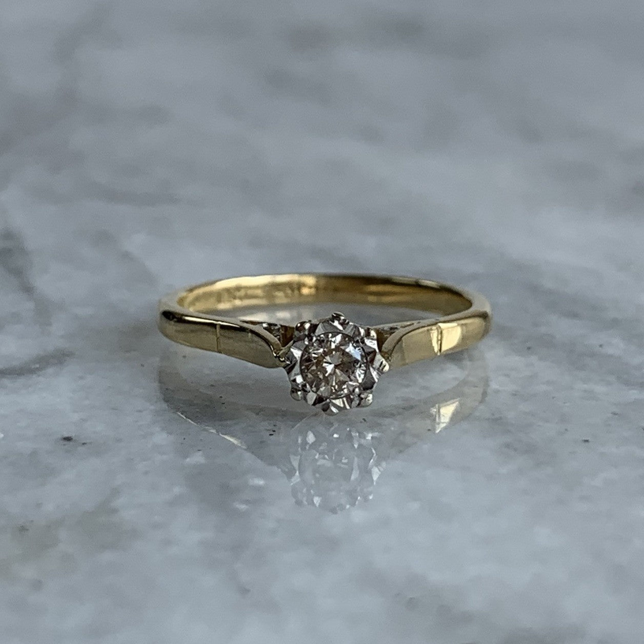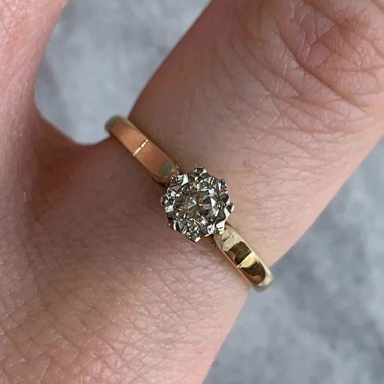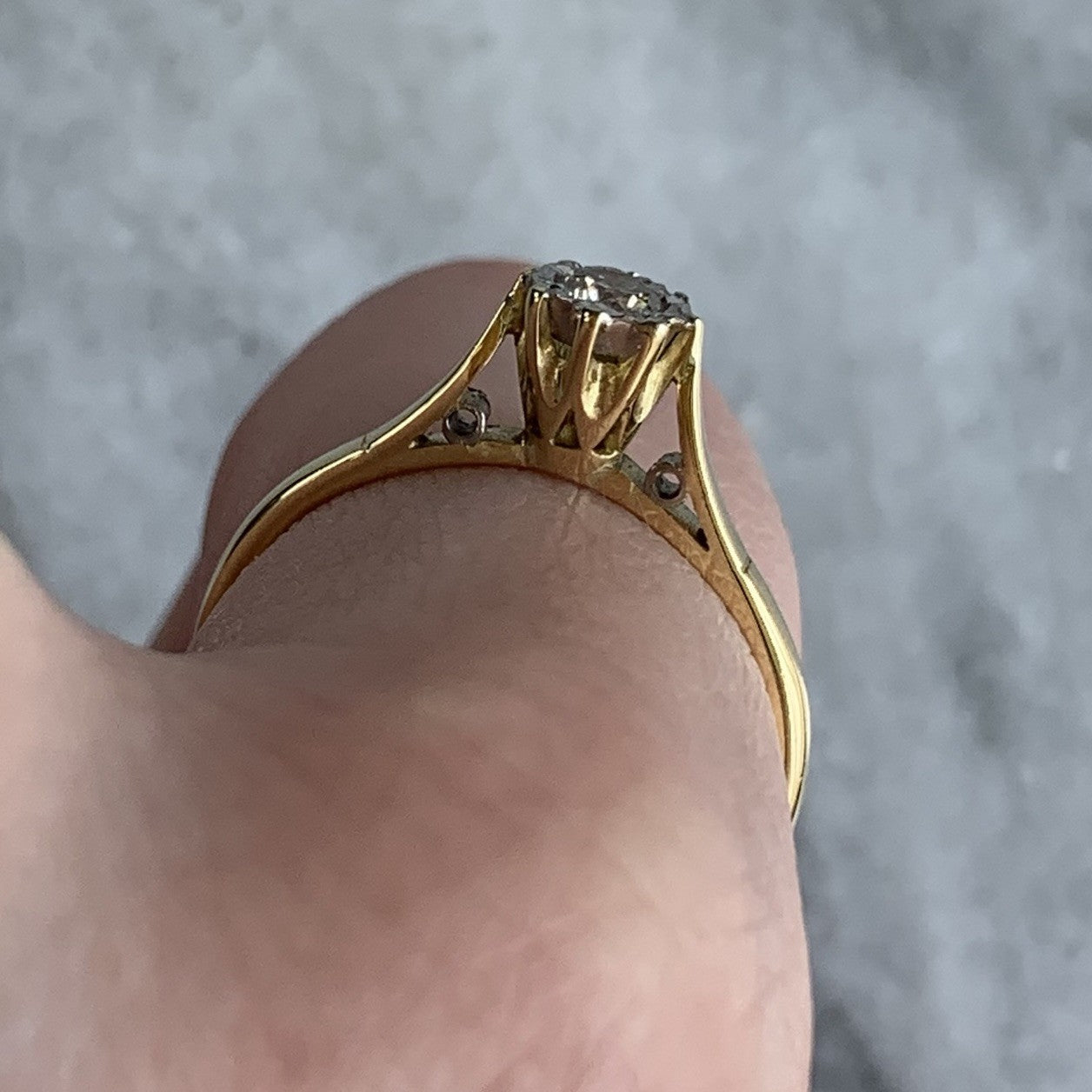 Diamond Solitaire Platinum Set Ring 18ct 750 Yellow Gold - Size N
