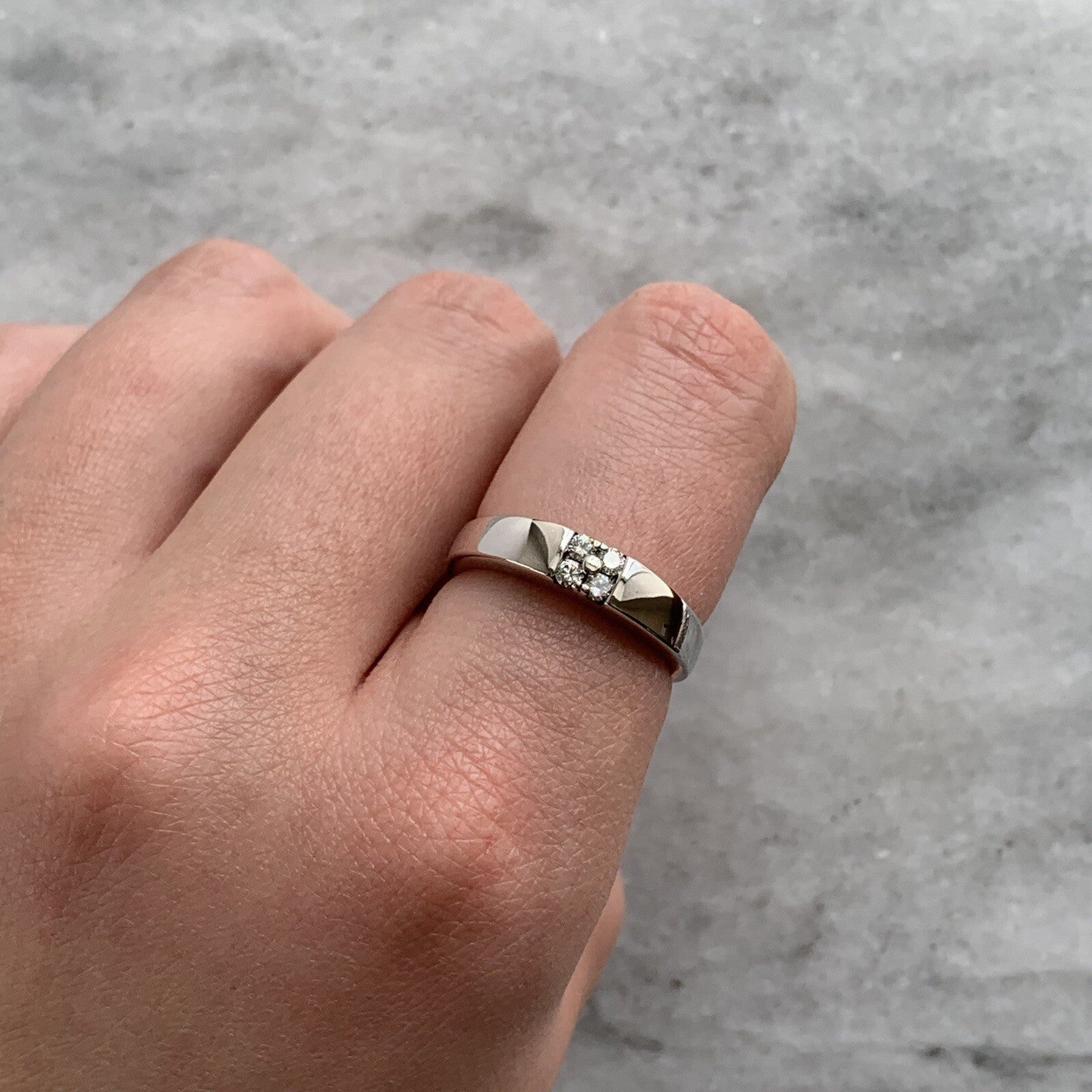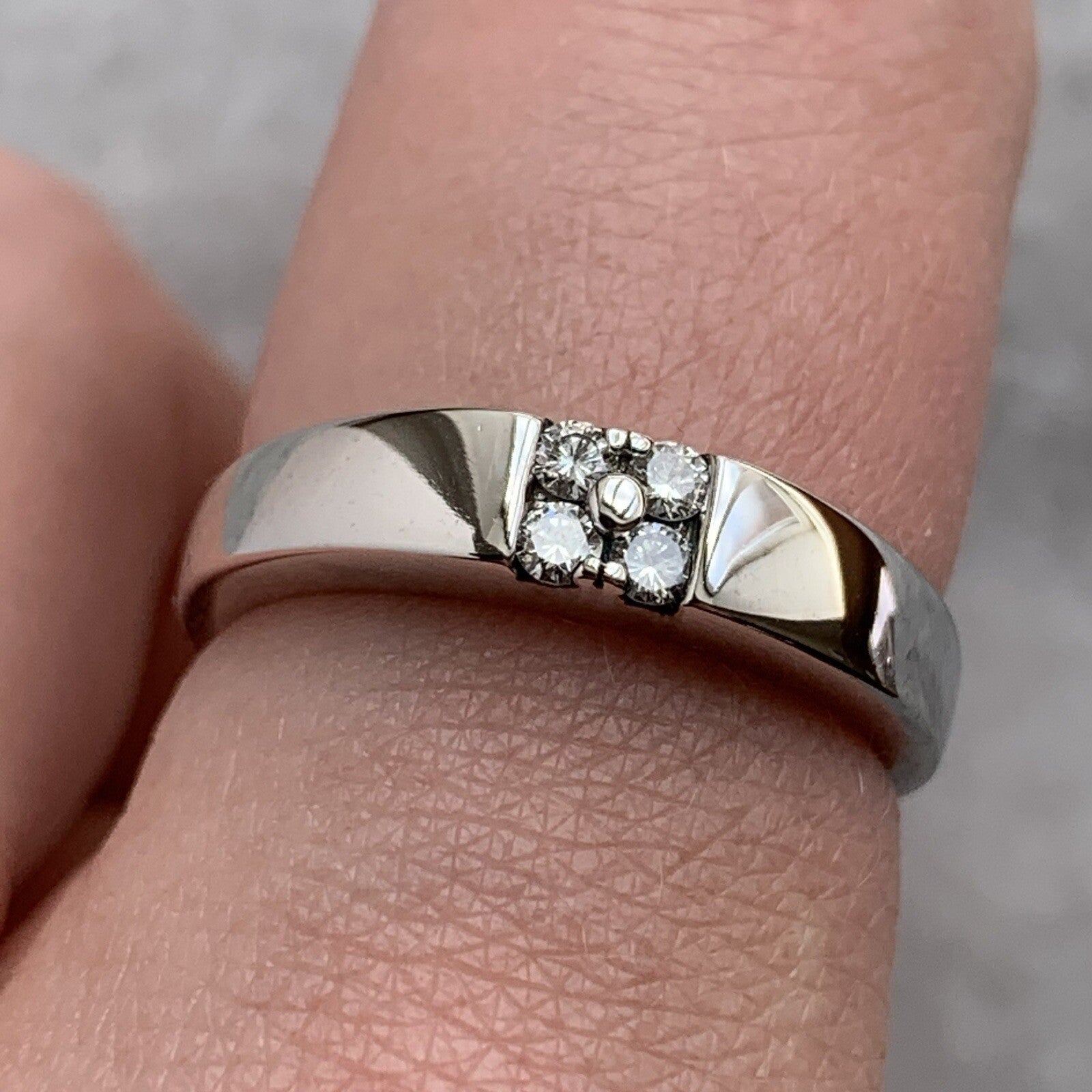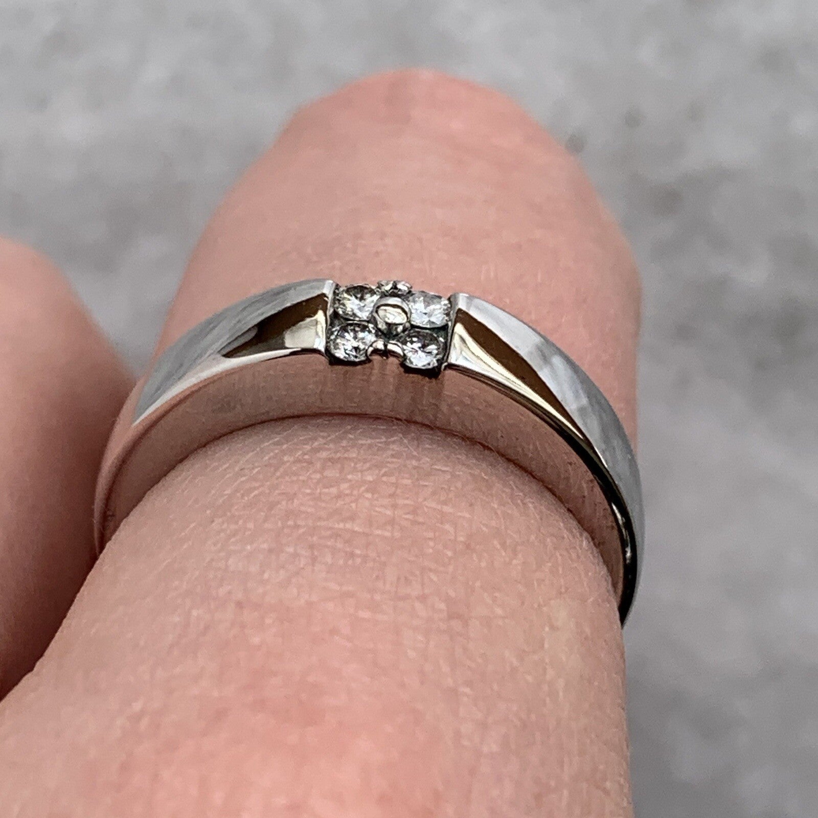 Diamond Square Cluster Band Ring 18ct 18K White Gold - Size L 1/2