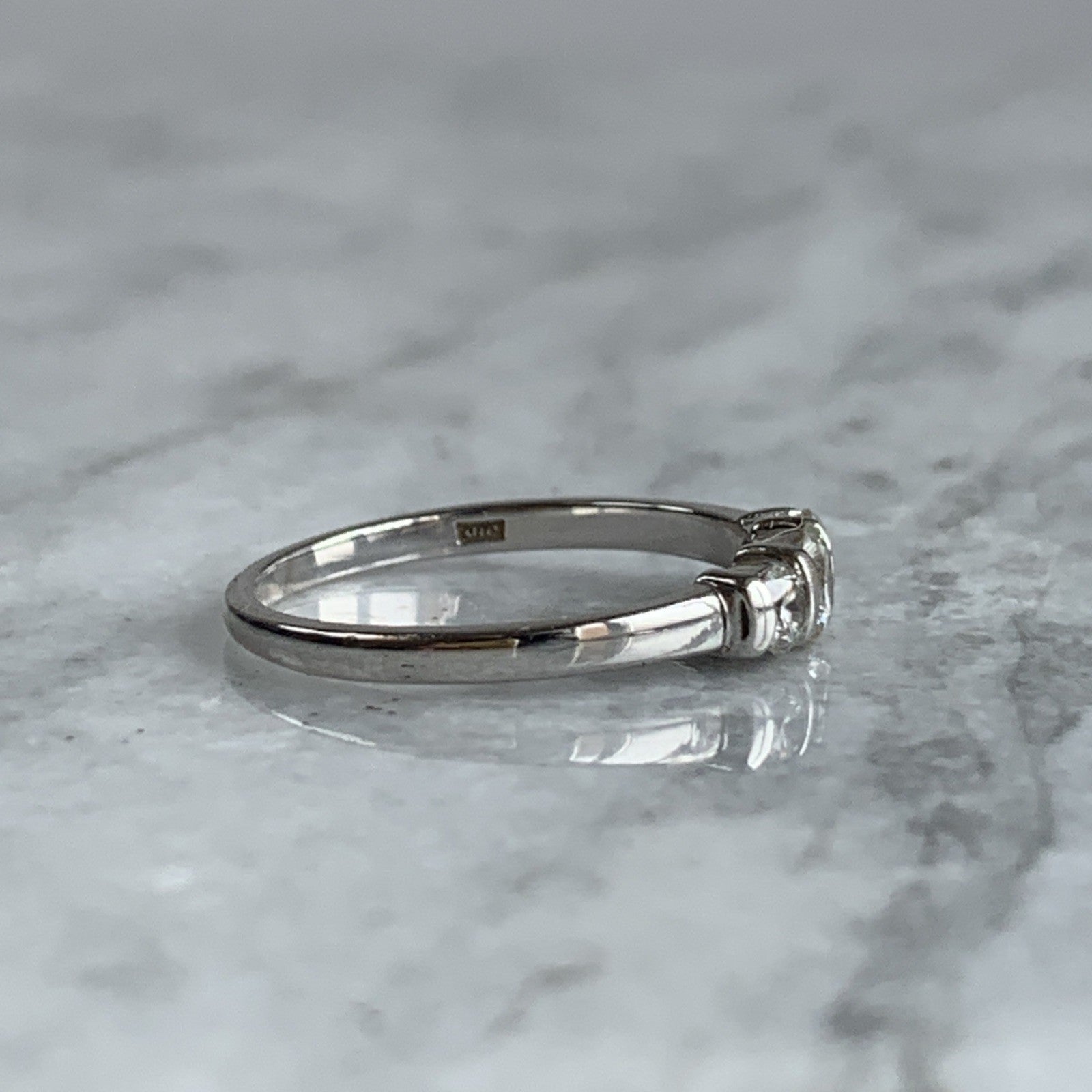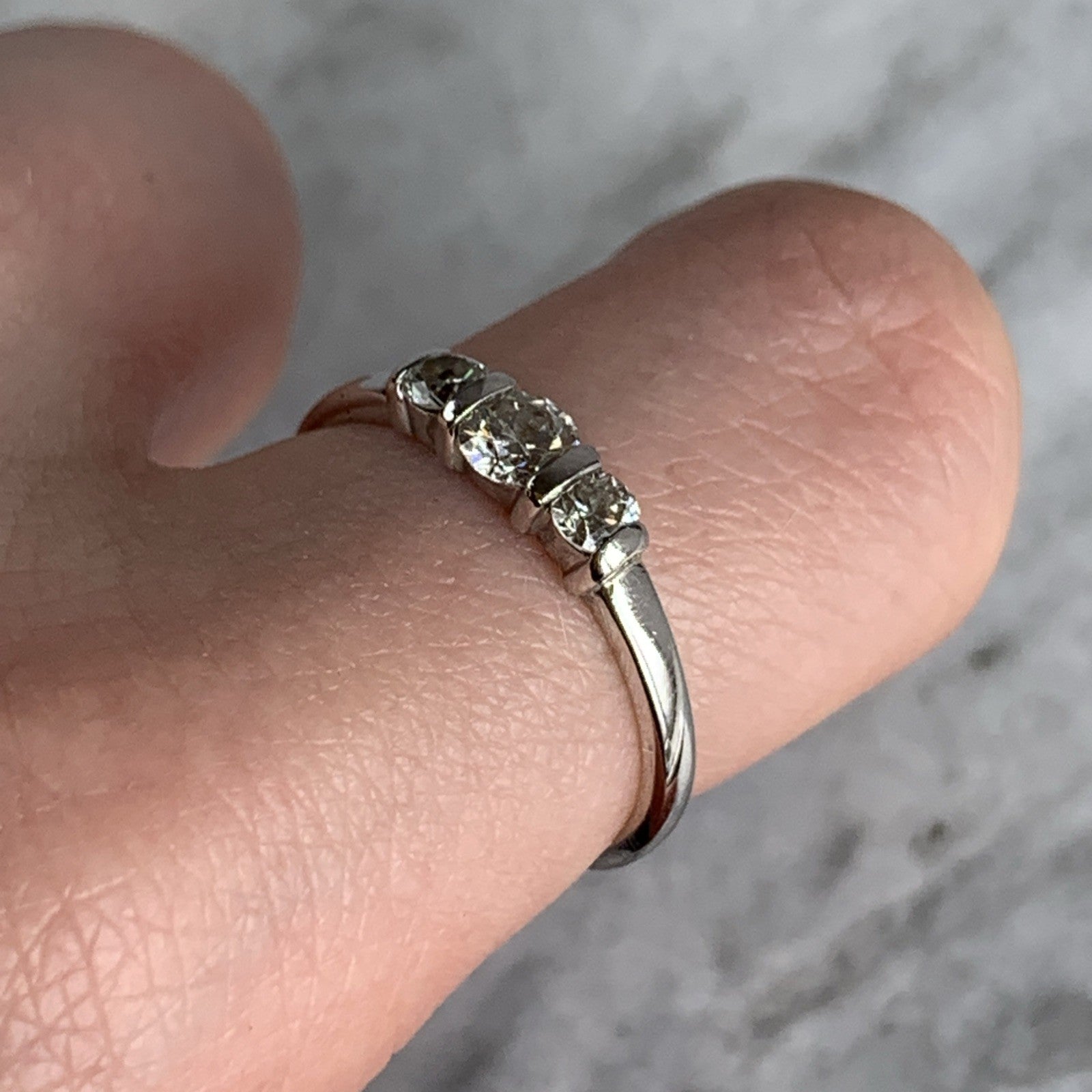 Diamond Trilogy Bar Set Ring 18ct 750 White Gold - Size O 1/2