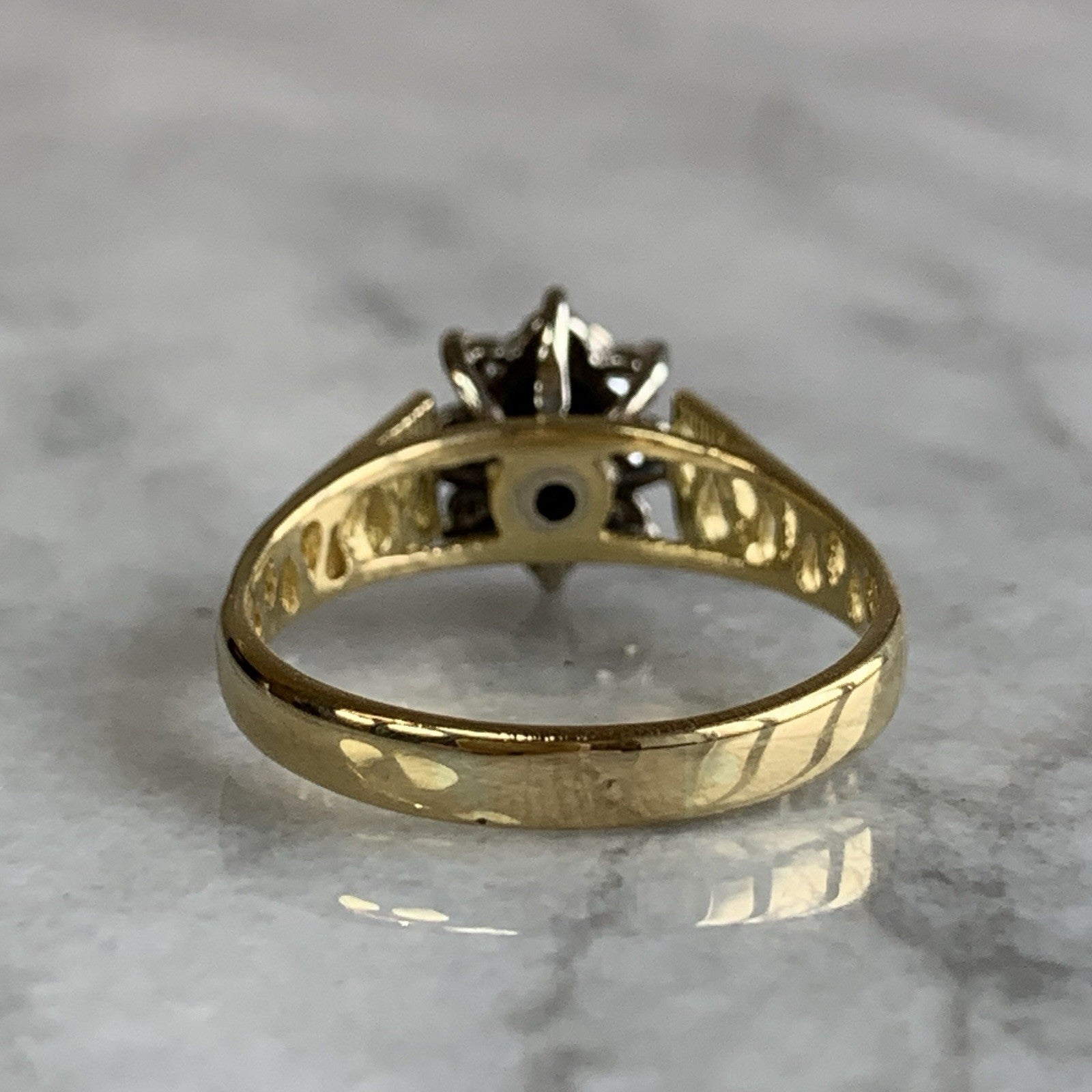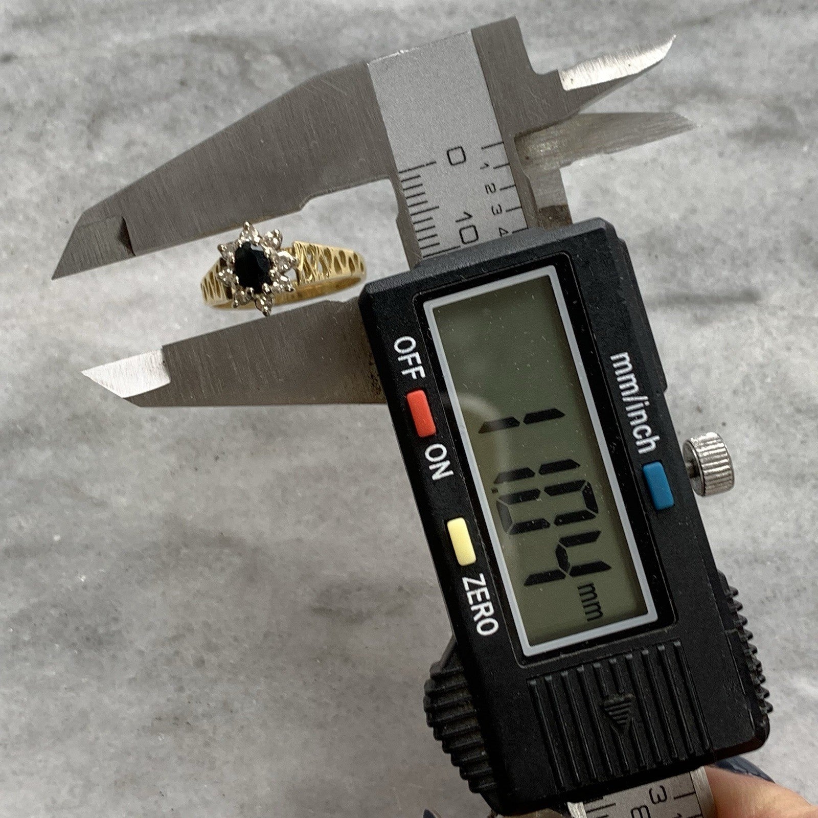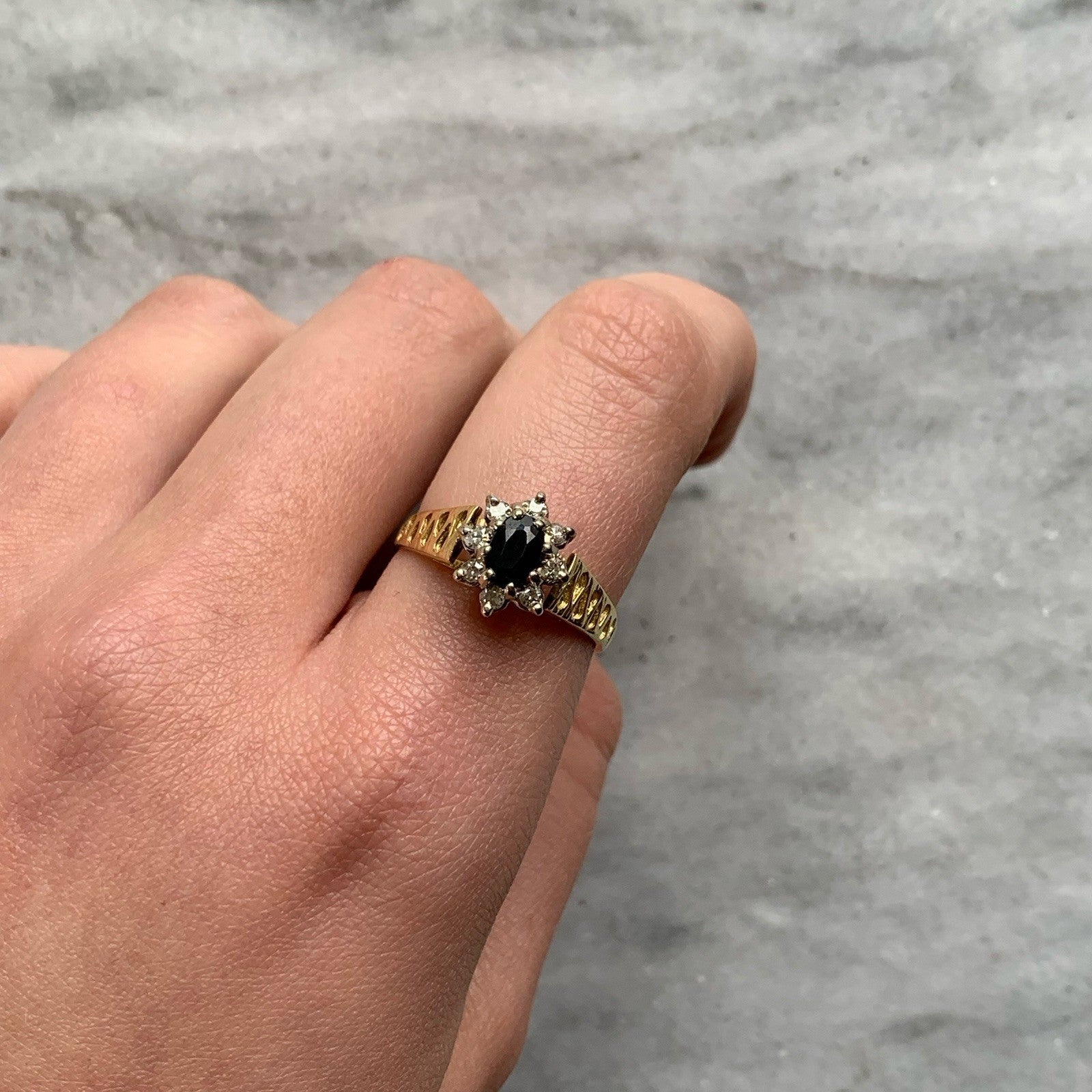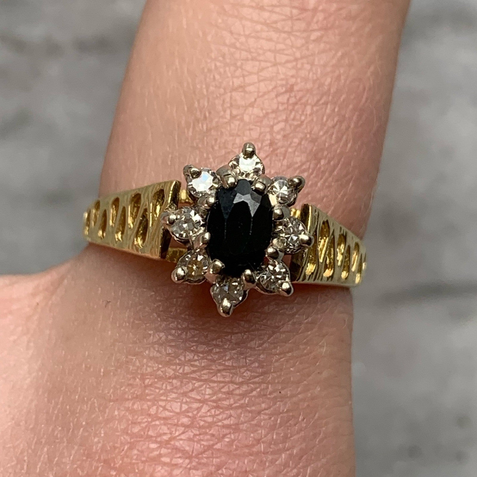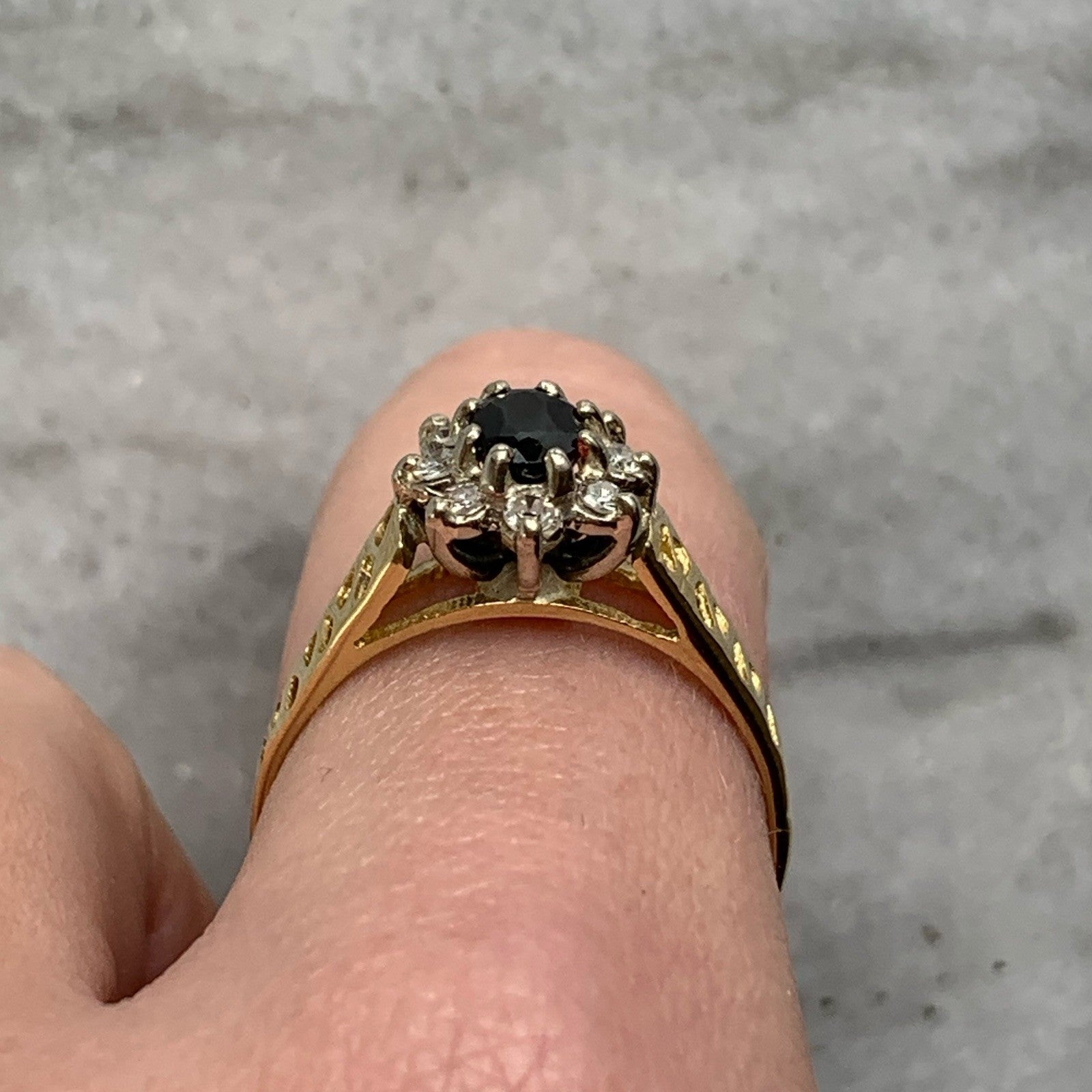 Sapphire & Diamond Halo Shoulder Detail Ring 18ct 18k Yellow Gold- Size Q 1/2
