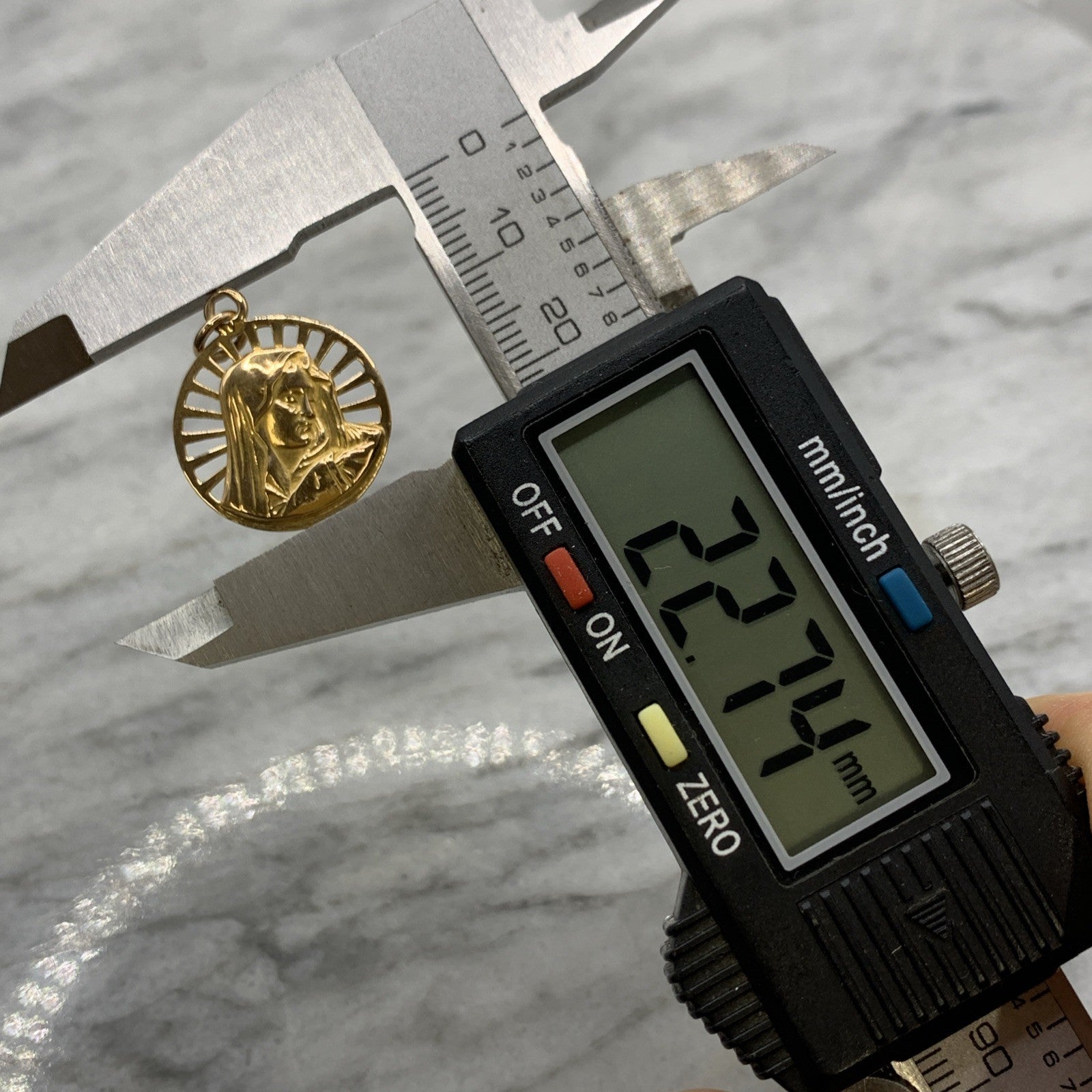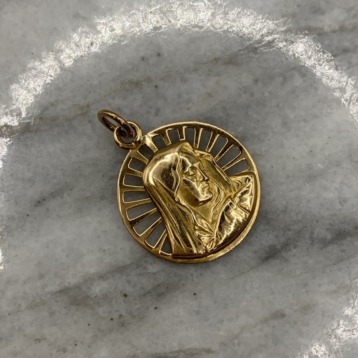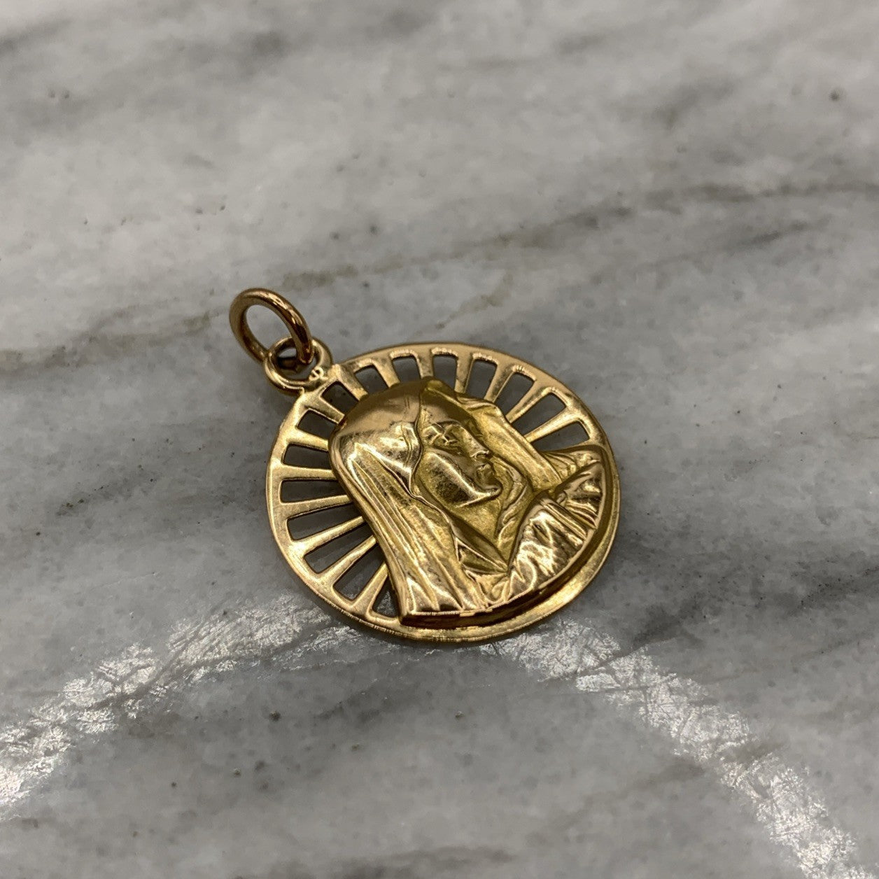 Virgin Mary Round Pendant 18ct 18k 750 Yellow Gold