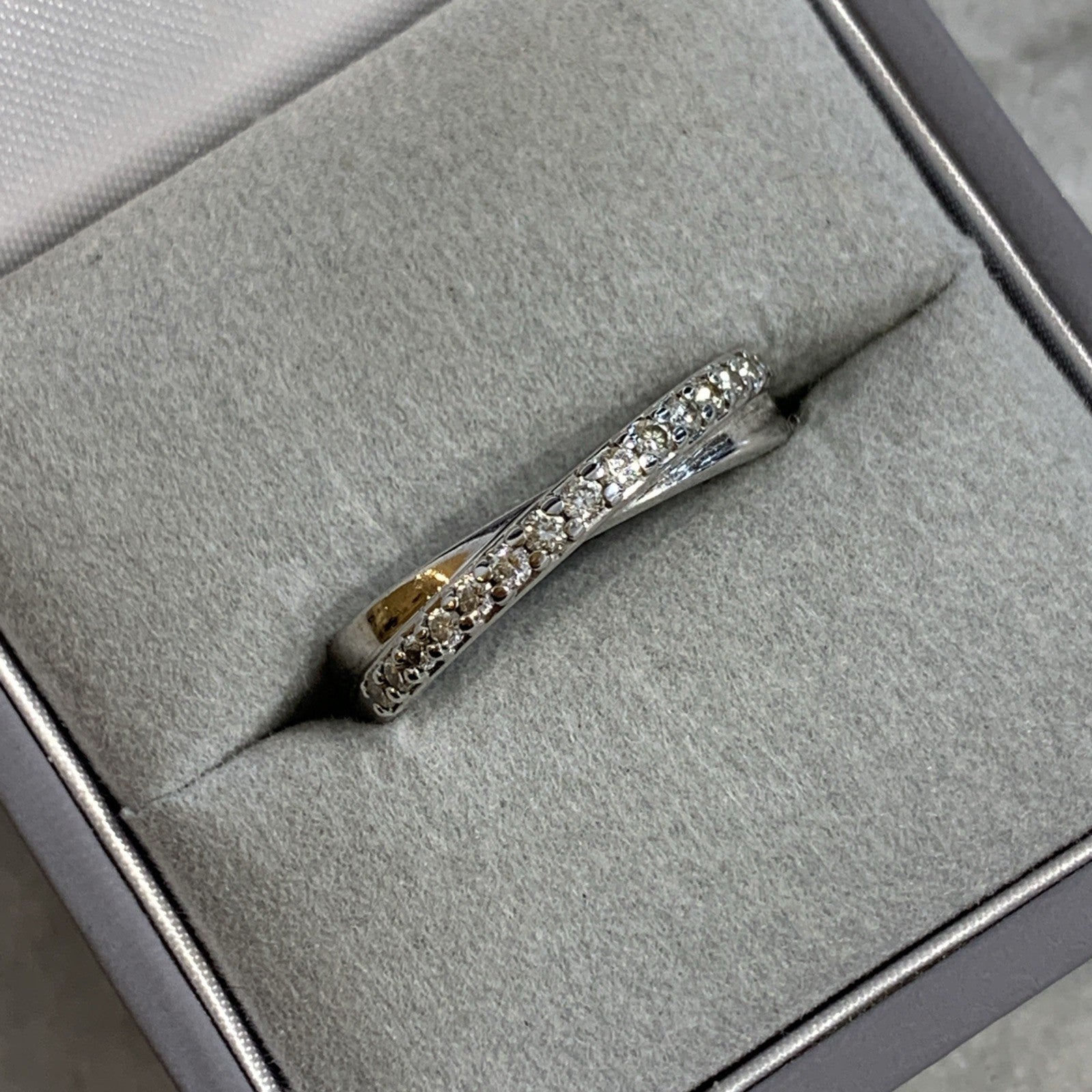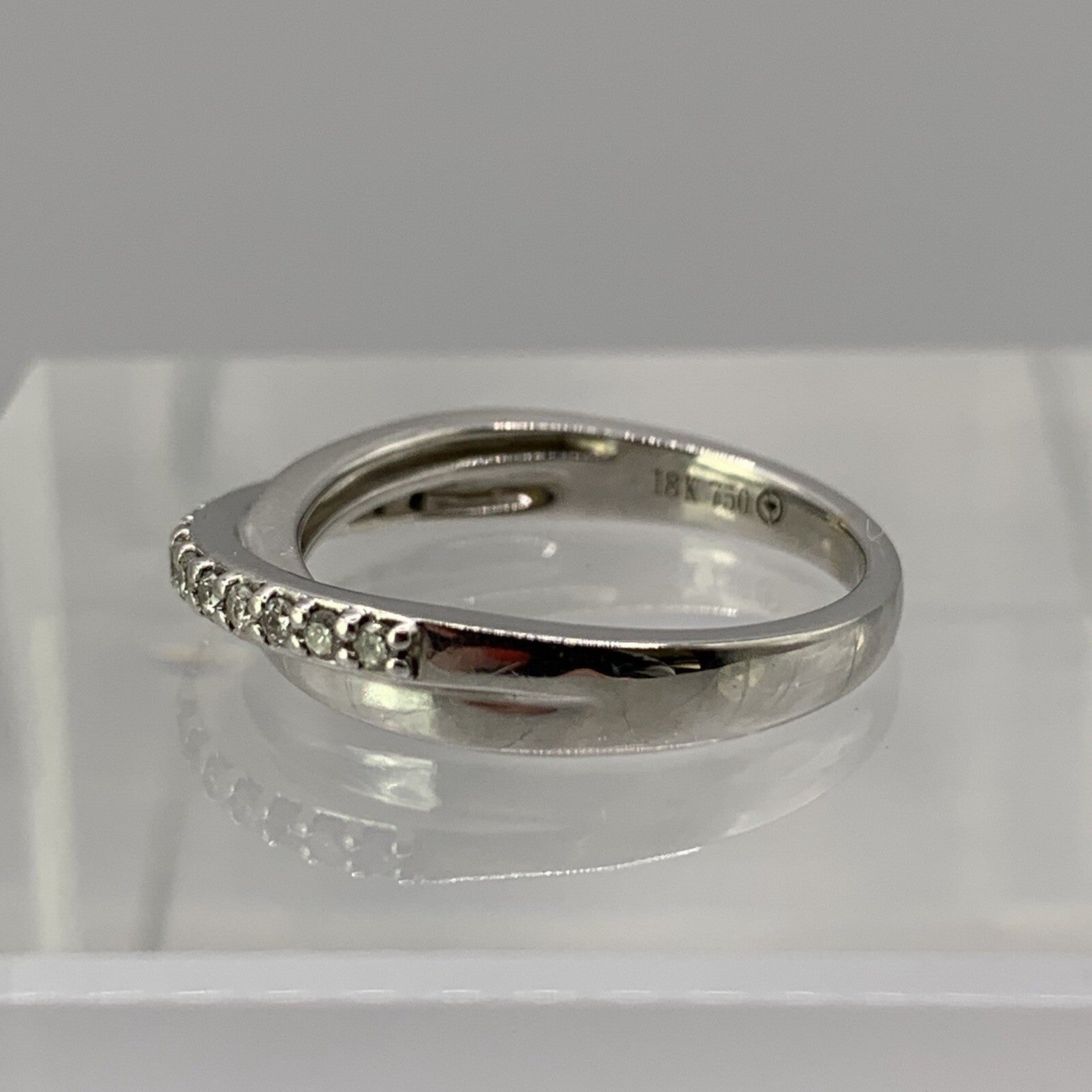18 ct White Gold Diamond Ring .19ct Crossover Band 750 - Size K 1/2