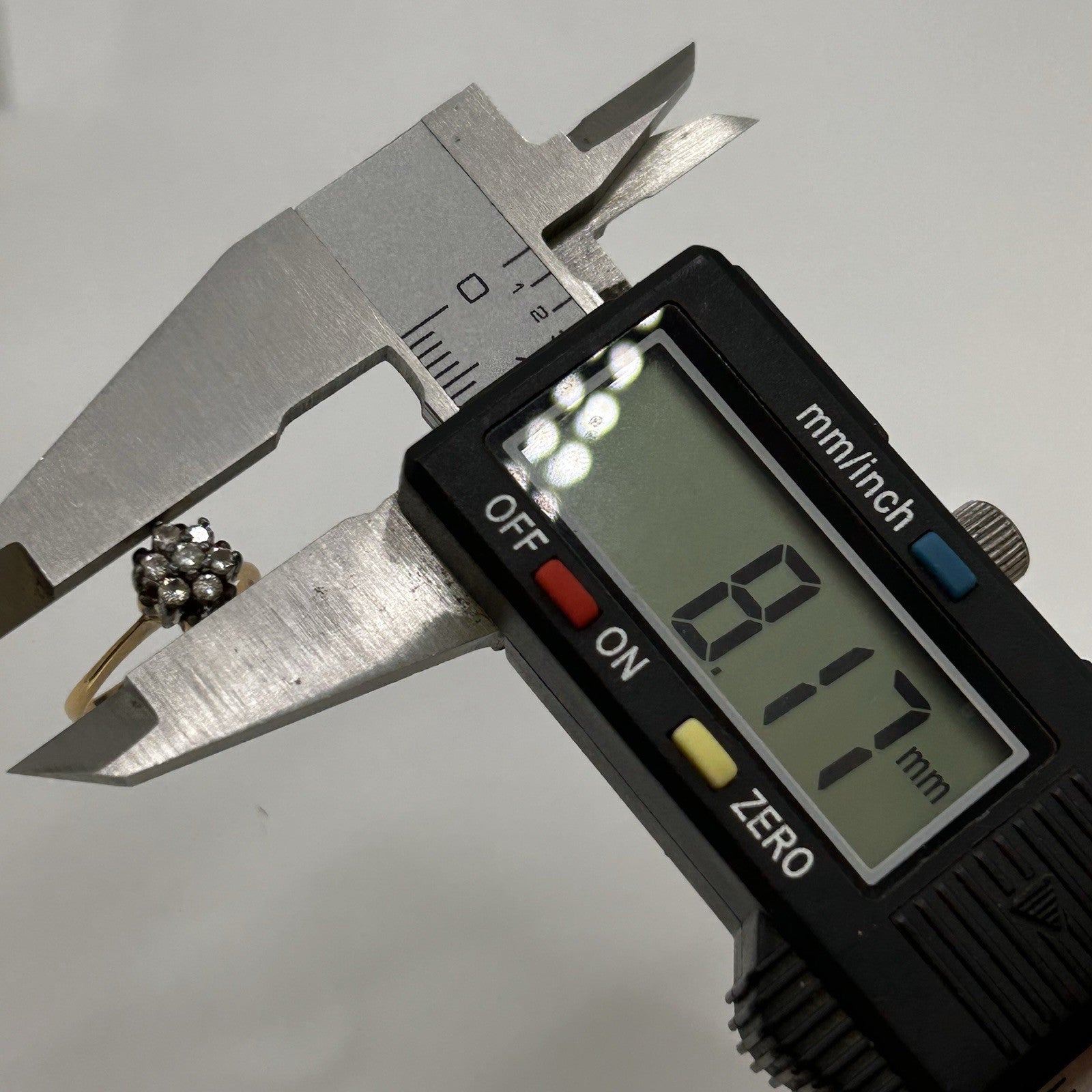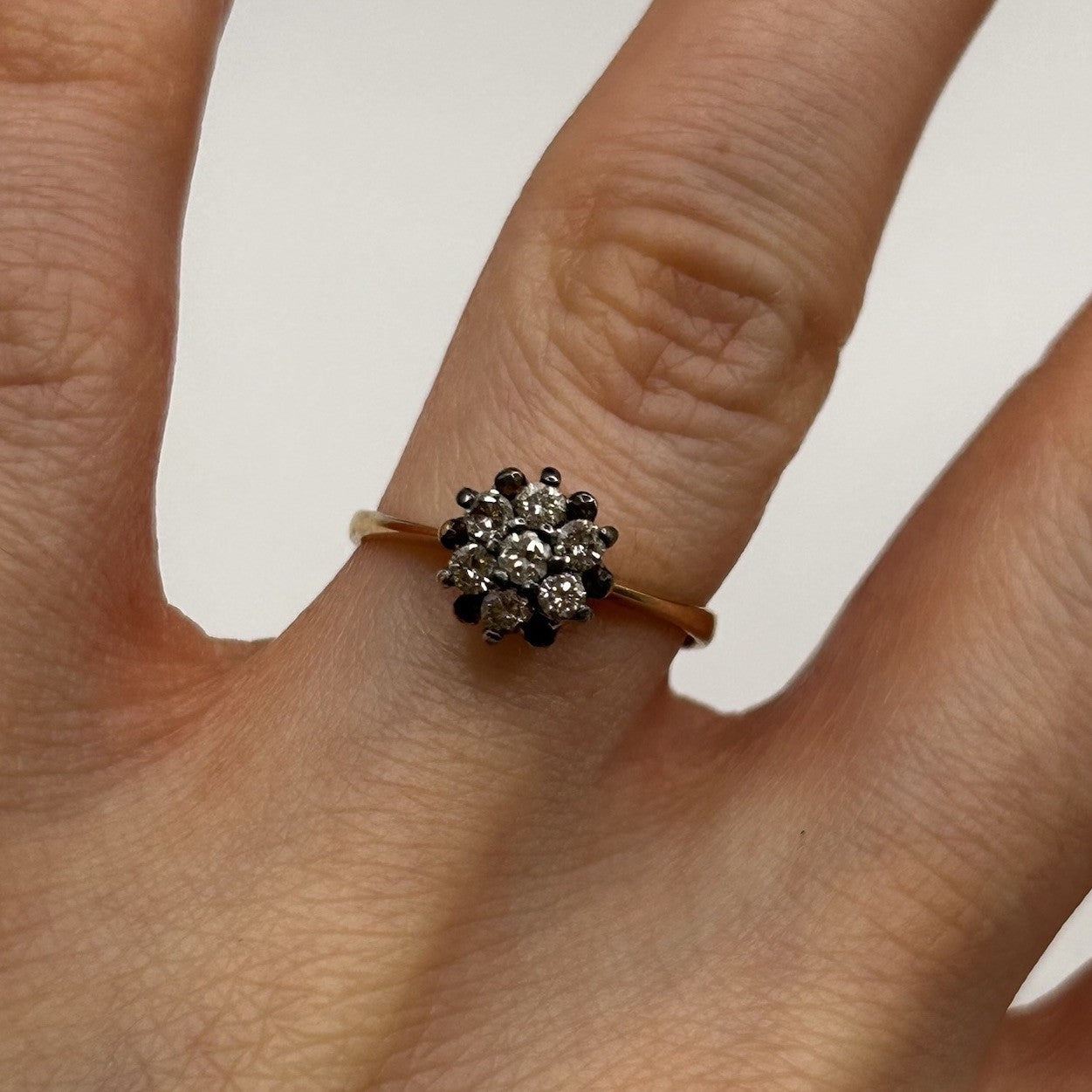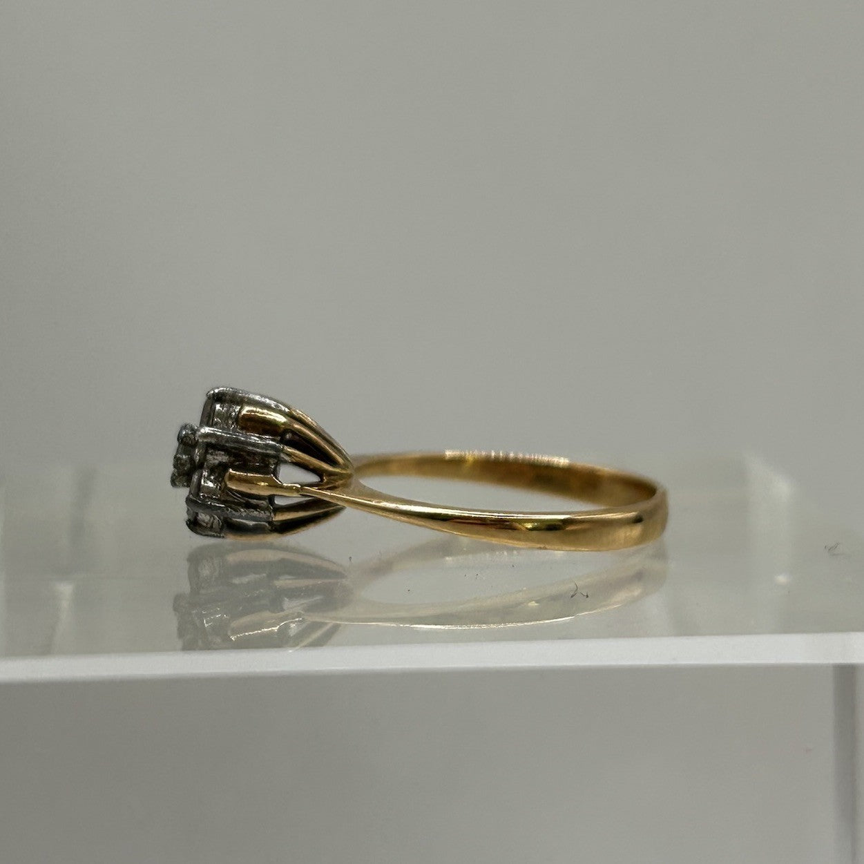 9 ct Gold Antique Diamond Daisy Flower Cluster Ring 9ct 9k Yellow Gold - Size K