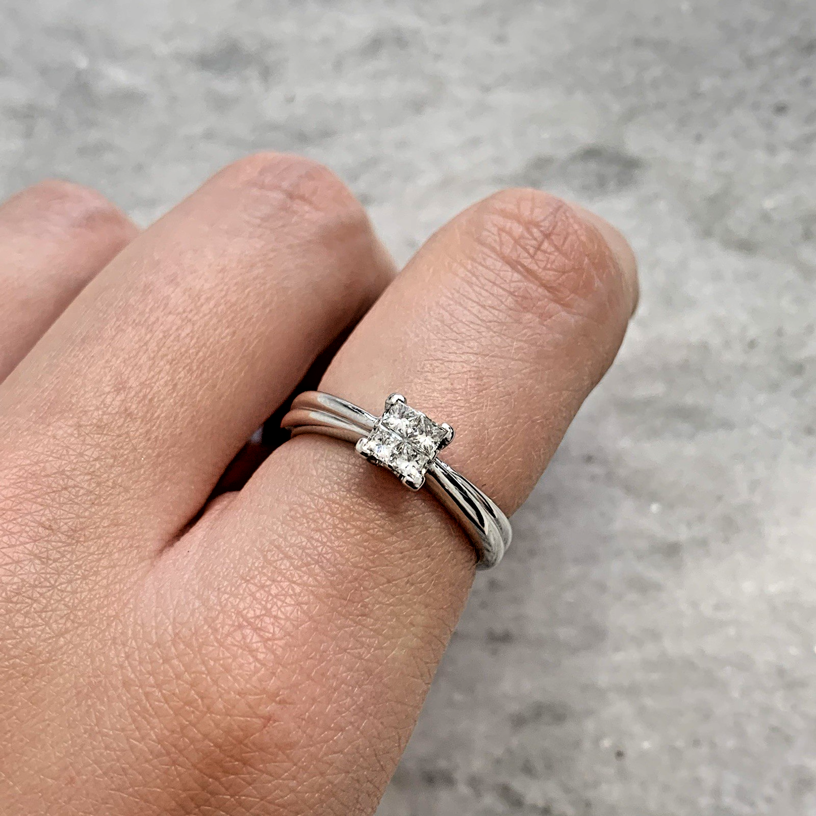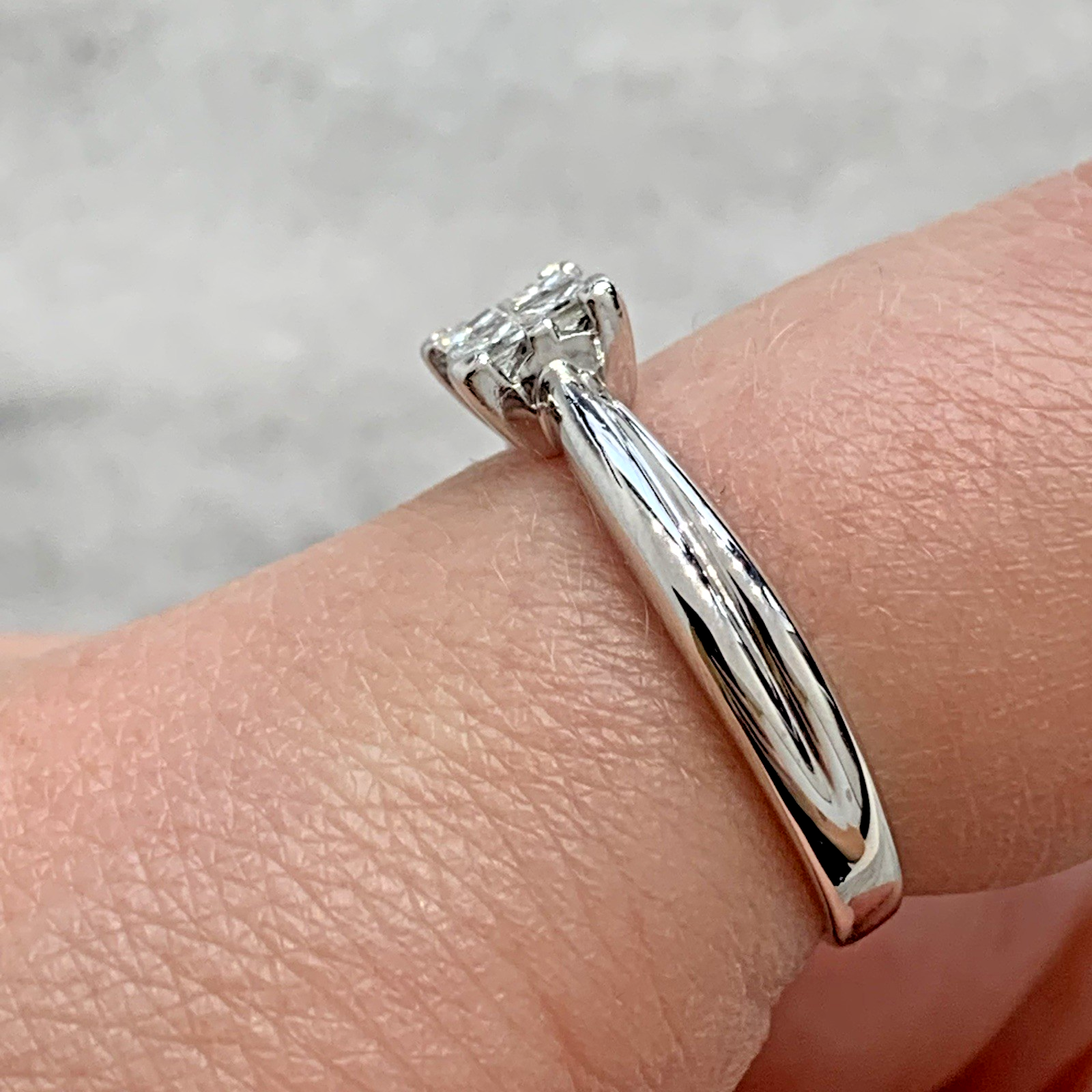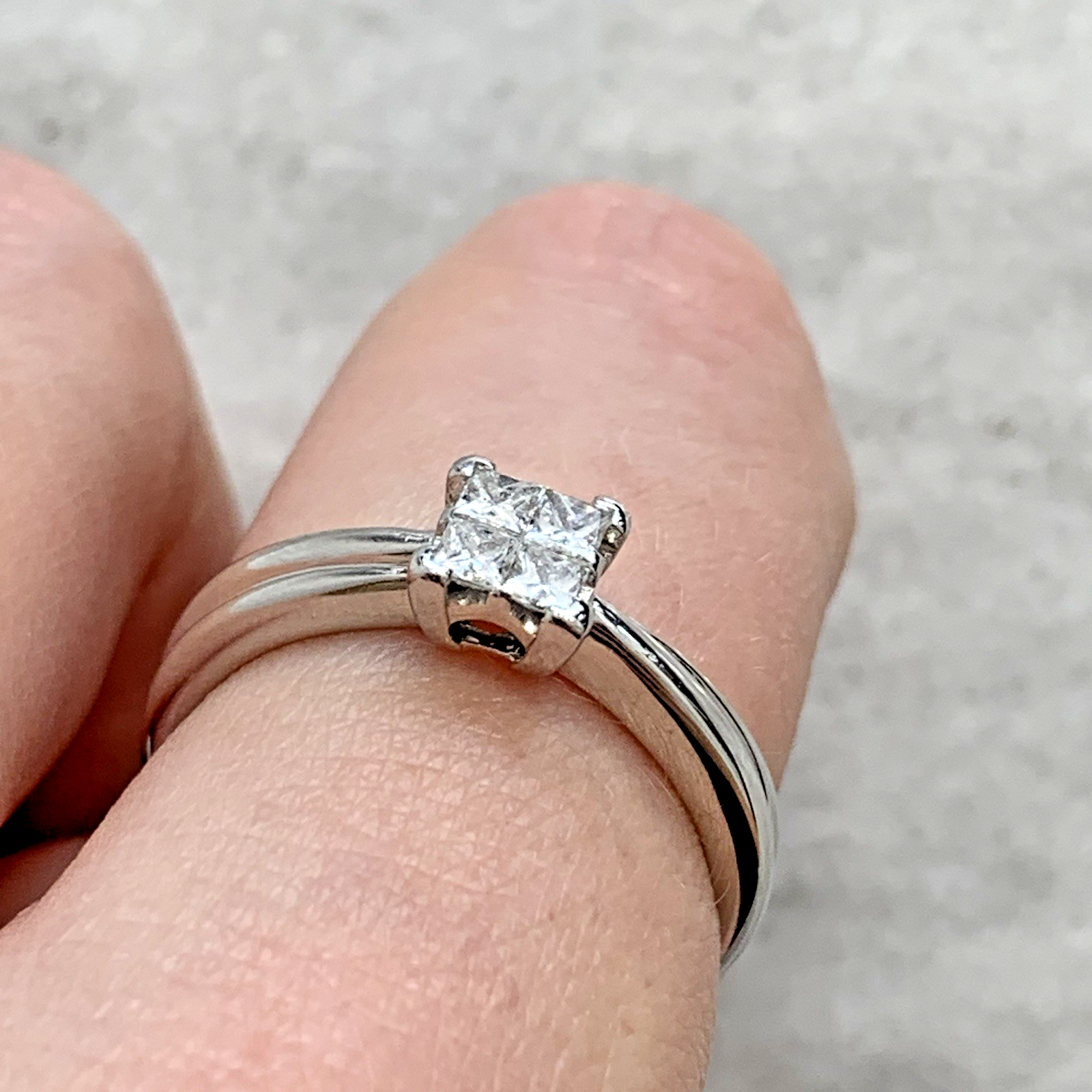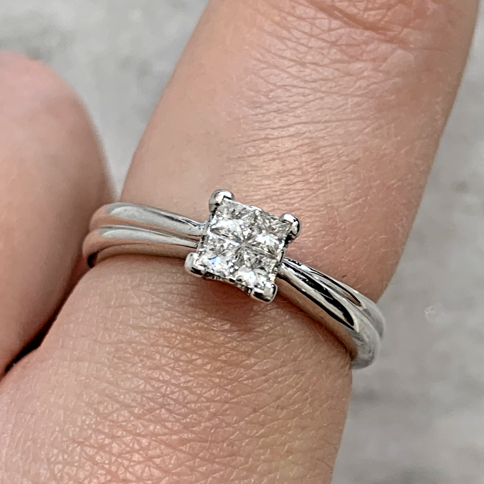 9 ct Gold Diamond Princess Cut Cluster Ring 9ct 375 White Gold - Size M 1/2