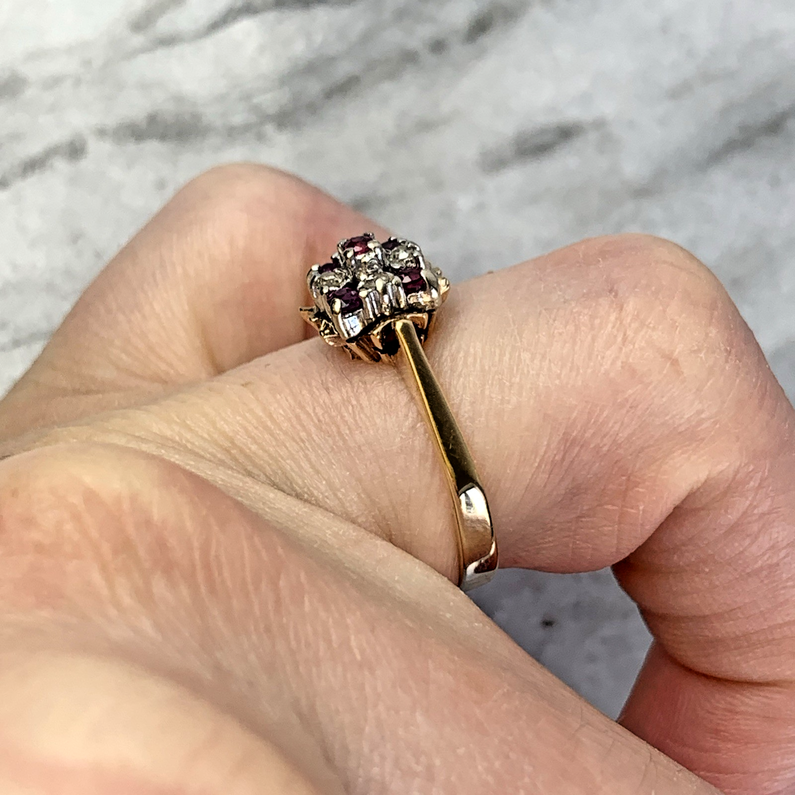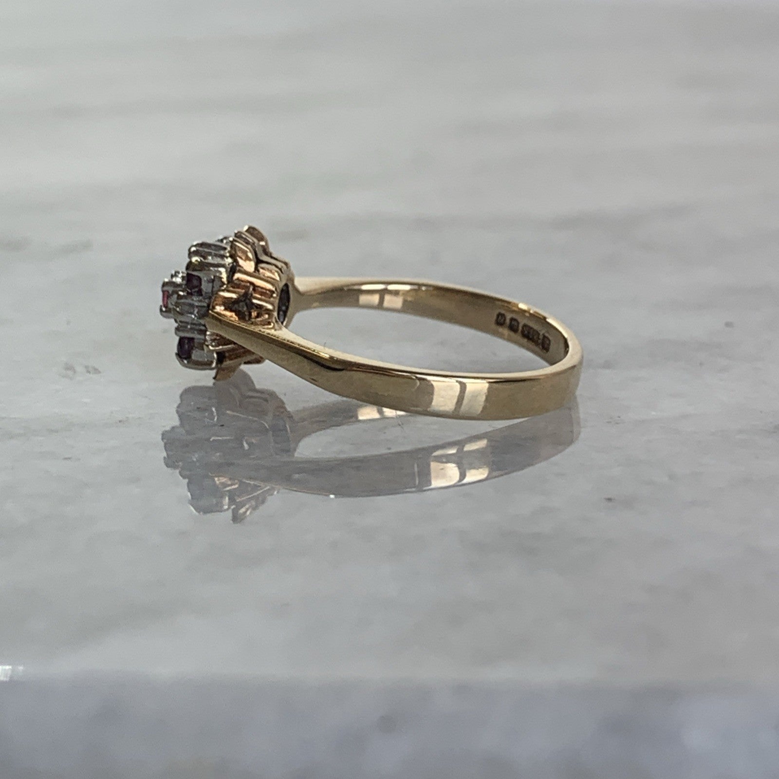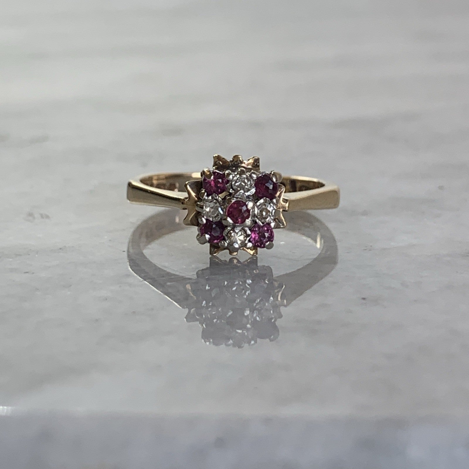 9 ct Gold Ruby & Diamond Cluster Ring 9ct 375 Yellow Gold - Size L