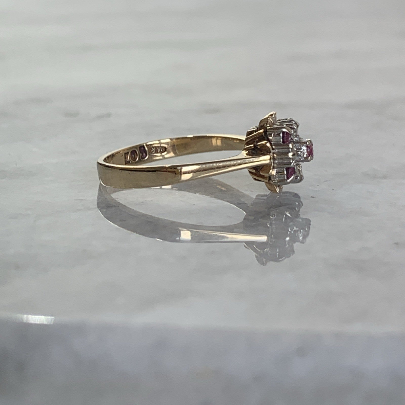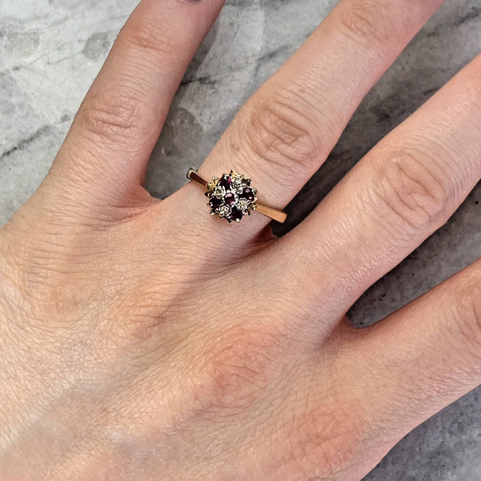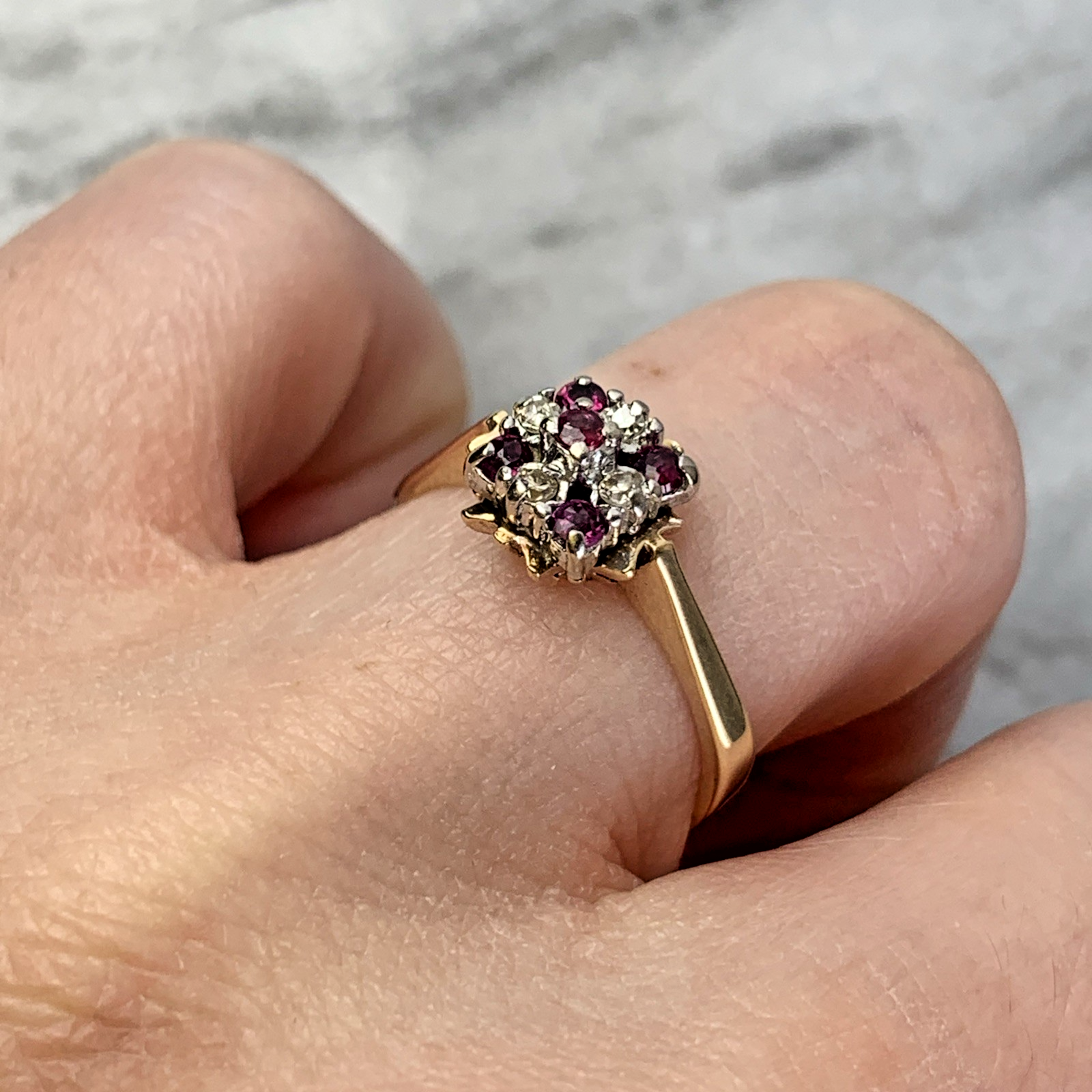 9 ct Gold Ruby & Diamond Cluster Ring 9ct 375 Yellow Gold - Size L