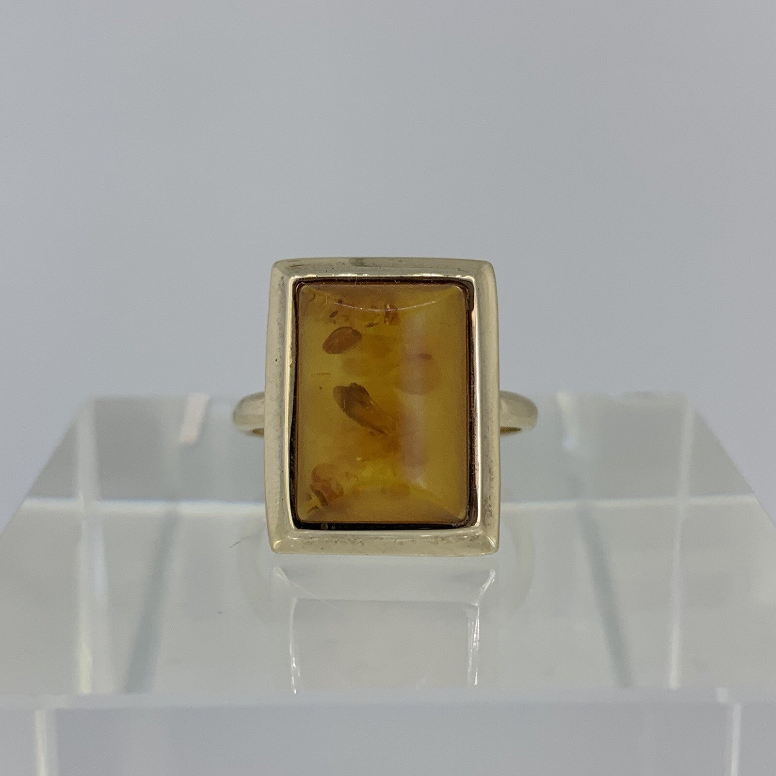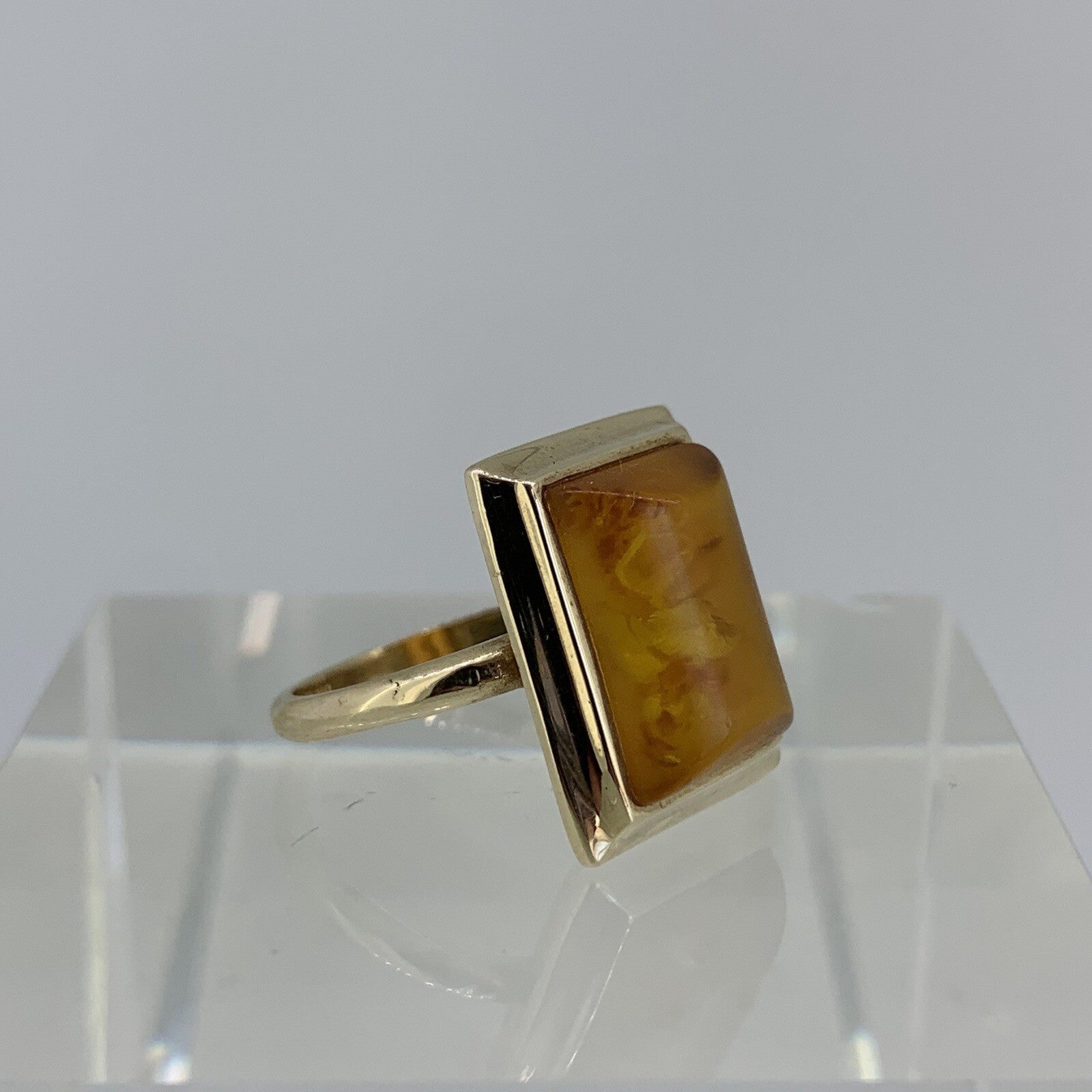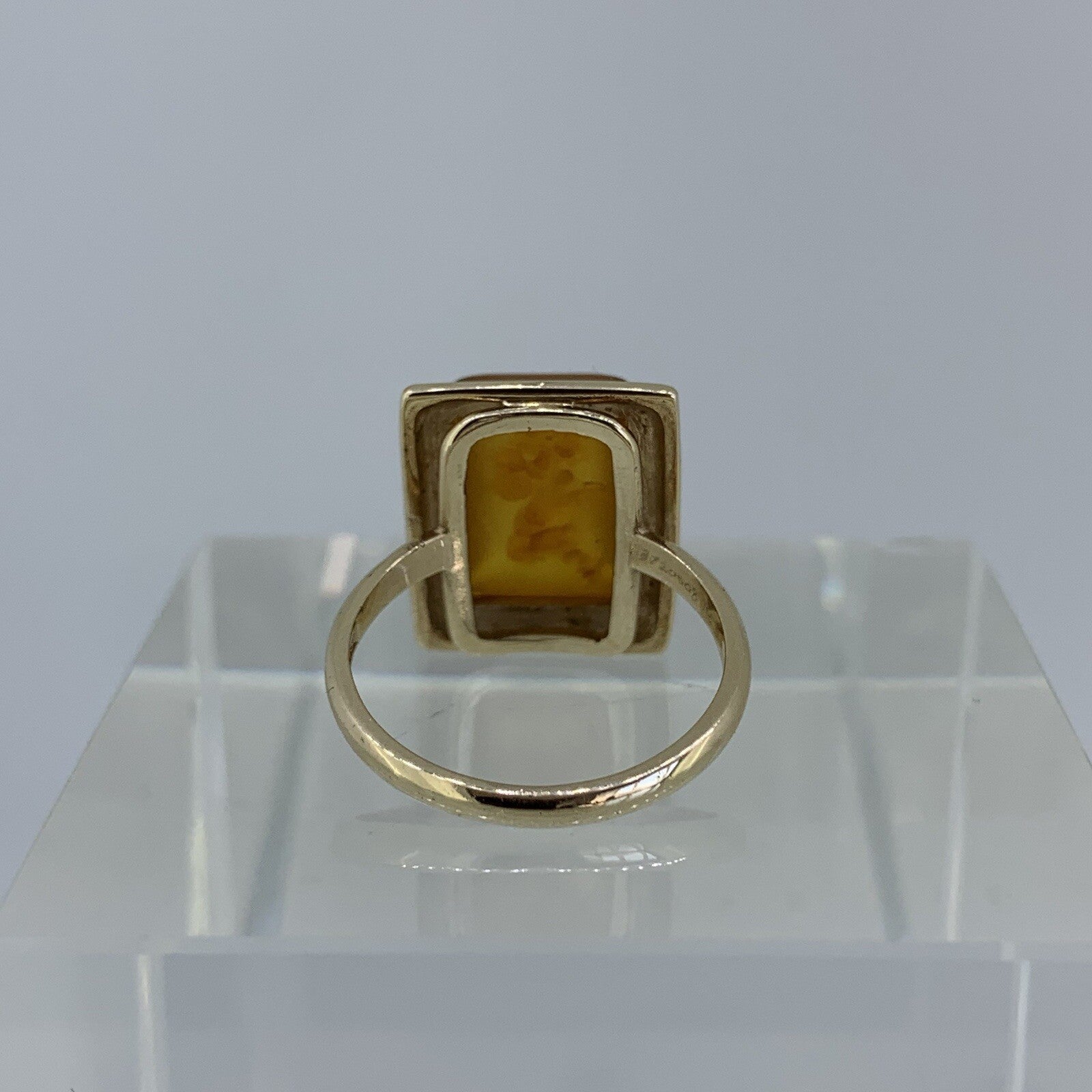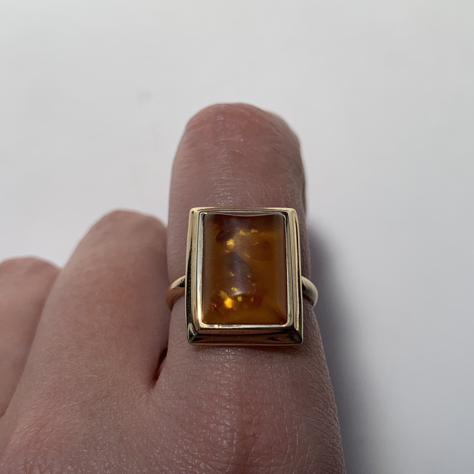 Bezel Set Amber (Imitation) Cocktail Ring 9ct 375 Yellow Gold - Size O