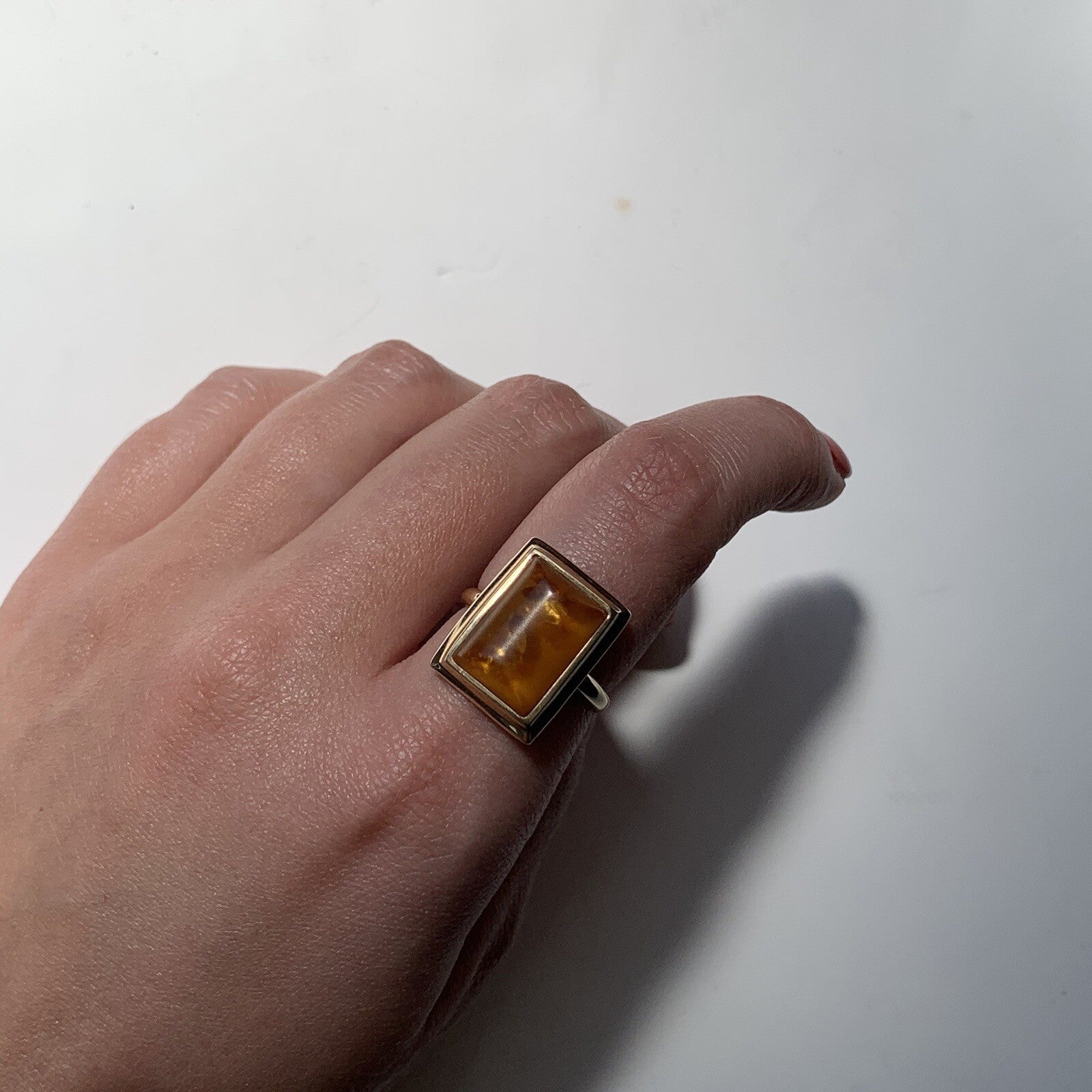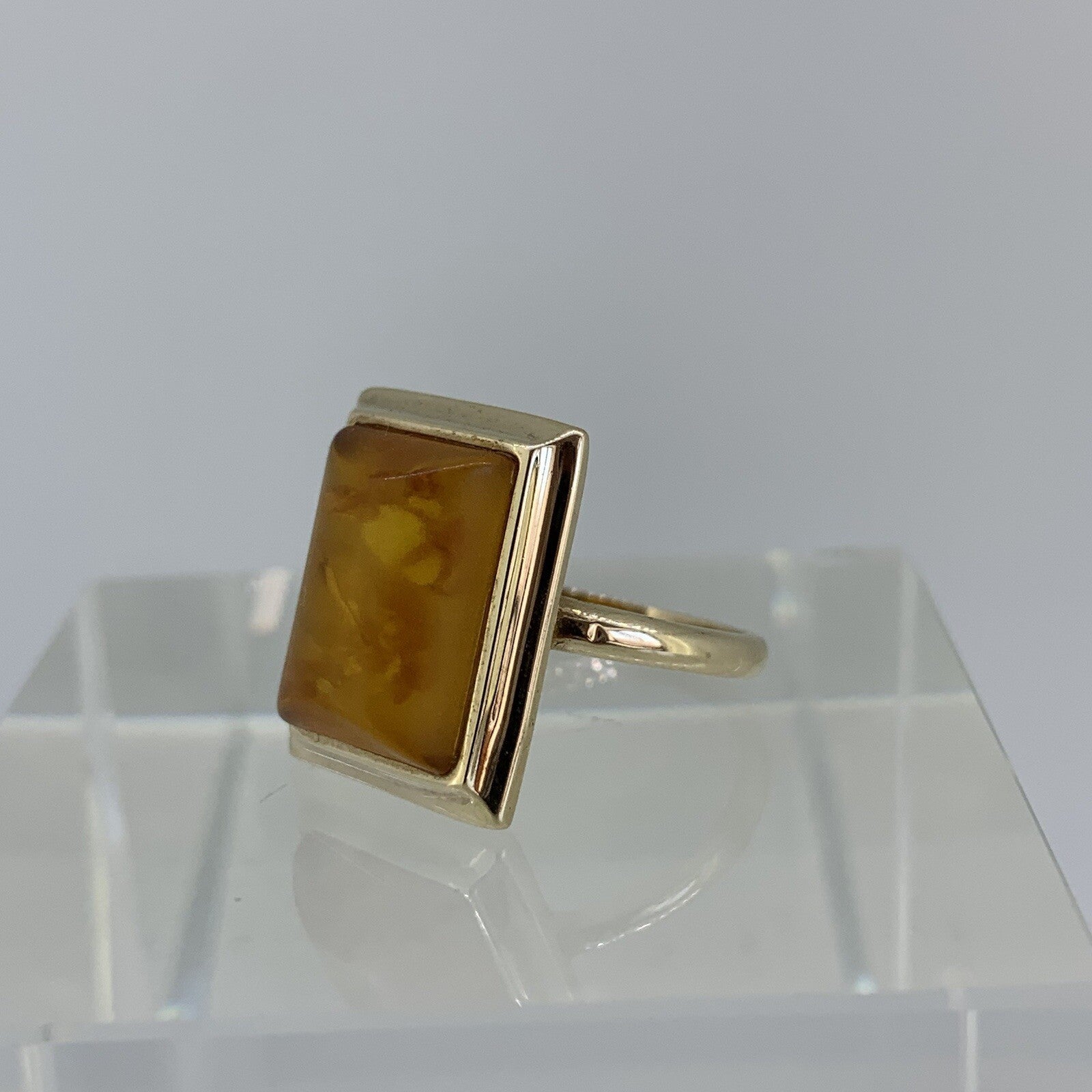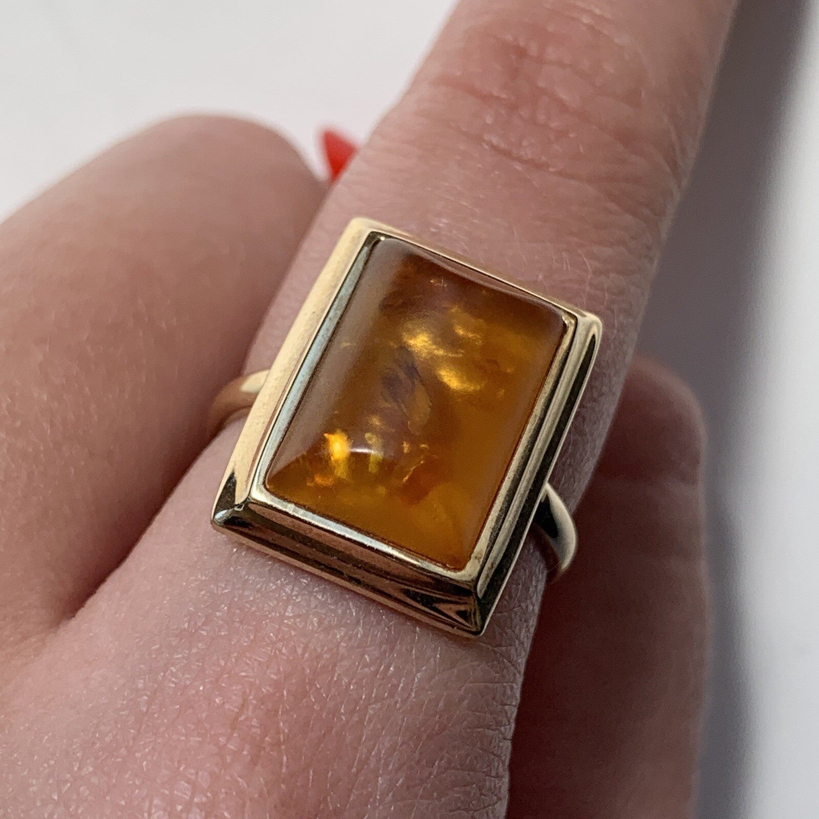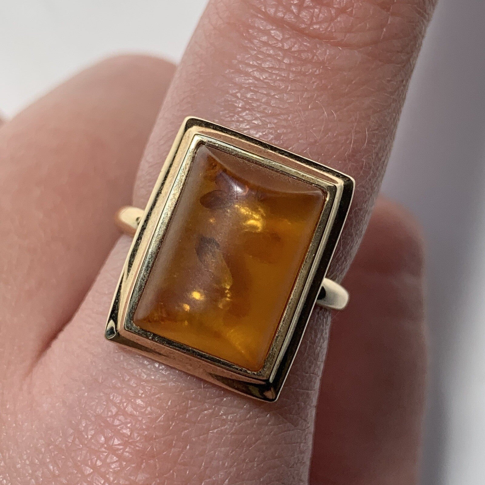Bezel Set Amber (Imitation) Cocktail Ring 9ct 375 Yellow Gold - Size O