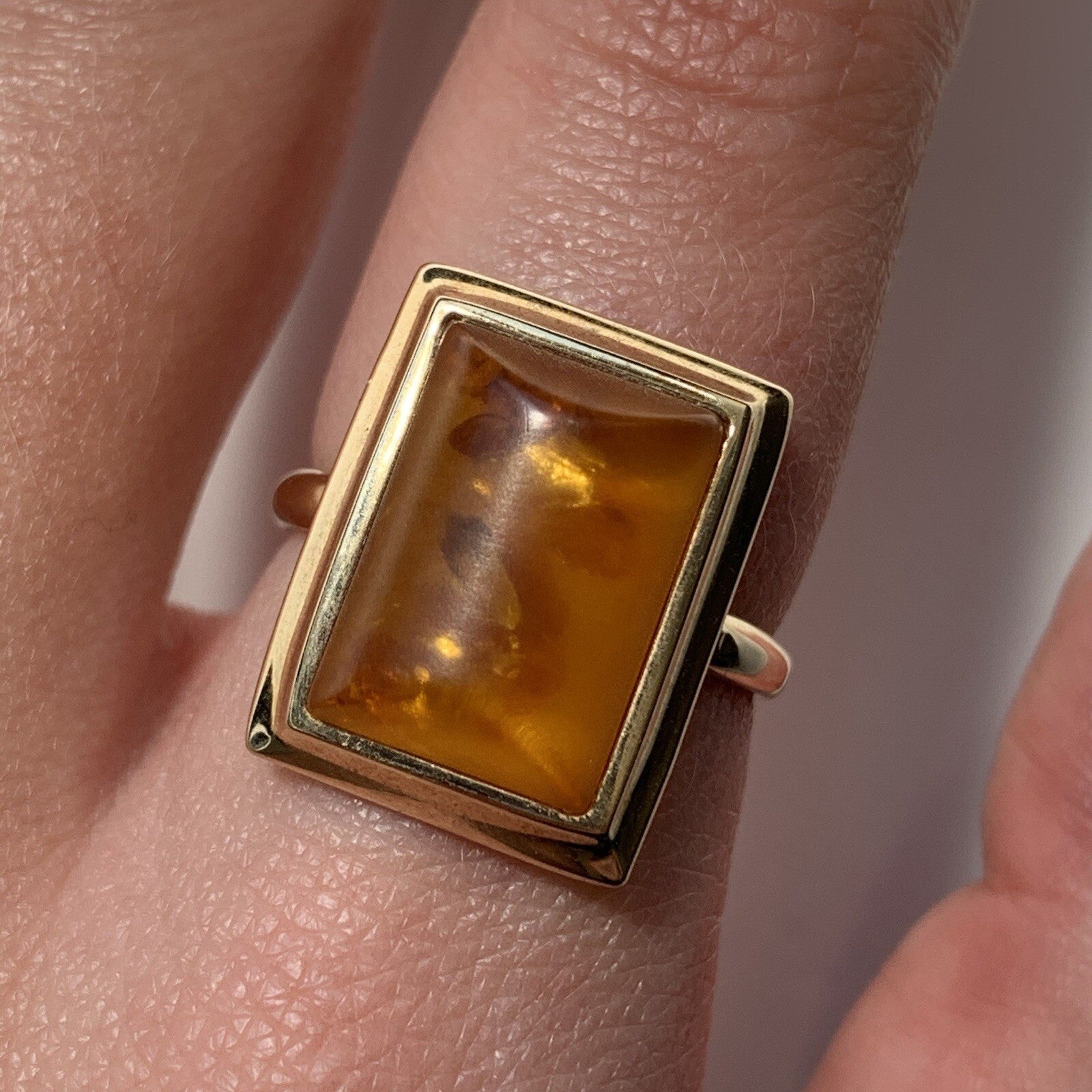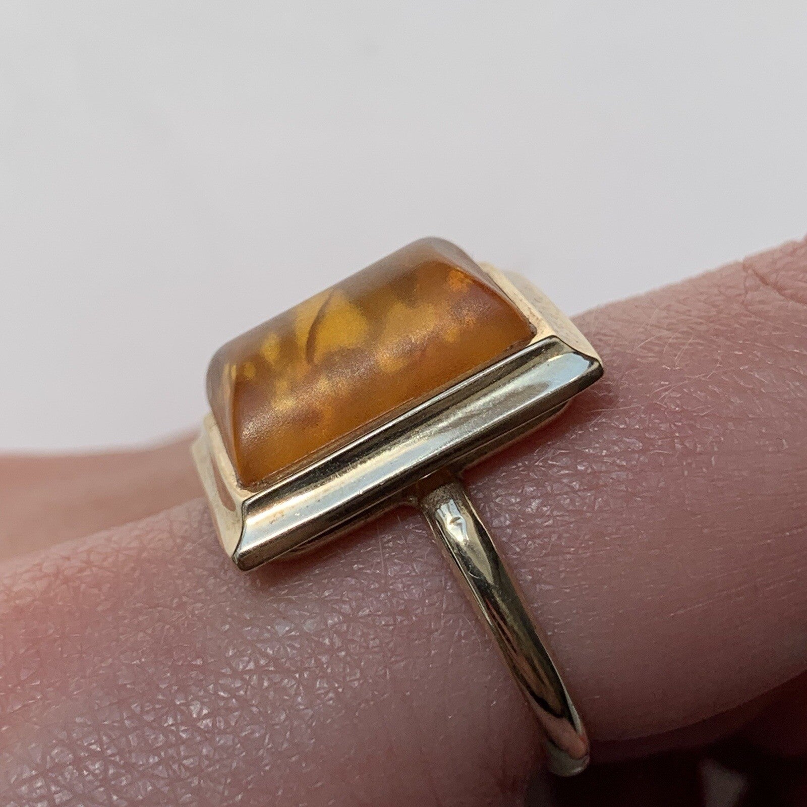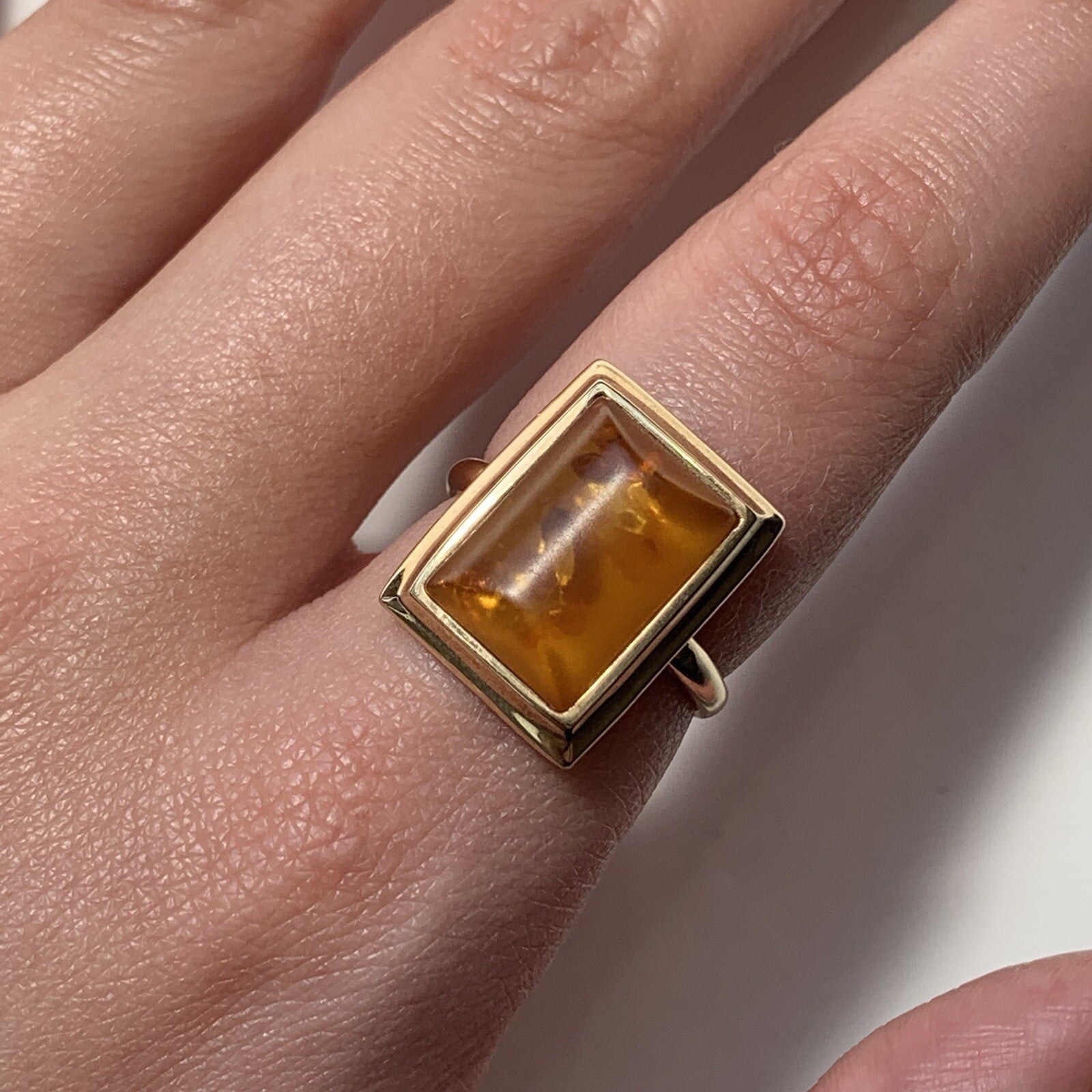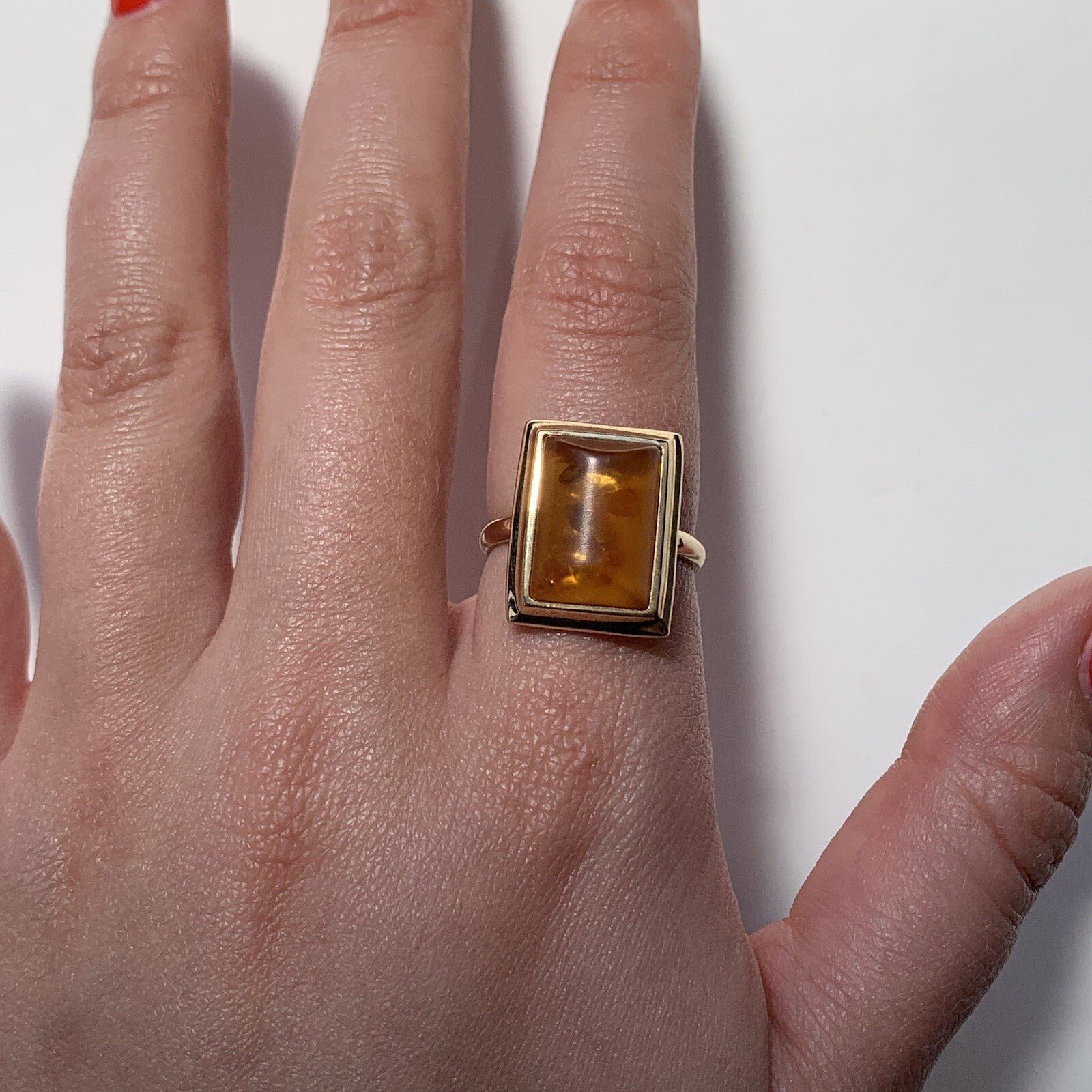 Bezel Set Amber (Imitation) Cocktail Ring 9ct 375 Yellow Gold - Size O