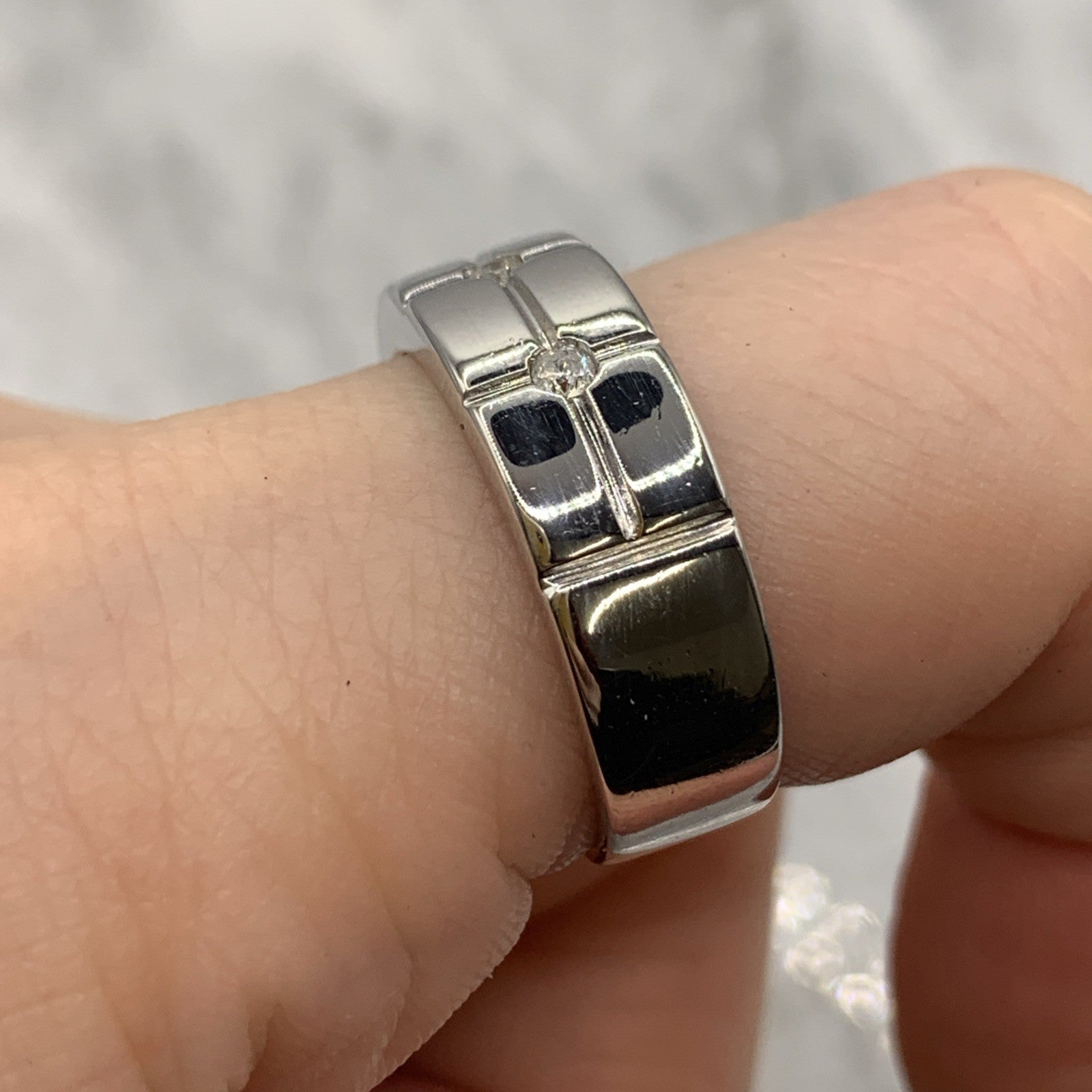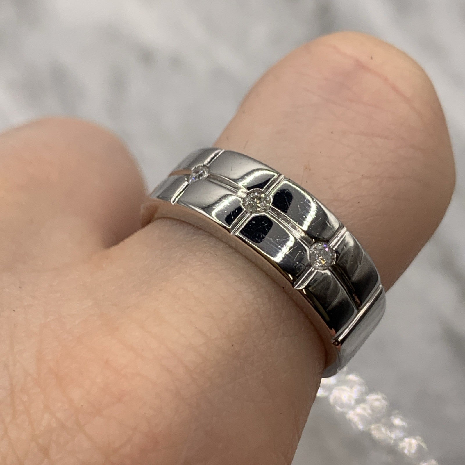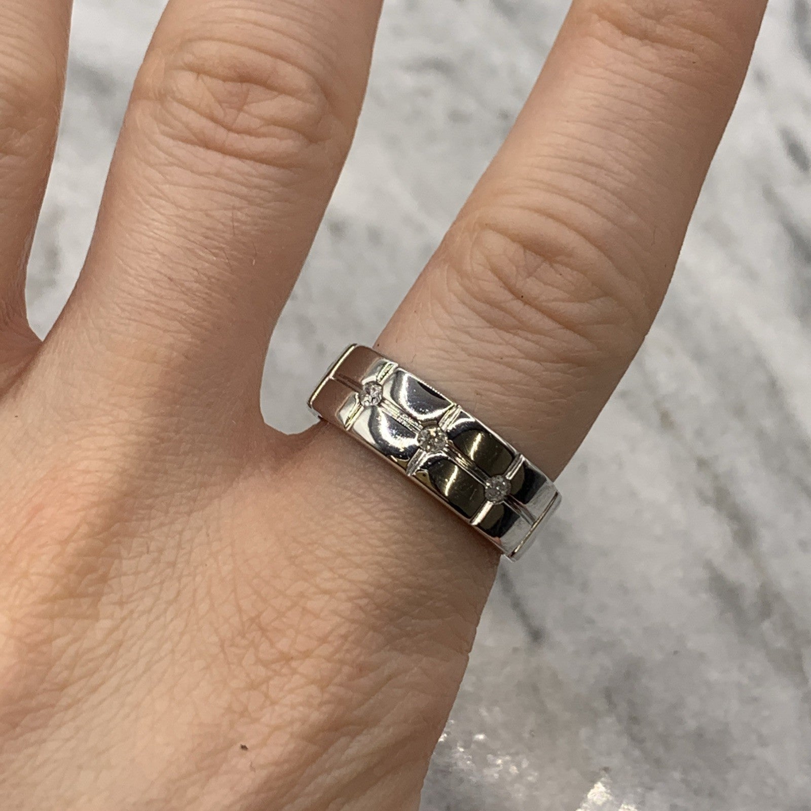 Chunky Diamond Three Stone Band Ring 9ct 9k White Gold - Size P