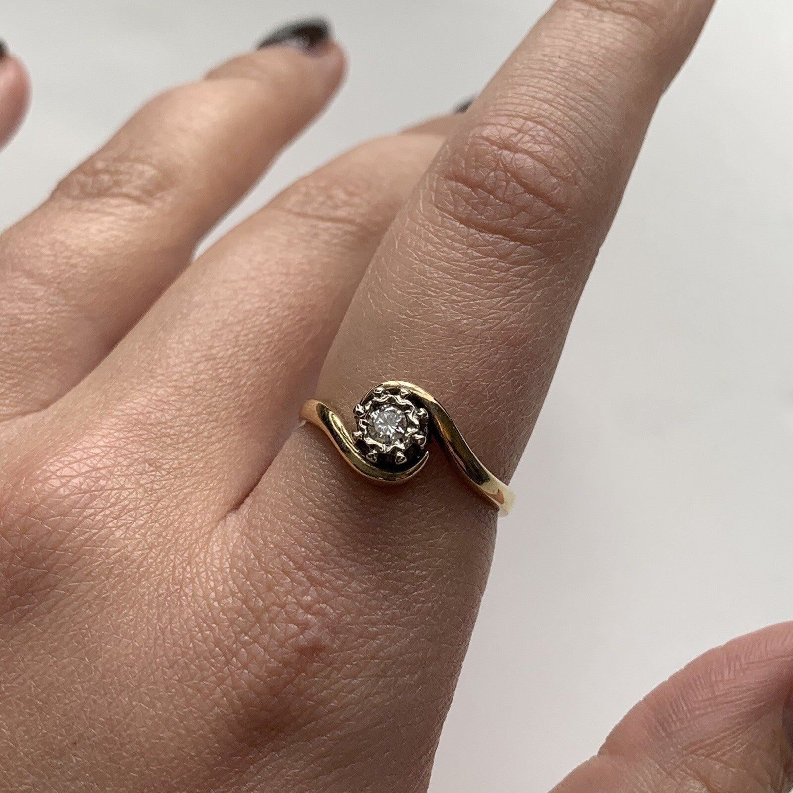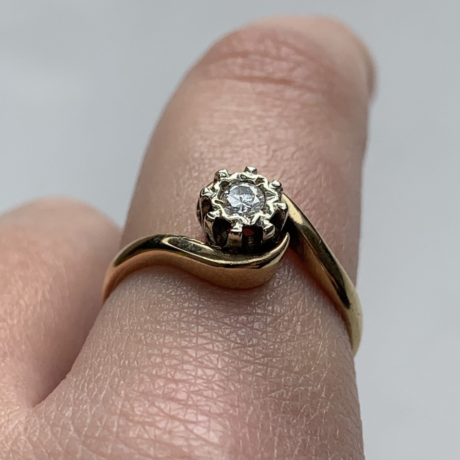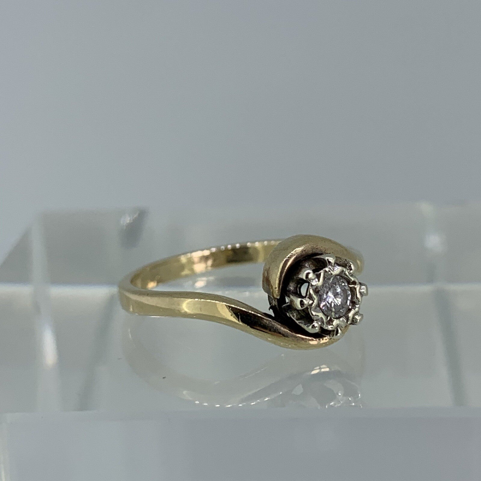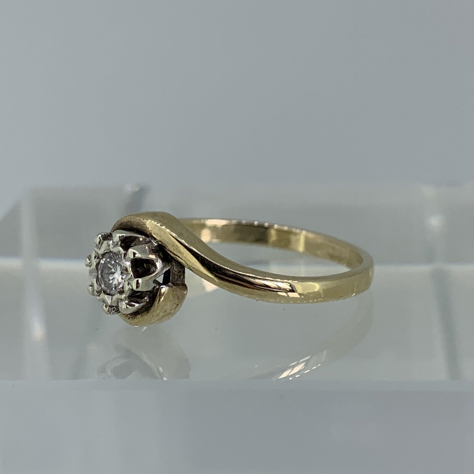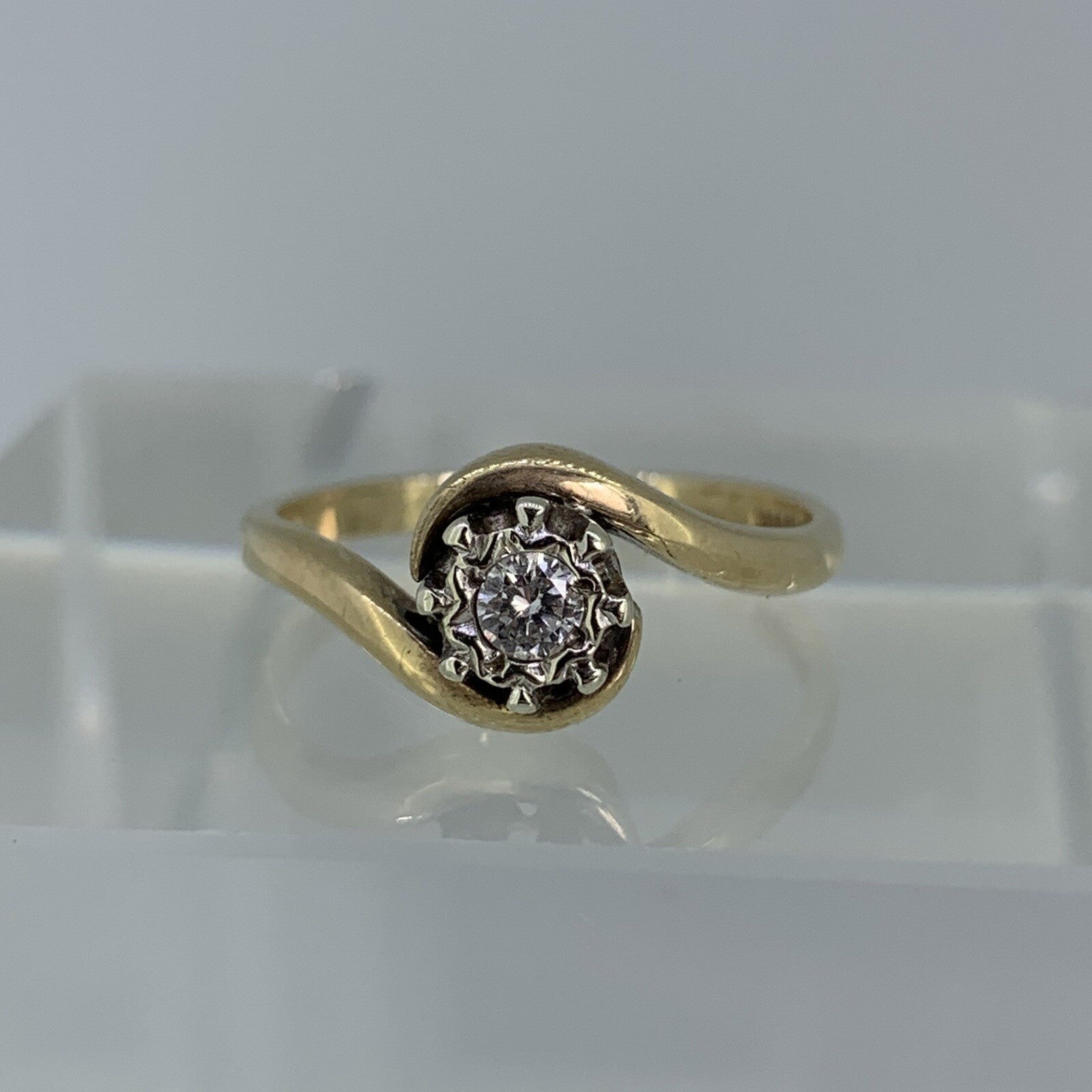 Diamond .10ct Solitaire Bypass Twist Ring 9ct 375 Yellow Gold - Size P