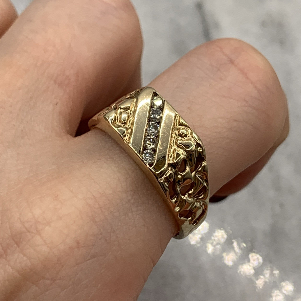 Diamond .20ct Channel Set Textured Signet Ring 9ct 375 Yellow Gold - Size T