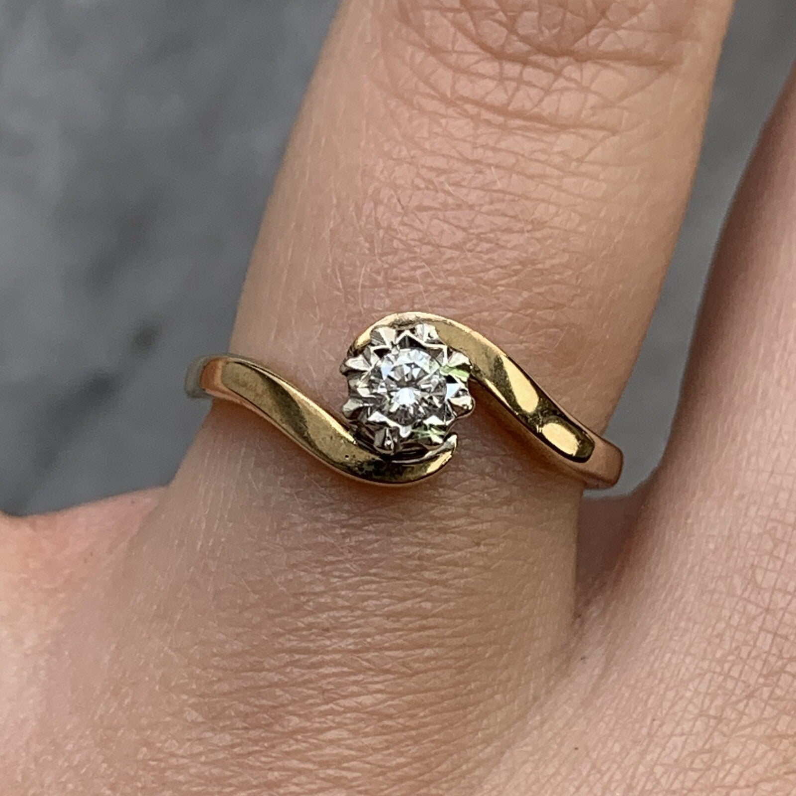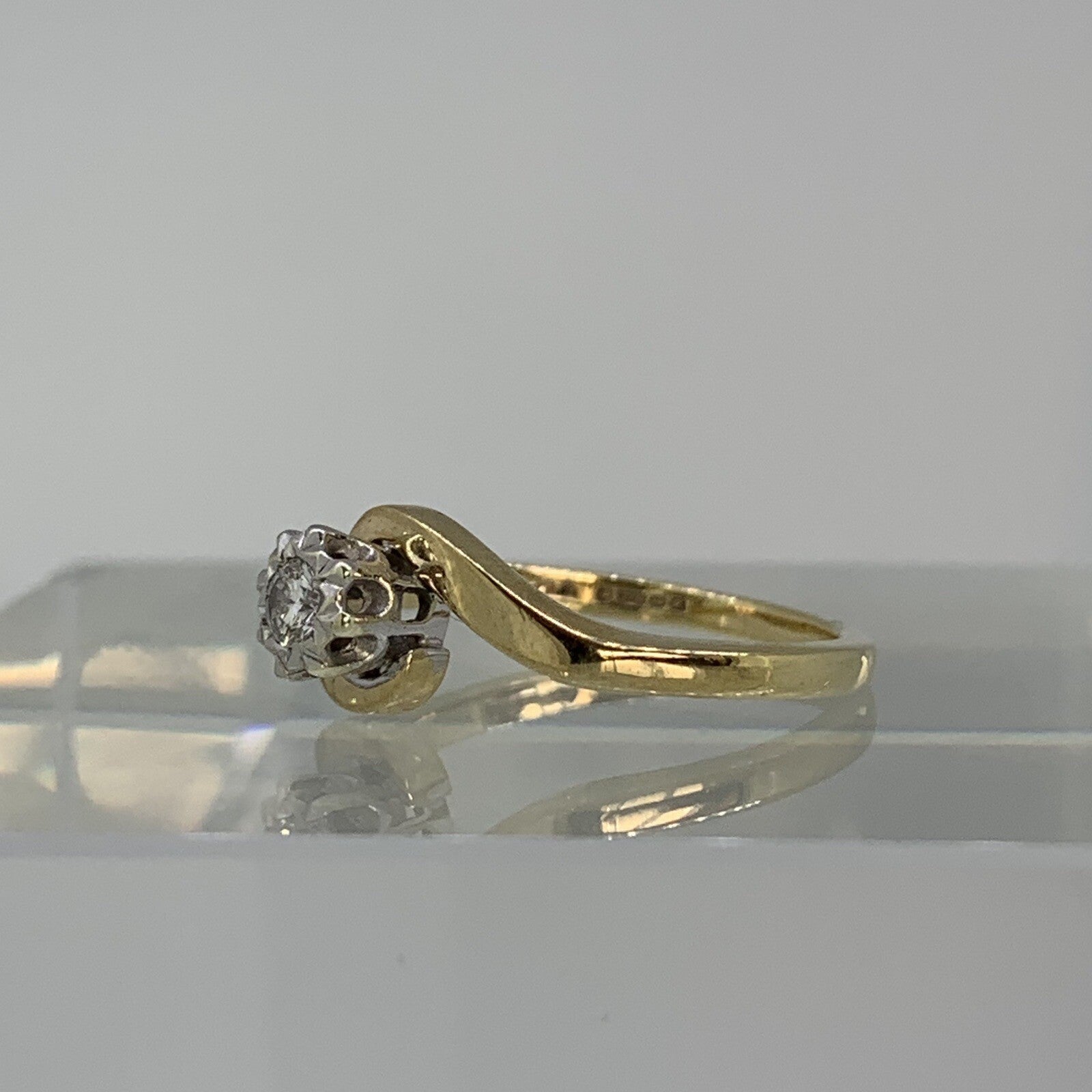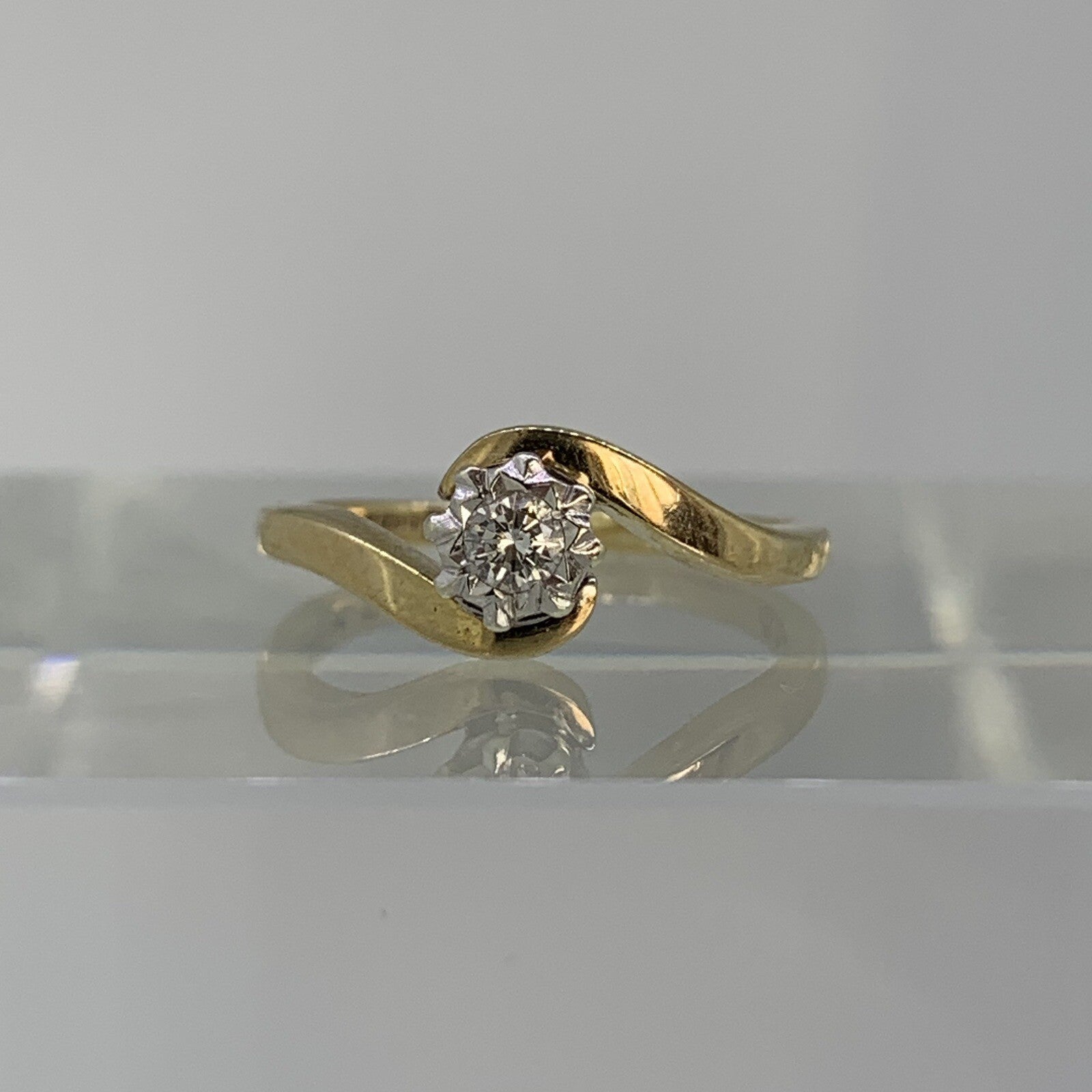 Diamond Bypass Twist Solitaire Illusion Set Ring 9ct 9K Yellow Gold - Size J