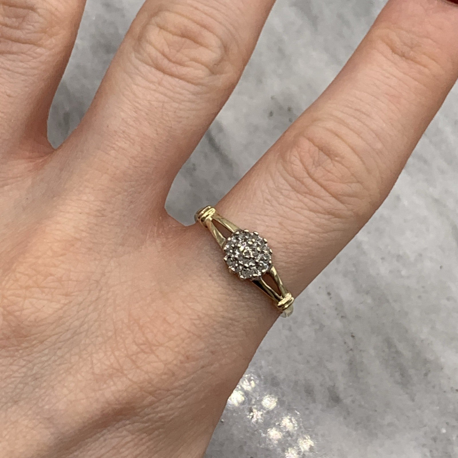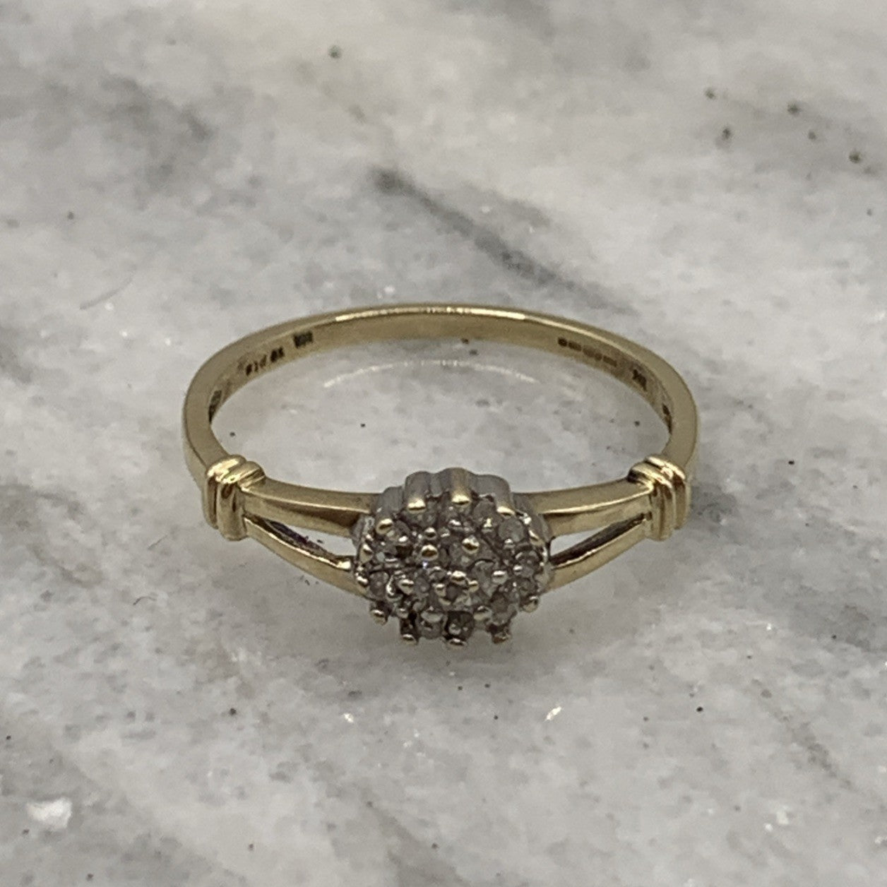 Diamond Cluster Split Shoulder Ring 9ct 375 Yellow Gold - Size R