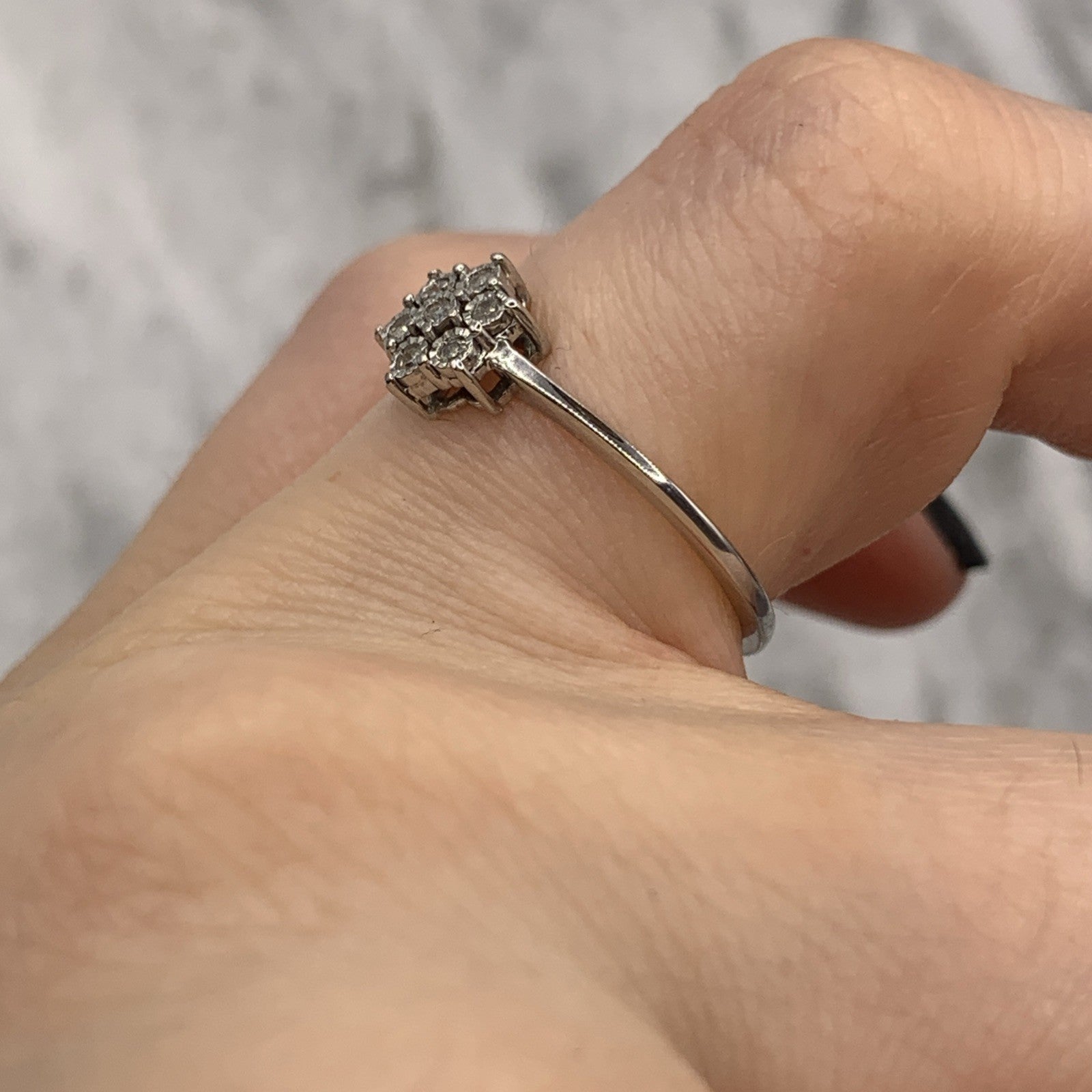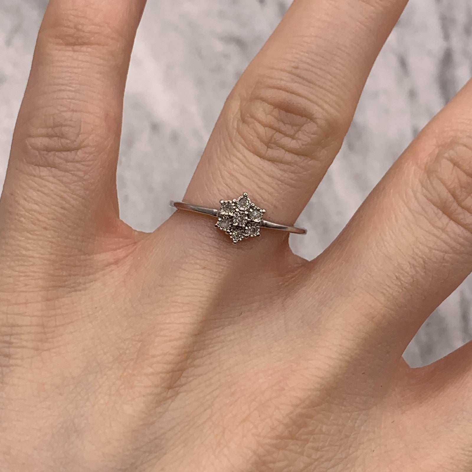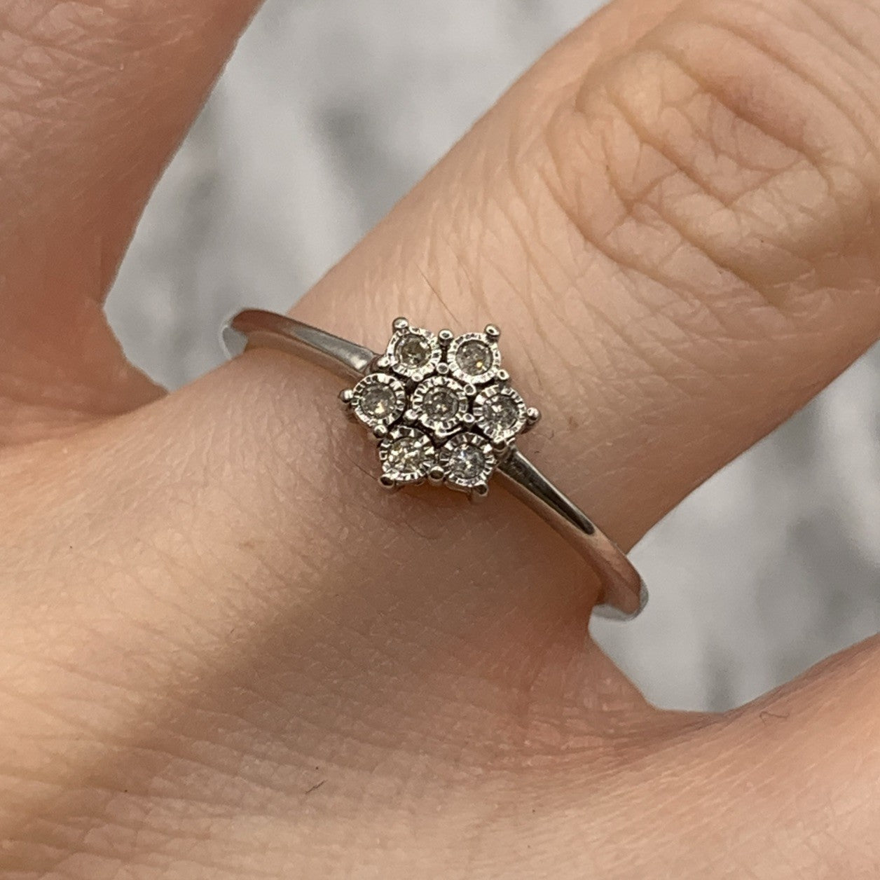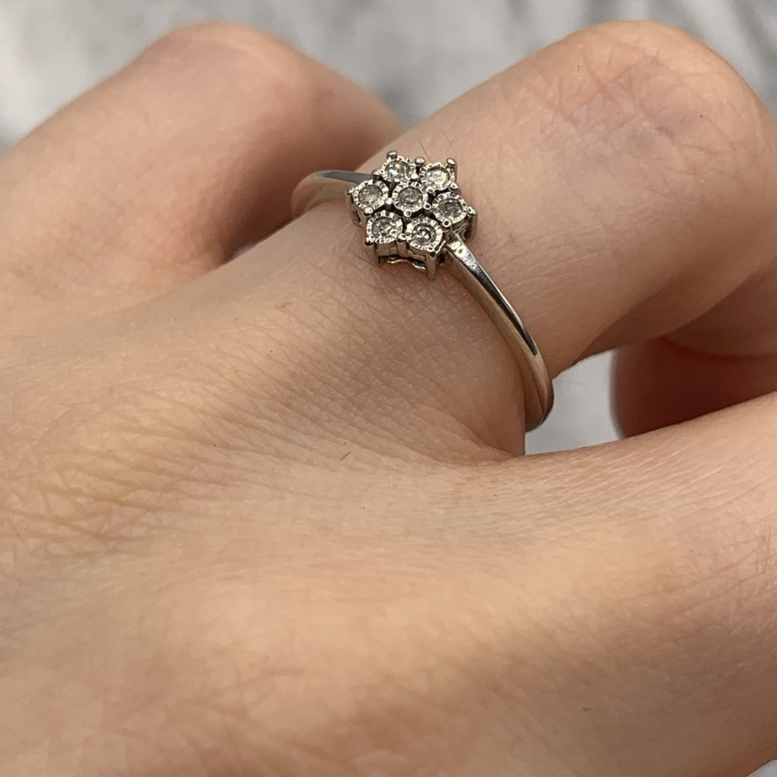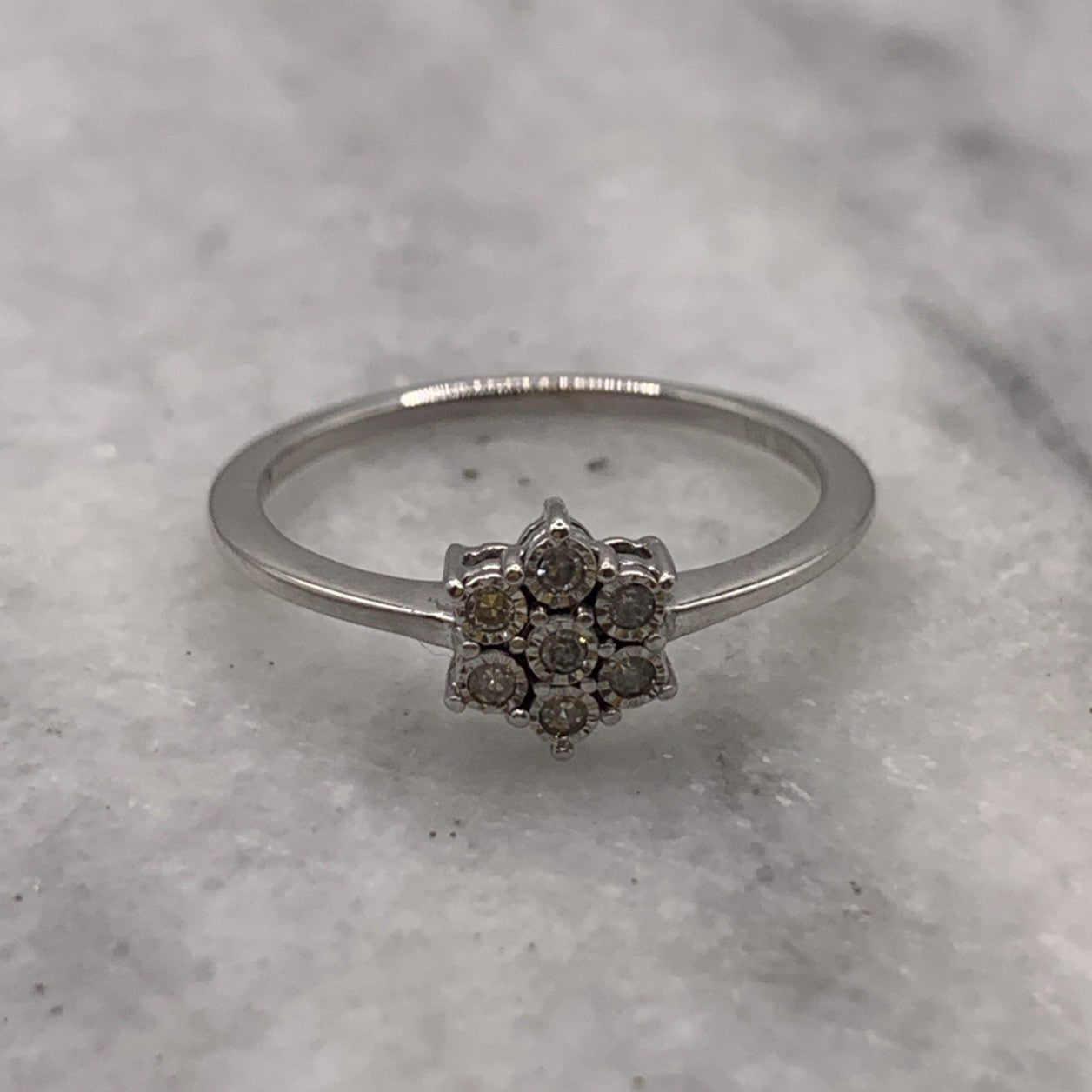 Diamond Daisy Flower Cluster Ring 9ct 375 White Gold - Size L 1/2