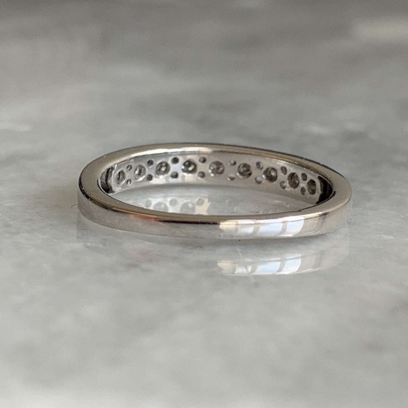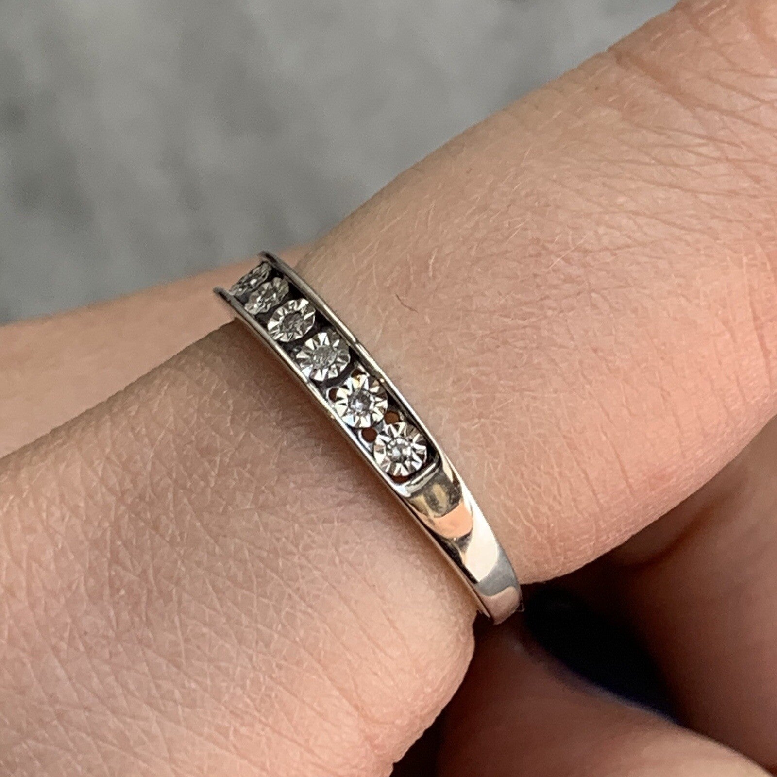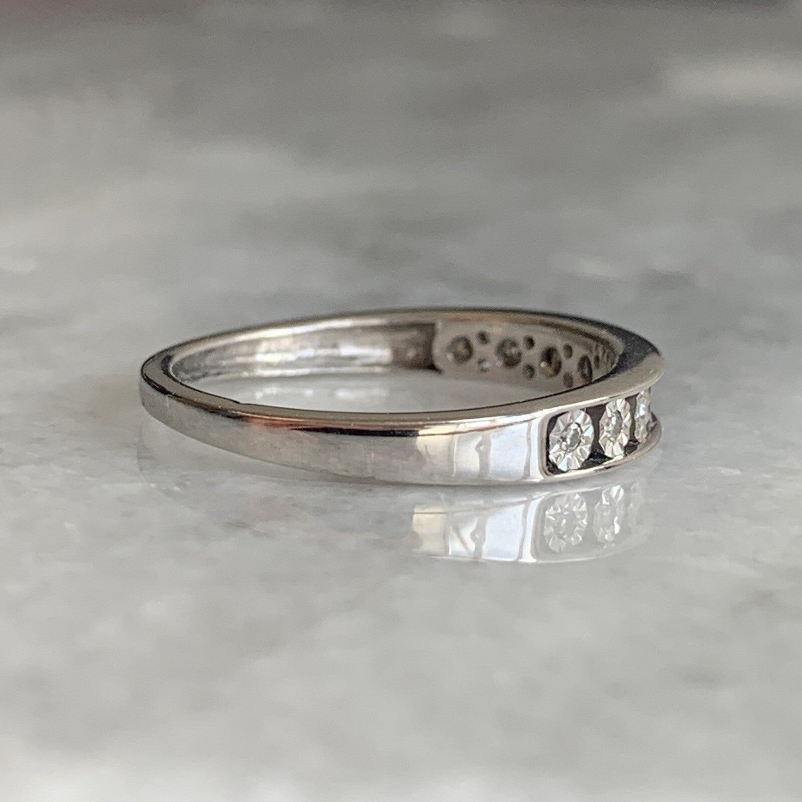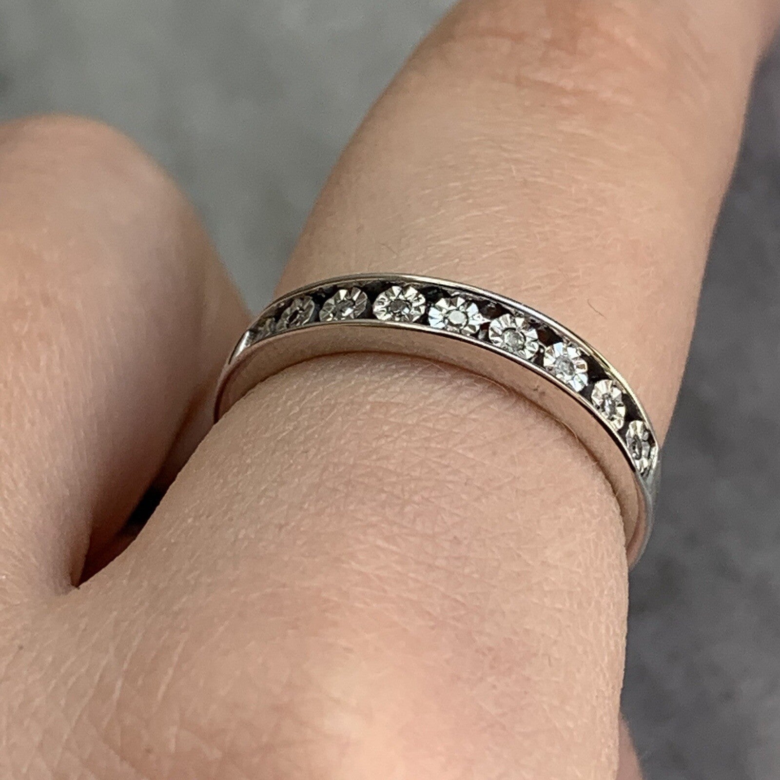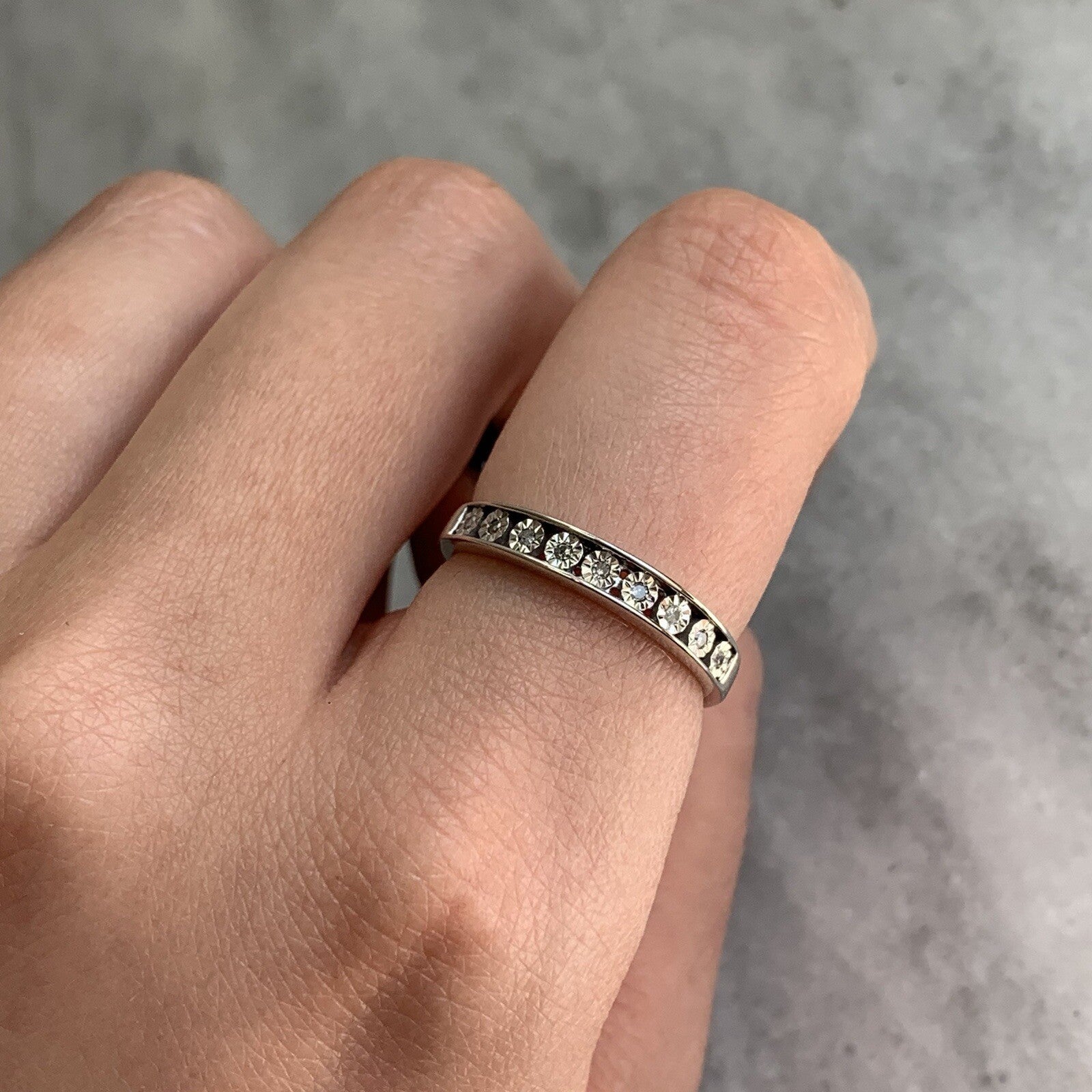 A gorgeous ring with a half eternity of petite diamonds held in illusion settings, all set between a channel setting.