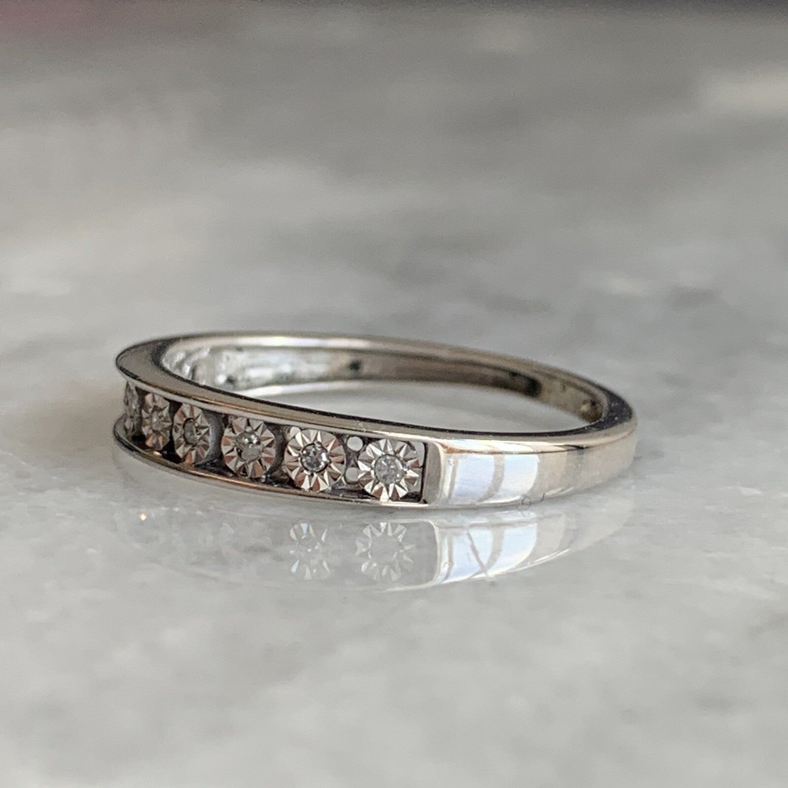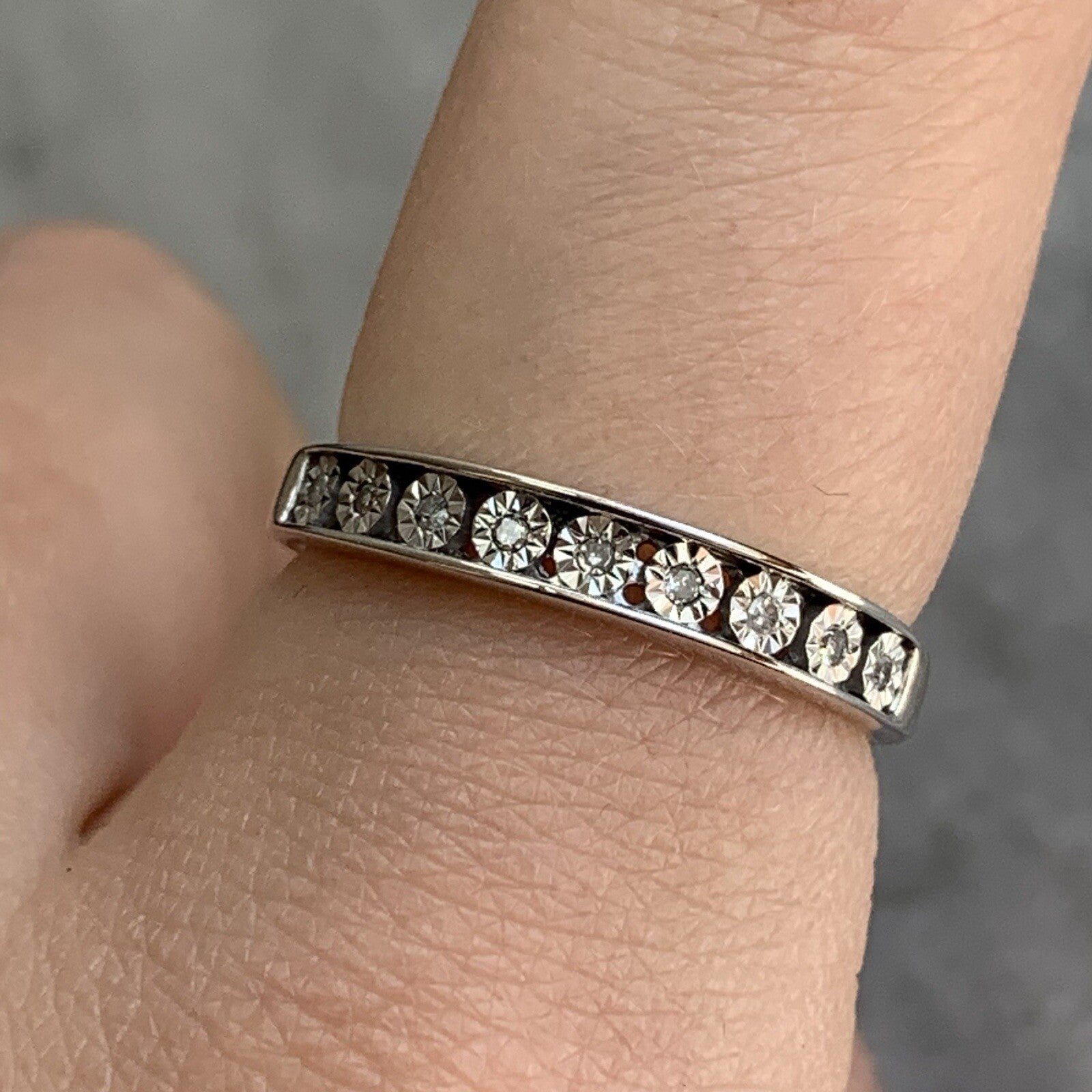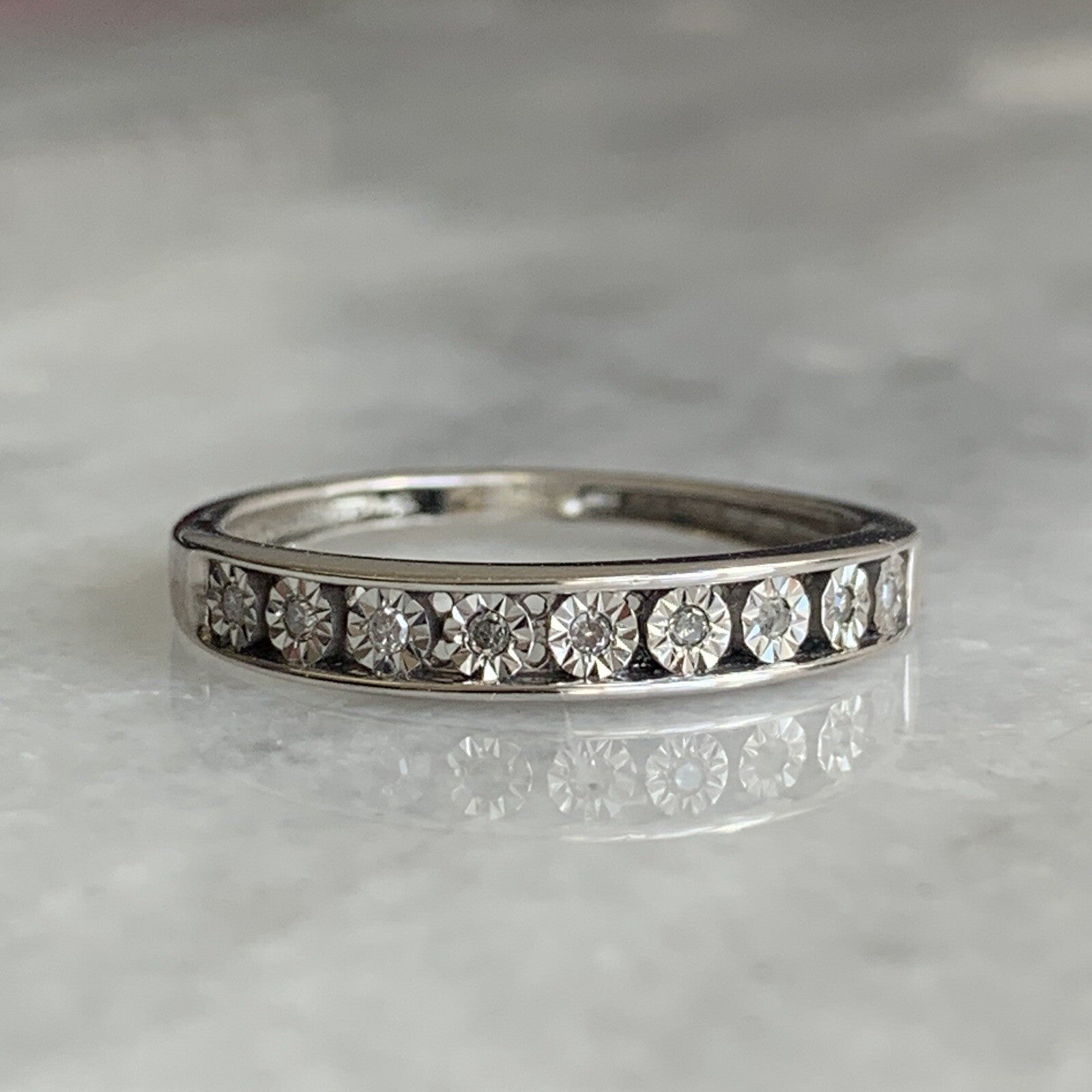 Diamond Half Eternity Illusion Set Band Ring 9ct 375 White Gold - Size M 1/2