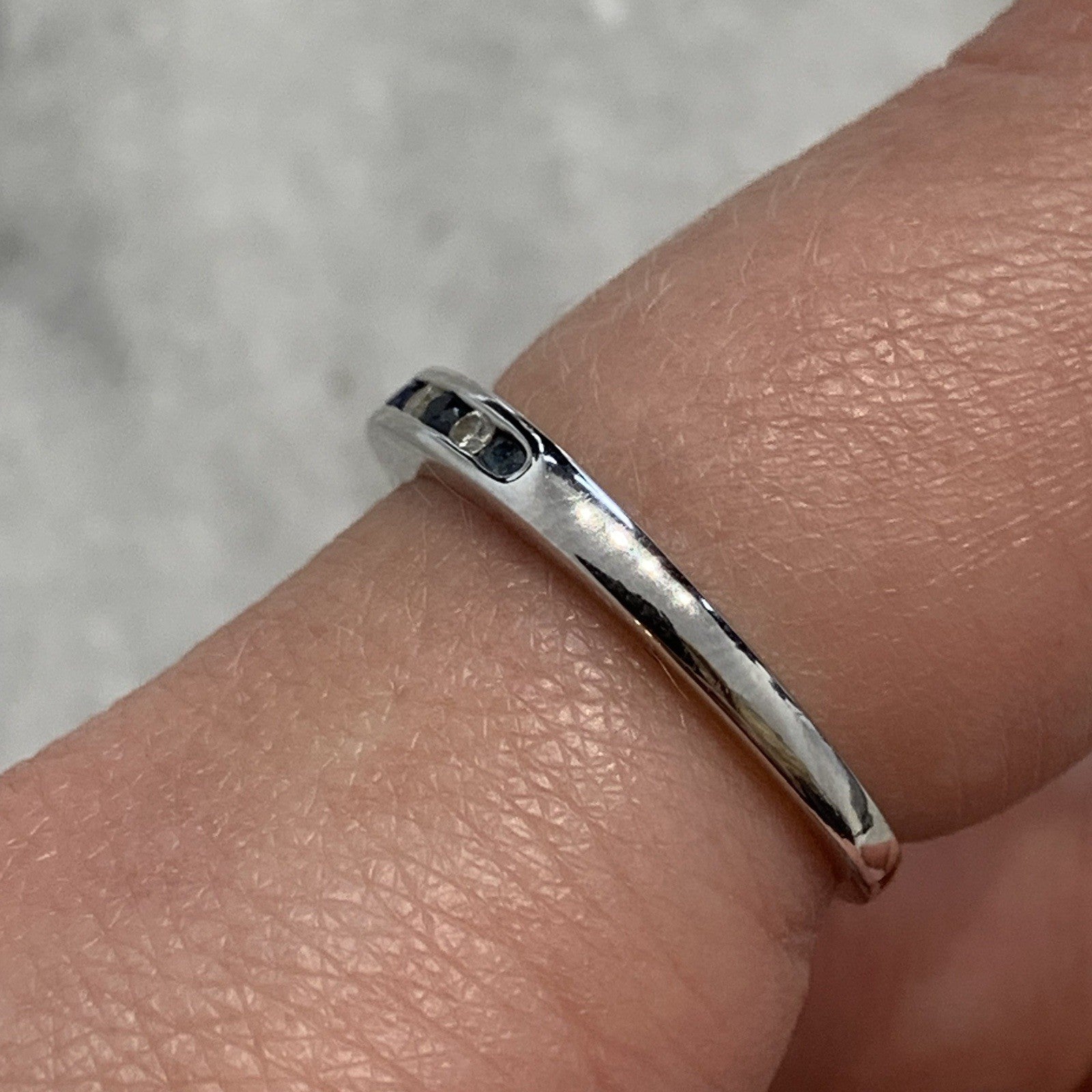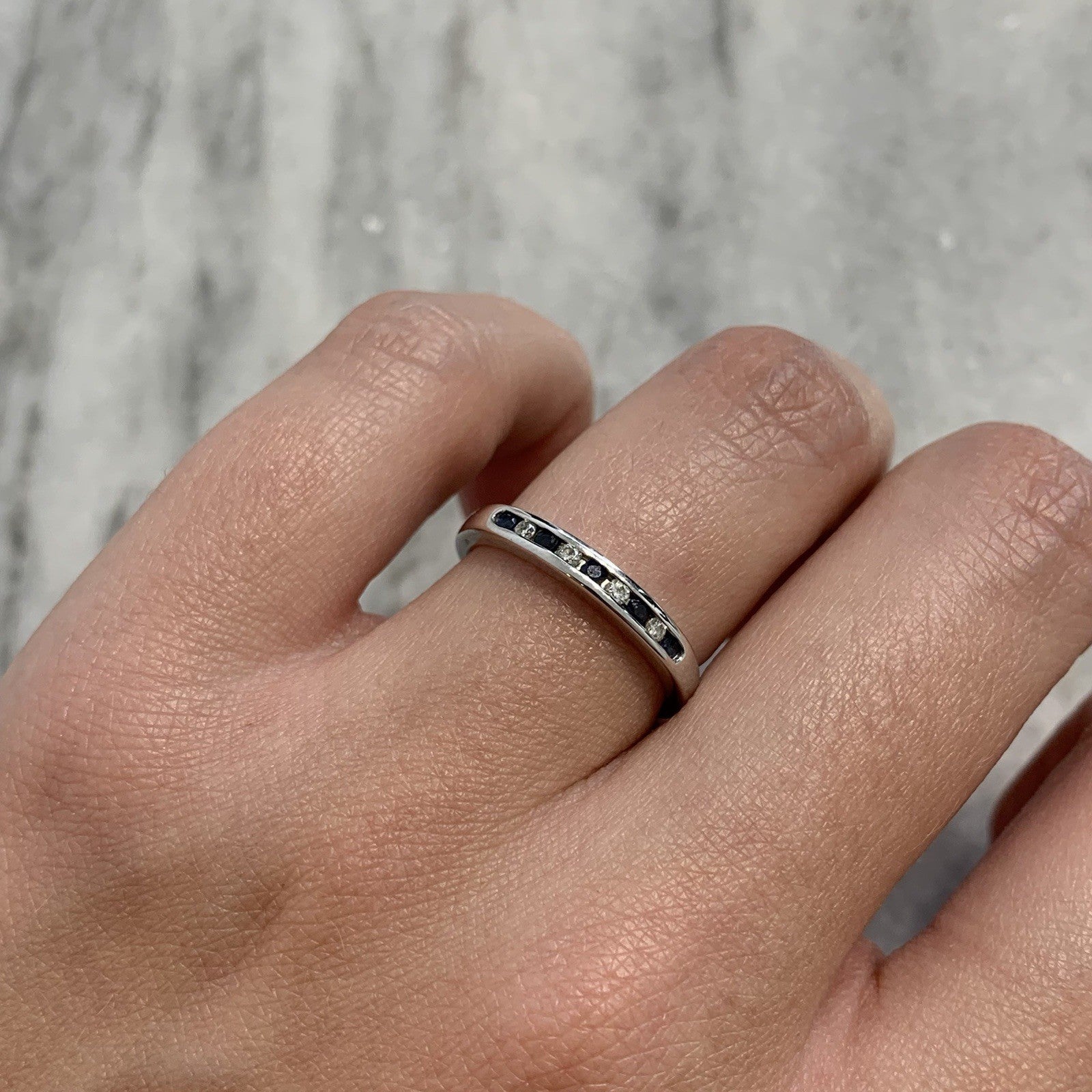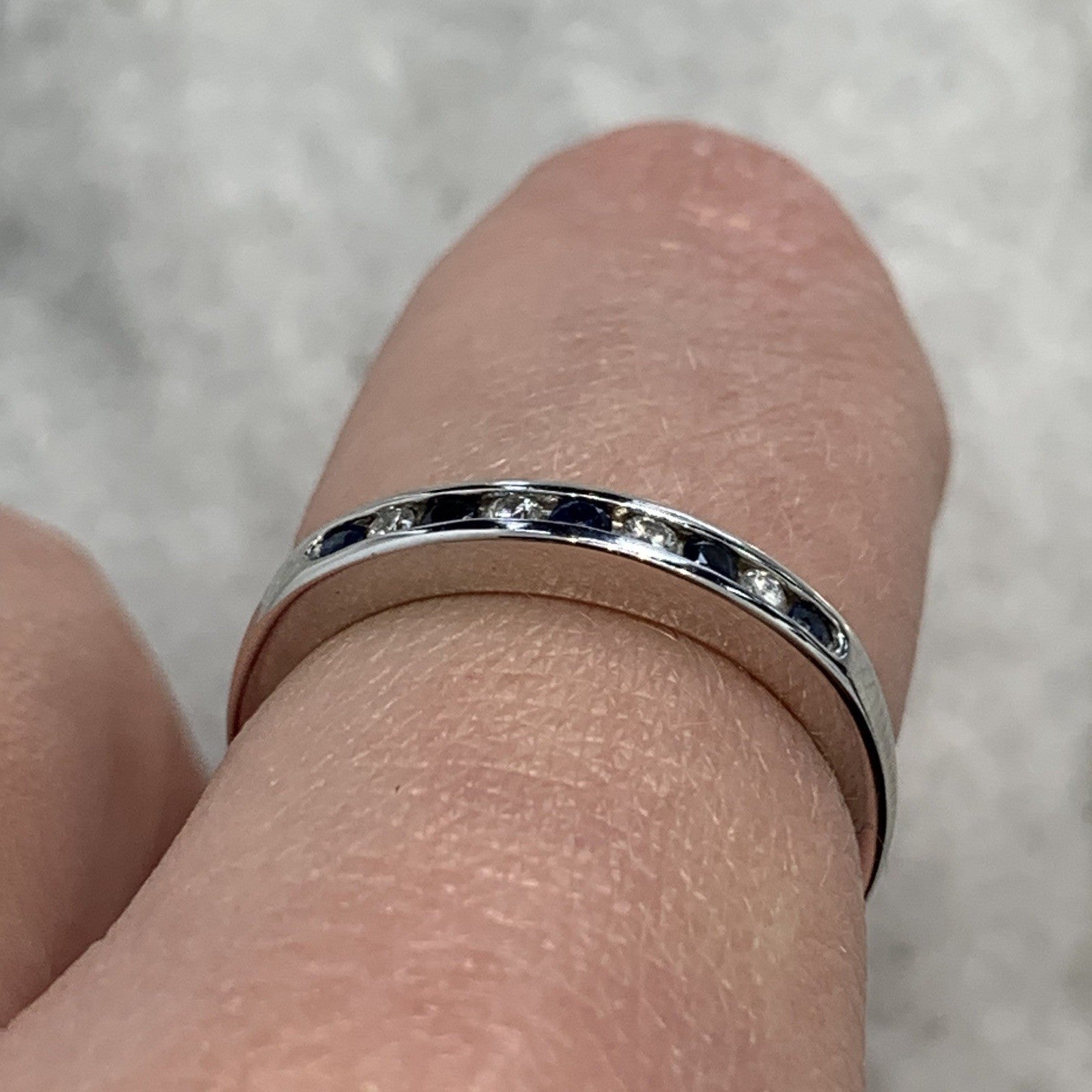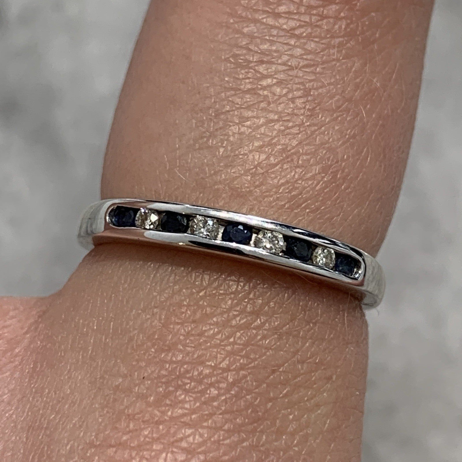 Diamond & Sapphire Channel Set Band Ring 9ct 375 White Gold - Size L