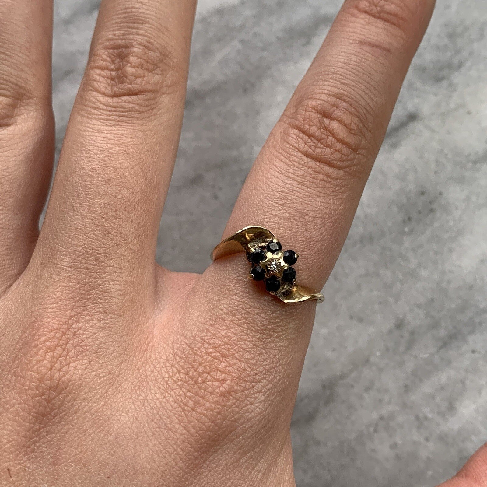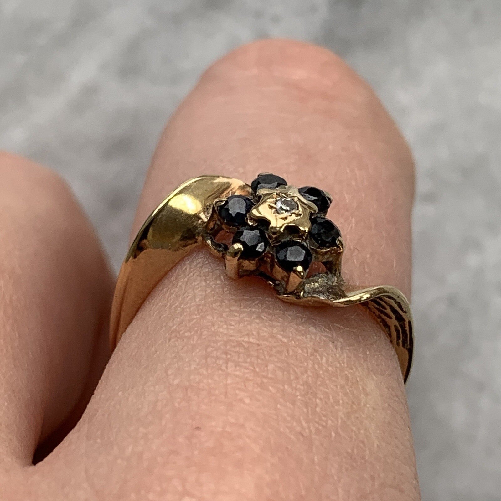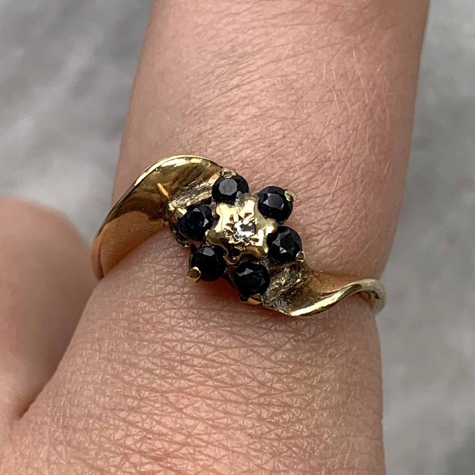 Diamond & Sapphire Daisy Twist Bypass Ring 9ct 375 Yellow Gold - Size N