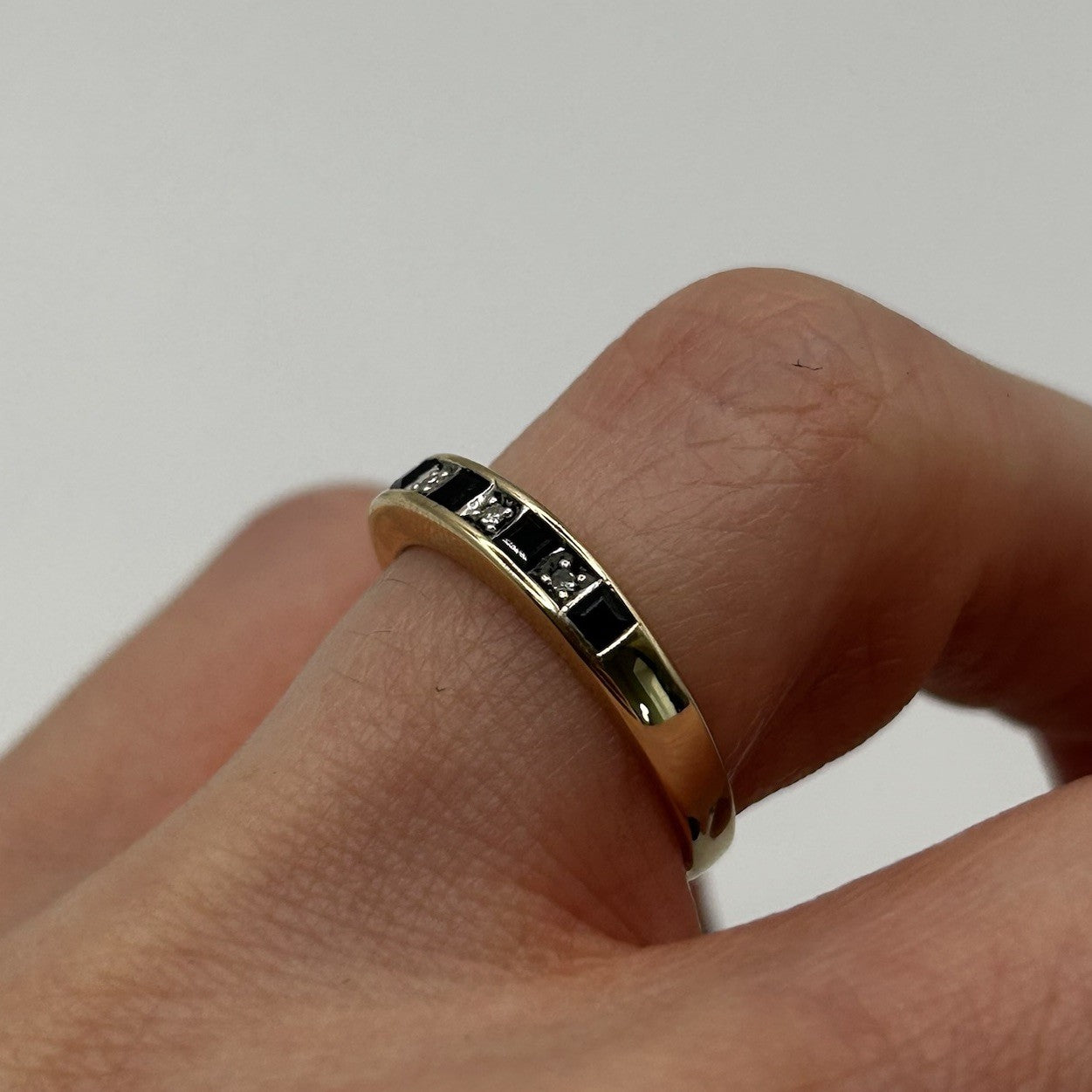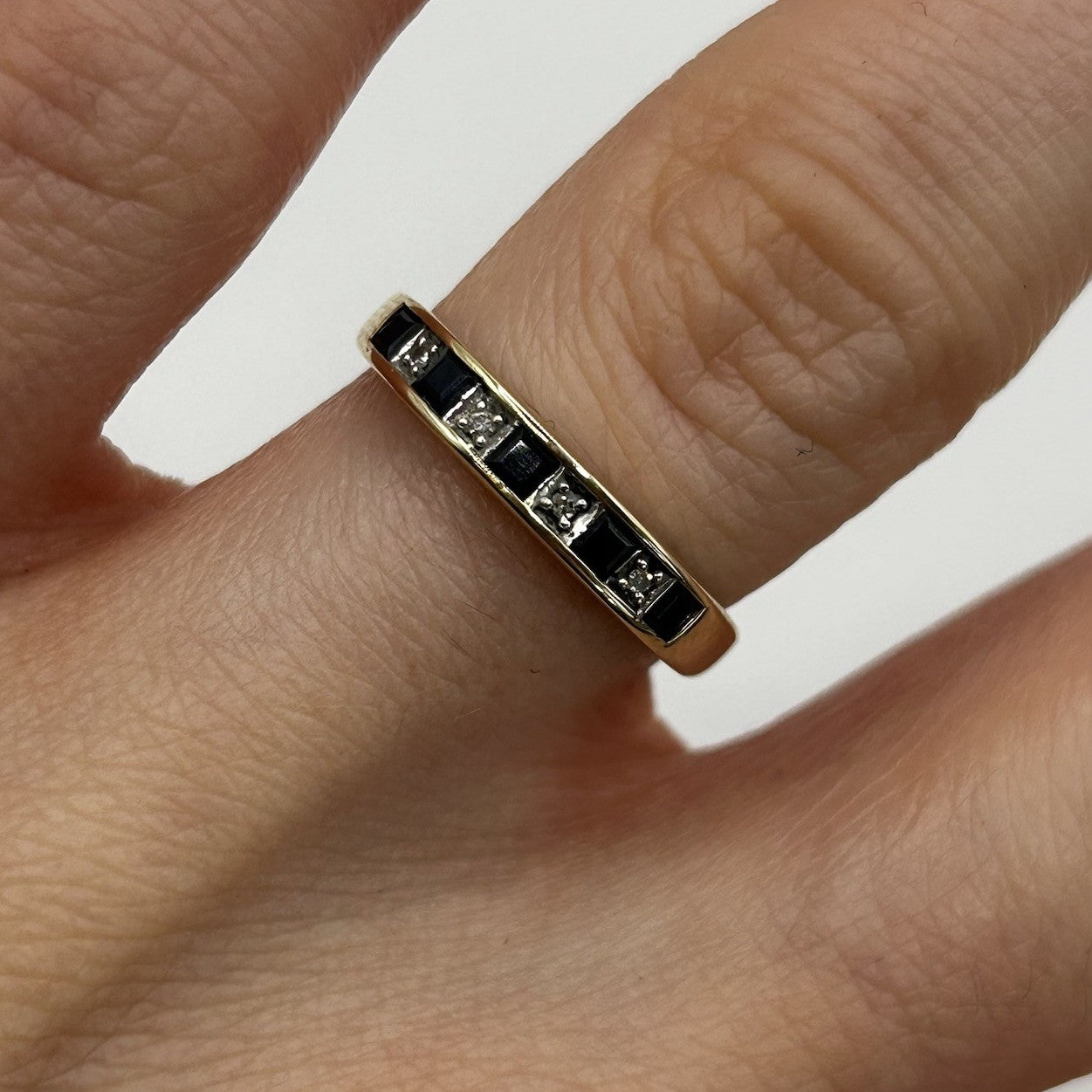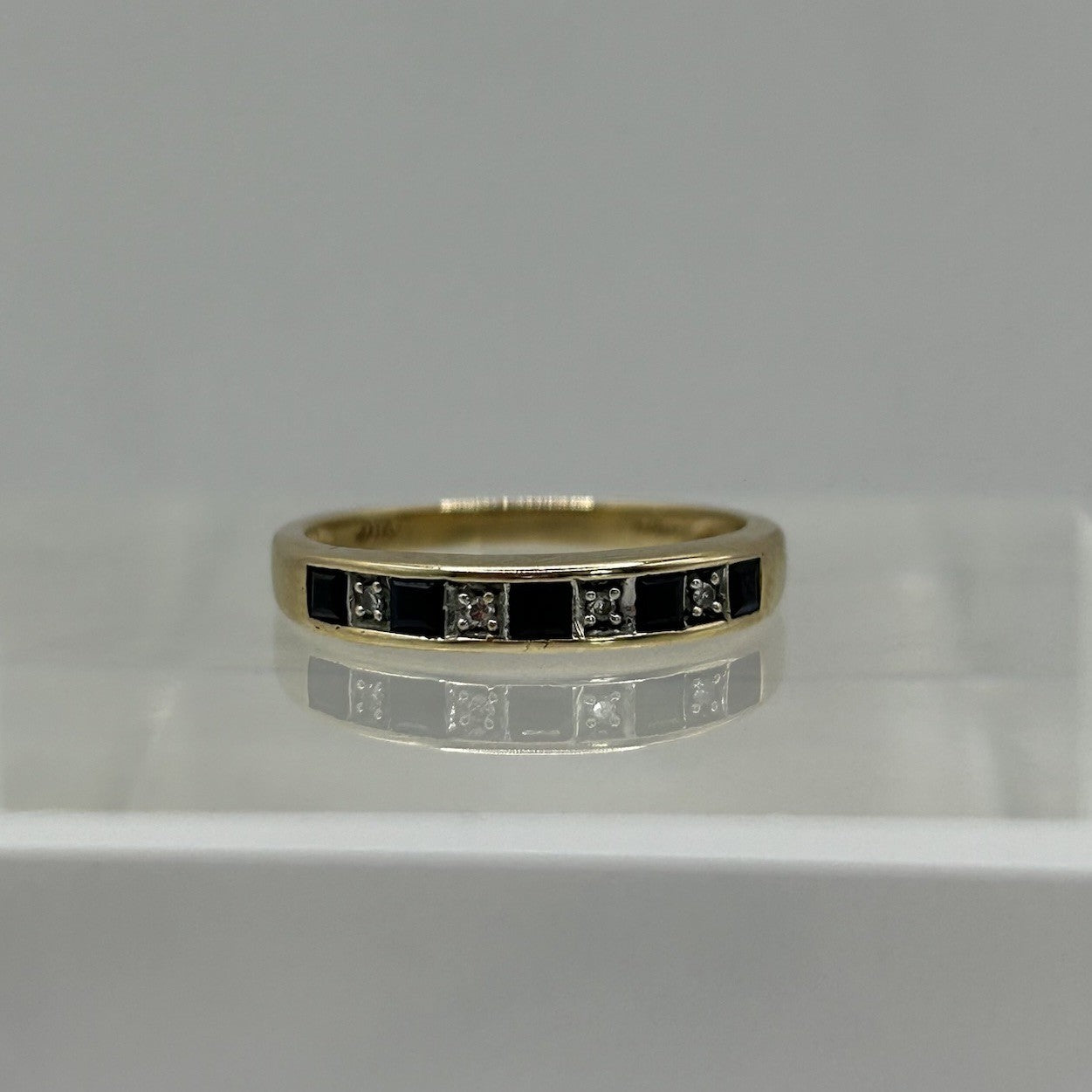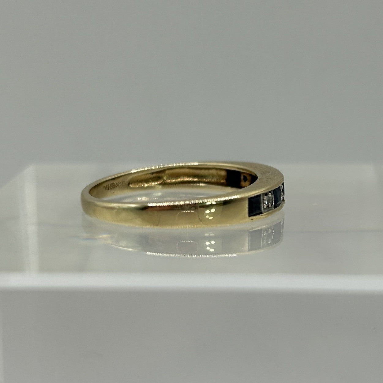 Diamond & Sapphire Half Eternity Ring 9ct 375 Yellow Gold - Size K 1/2