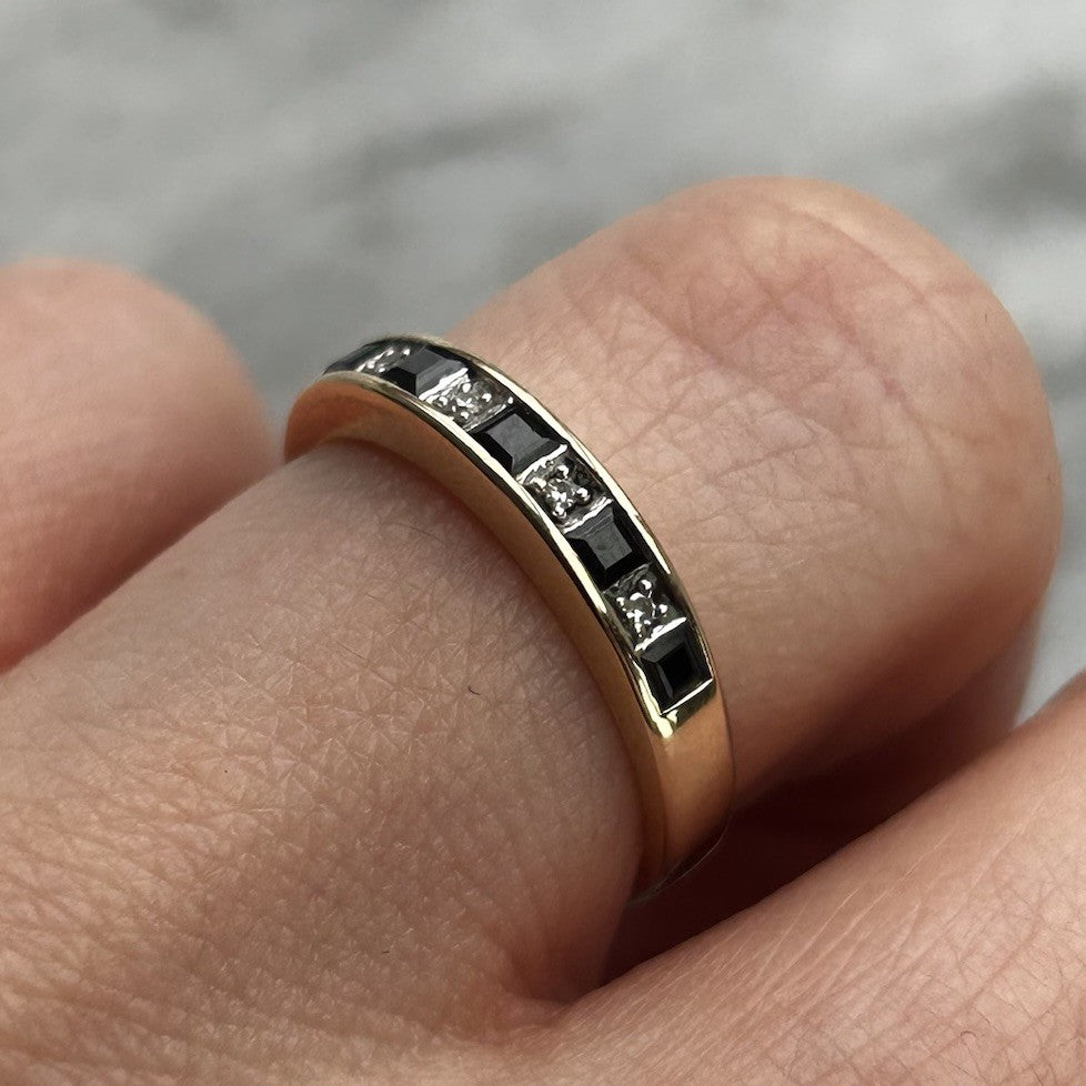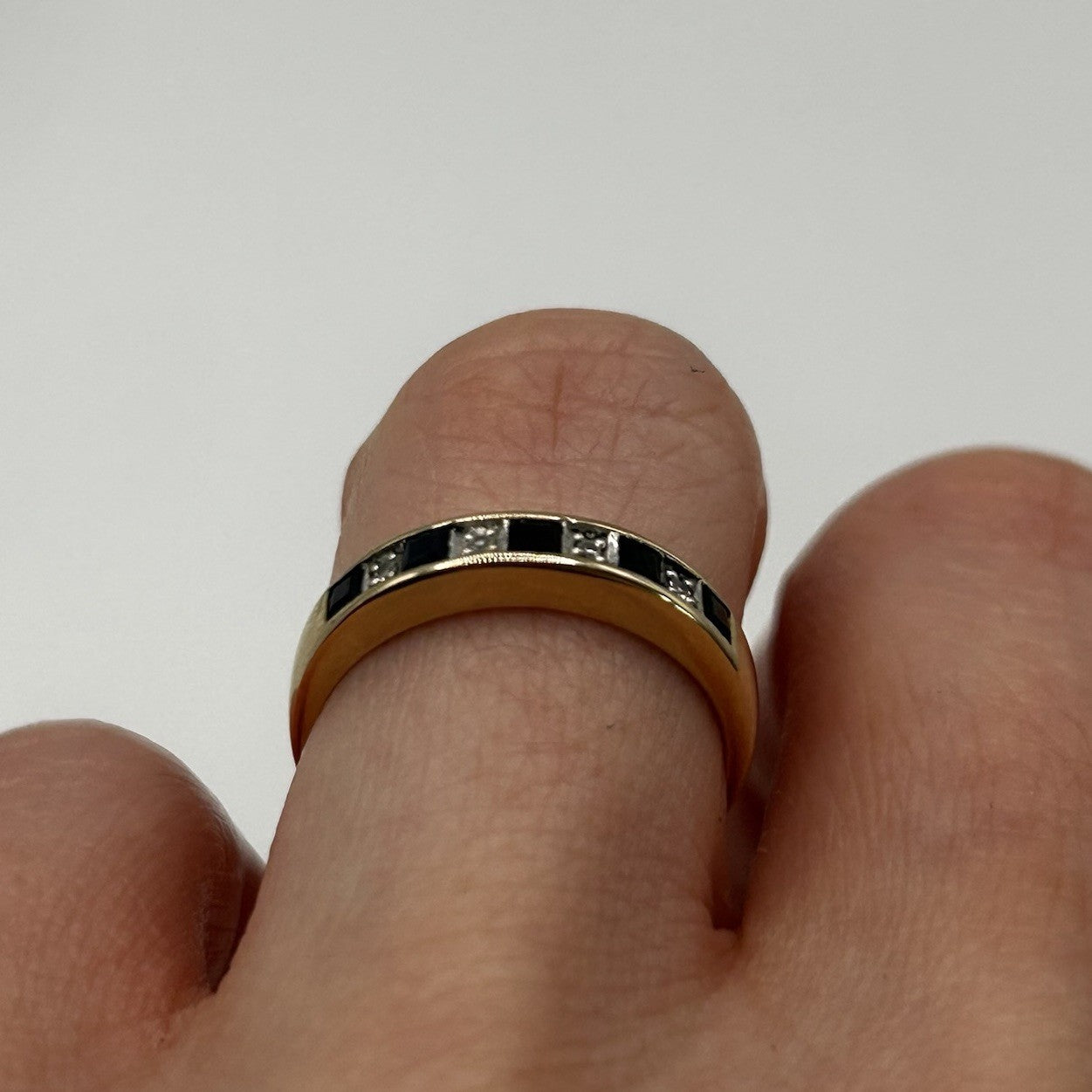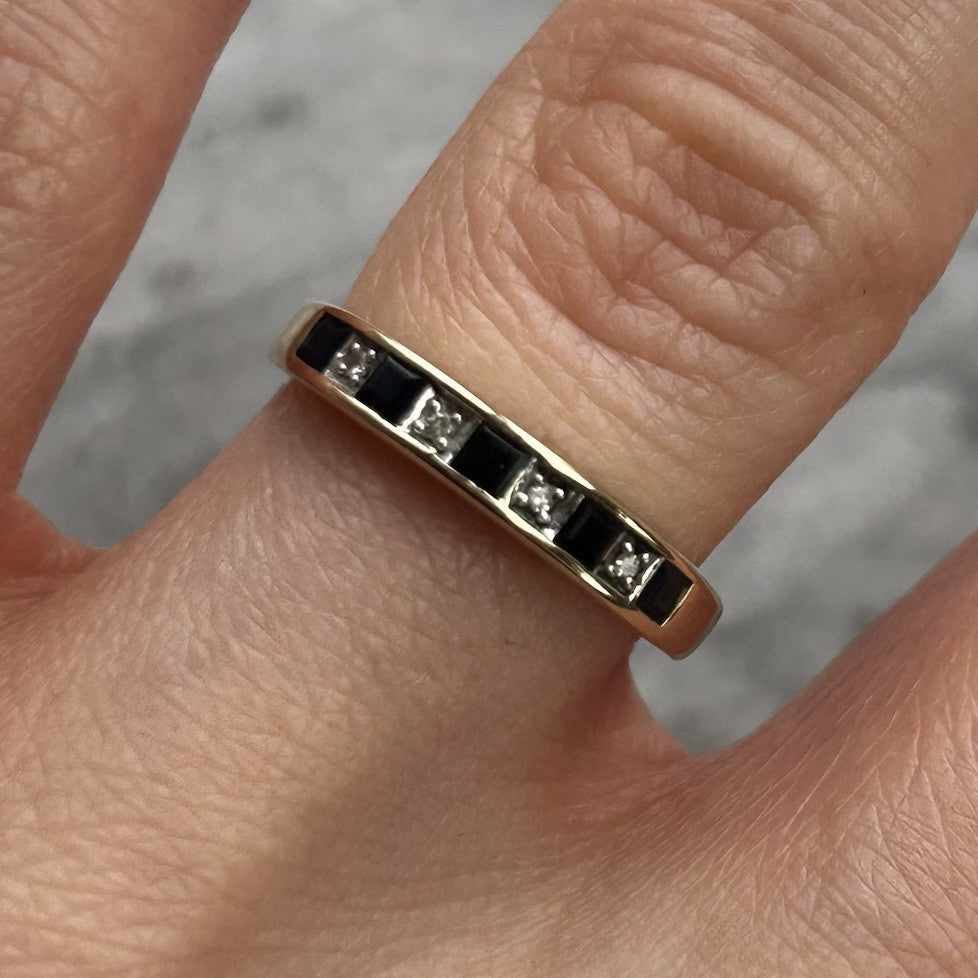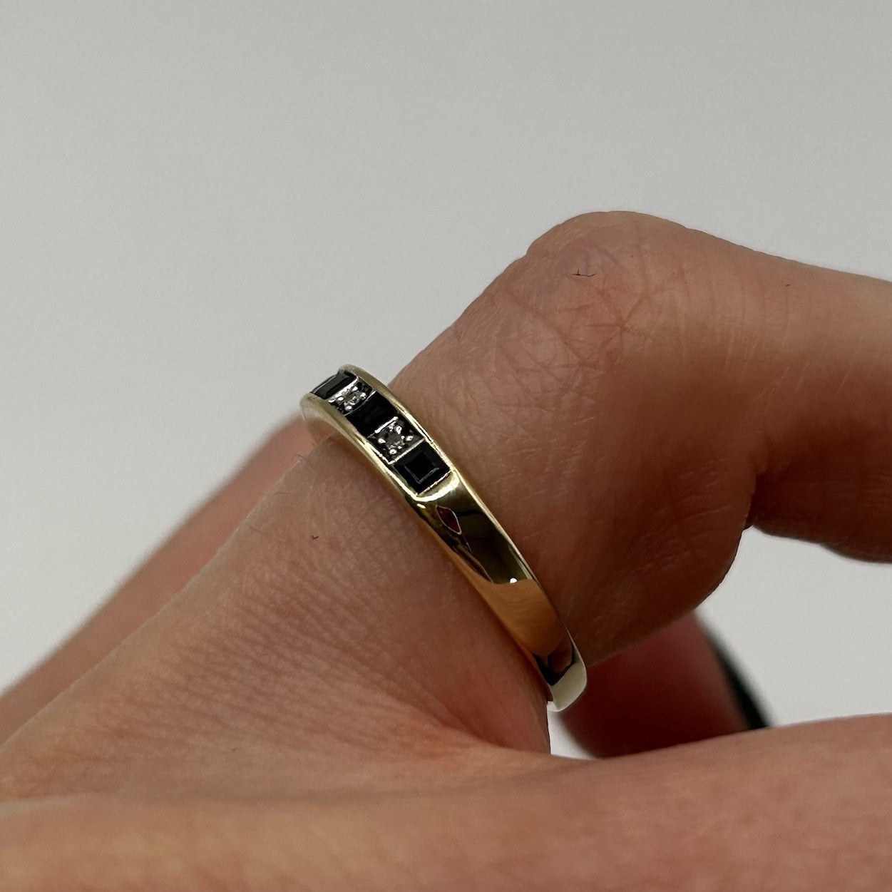 Diamond & Sapphire Half Eternity Ring 9ct 375 Yellow Gold - Size K 1/2