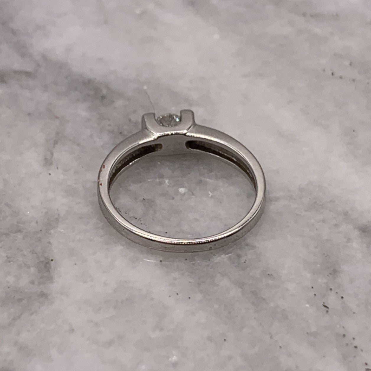 Diamond Solitaire Bar Set Ring 9ct 375 White Gold - Size K 1/2