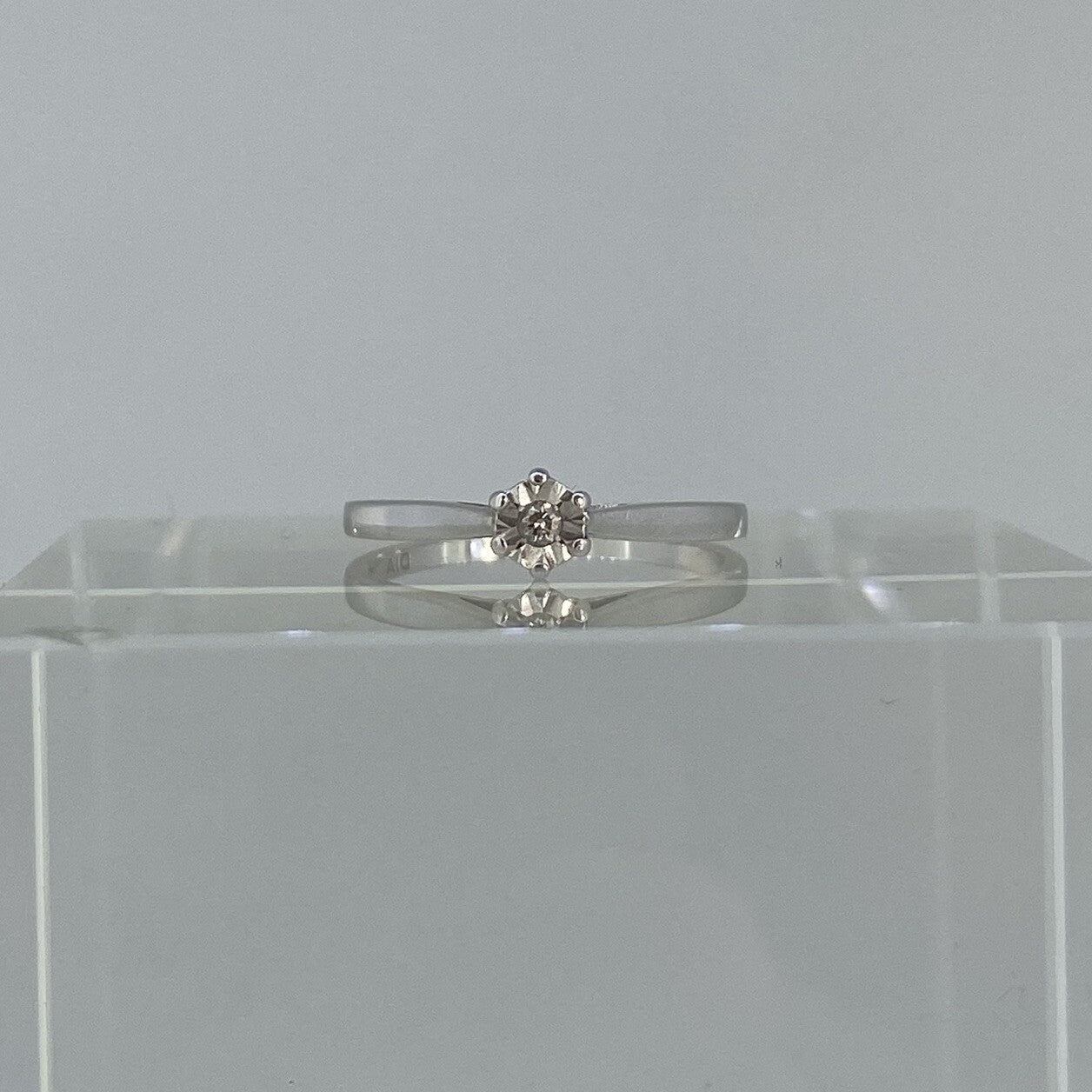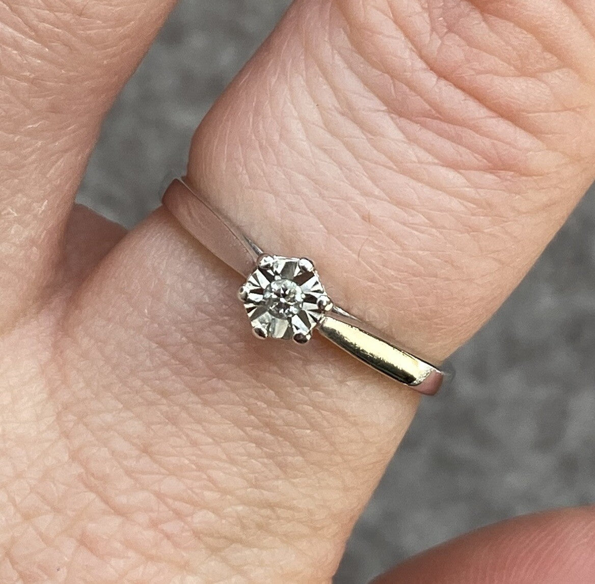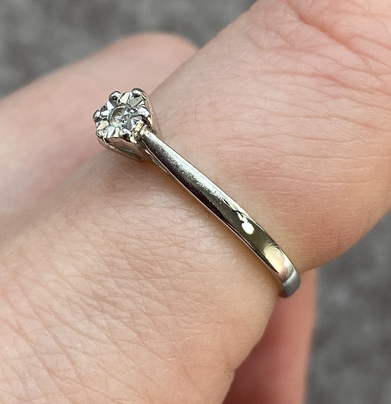 Diamond Solitaire Illusion Set Ring 9ct 9k White Gold - Size M