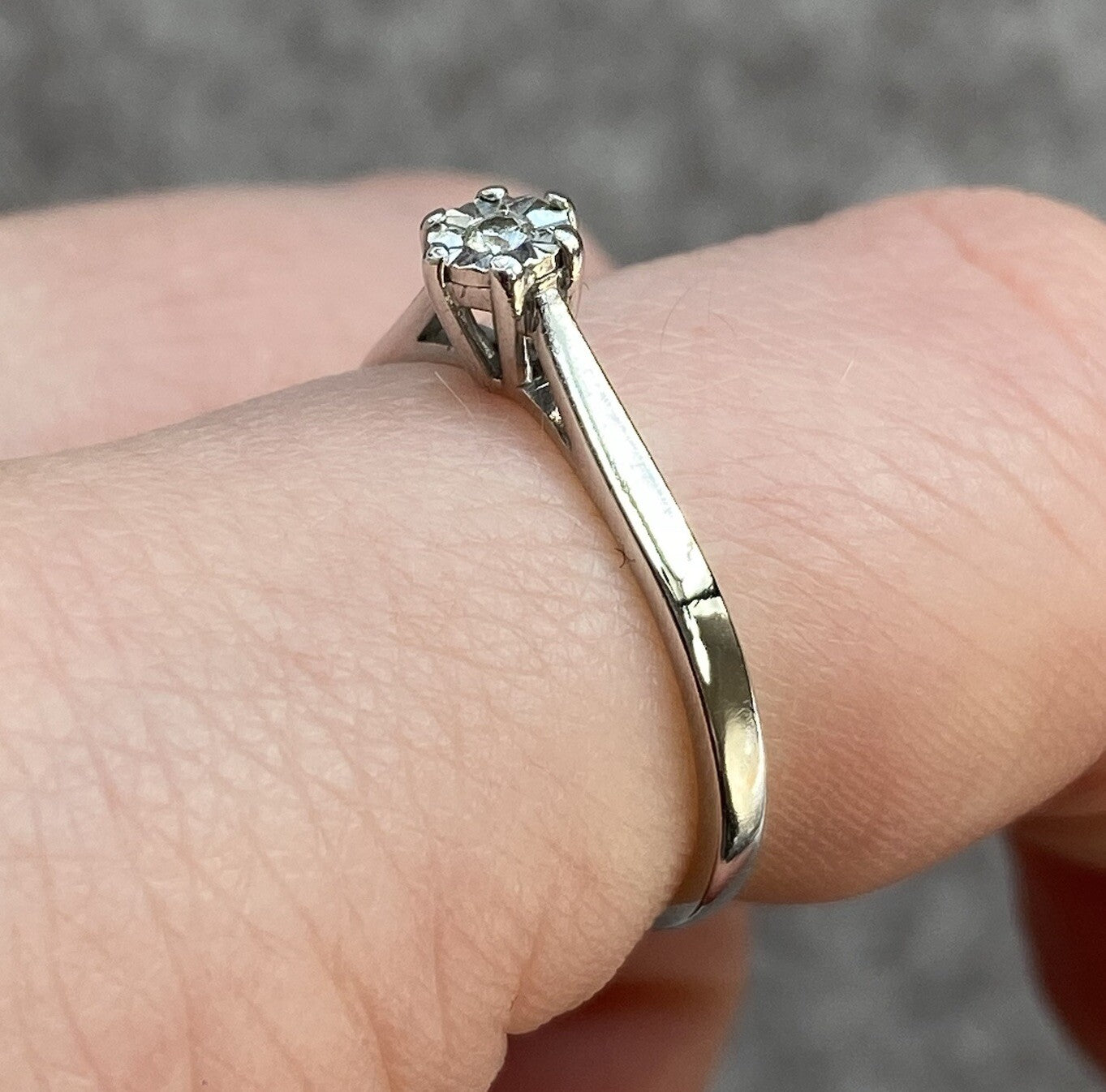 A simply beautiful white gold solitaire ring featuring a single illusion set diamond.
