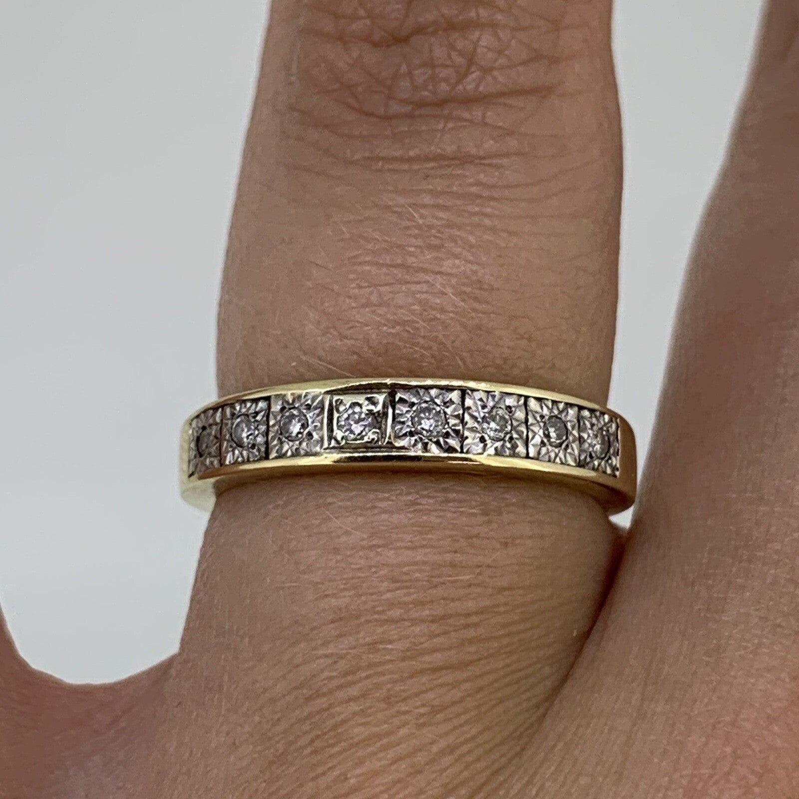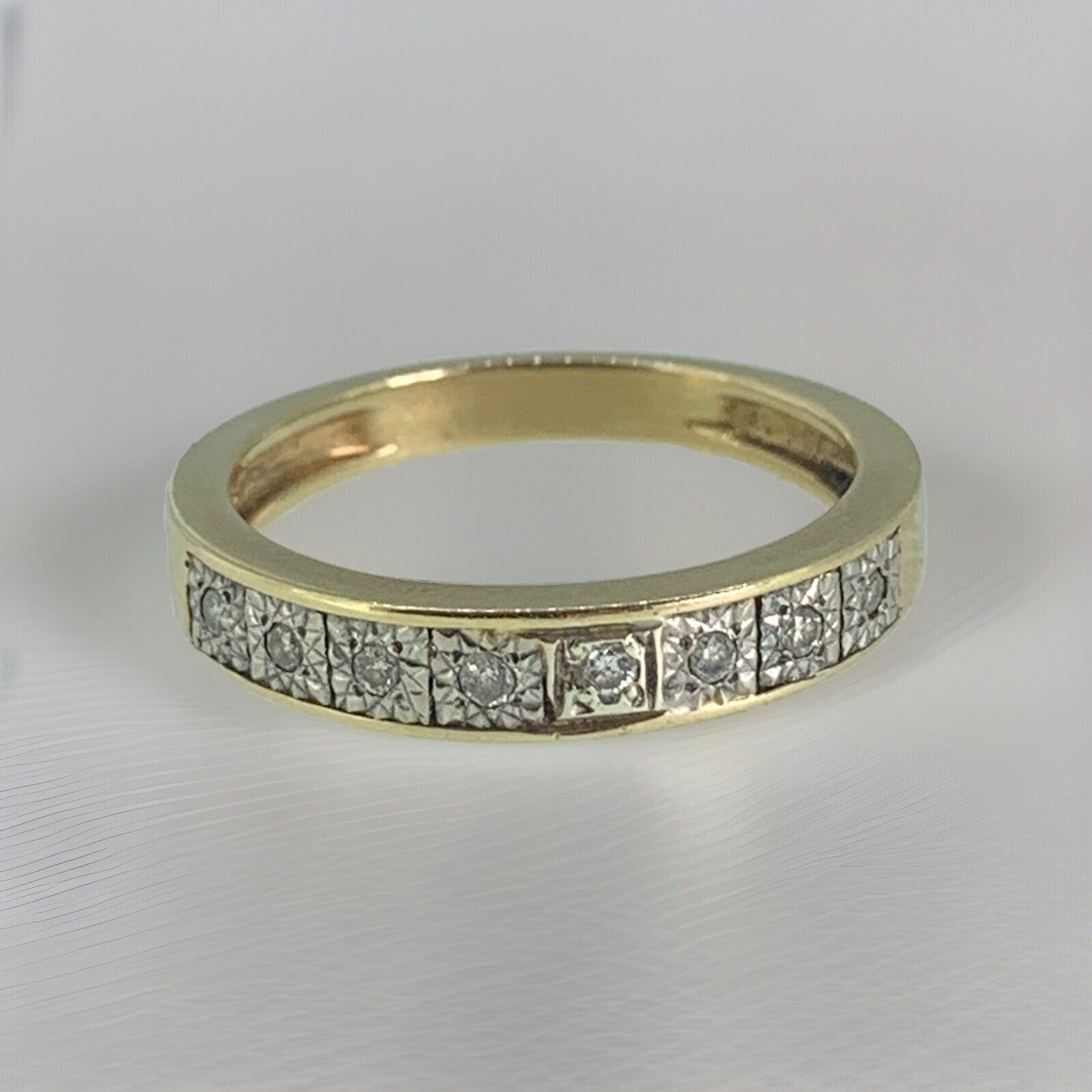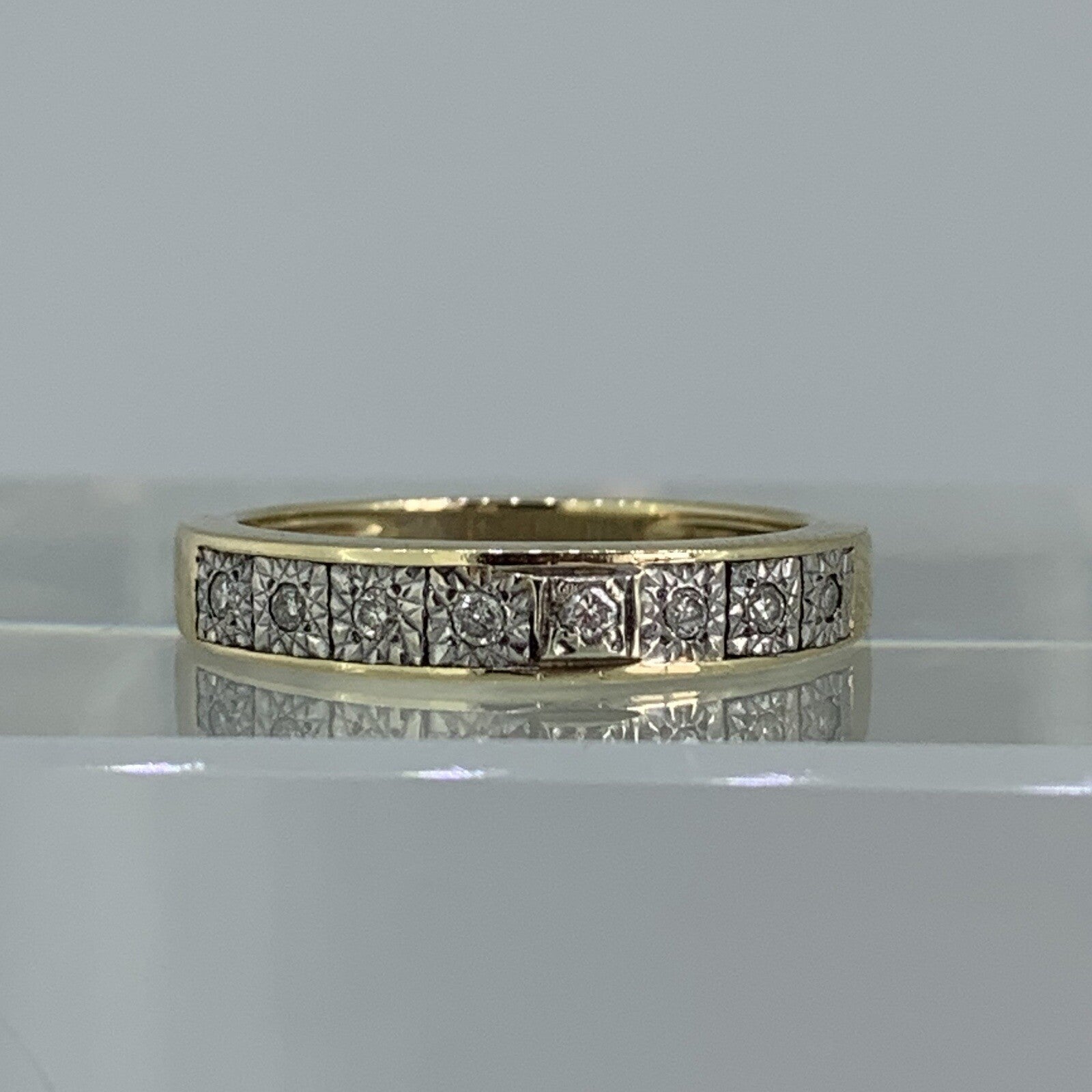 Illusion-Set Diamond Half Eternity Band Ring 9ct 375 Yellow Gold - Size K 1/2