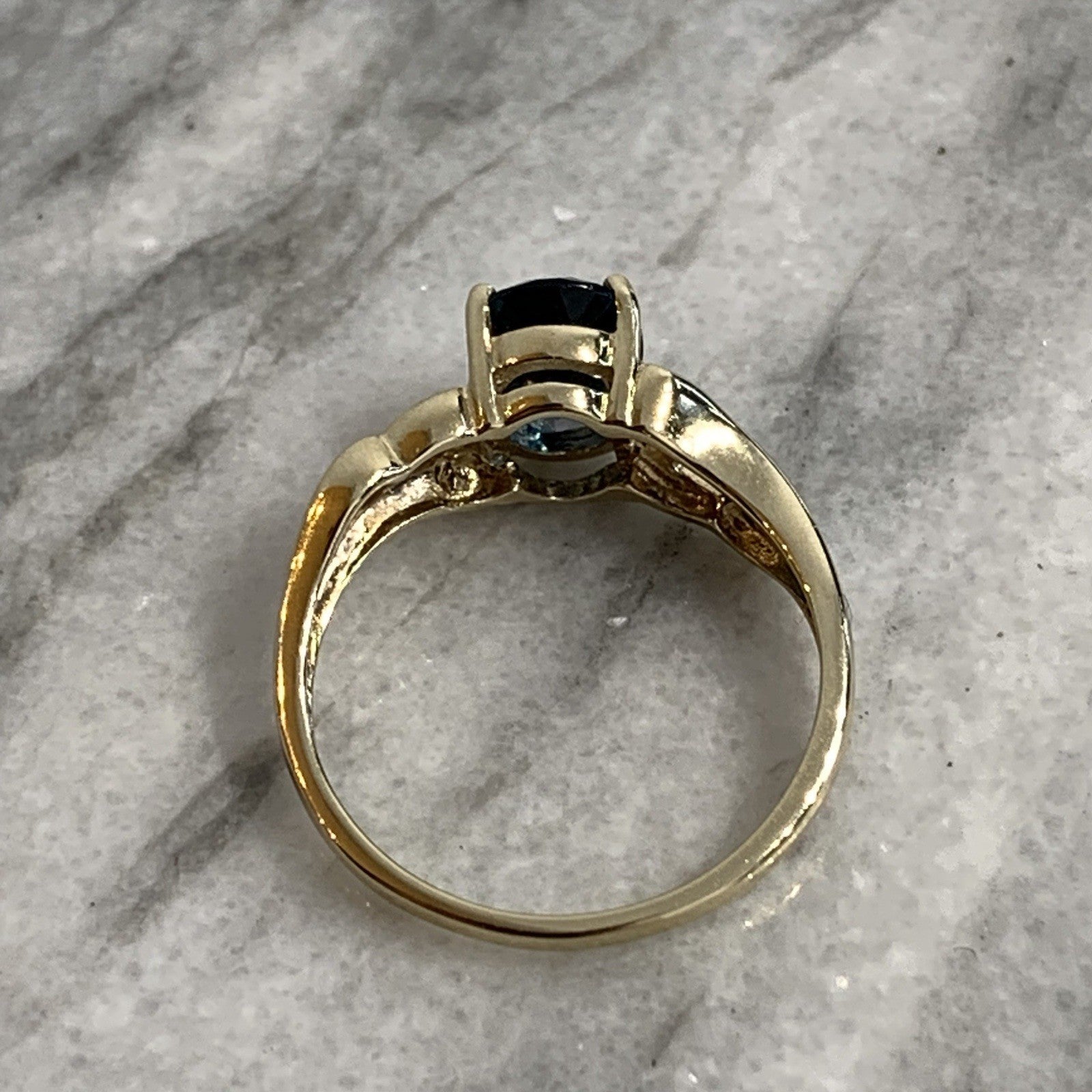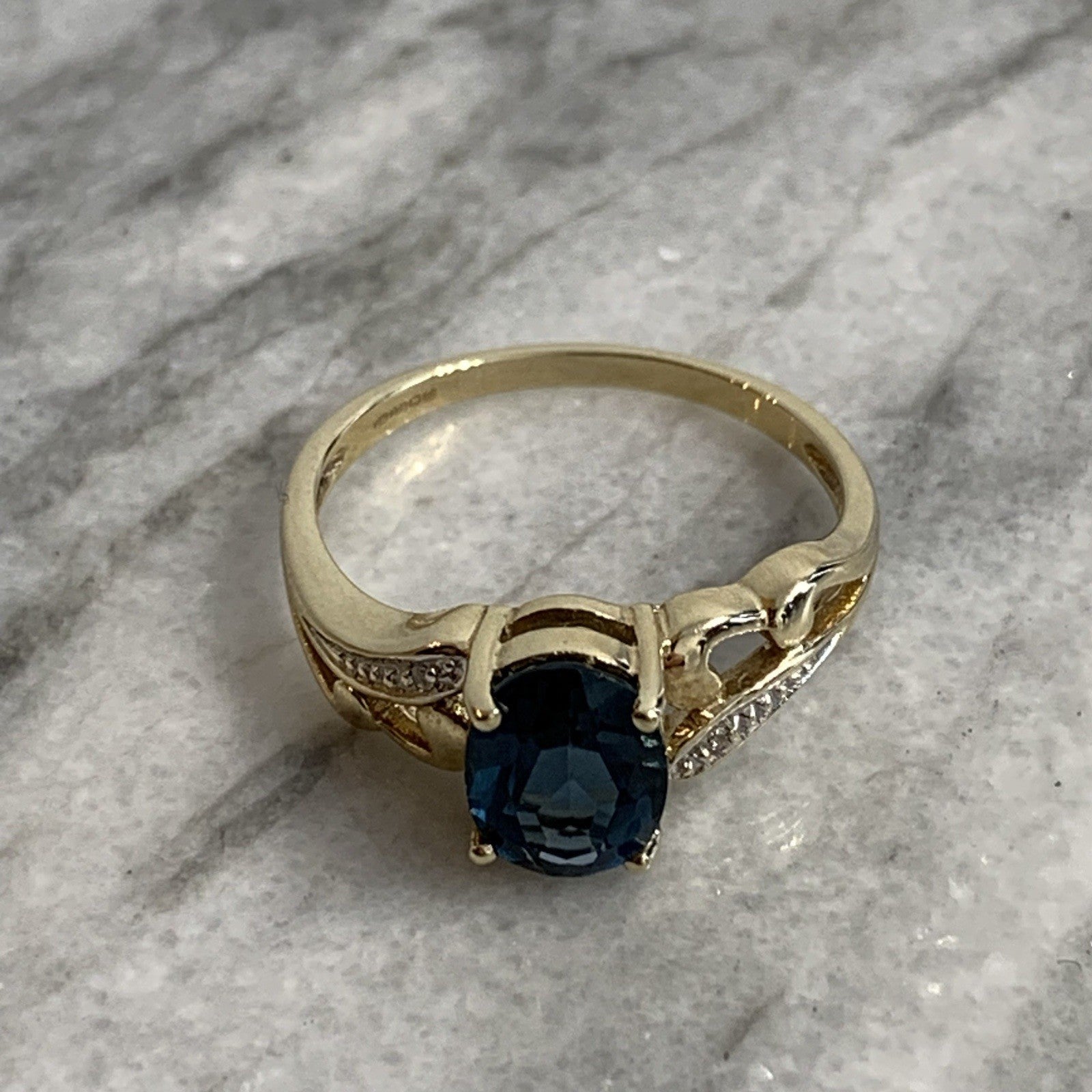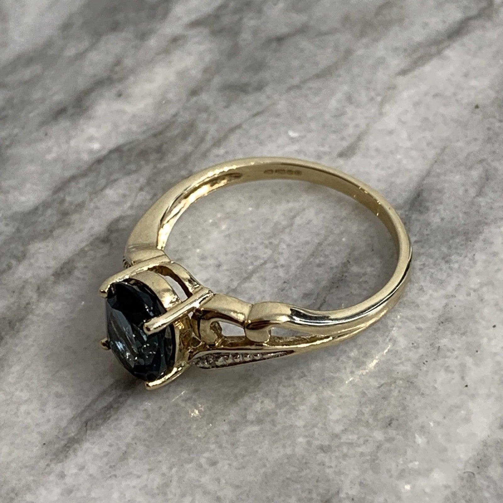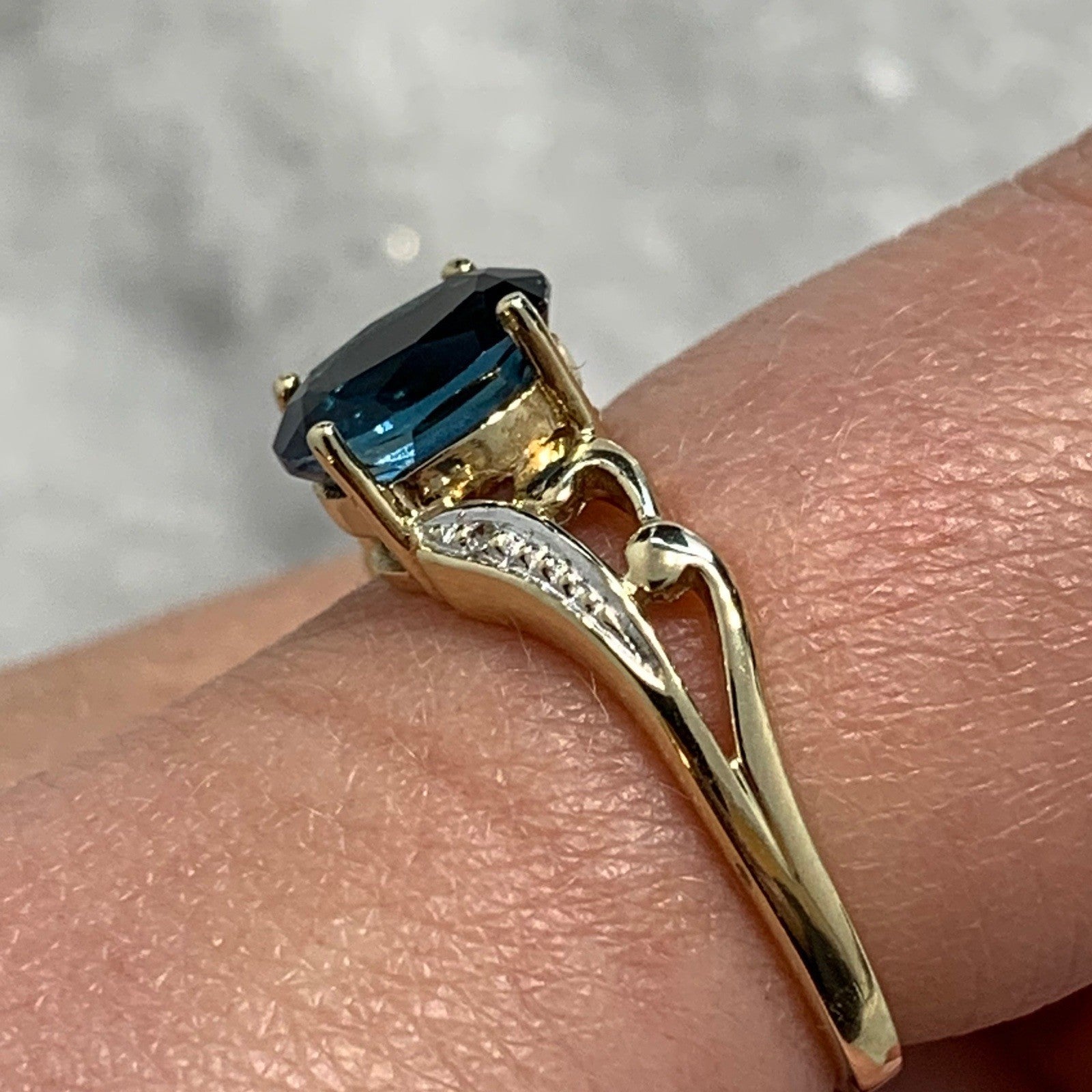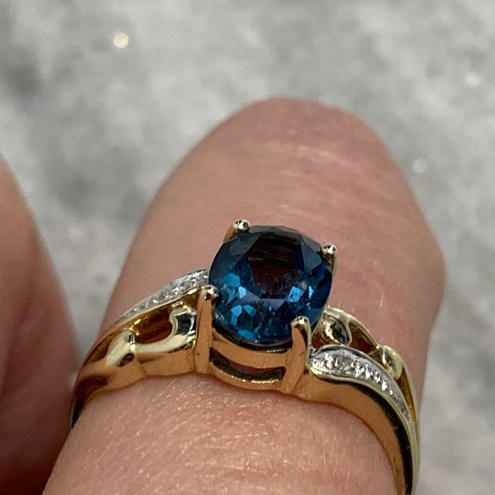 London Blue Topaz & Diamond Open Shoulder Ring 9ct 375 Yellow Gold - Size N