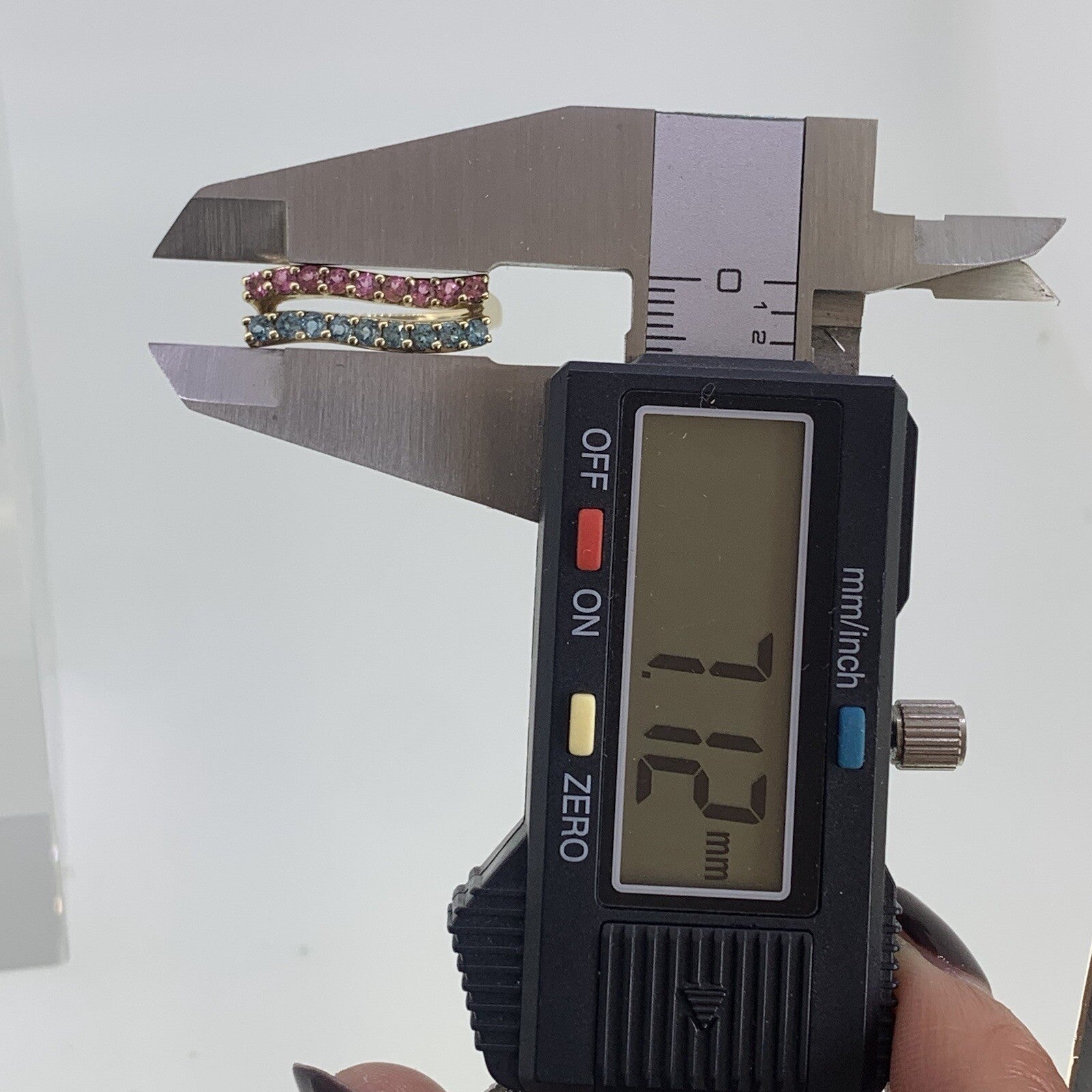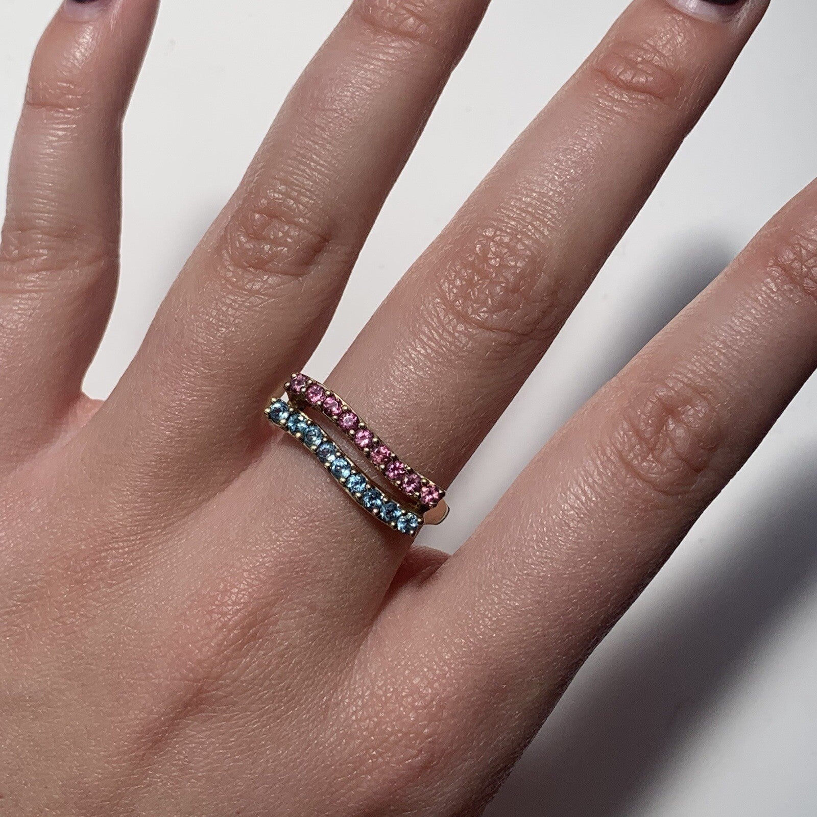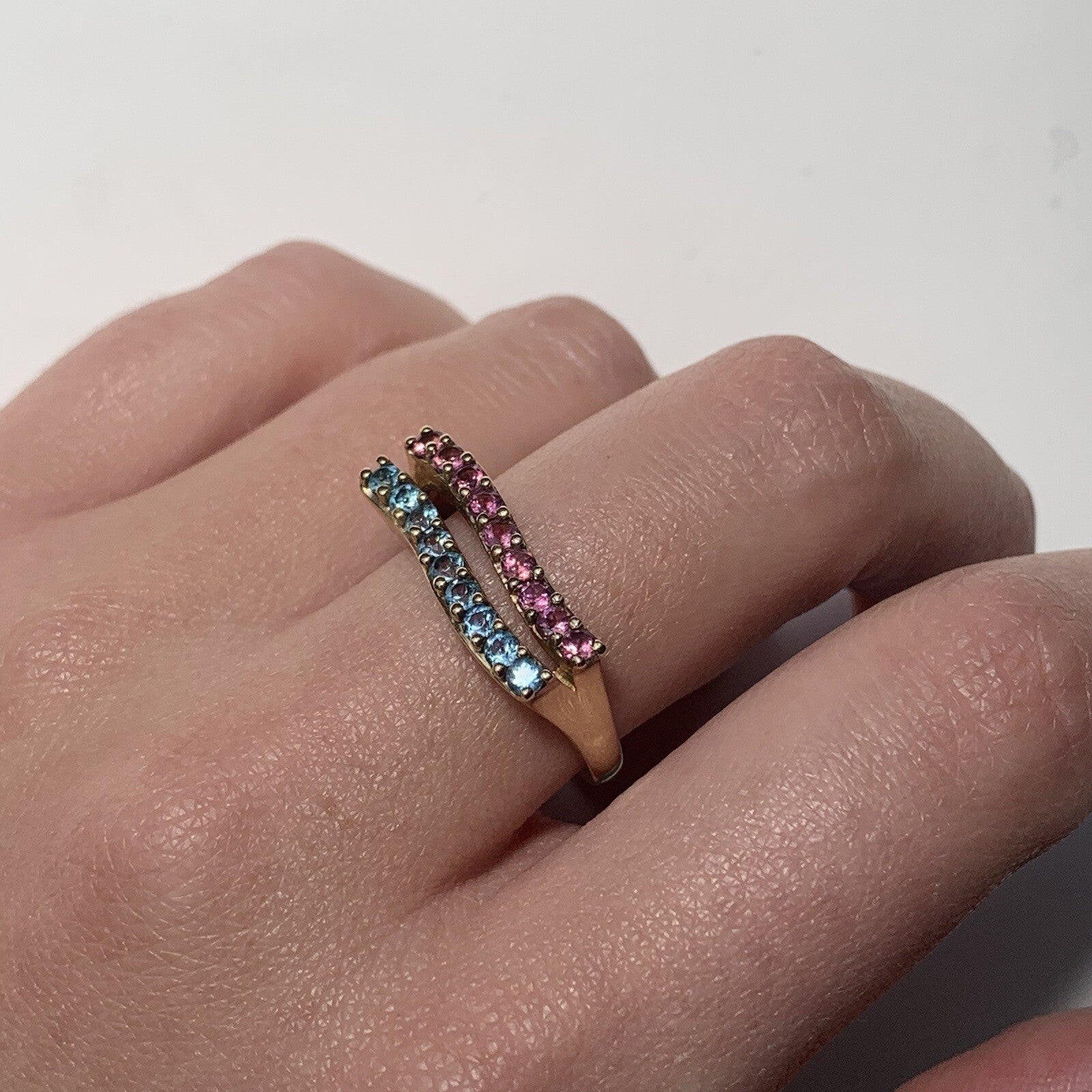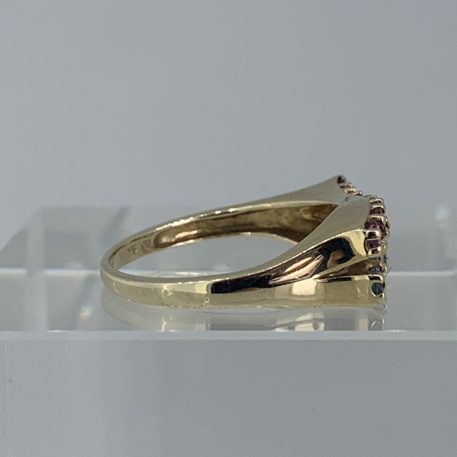 Rhodolite Garnet & Blue Topaz Unique Wave Ring 9ct 375 Yellow Gold - Size Q