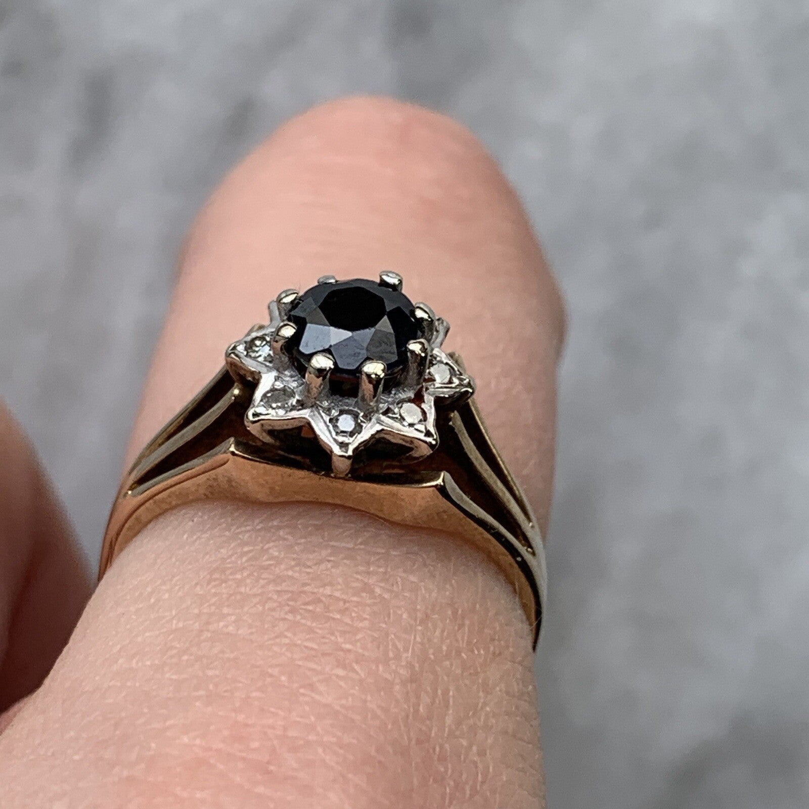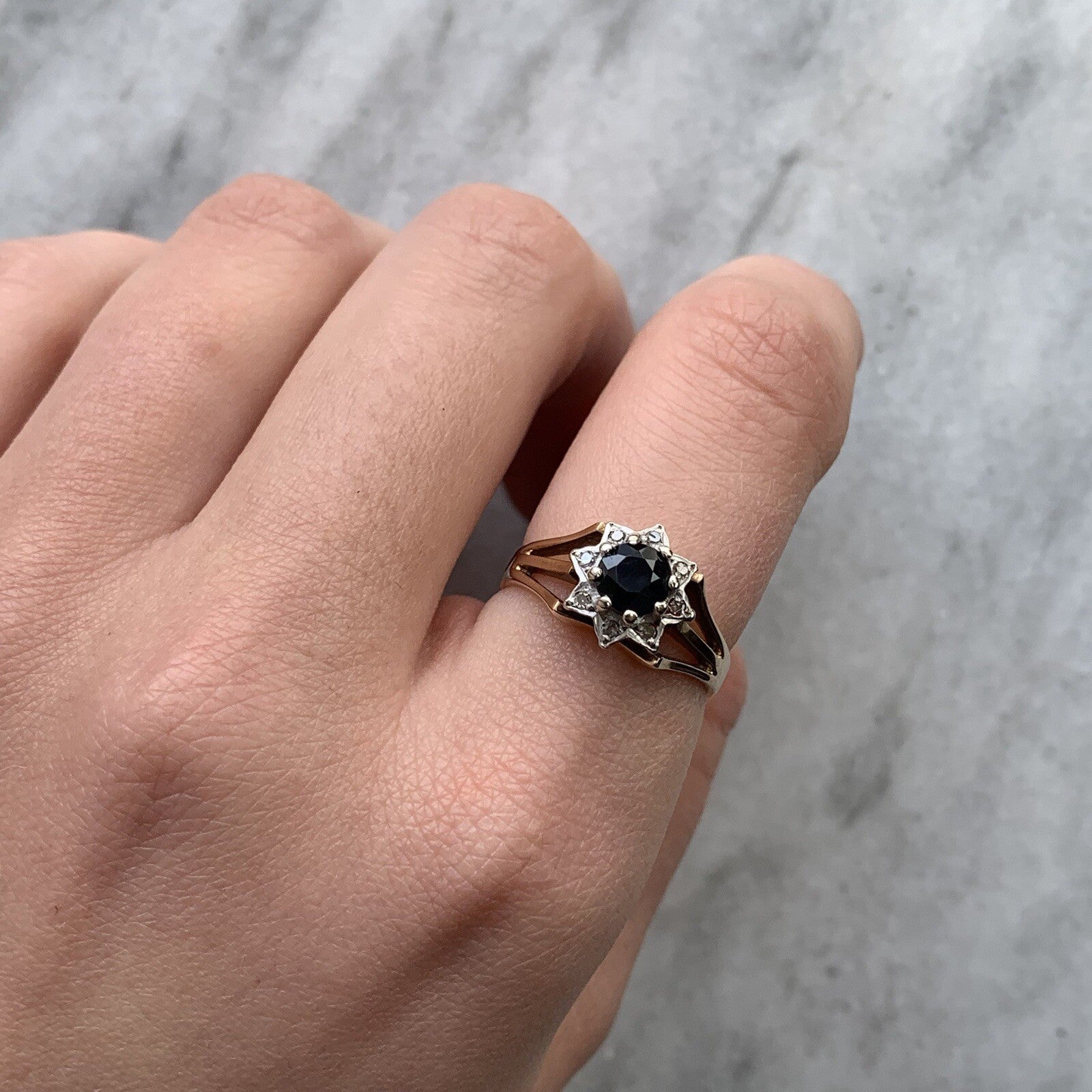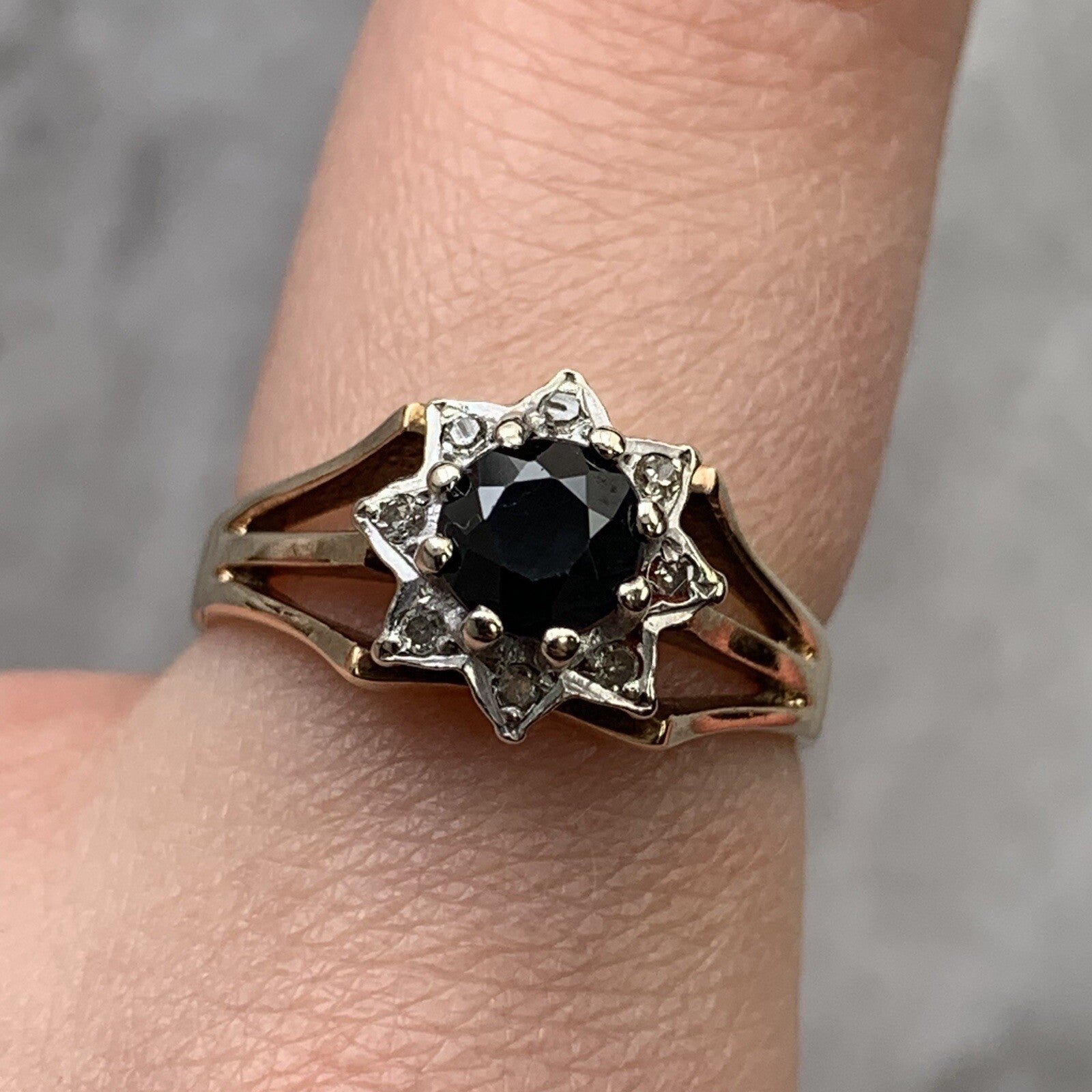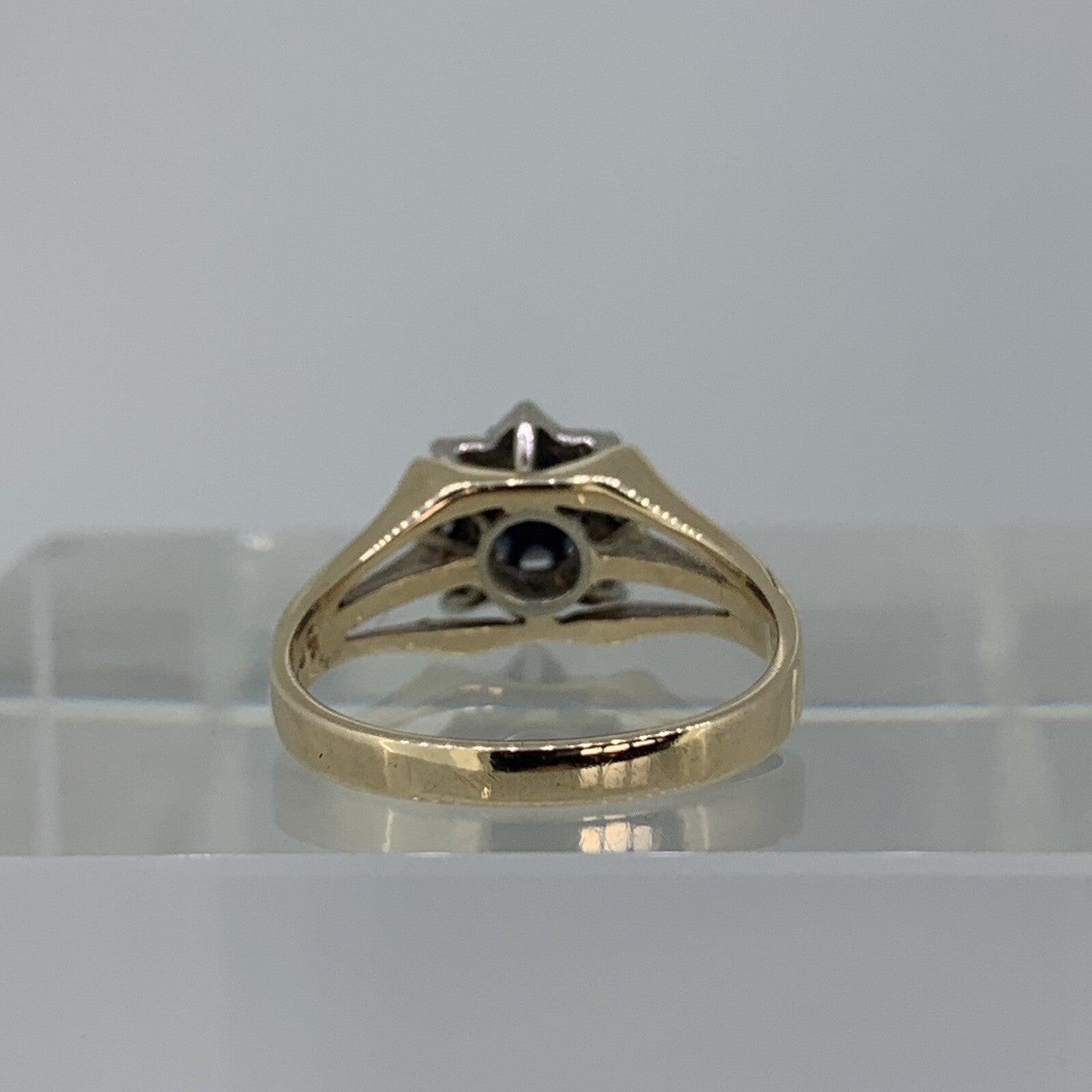 Sapphire & Diamond Daisy Open Shoulder Ring 9ct 9K Yellow Gold - Size M 1/2