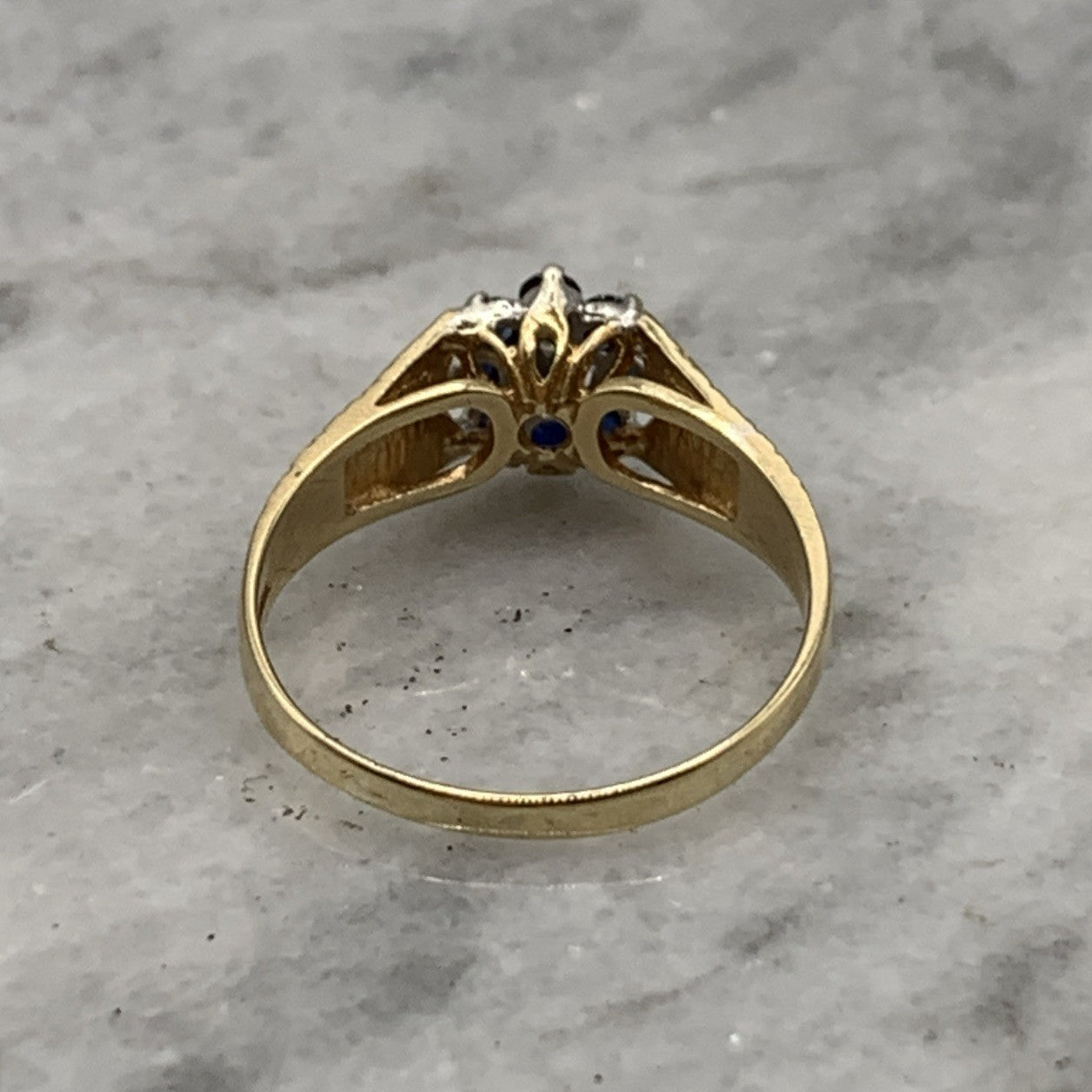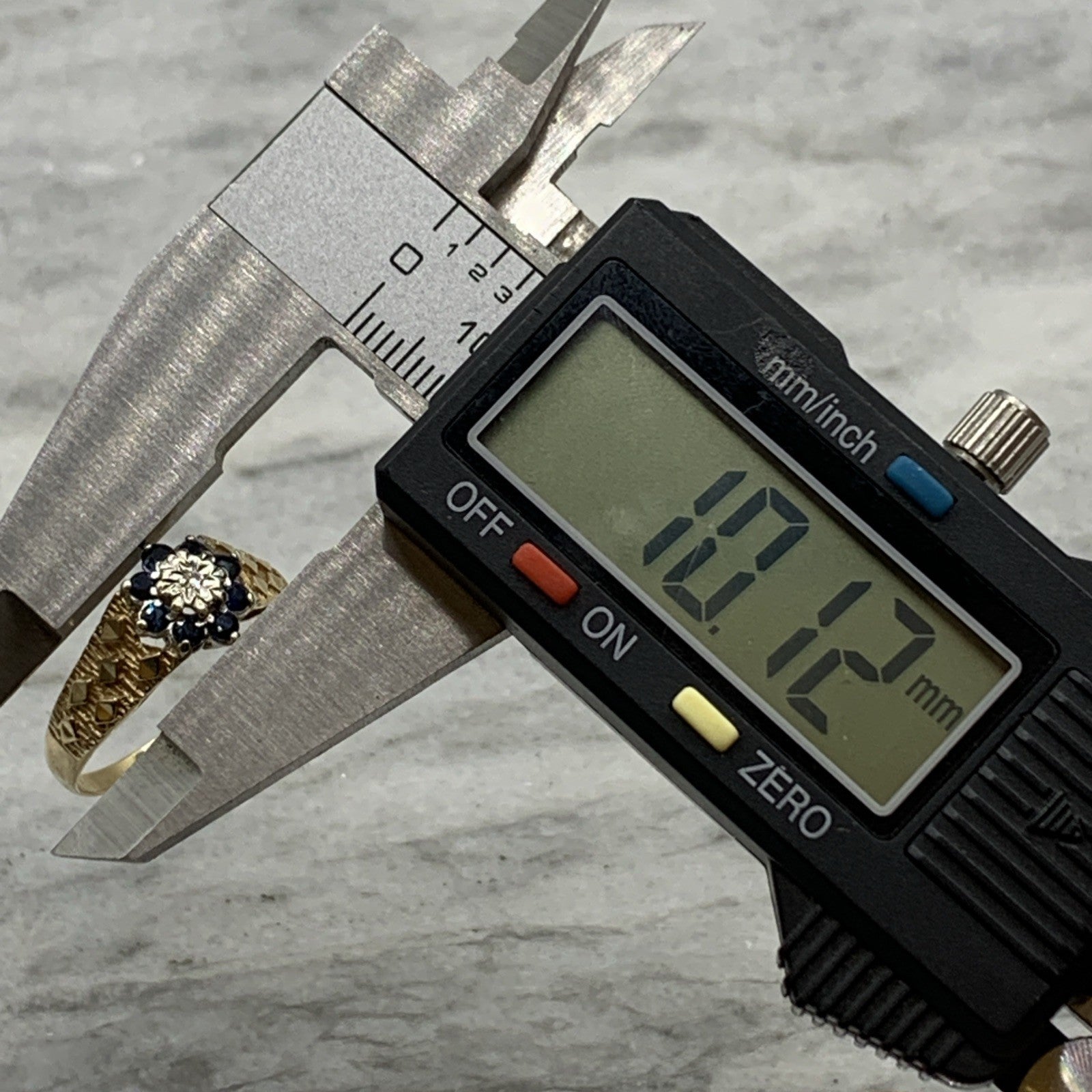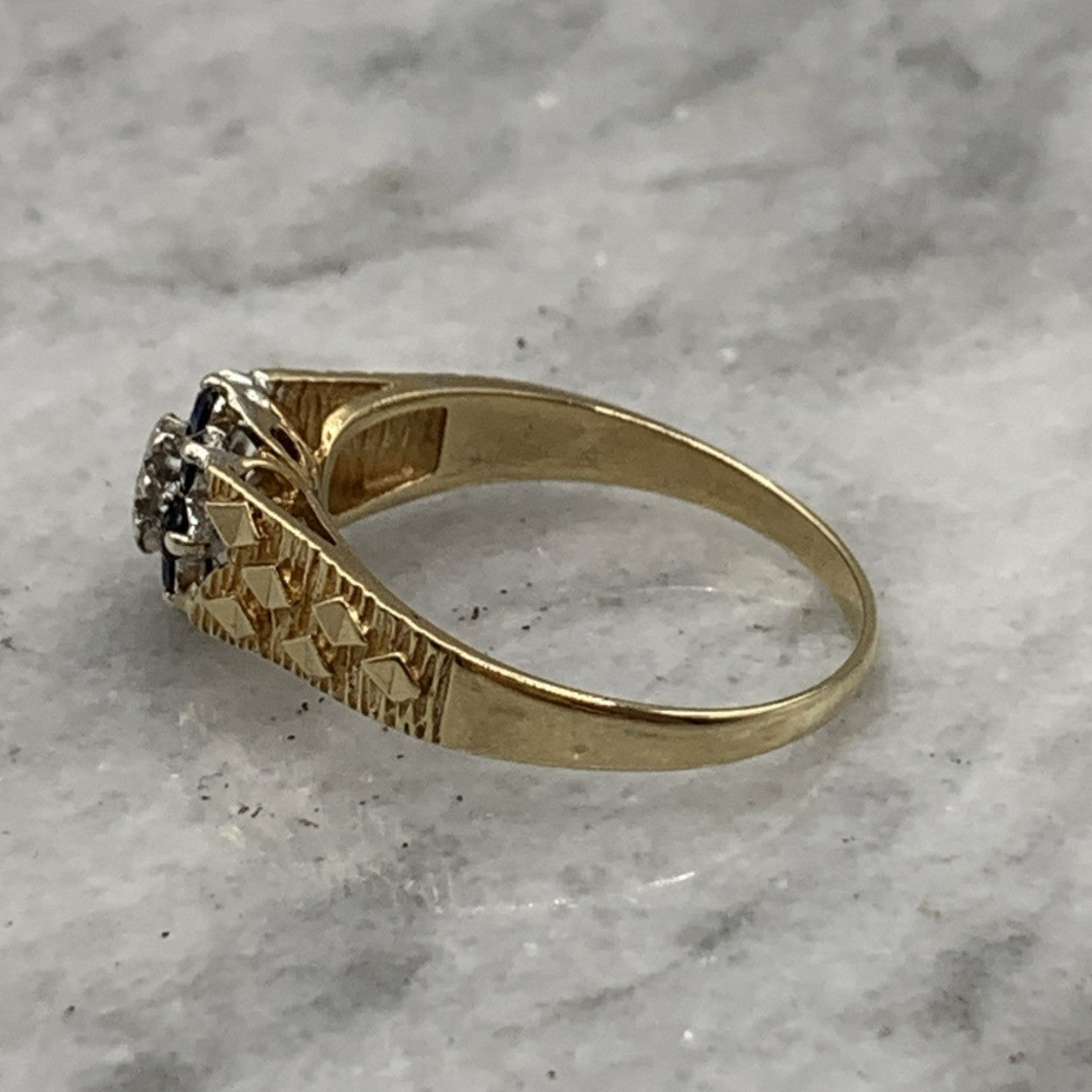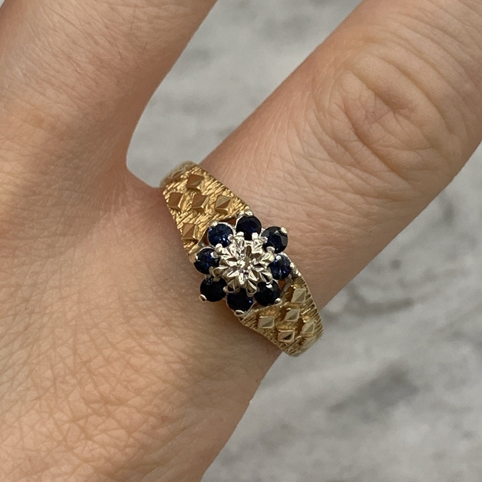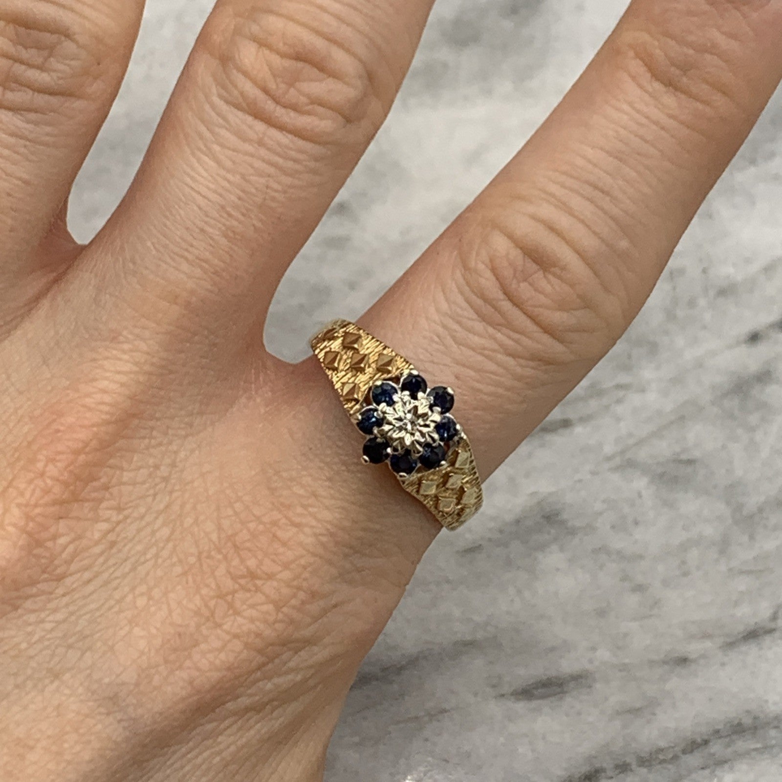 Sapphire & Diamond Flower Textured Ring 9ct 9k 375 Yellow Gold - Size V 1/2