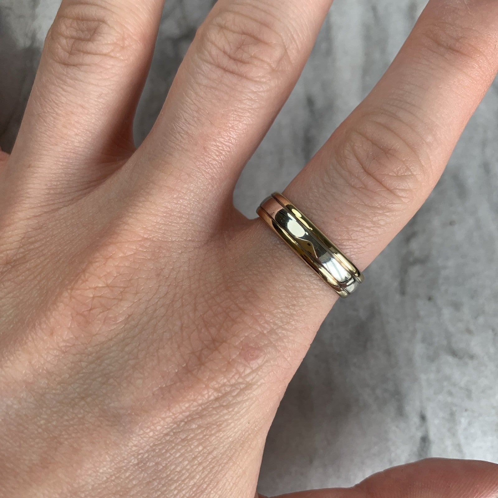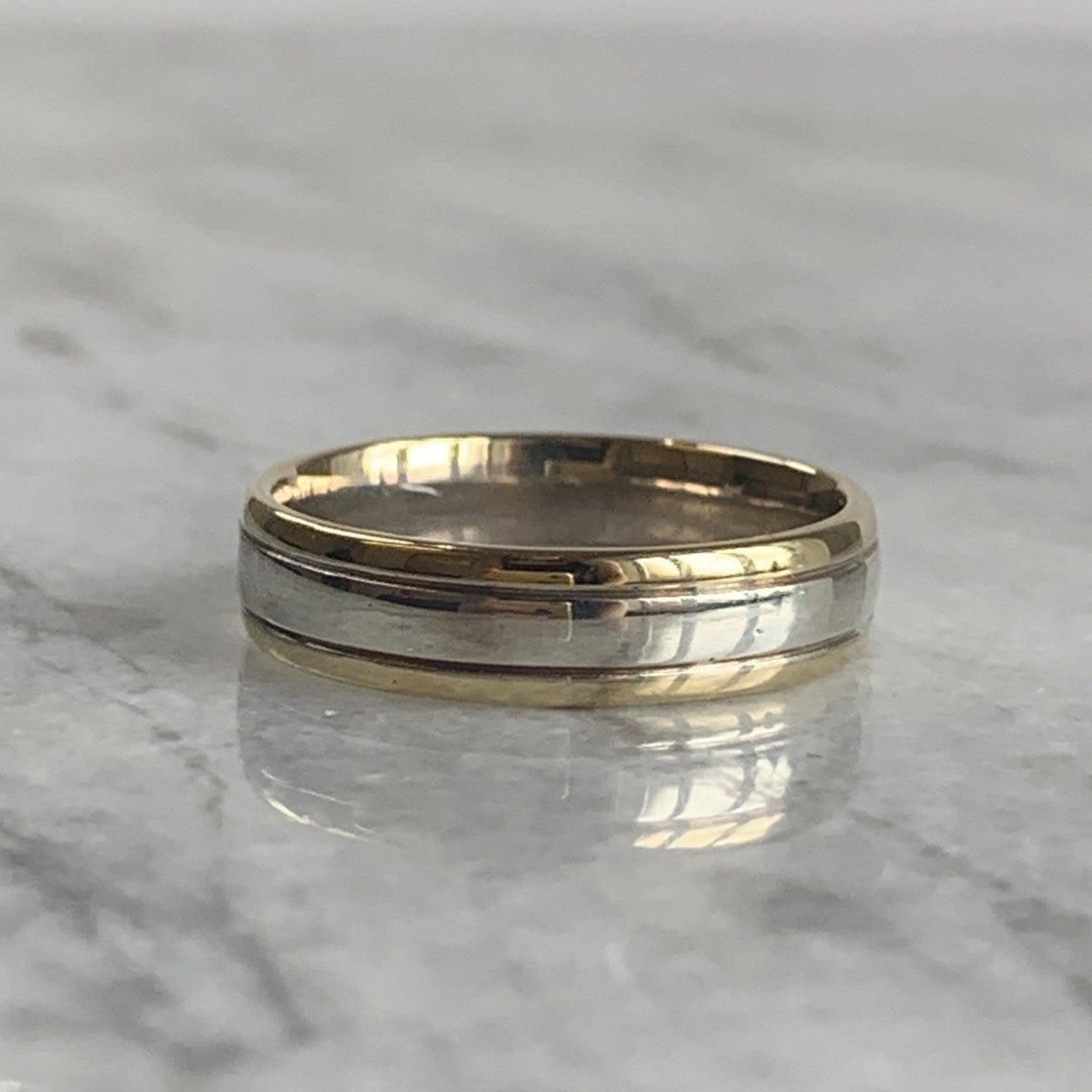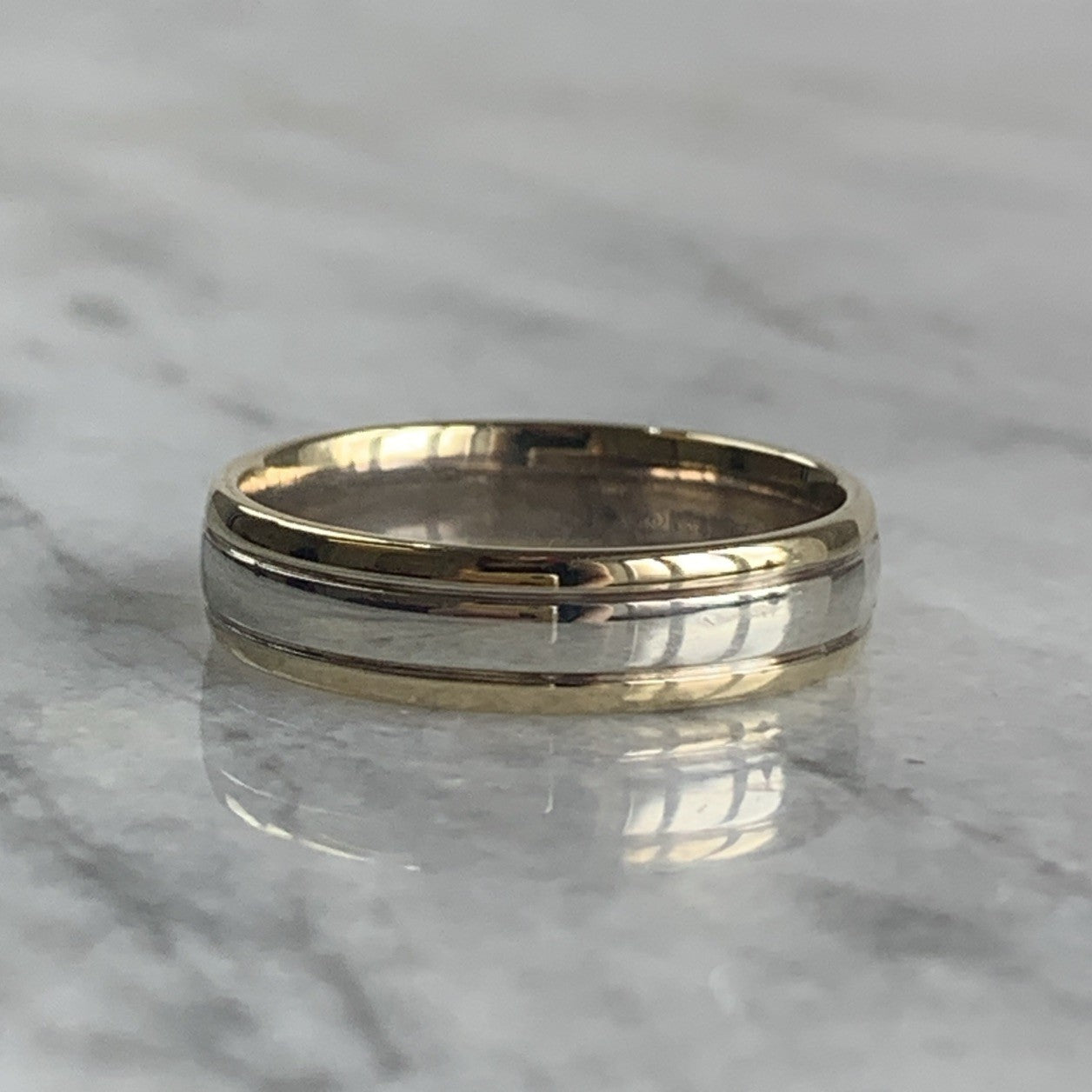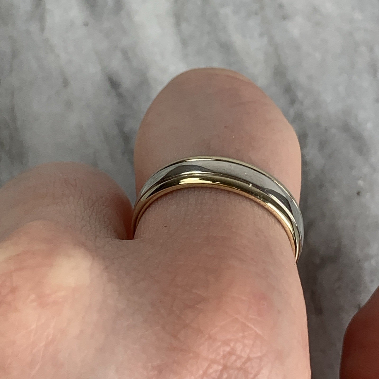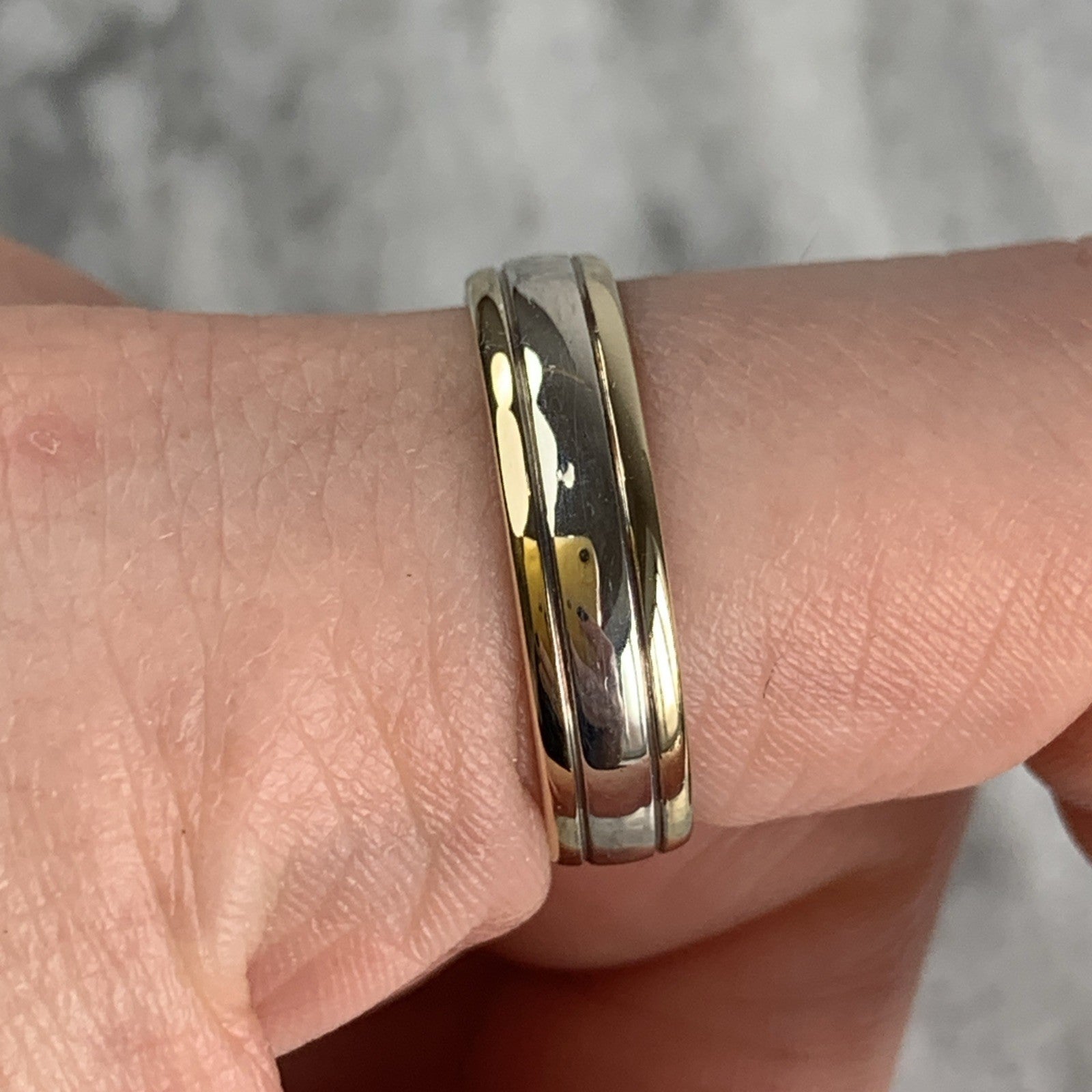 Two Tone Band Ring 925 Sterling Silver 9ct 375 Yellow Gold - Size P 1/2