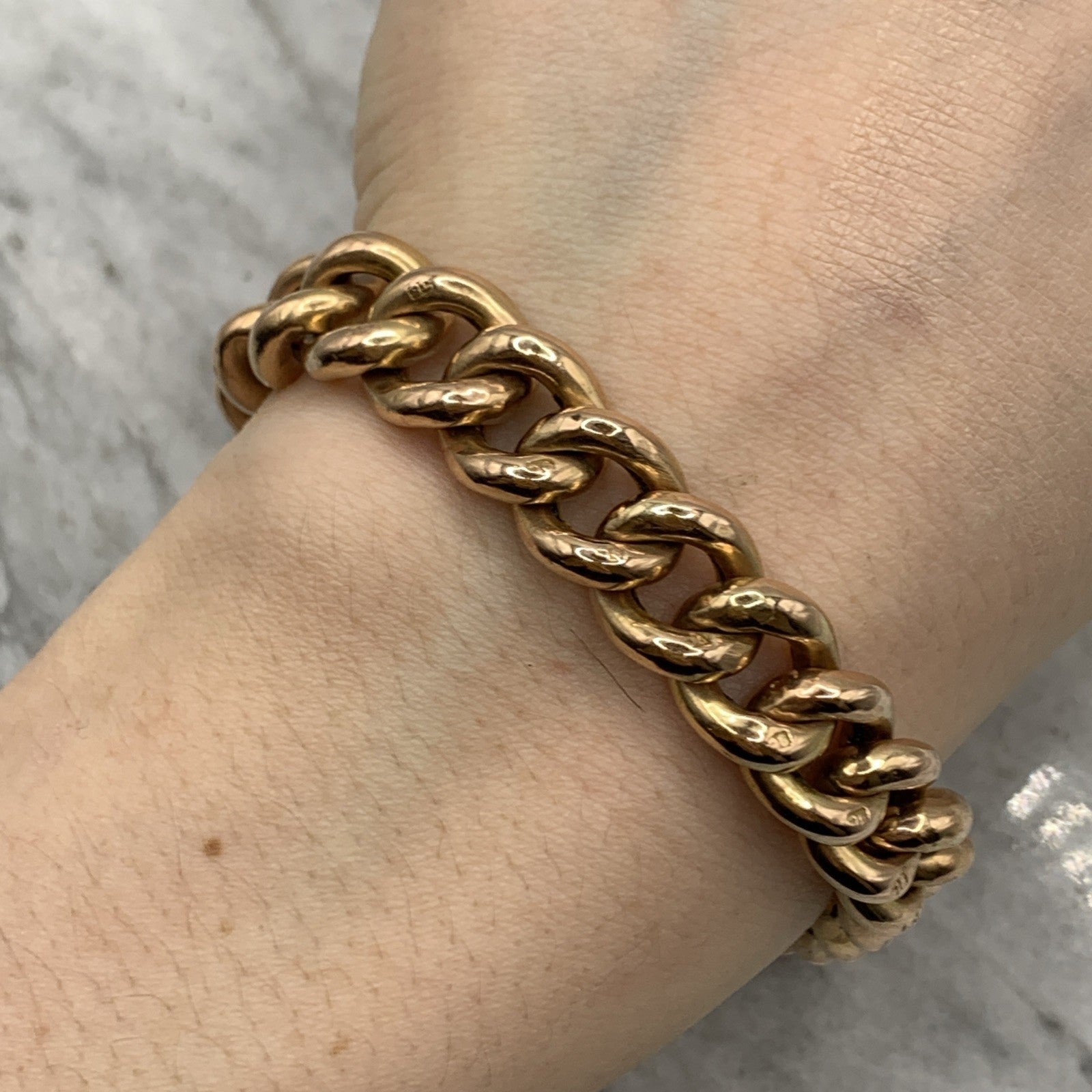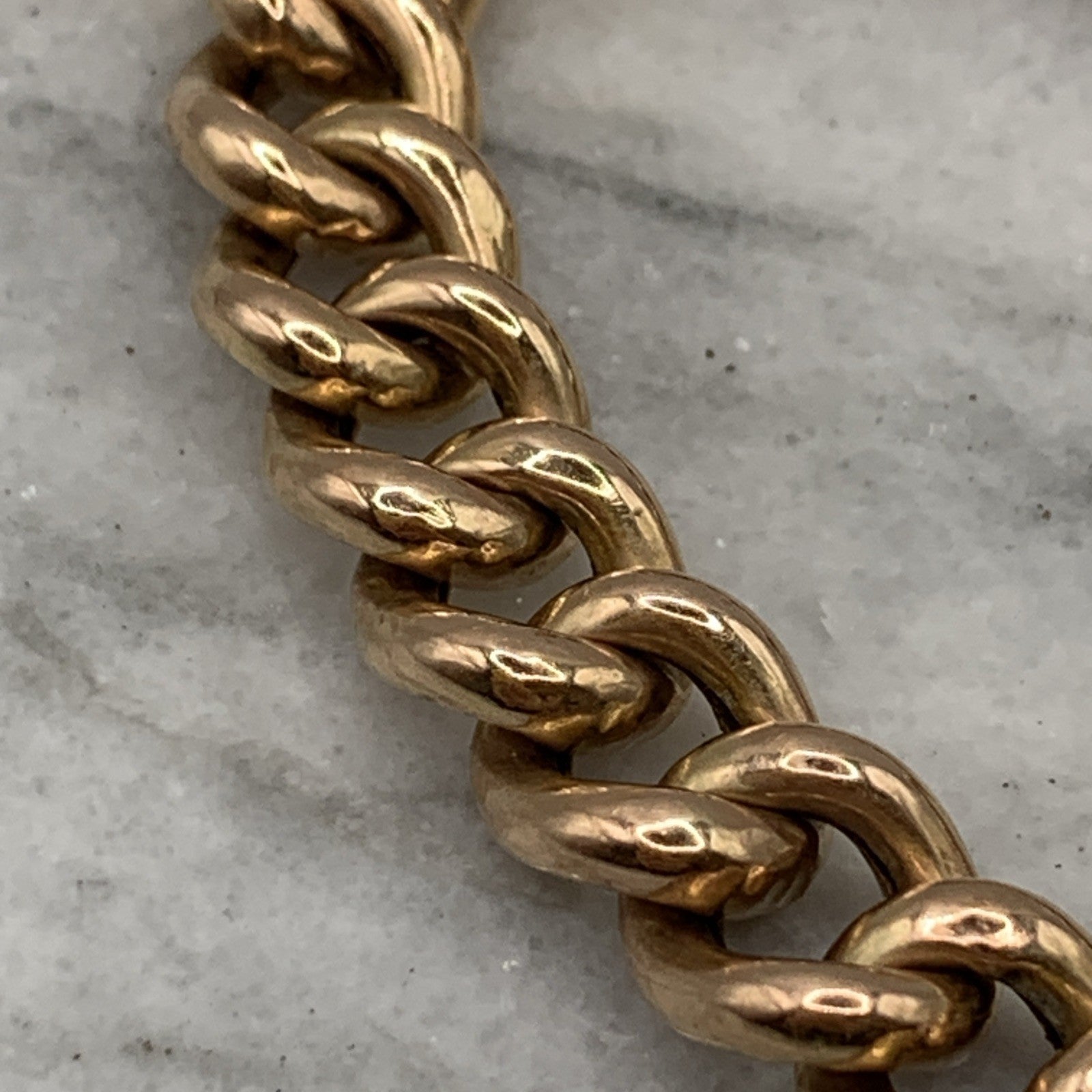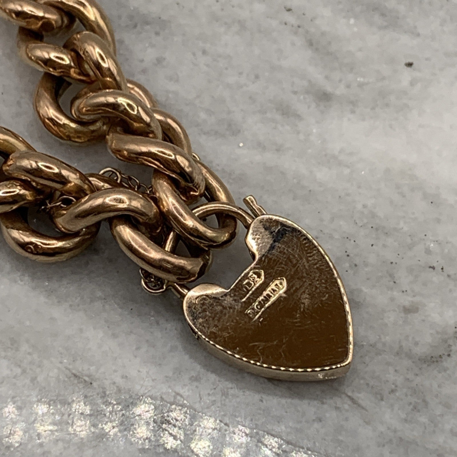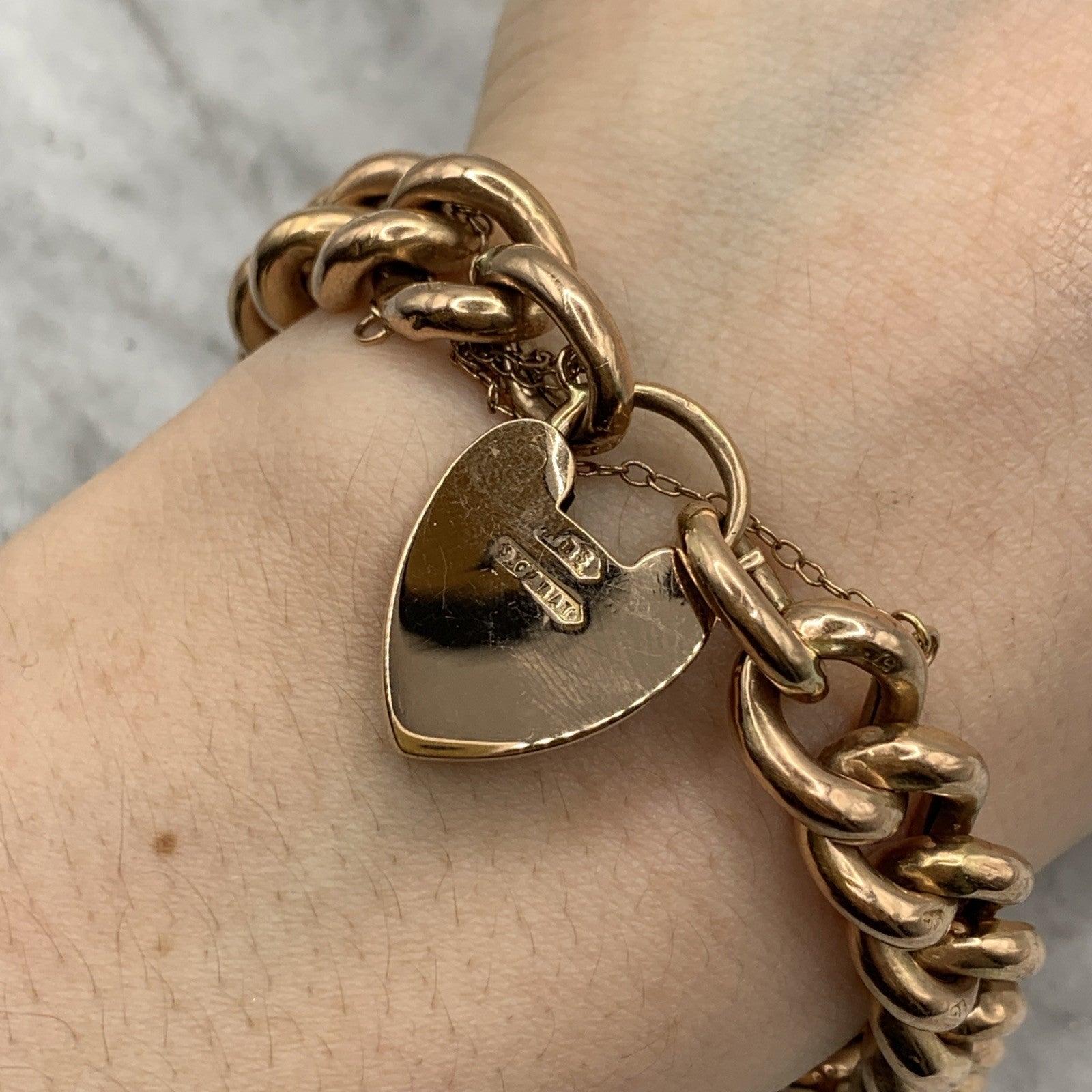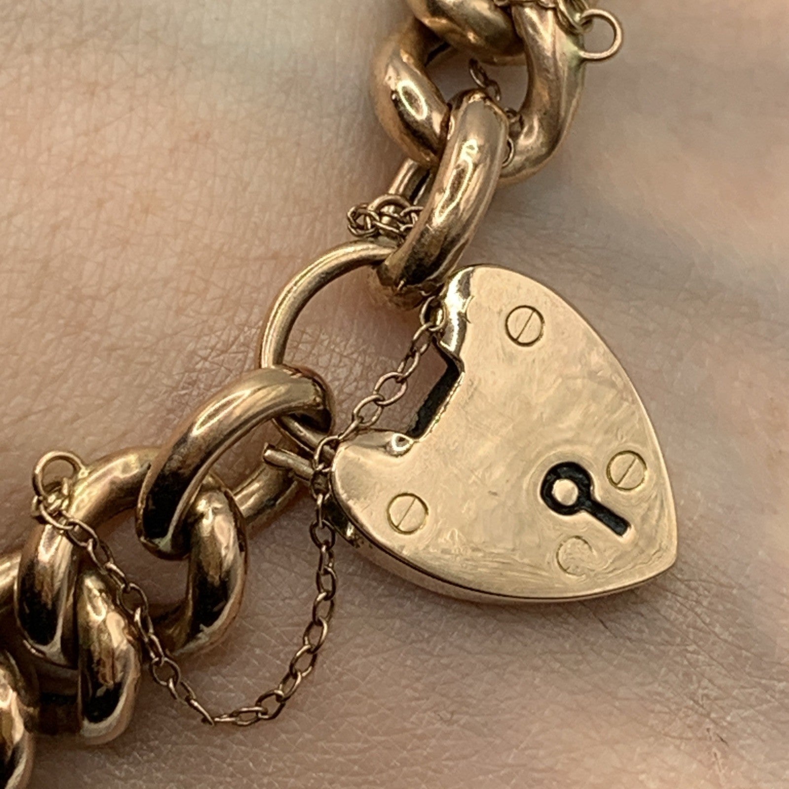 - A gorgeous rose gold chunky curb chain bracelet complete with a padlock closure and safety chain.