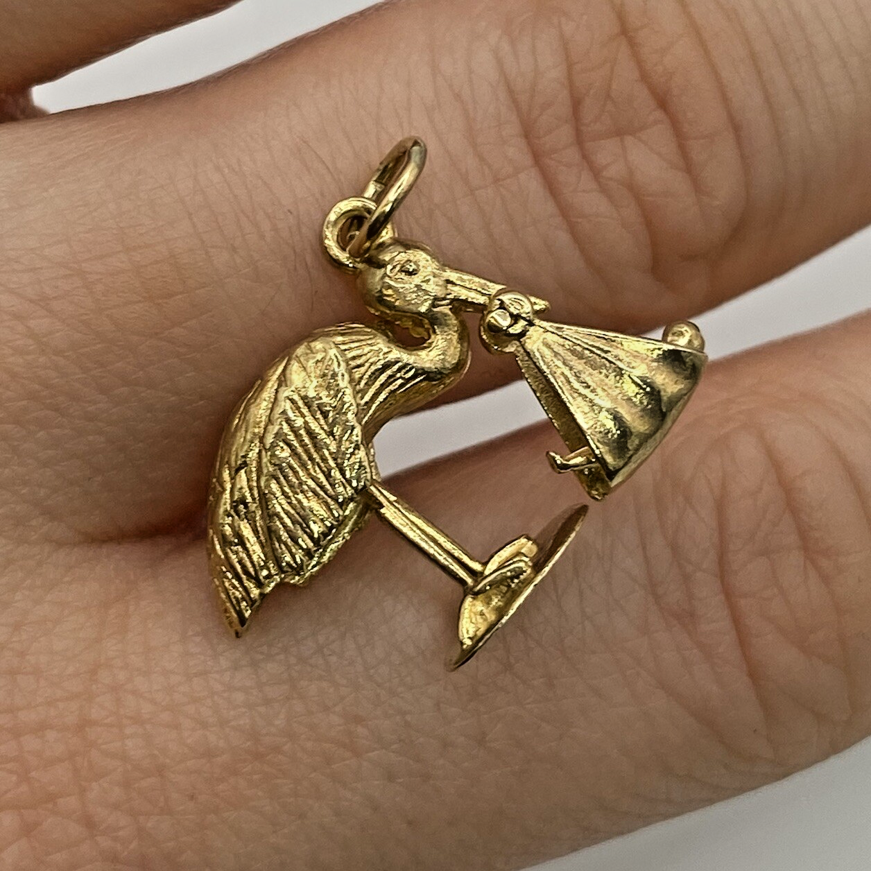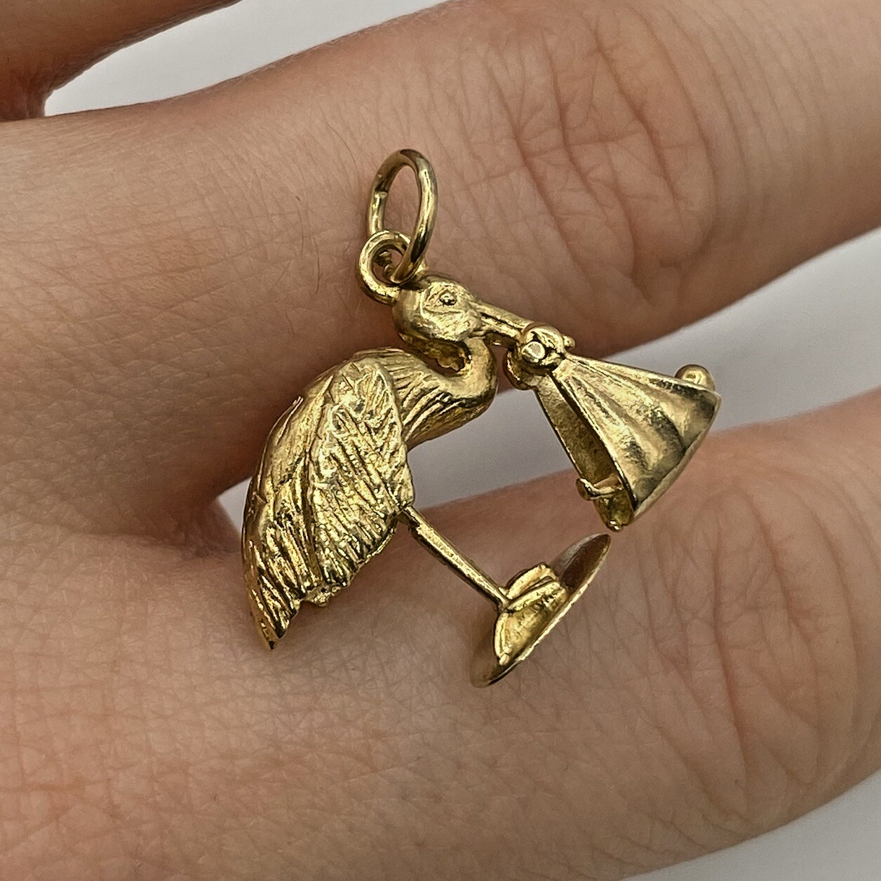 Stork Bird Newborn Baby Charm Pendant 9 ct 375 Yellow Gold