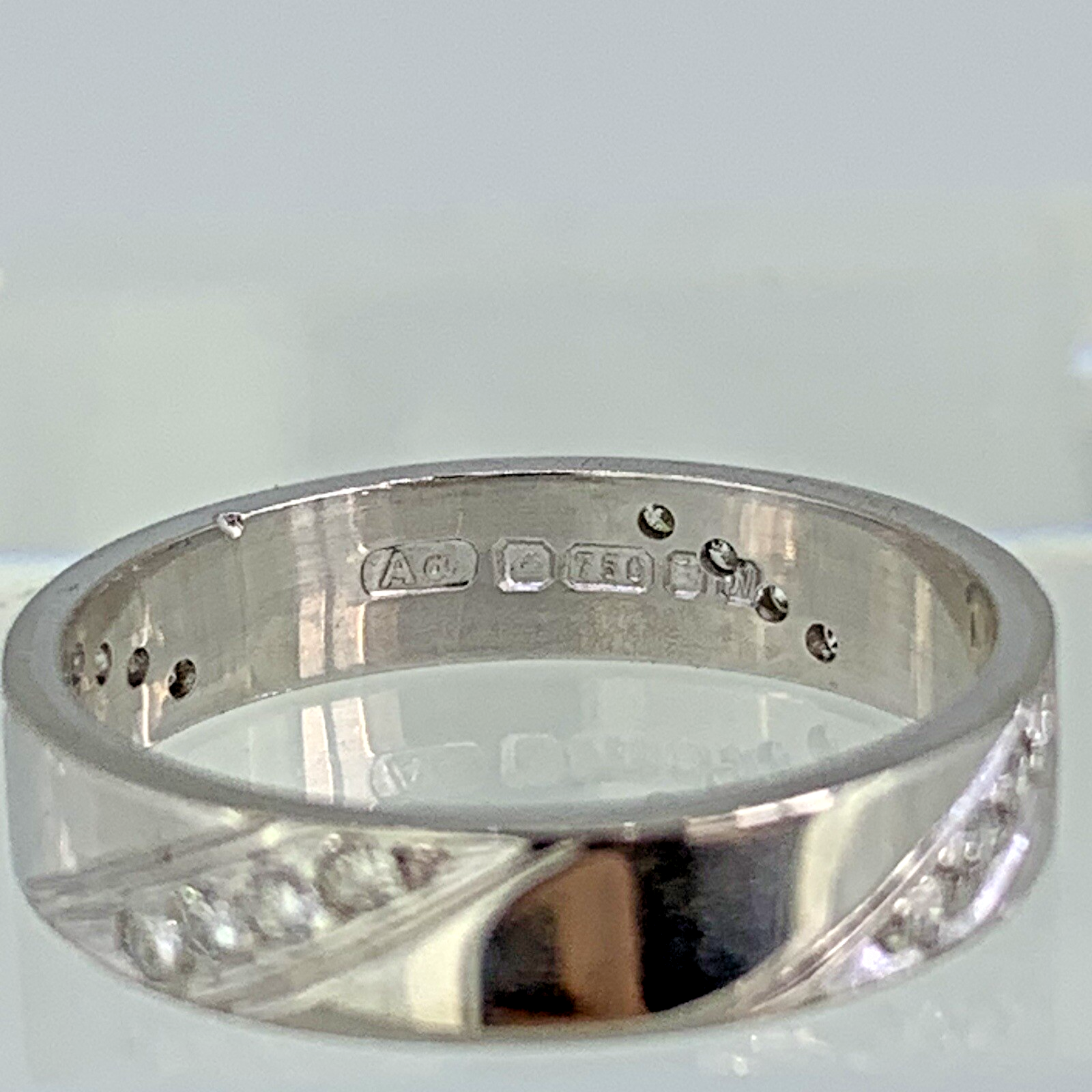 18 ct Gold Diamond Detail Wedding Band Ring 18ct 18k White Gold - Size J 1/2