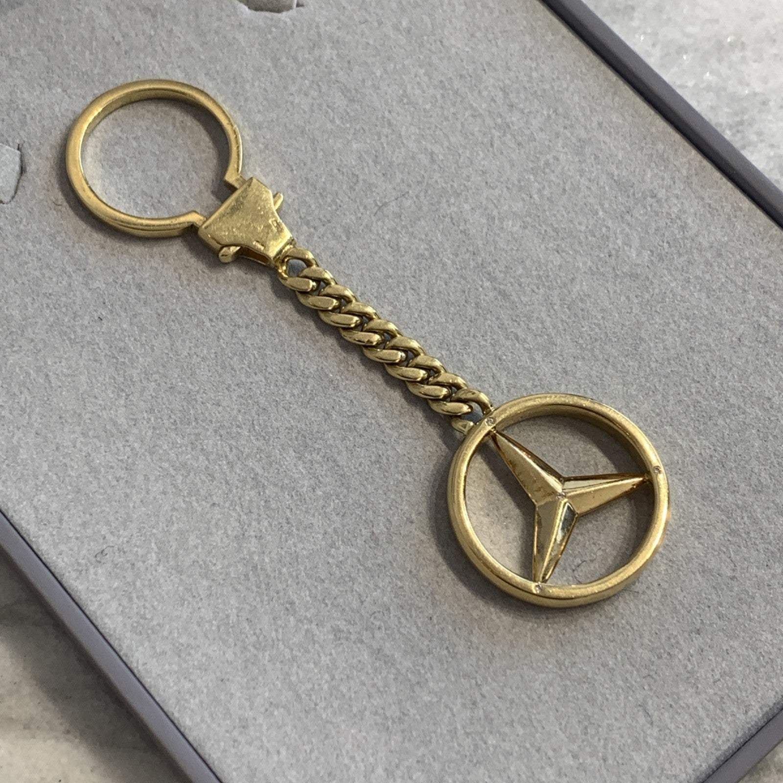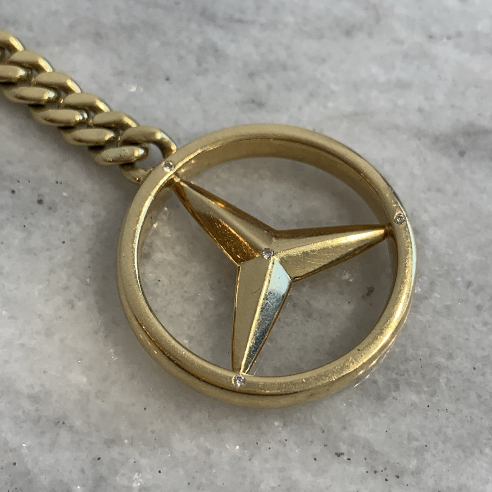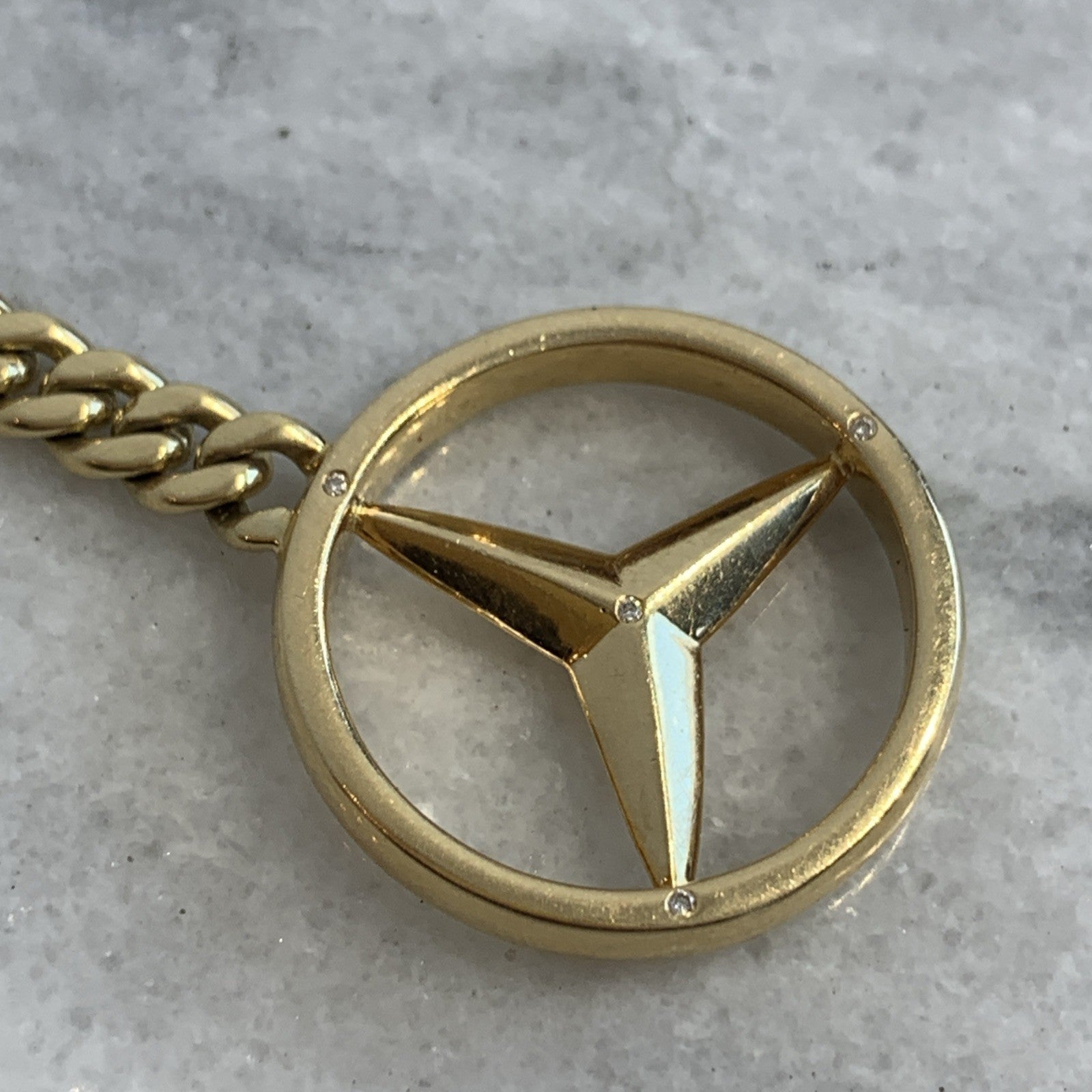 18 ct Gold Diamond Mercedes Benz Curb Chain Keyring 750 Yellow Gold