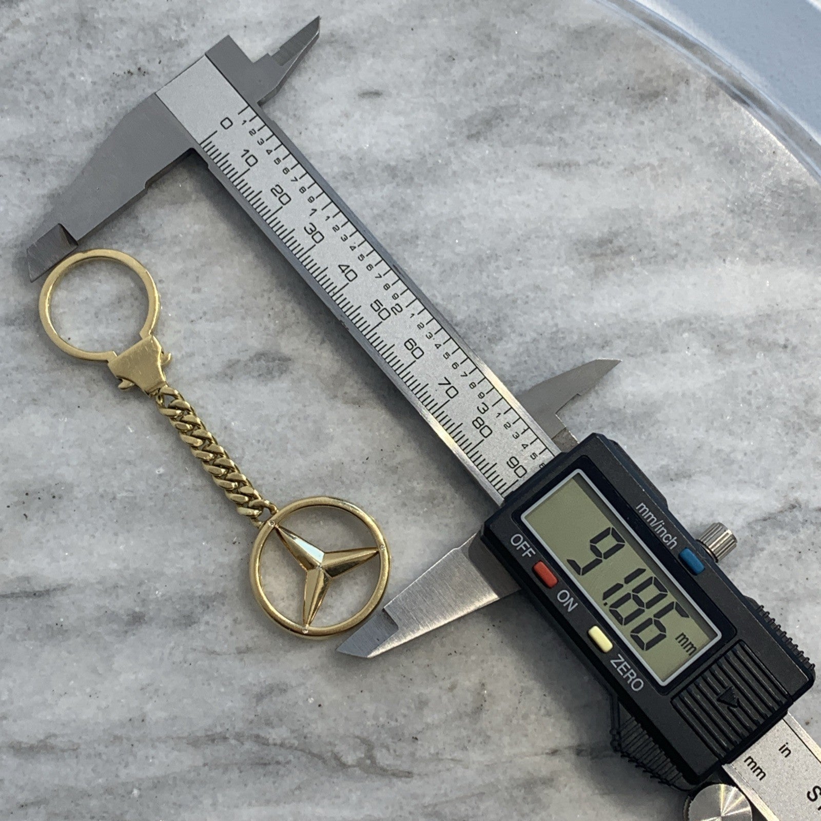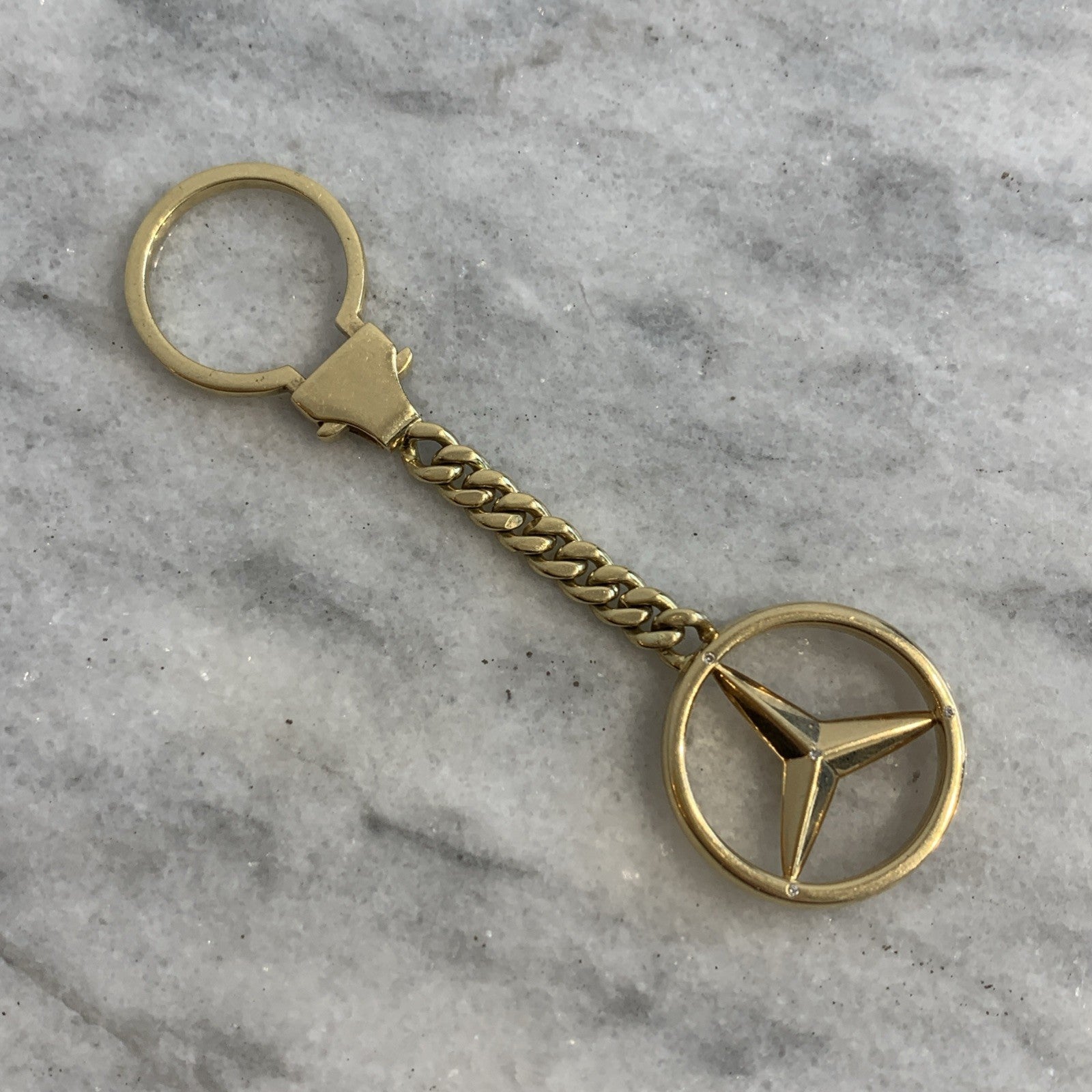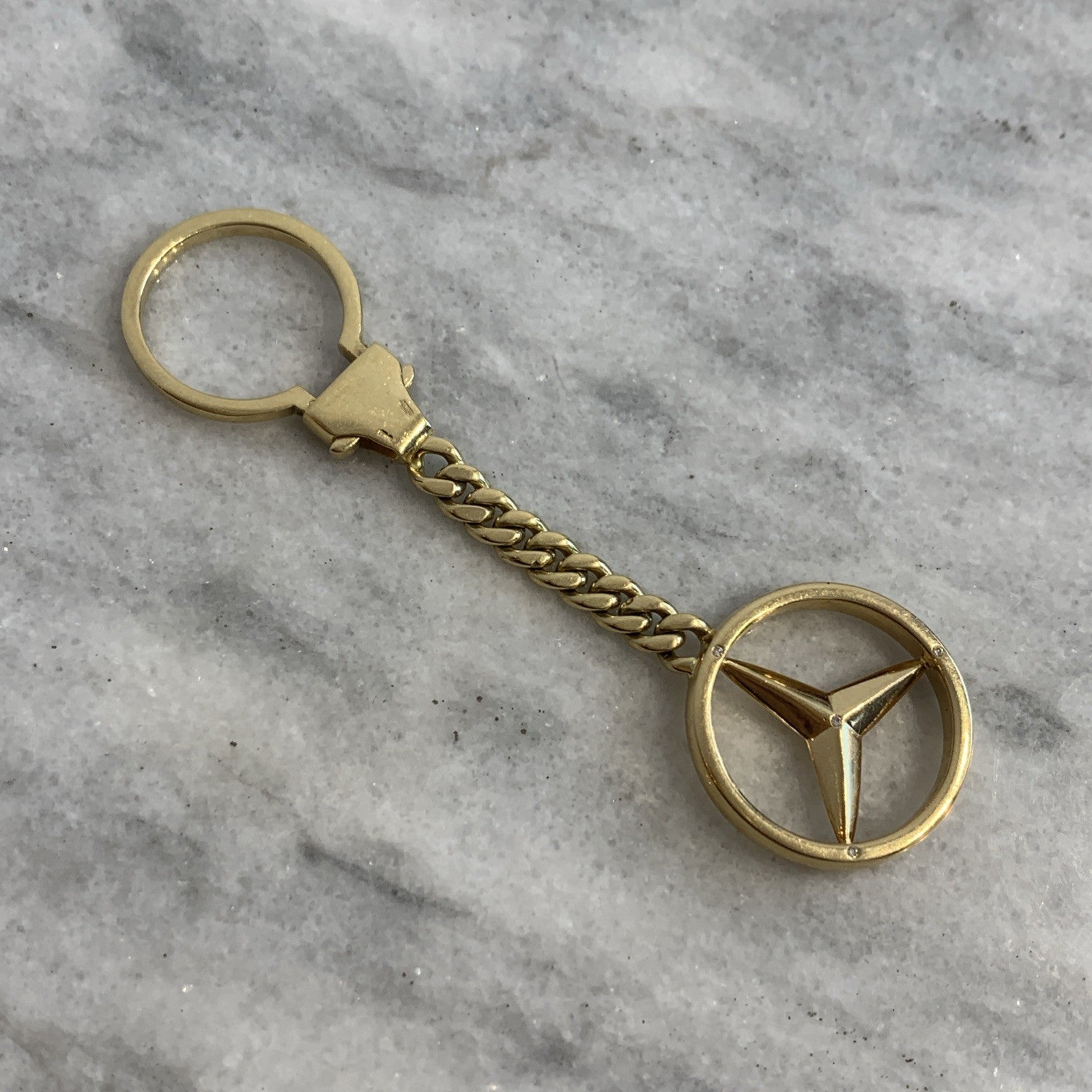 18 ct Gold Diamond Mercedes Benz Curb Chain Keyring 750 Yellow Gold