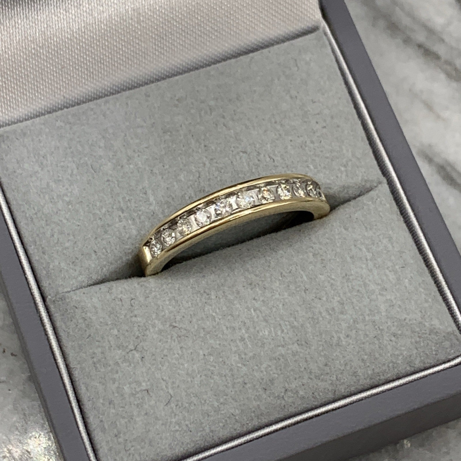 9 ct Gold Diamond .25ct Half Eternity Band Ring 375 9k Yellow Gold - Size L