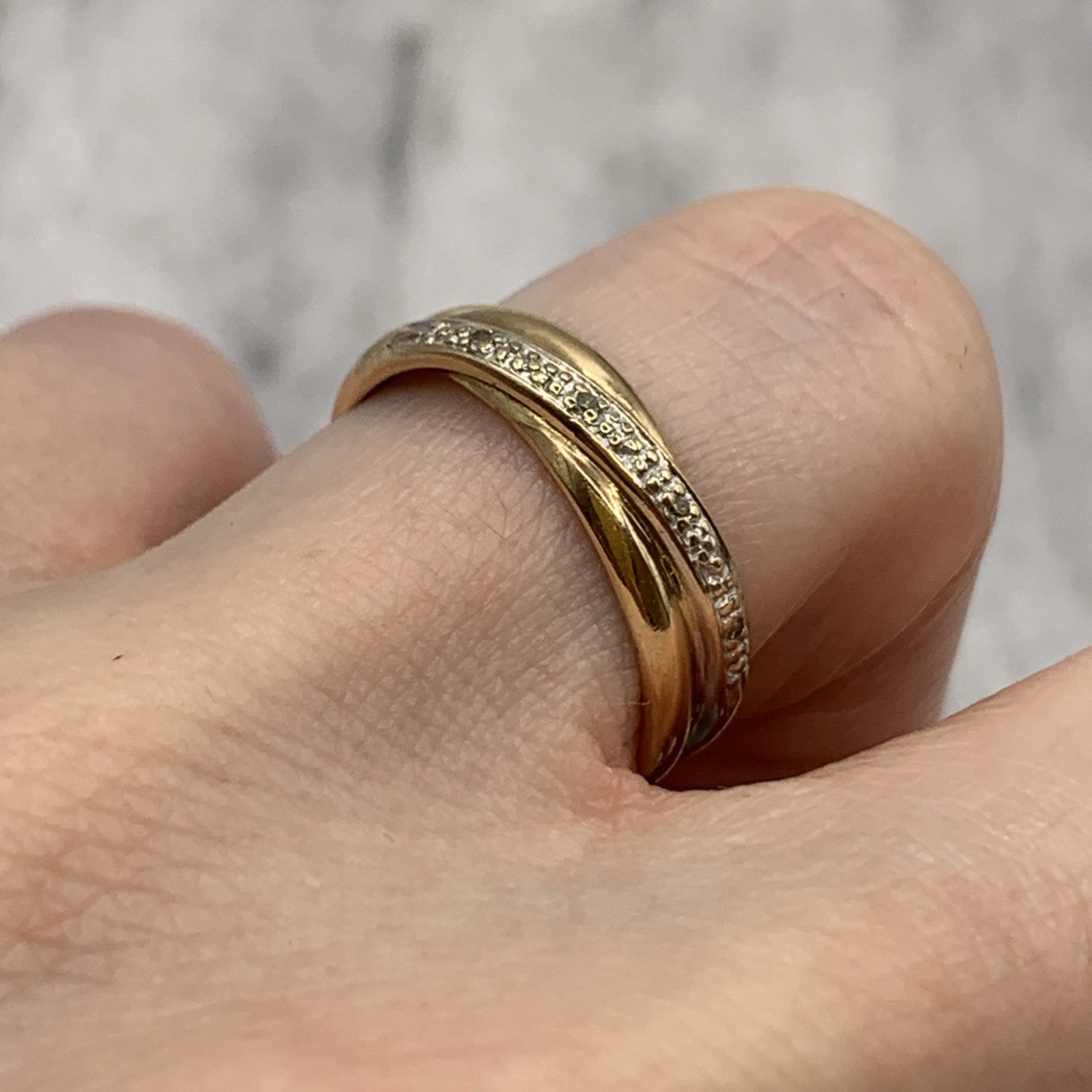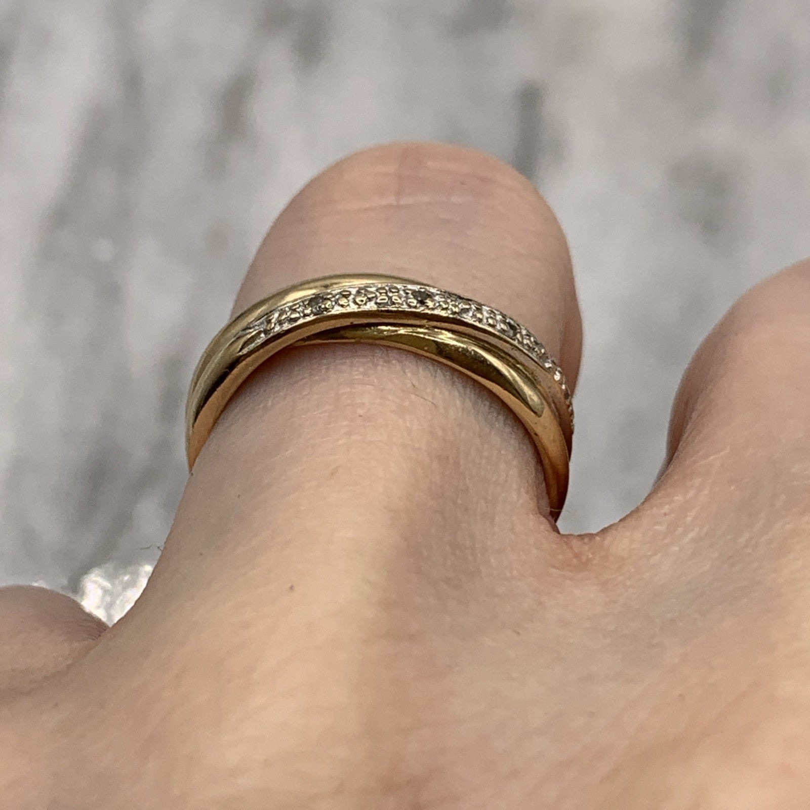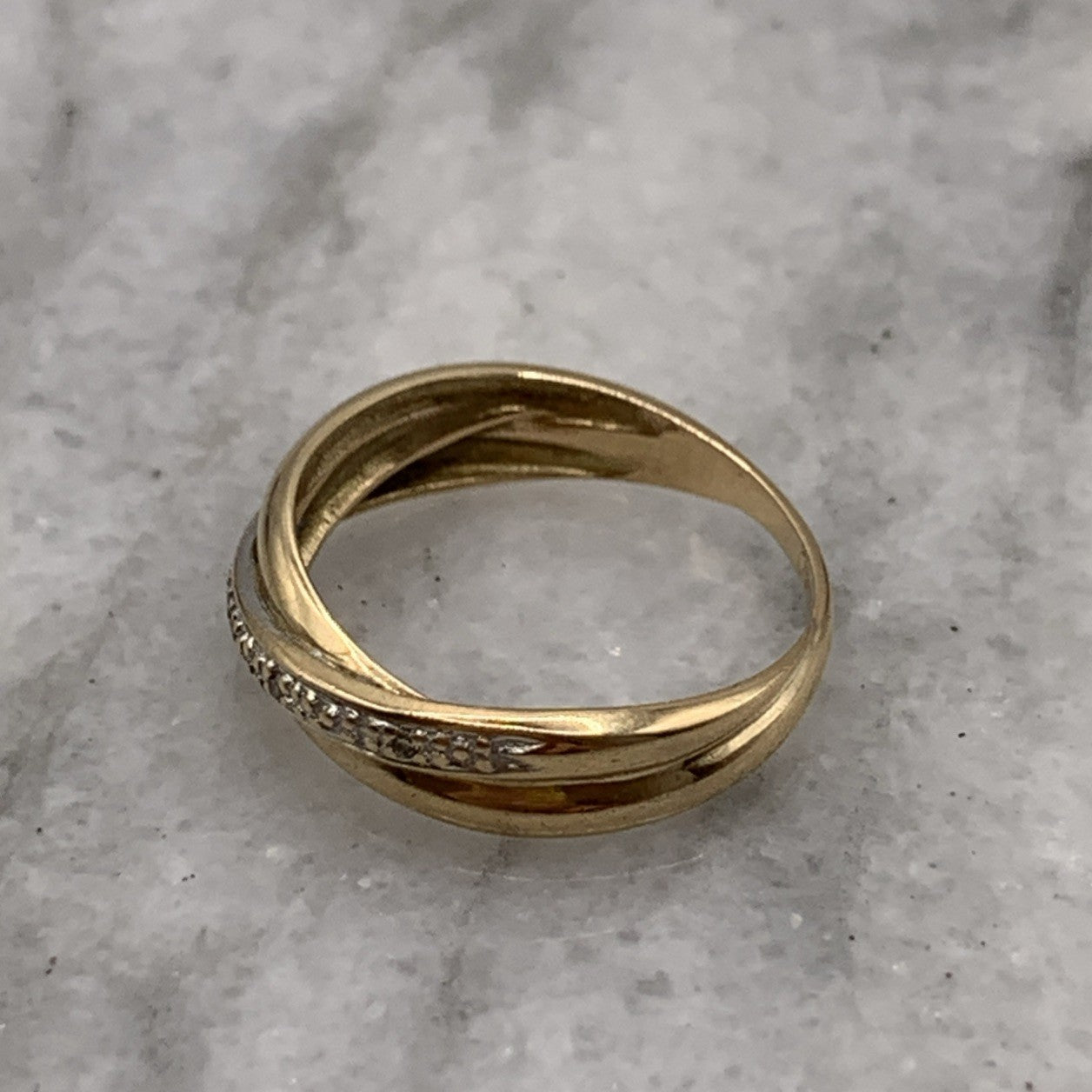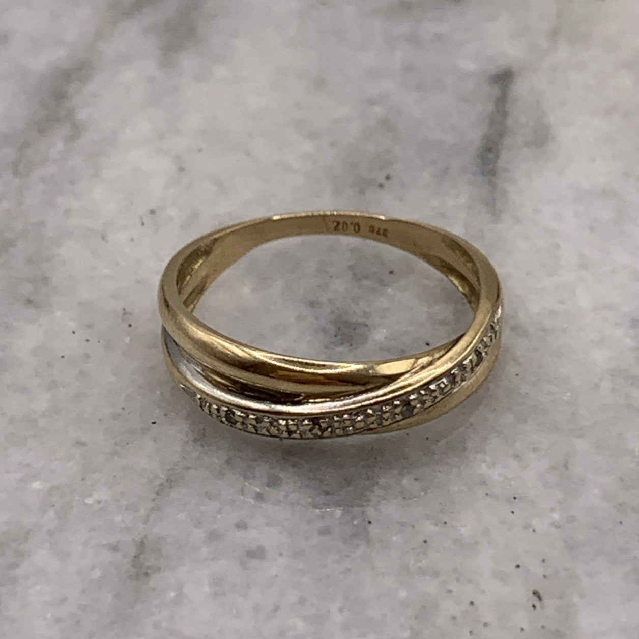 9 ct Gold Diamond Crossover Band Ring 375 Yellow Gold - Size L